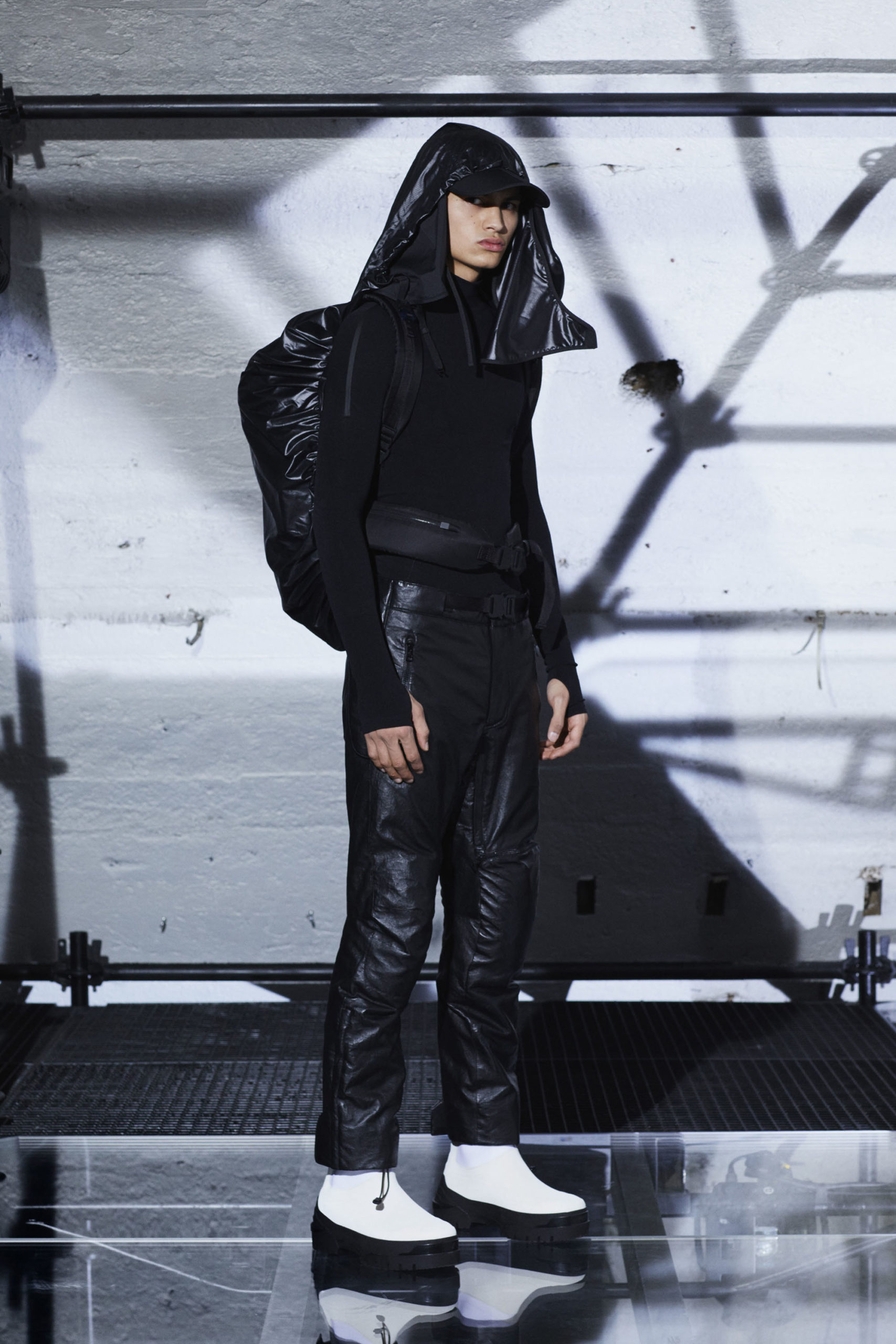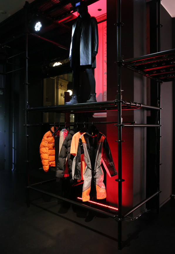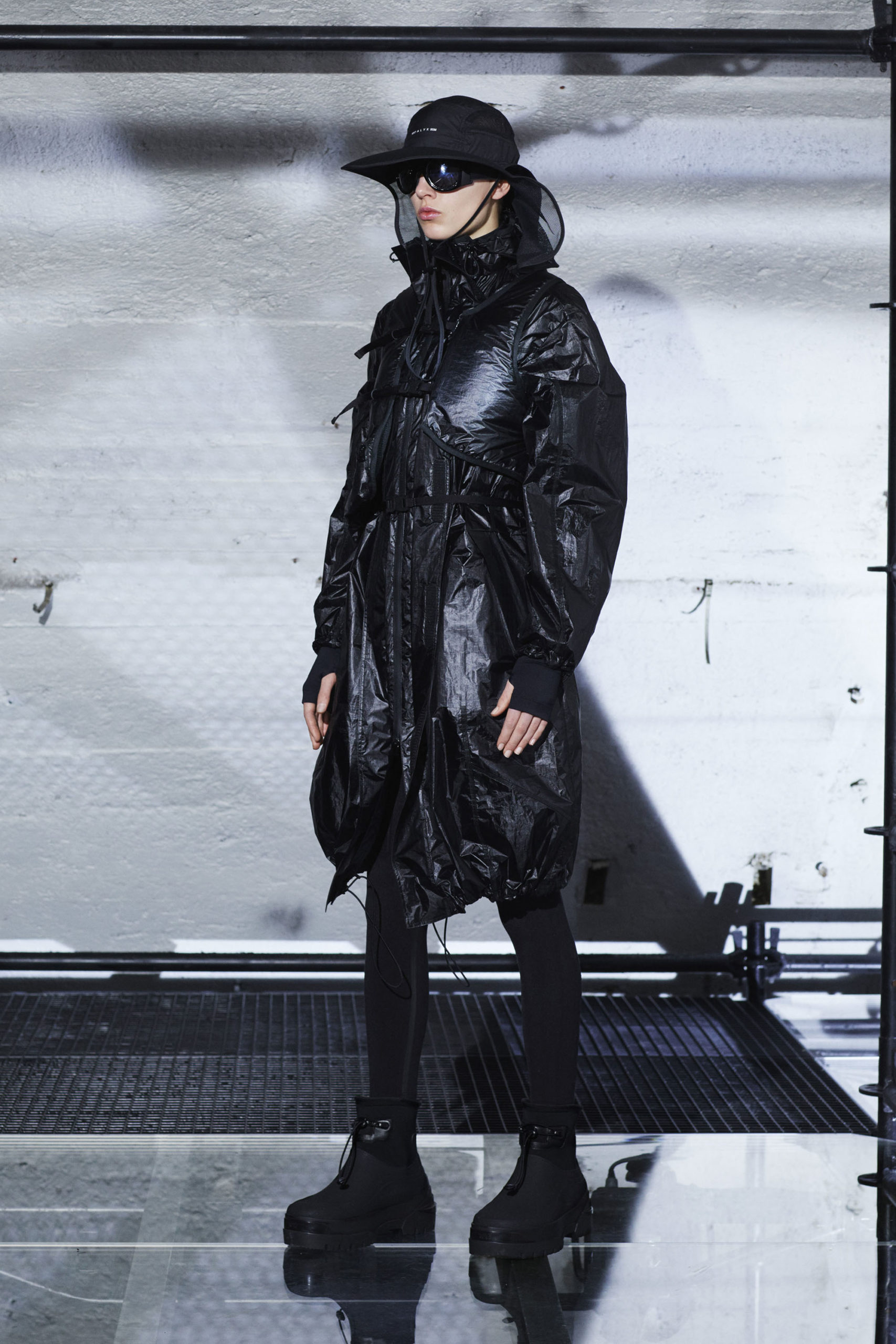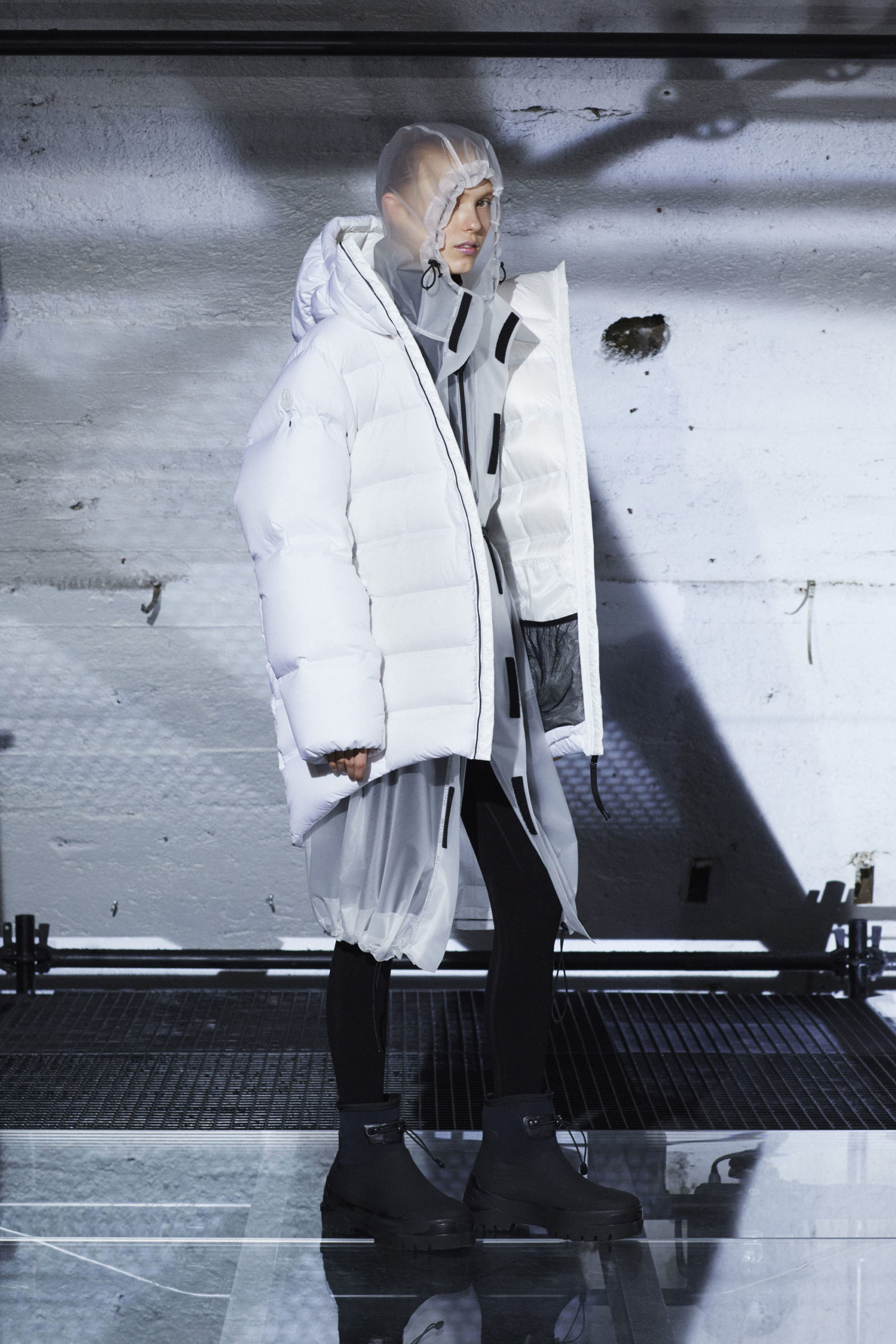 Pour Matthew Williams, fondateur et directeur artistique, 1017 ALYX 9SM reflète une sensibilité industrielle et métropolitaine dénuée de toute froideur. Il apprécie ainsi l’aspect chaleureux et naturel des choses qui ont été touchées par la main de l’homme. La collection 6 MONCLER 1017 ALYX 9SM a donc été imprégnée de ces éléments ainsi que des techniques de fabrication particulières de la marque et ses éléments emblématiques. Le confort et la fonctionnalité, indispensables à 1017 ALYX 9SM comme à Moncler, sont les bases de cette collection moderne de vêtements d’extérieur versatiles. Doudounes, parkas matelassées, anoraks coupe-vent ultra légers, vestes sans manches ou pièces en cuir auxquels s’ajoutent de la maille et des accessoires plus fonctionnels, comme des ceintures chaînes à crochets, des sacs à dos à capuche et des bottines en néoprène avec semelles en caoutchouc. L’idée est de laisser les deux ADN fusionner afin de créer des produits que Moncler n’avait encore jamais réalisés. Par exemple, les doudounes sont retravaillées par le designer afin de leur insuffler son style urbain caractéristique. Les gradations de couleurs réalisées sur une base de nylon donnent un rendu irrégulier texturé. Les techniques de soudure par ultrasons et de contrecollage sont des largement utilisés, tandis que les collants et les hauts sont fabriqués à partir d’Econyl®, un nylon « régénéré » dérivé de matériaux de rebut tels que du plastique récupéré des océans. La palette de couleurs utilisée est résolument métropolitaine : noir, gris et blanc en majorité, agrémentée de touches de rouge et orange.