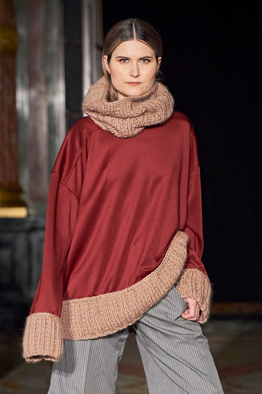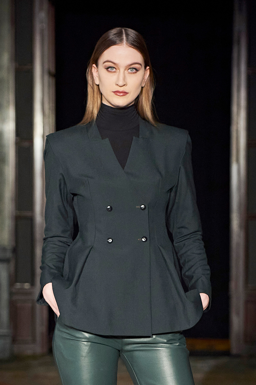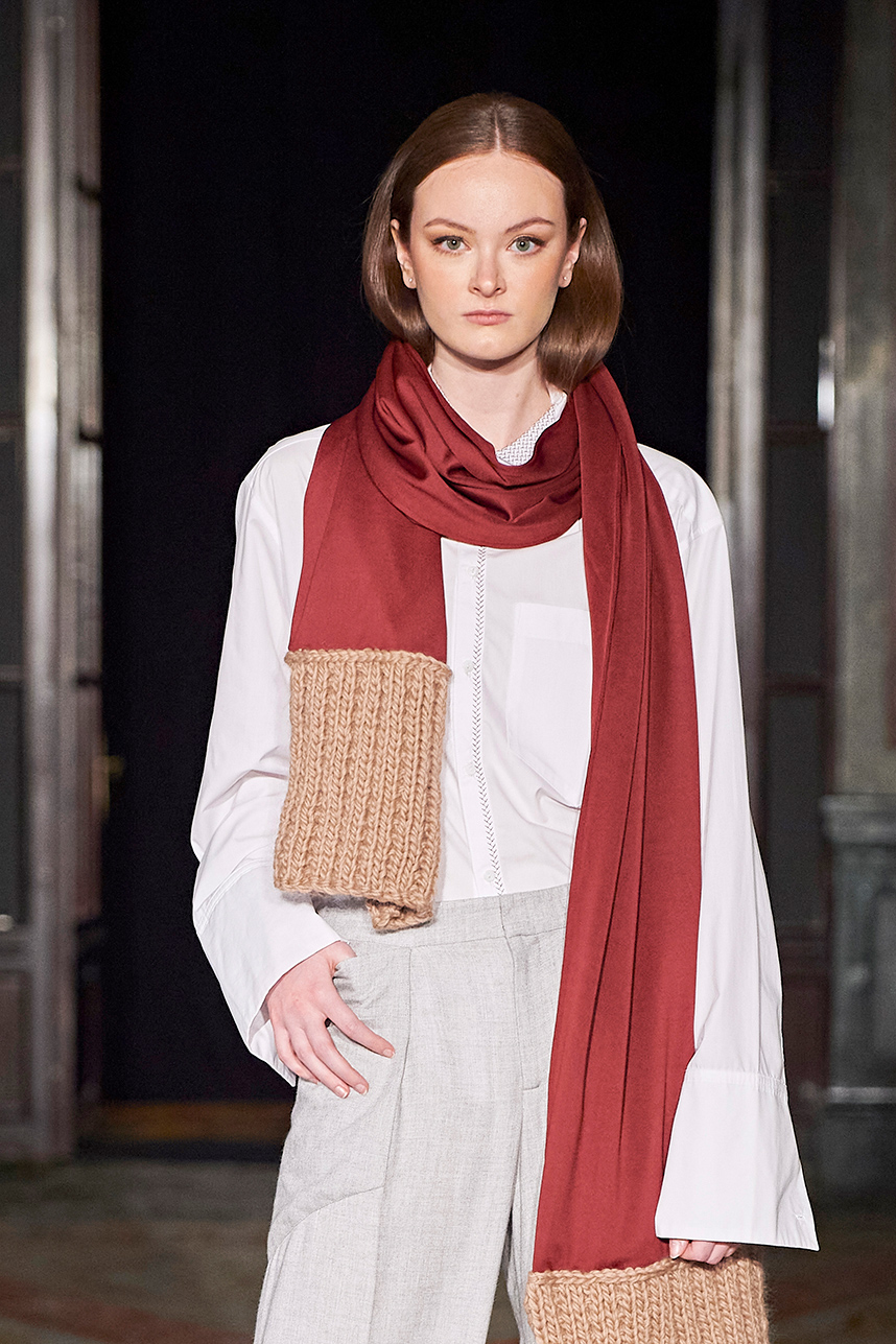 The entire collection was wearable, yet interesting and featured unexpected details not available in today’s over homogenized market providing consumers with the opportunity to add unique designer pieces to their wardrobe. Cozy sweaters and suiting separates tailored to perfection were highlights of the collection curated by Tiffany Saunders and designed by Leonie Mergen and Harriet Eccelston.