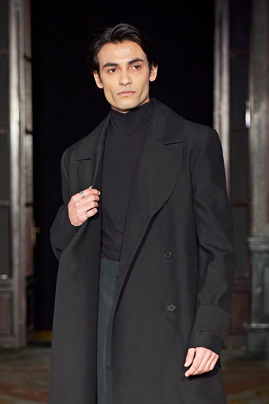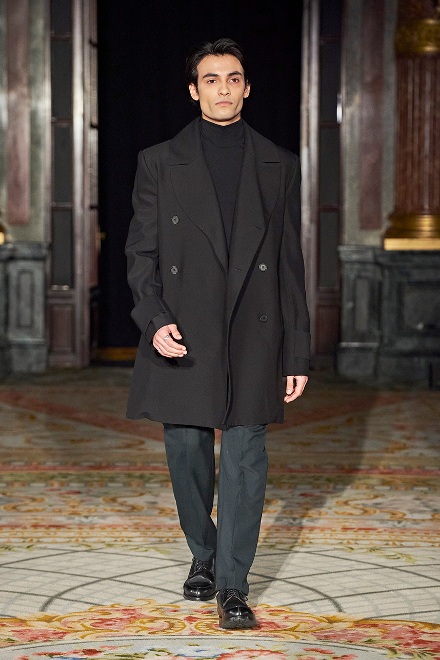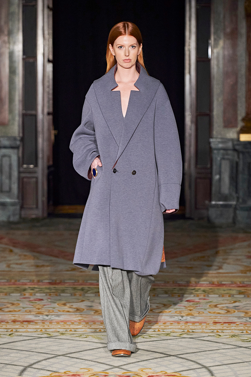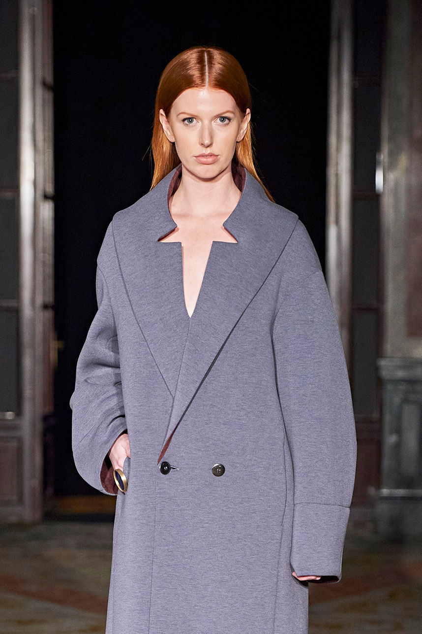 The collection also offered several head-to-toe men’s looks including an architectural blazer as well as coats in sumptuous wool that were expertly tailored.