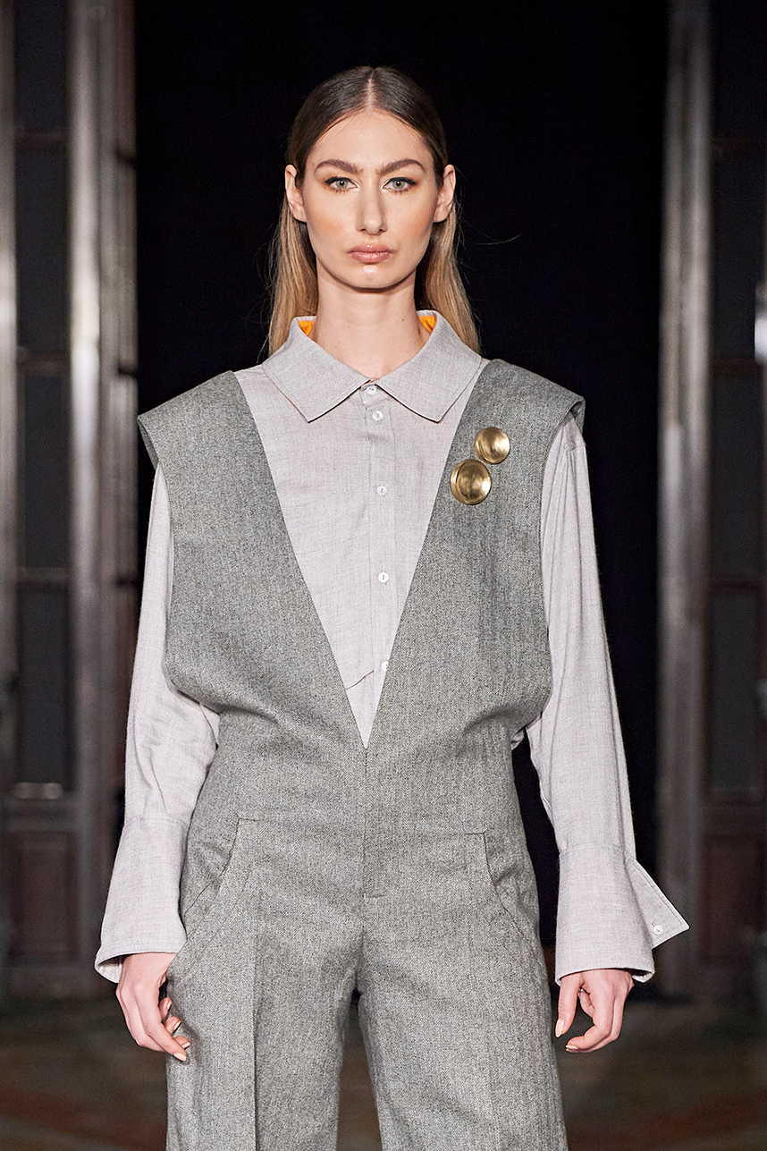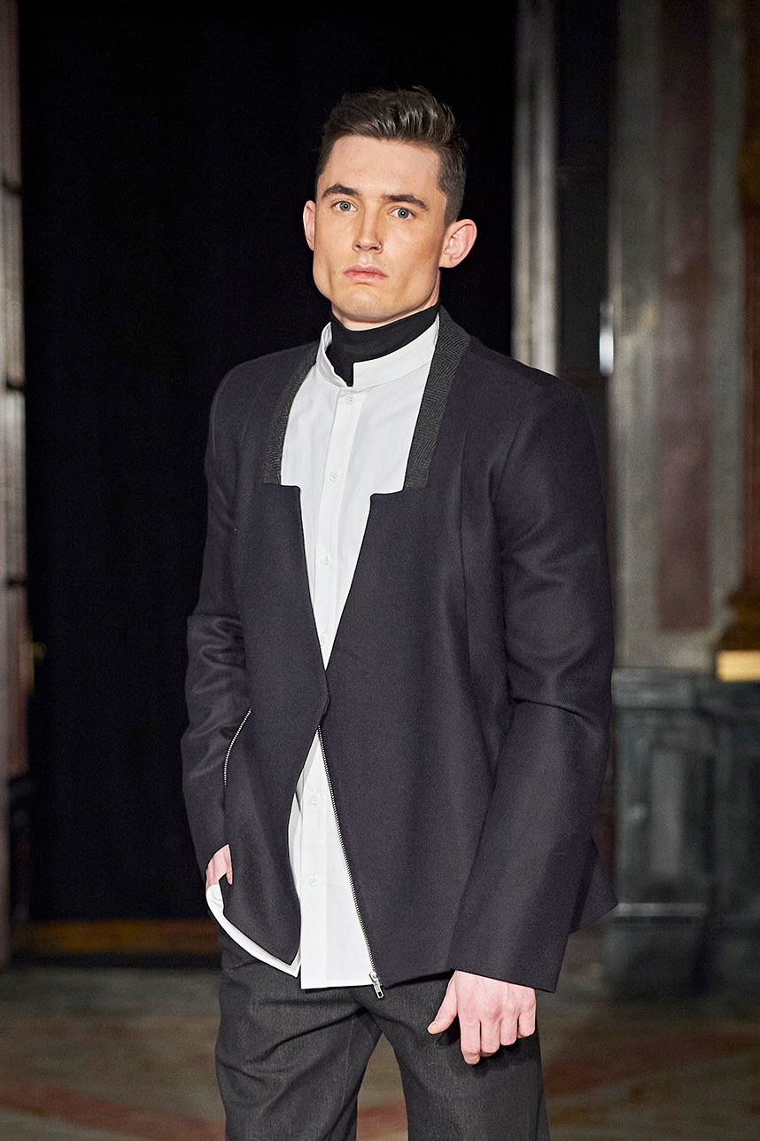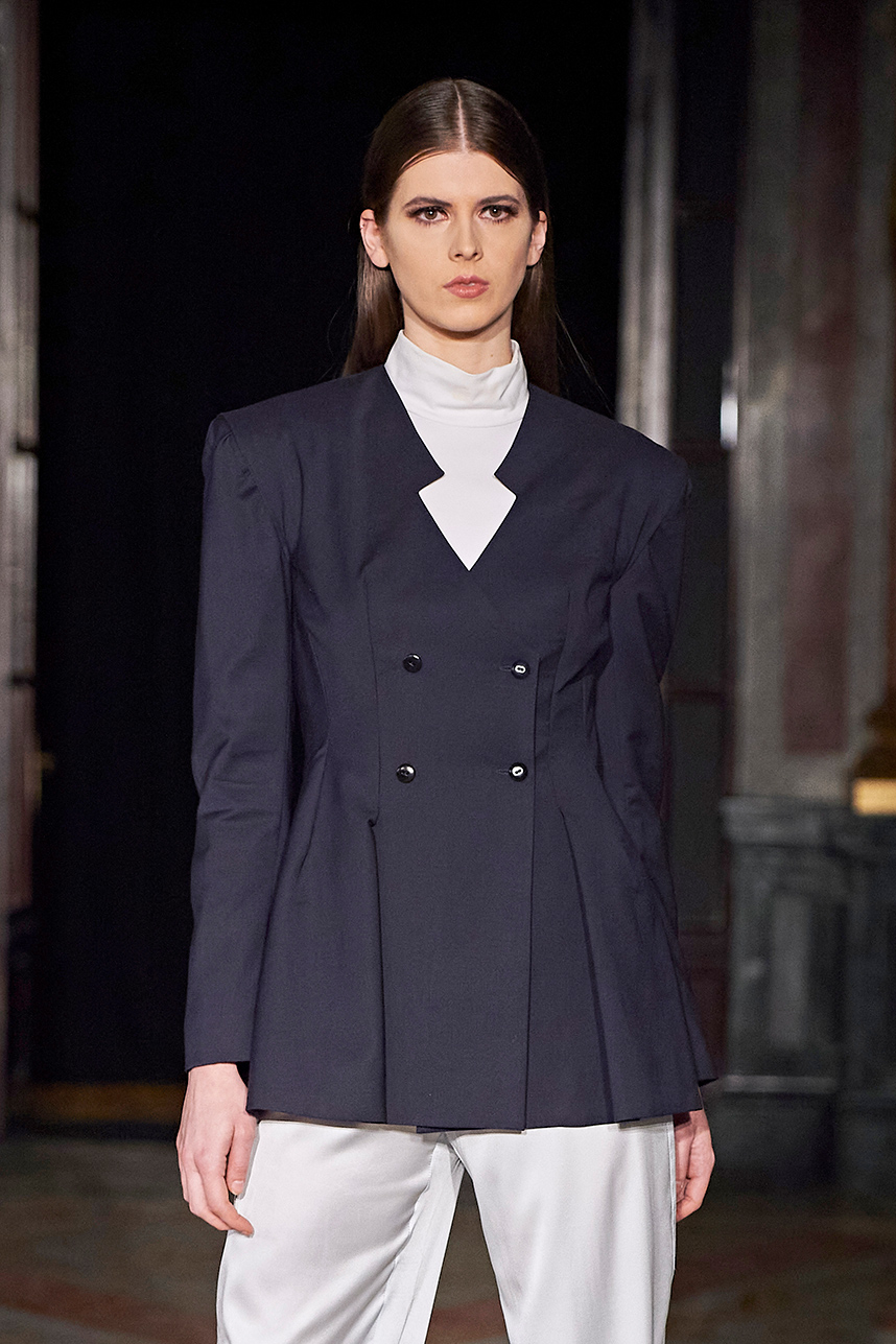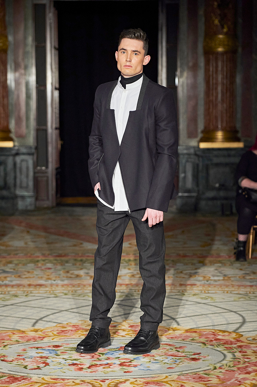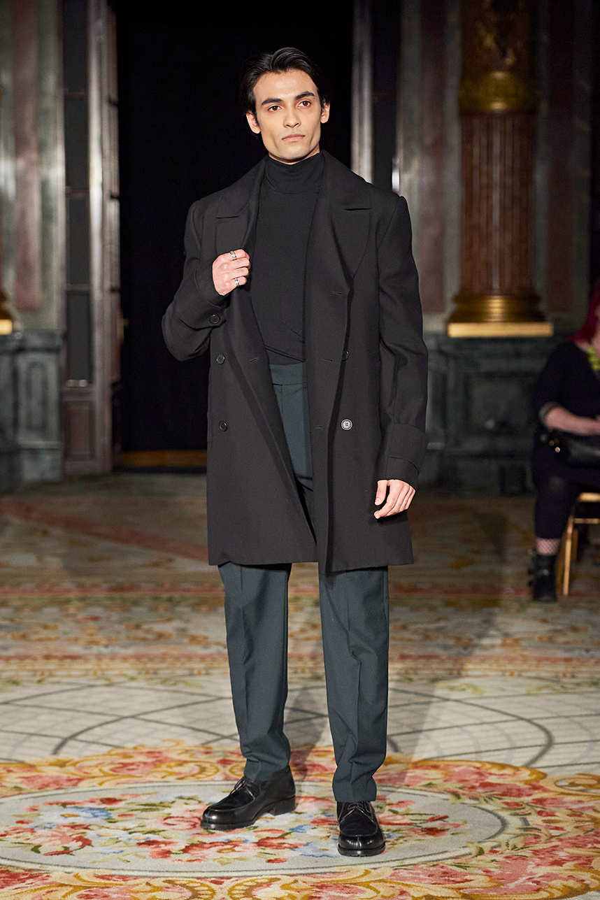 The collection also offered several head-to-toe men’s looks including an architectural blazer as well as coats in sumptuous wool that were expertly tailored.