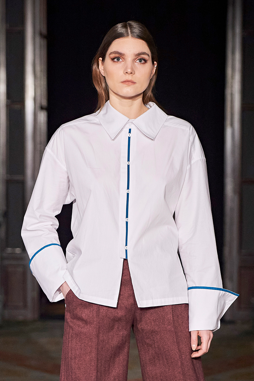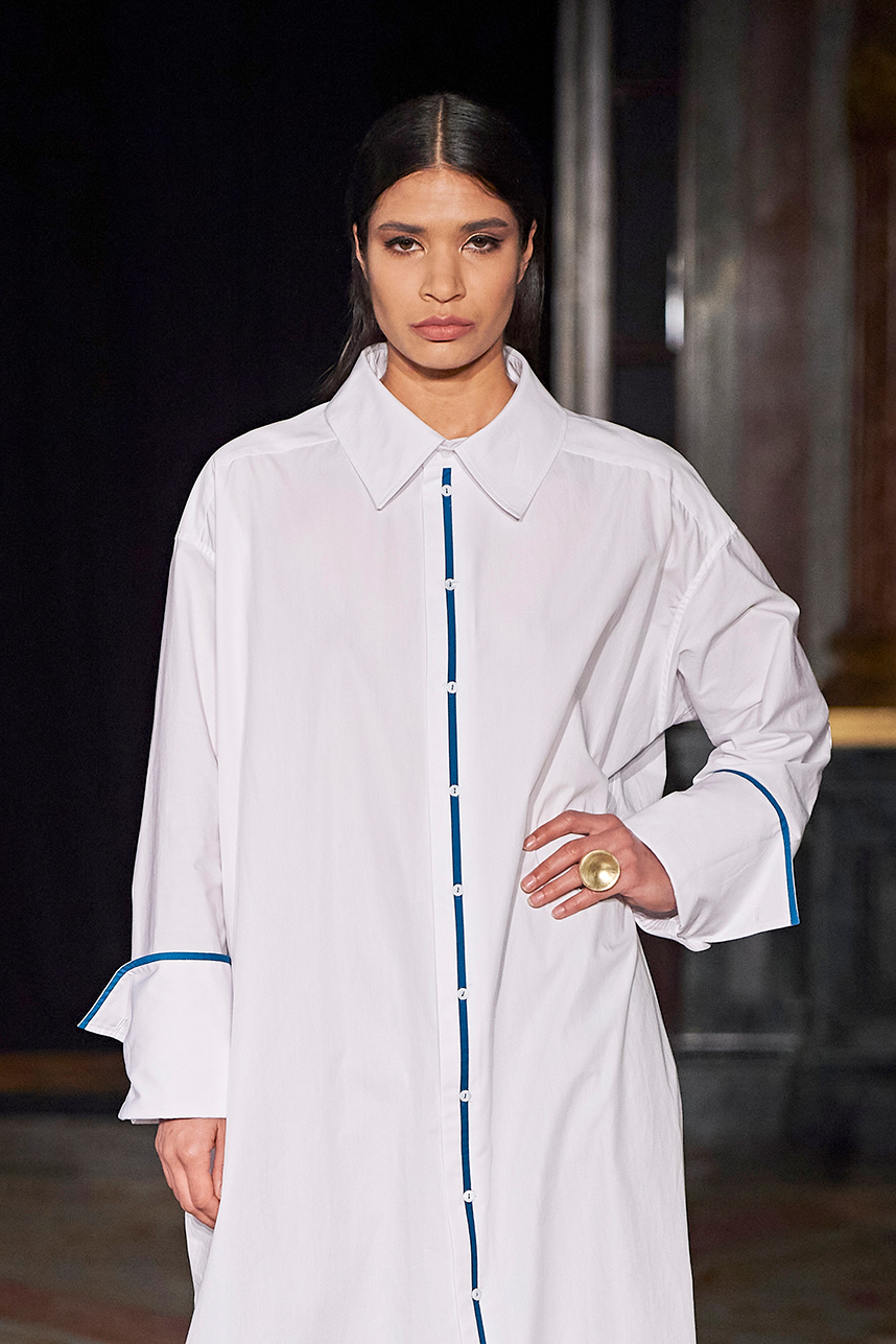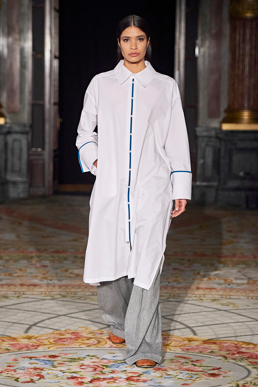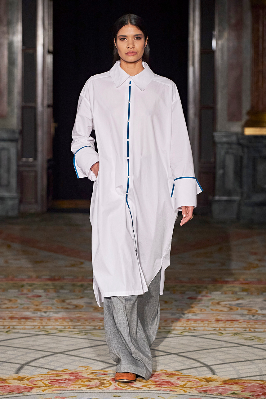 The collection also offered several head-to-toe men’s looks including an architectural blazer as well as coats in sumptuous wool that were expertly tailored.