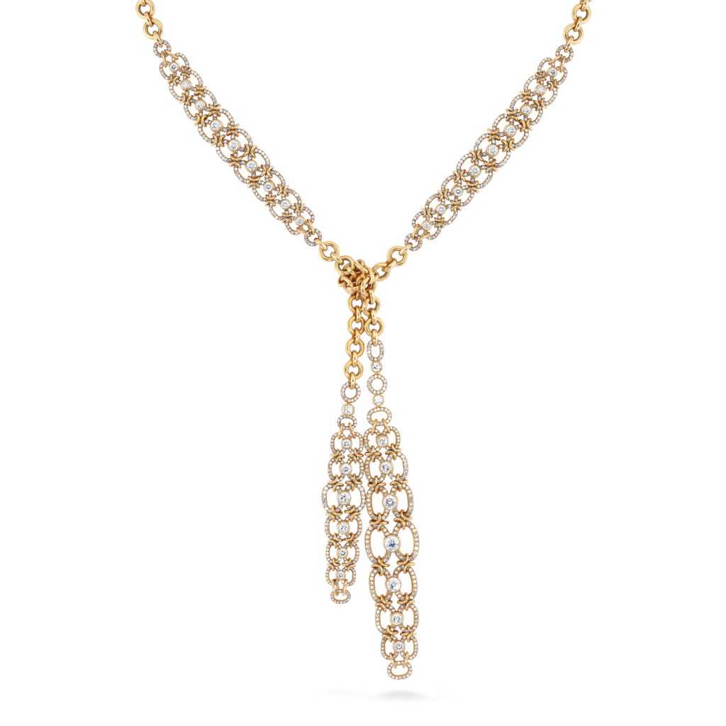 Collier Heritage composé de diamants blancs ronds et micro-serti de diamants sur chaine en or rose, prix sur demande