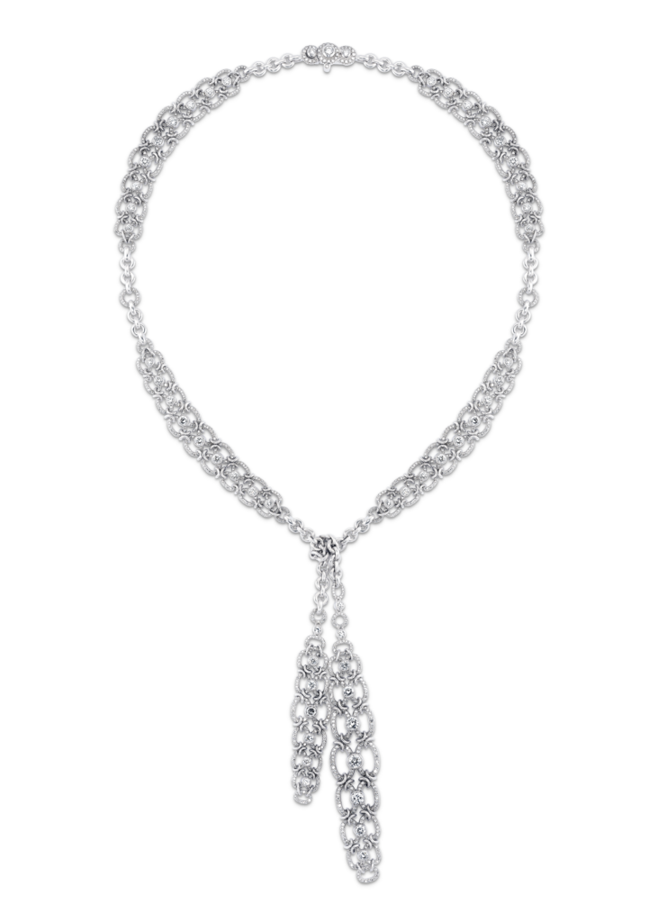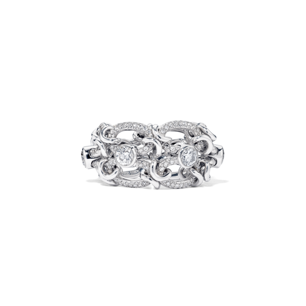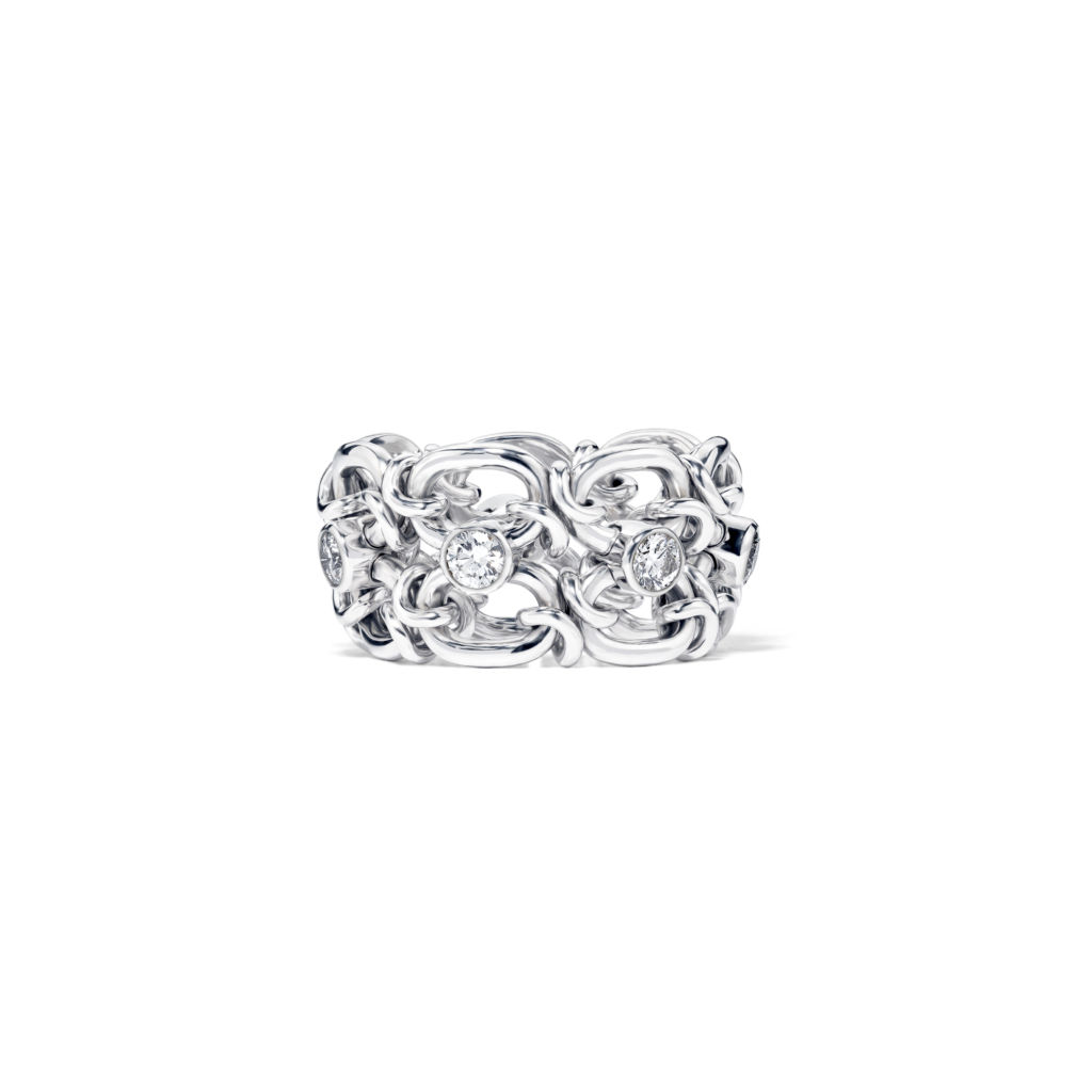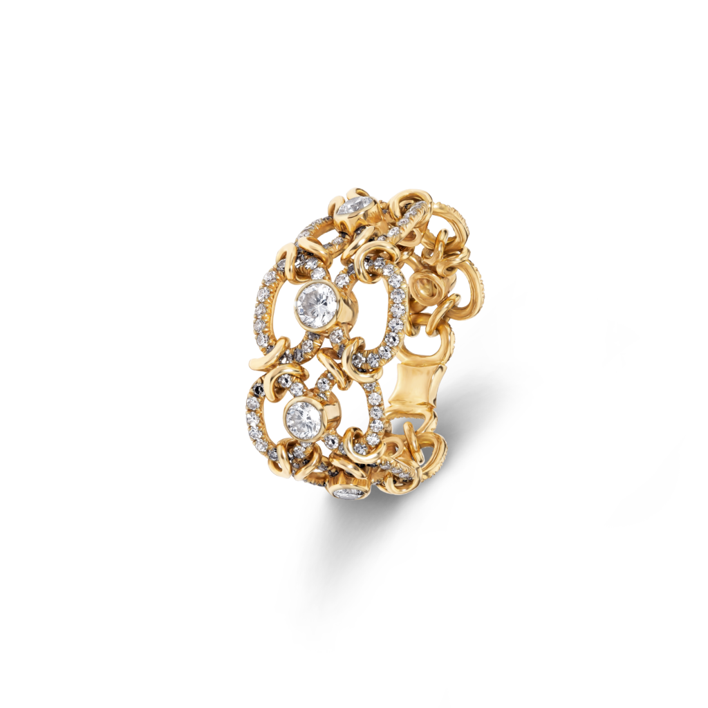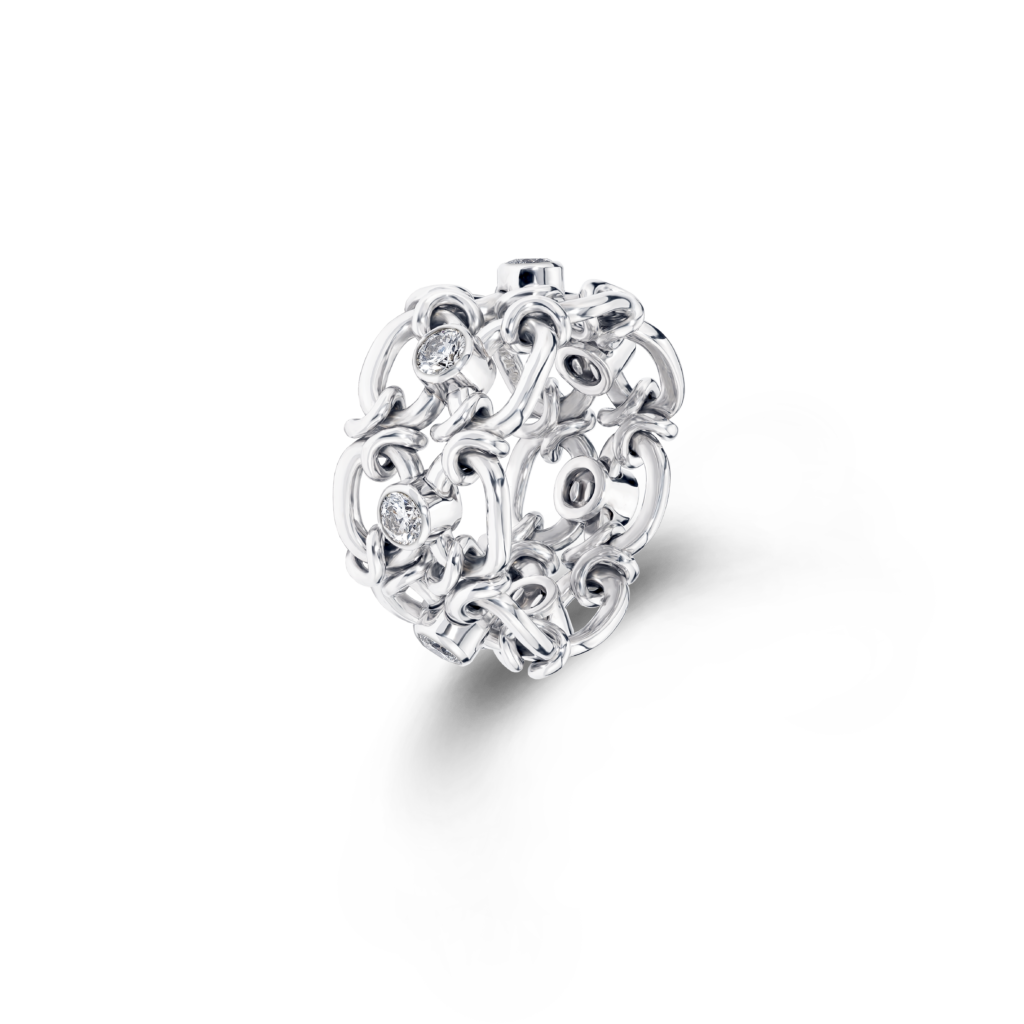 Dessinée par le PDG et Directeur Artistique Jeremy Morris à partir du motif de la bague «Flexi» de David Morris, la Collection Heritage évoque à merveille le glamour espiègle et l’approche révolutionnaire vis-à-vis du design de l’époque, avec une version revisité contemporaine pour la femme d’aujourd’hui. De délicates chaines à maillons ovales, sertis de diamants avec la technique “micro-setting’, sont ponctuées à intervalles réguliers de diamants plus importants pour créer une silhouette souple et dynamique.