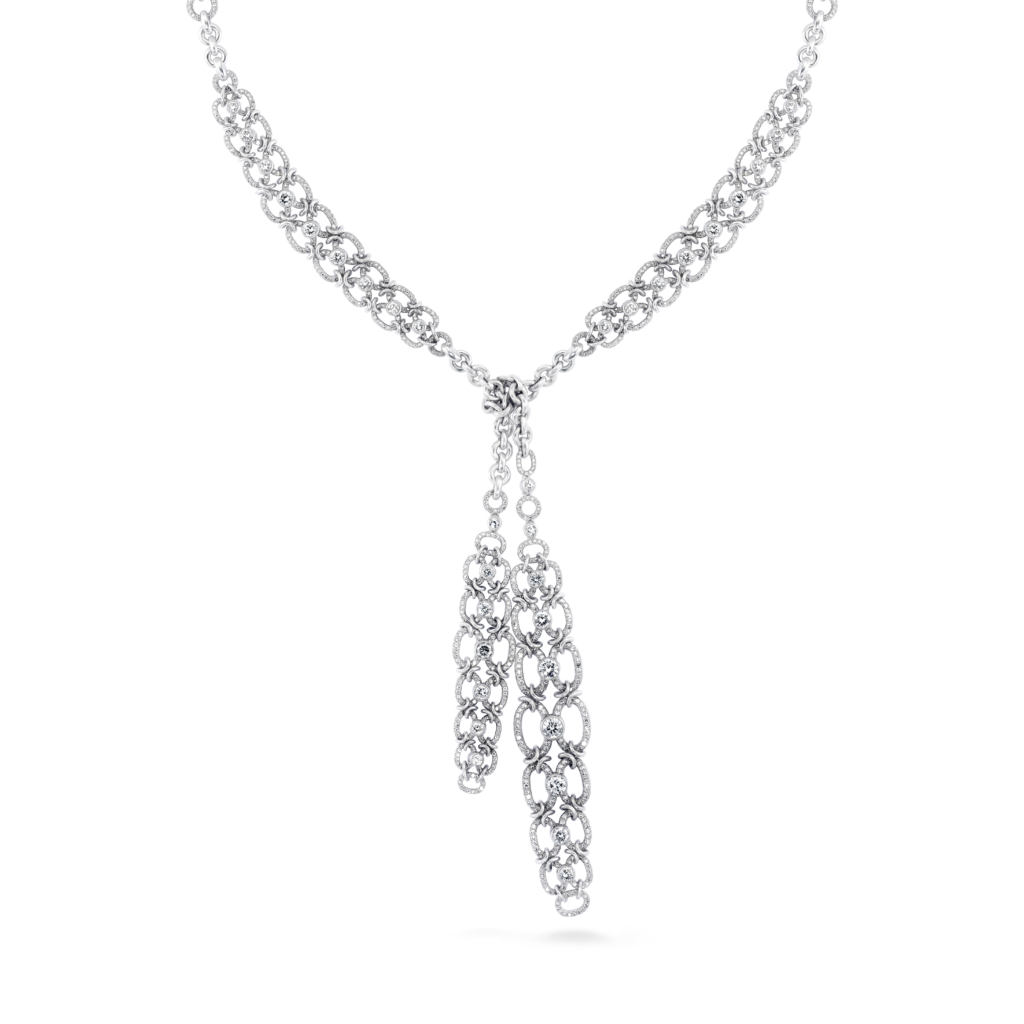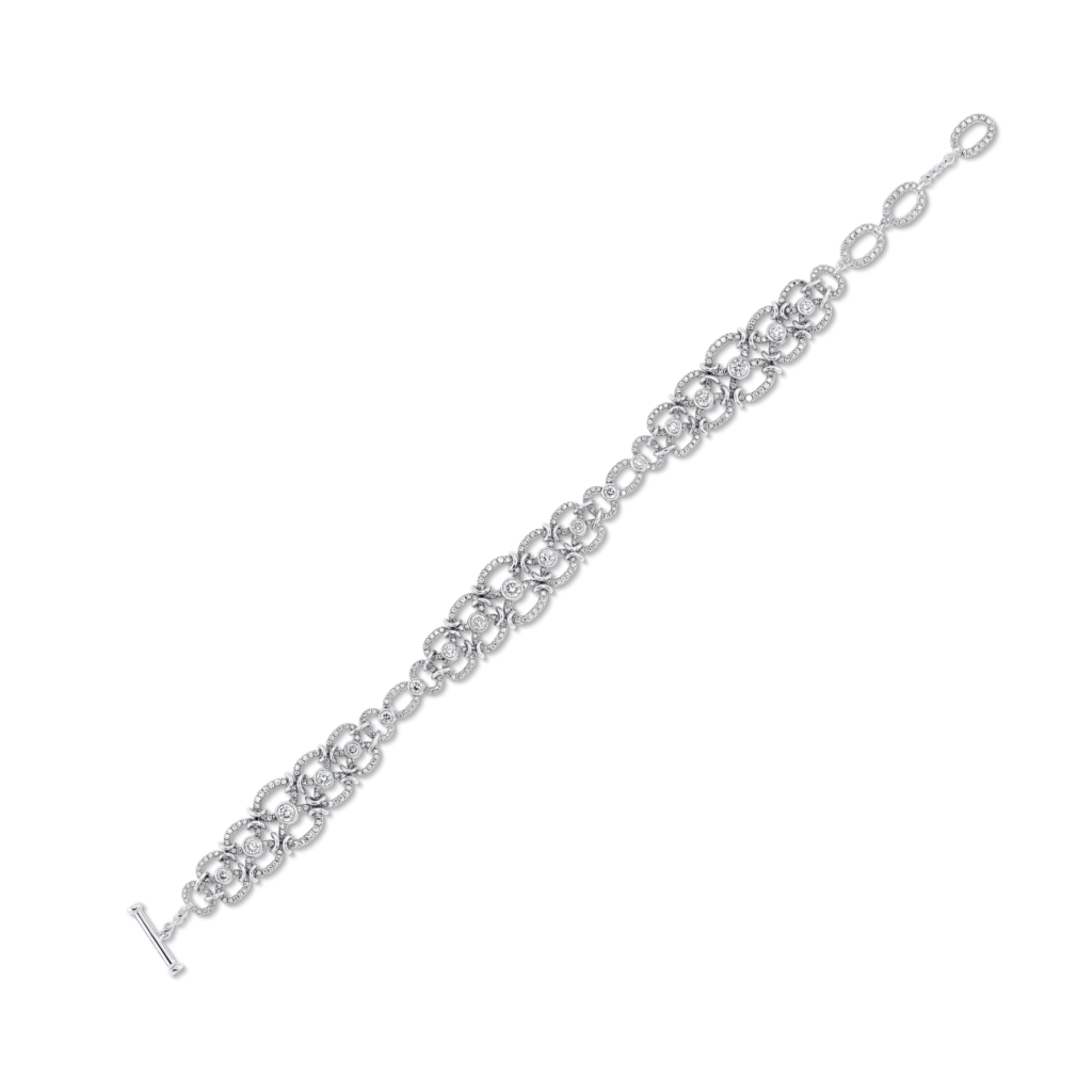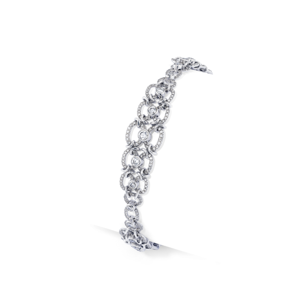 Bracelet Heritage composé de diamants blancs ronds et micro-serti de diamants sur chaine en or blanc, prix sur demande