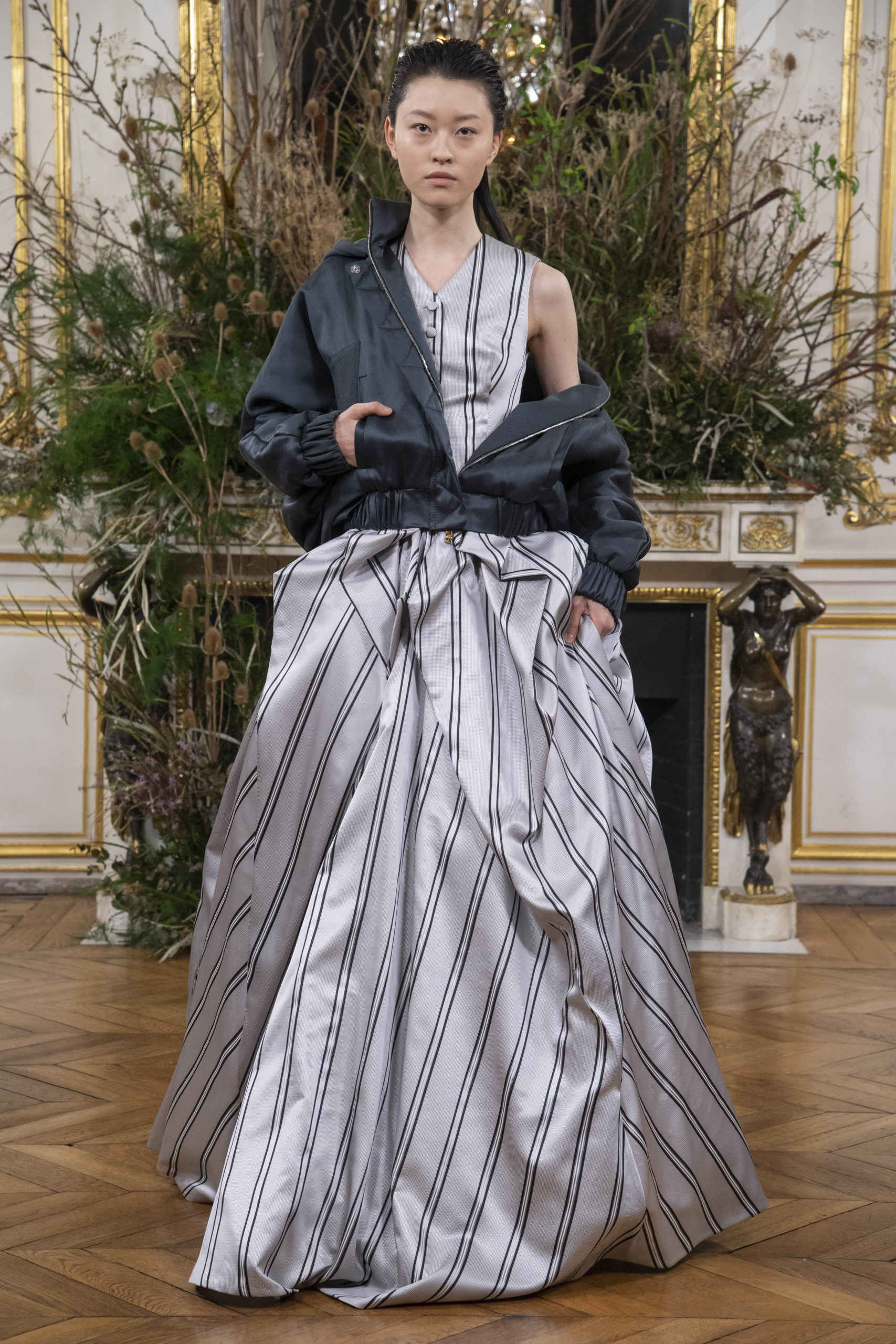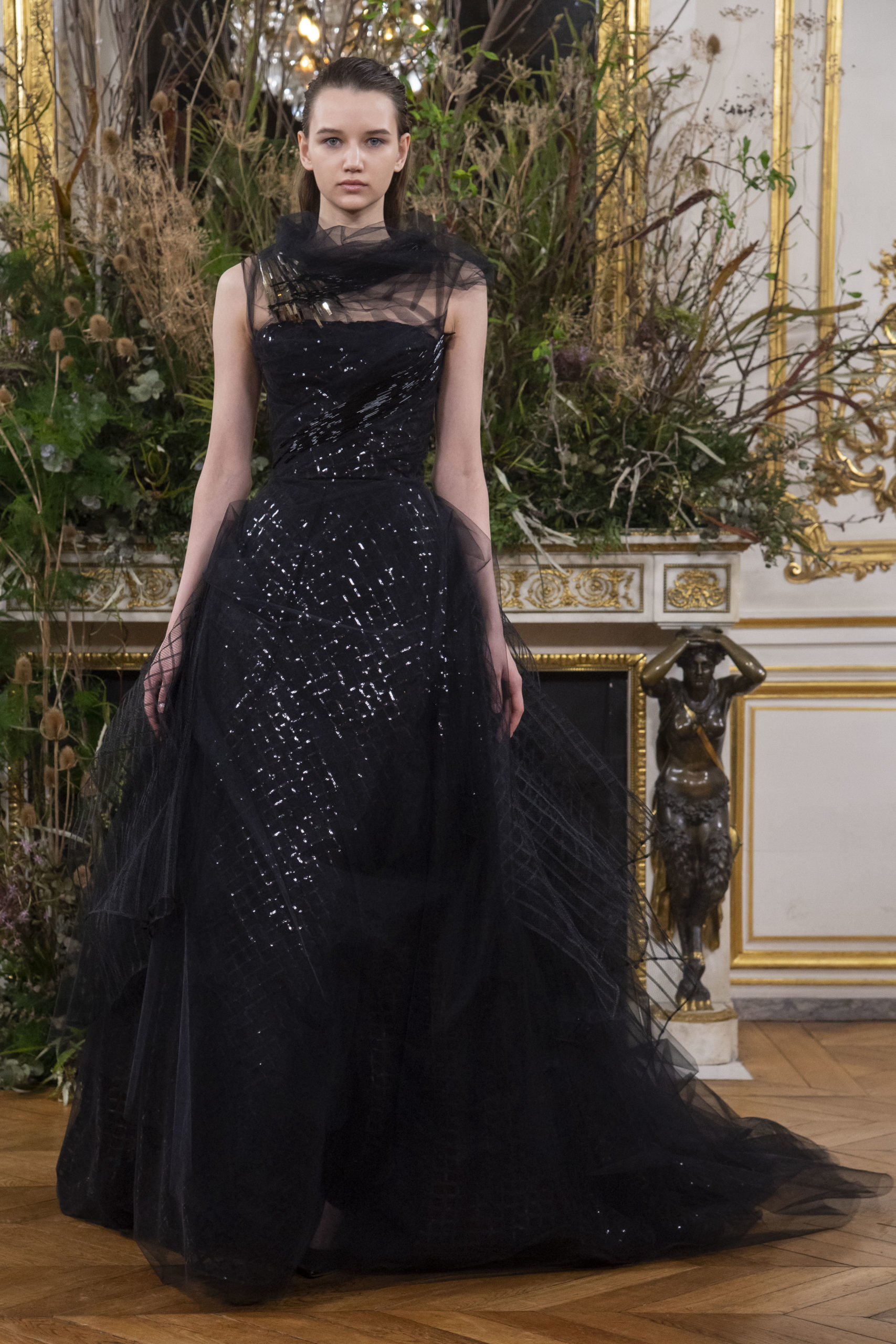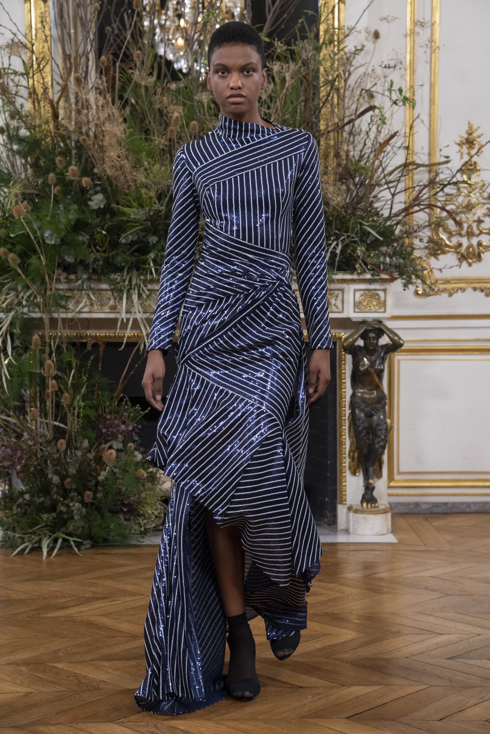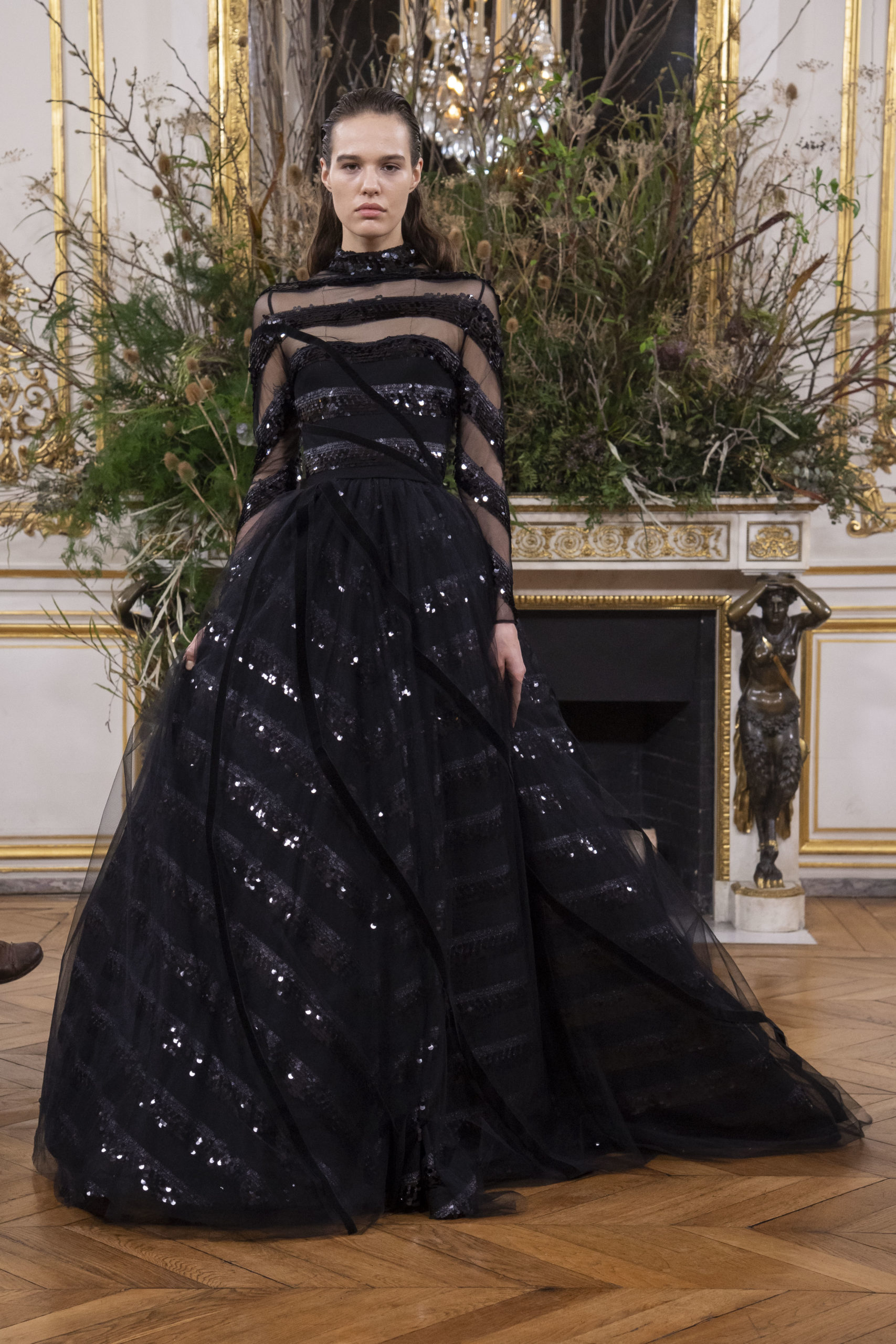 - Model wears an outfit as part of the women ready-to-wear autumn winter 2020 2021, women fashion week, Paris, FRA, from the house of Valentin Yudashkin