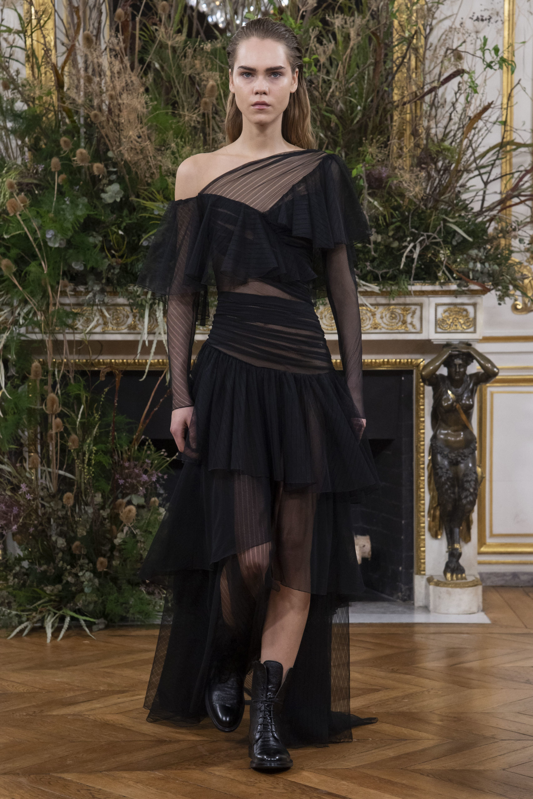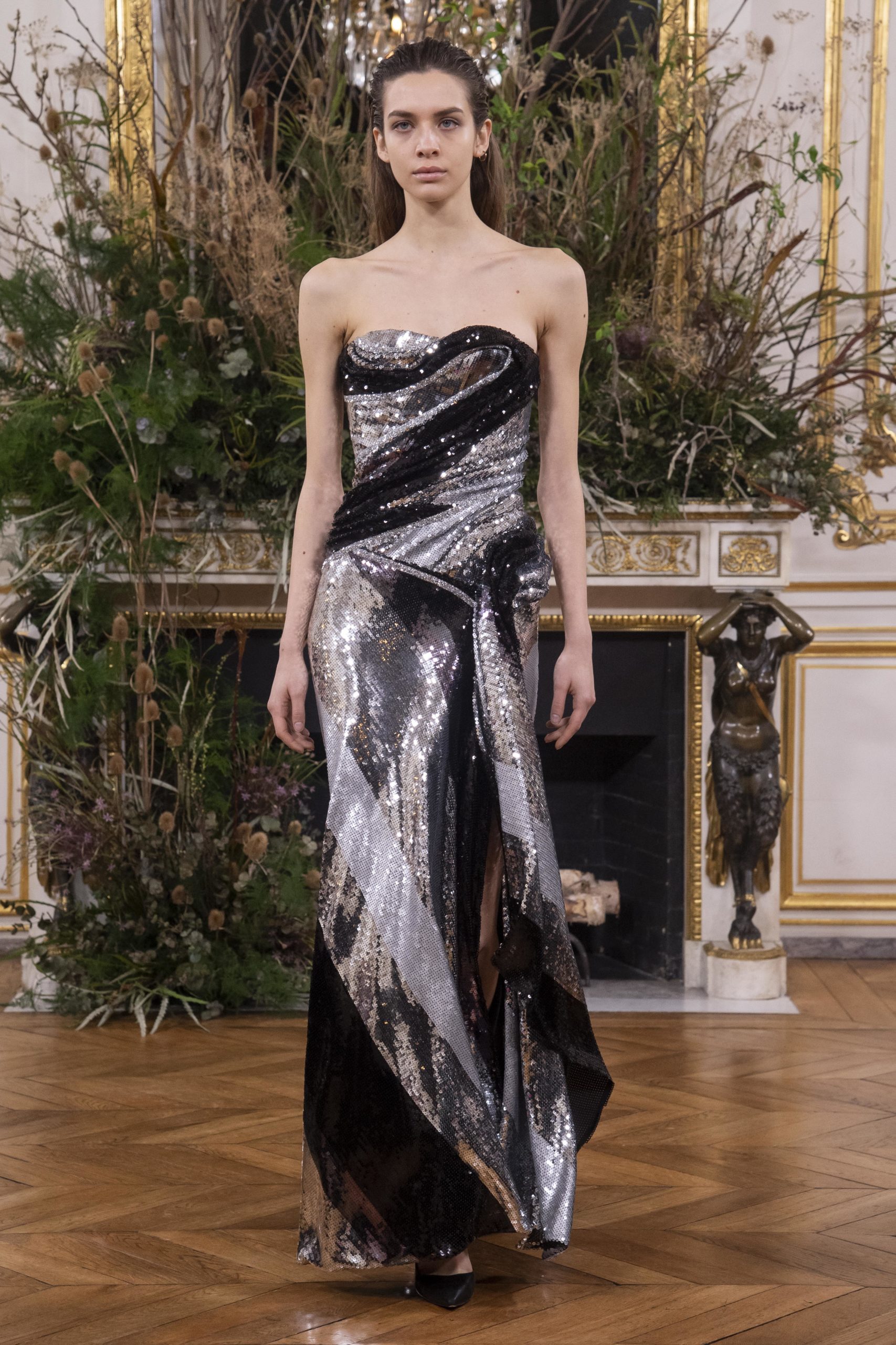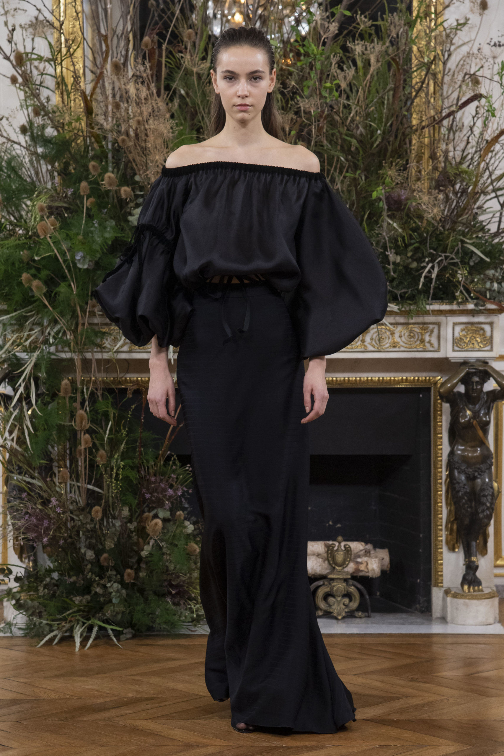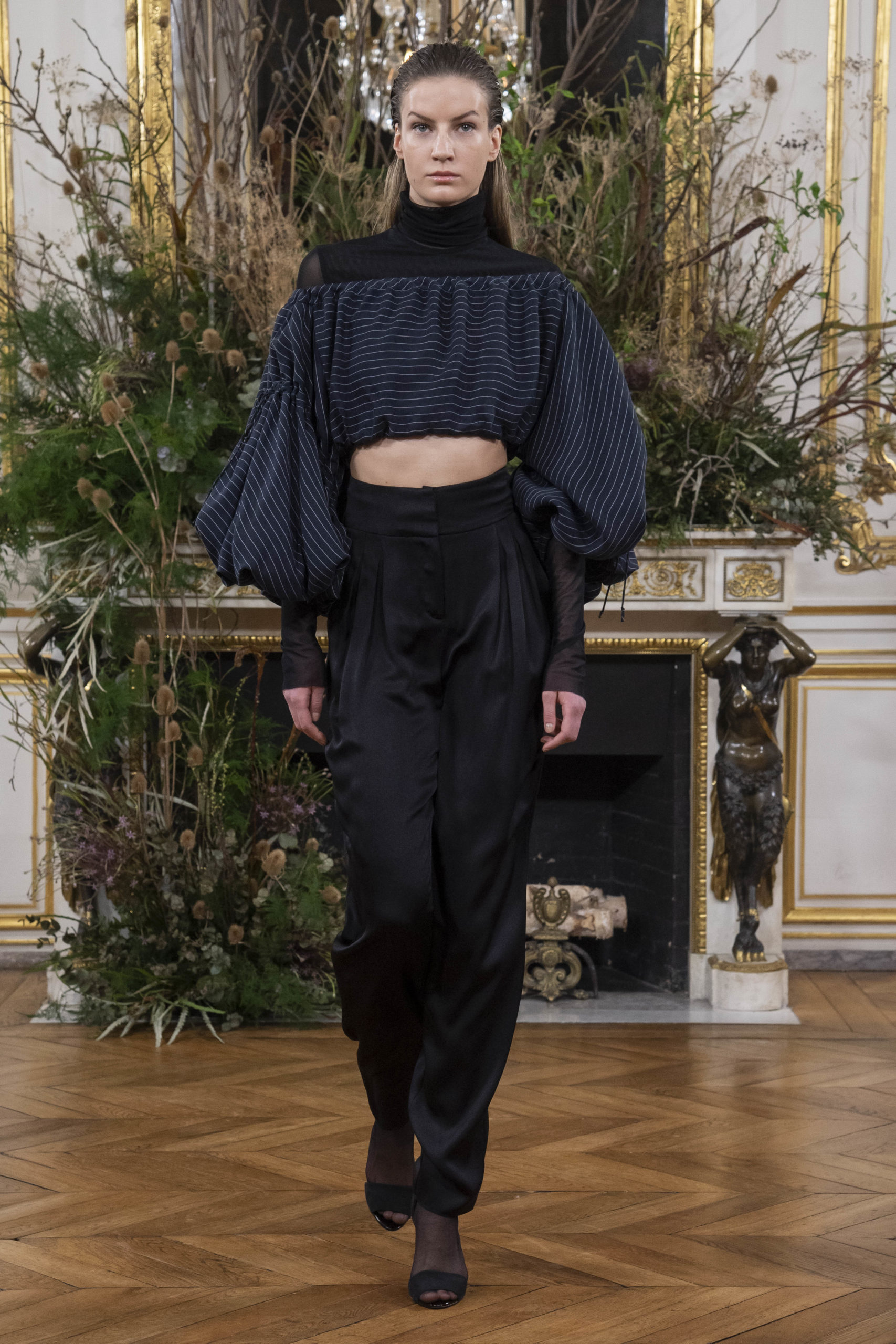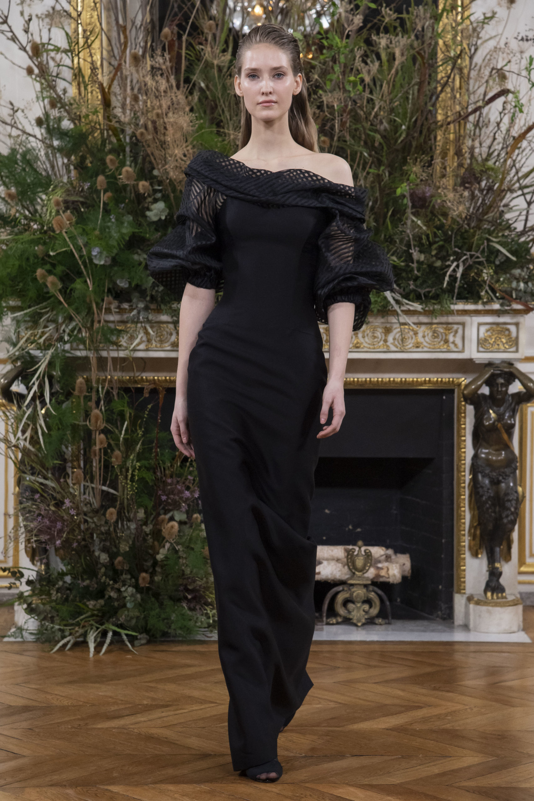 - Model wears an outfit as part of the women ready-to-wear autumn winter 2020 2021, women fashion week, Paris, FRA, from the house of Valentin Yudashkin