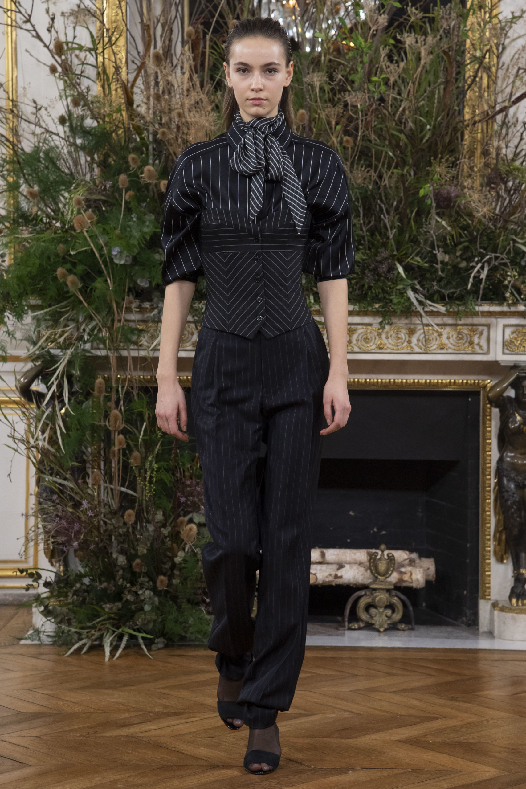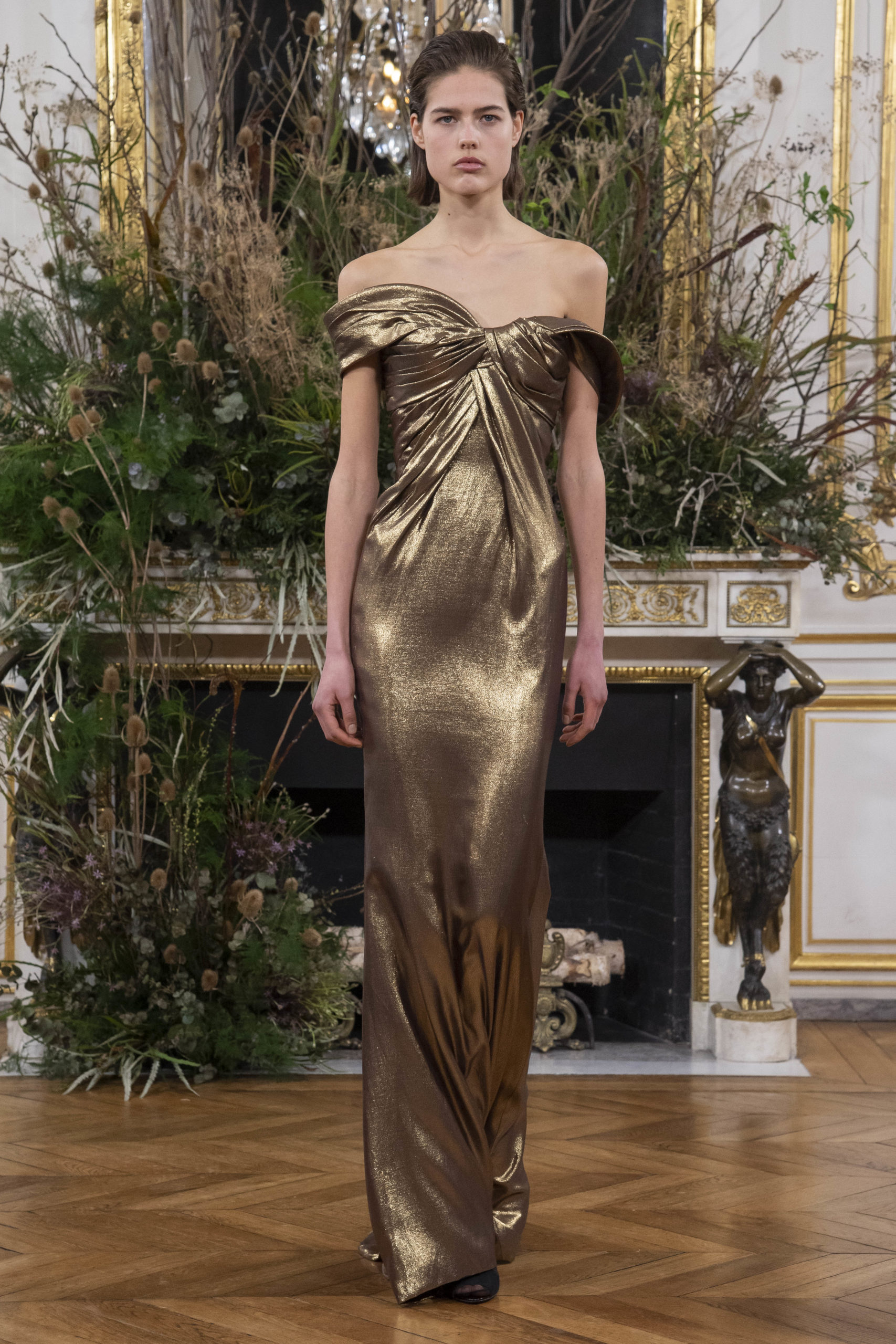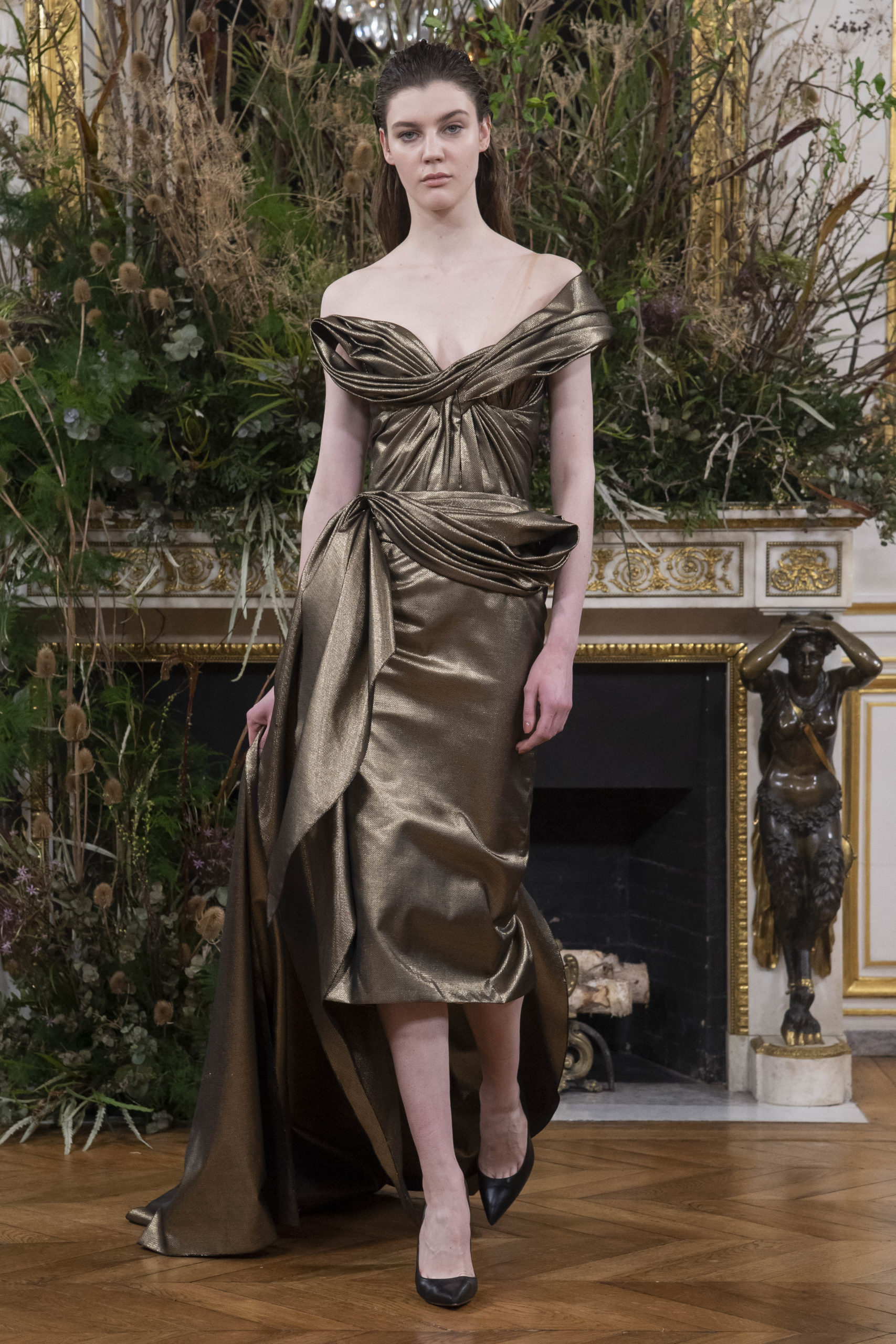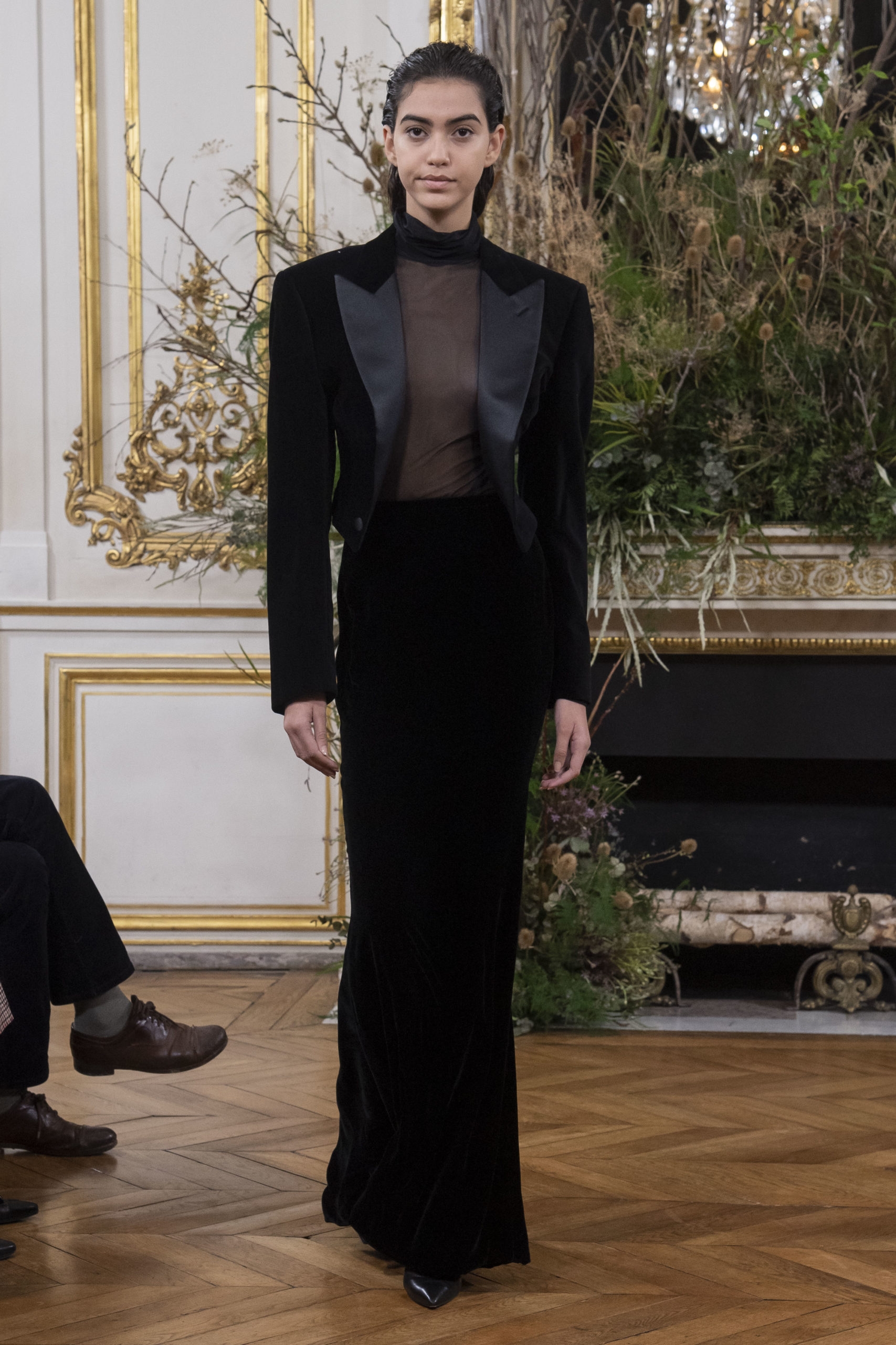 - Model wears an outfit as part of the women ready-to-wear autumn winter 2020 2021, women fashion week, Paris, FRA, from the house of Valentin Yudashkin