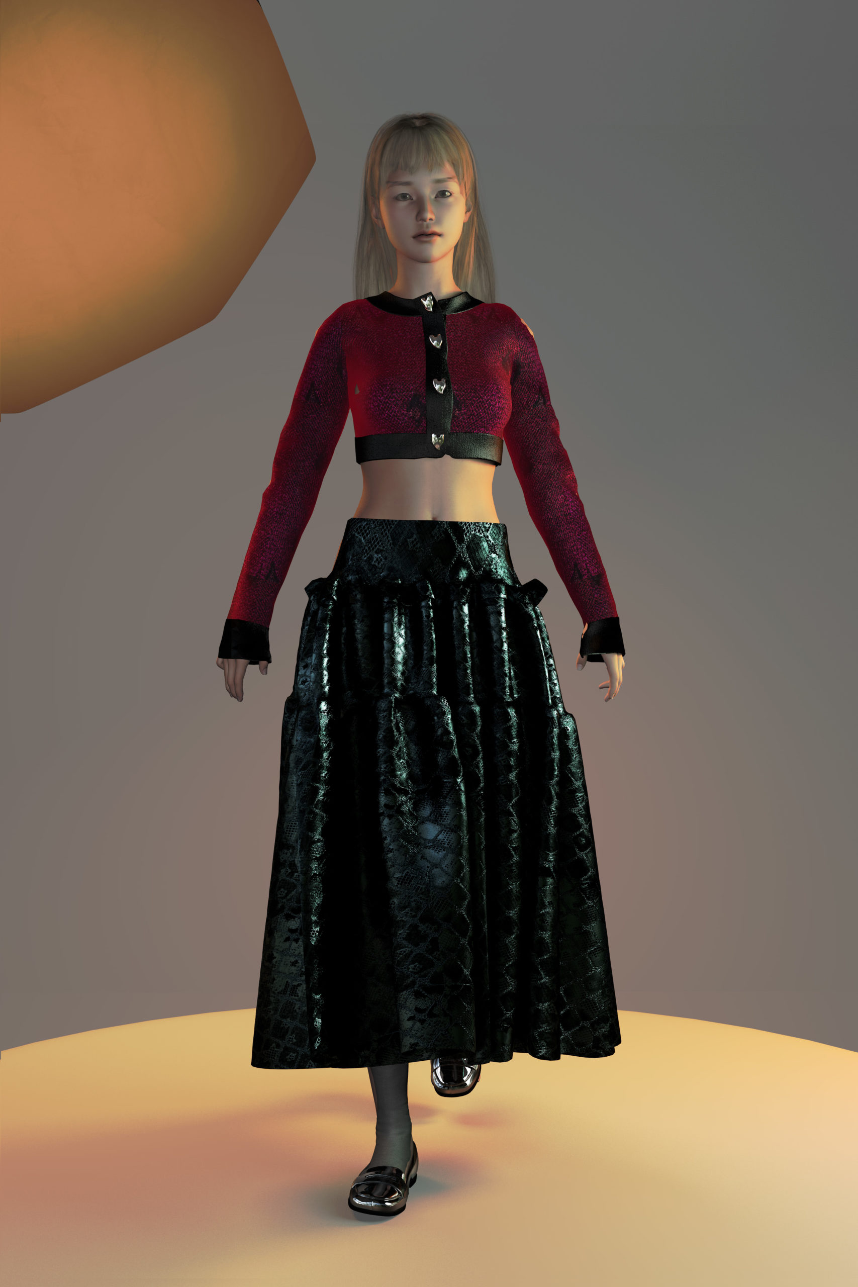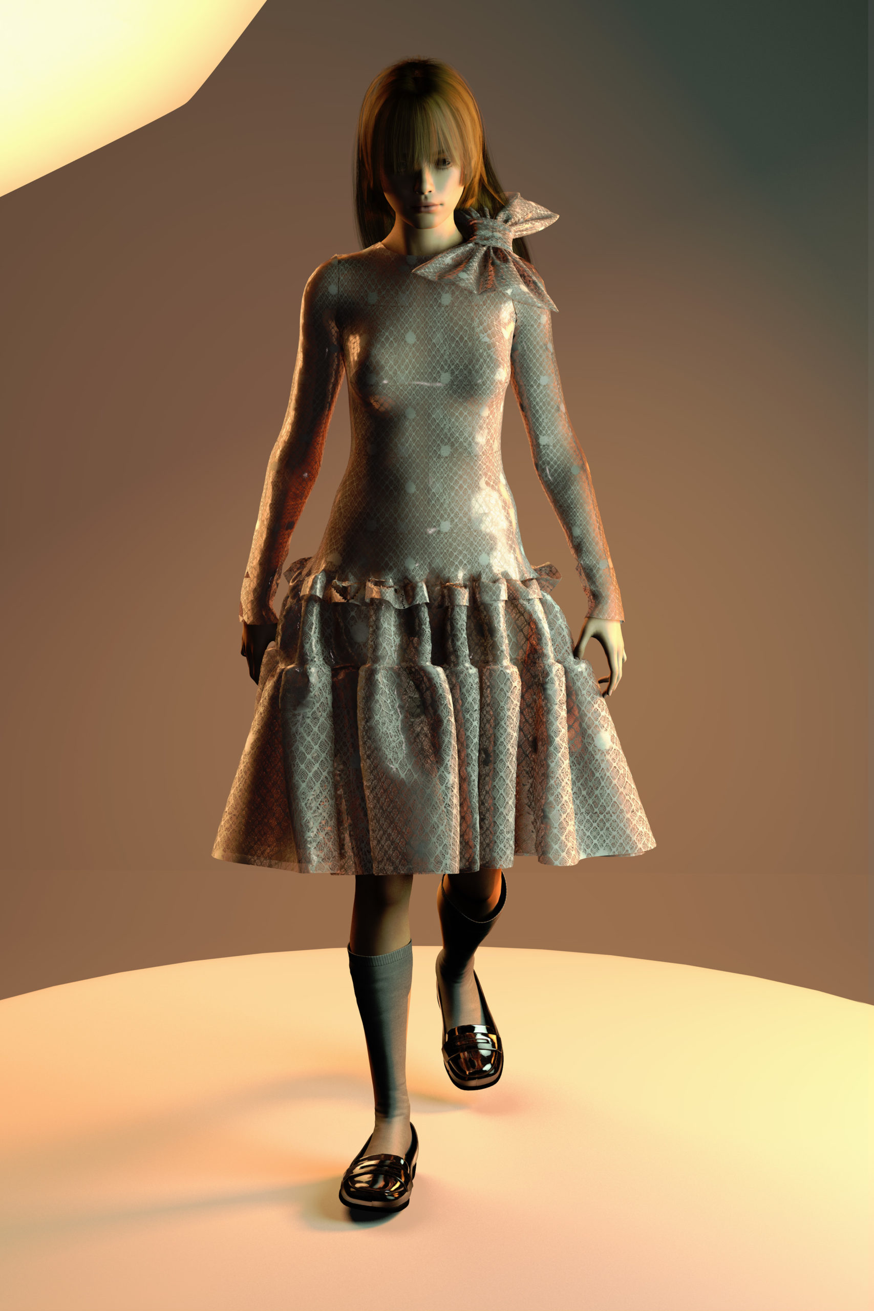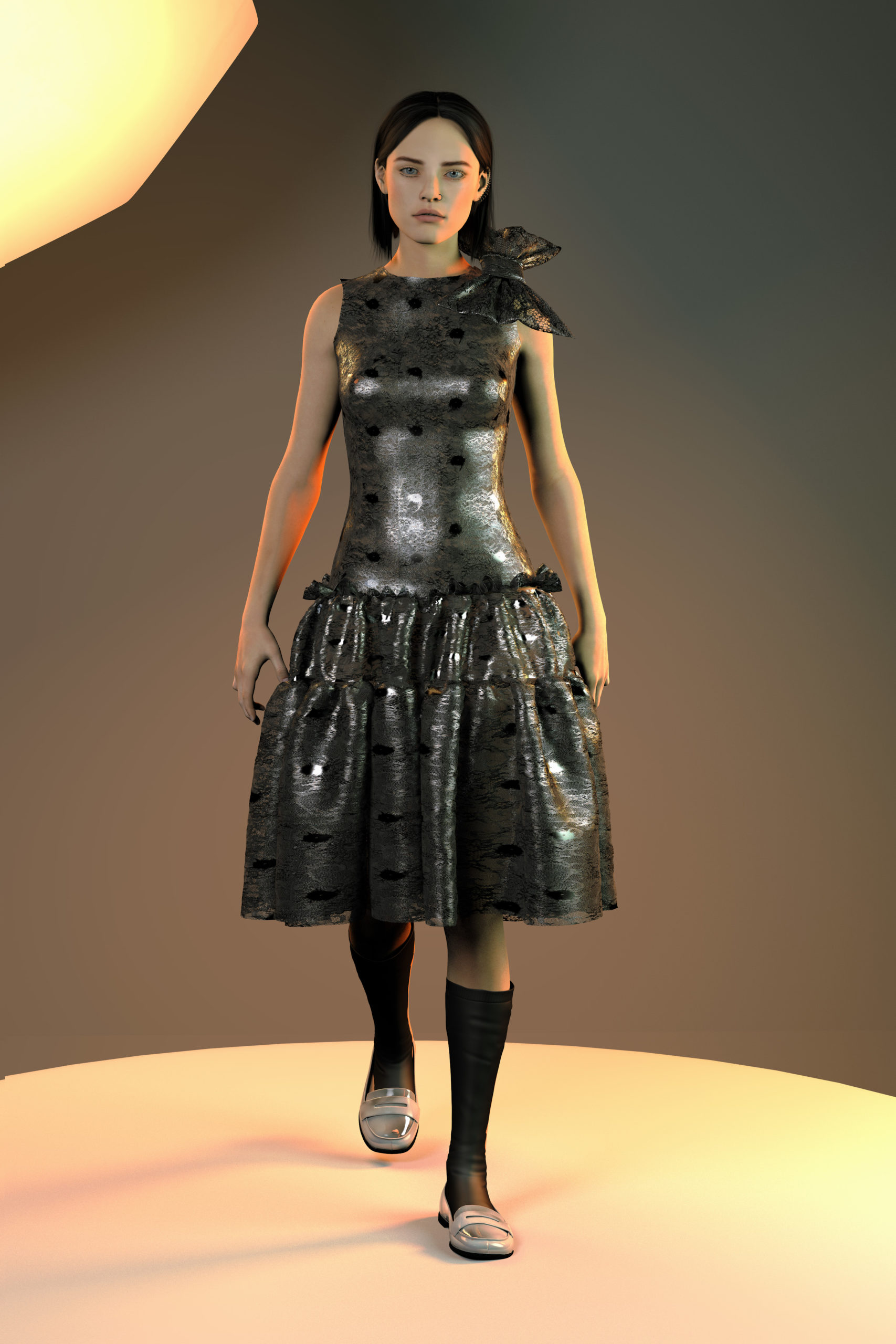 « Les blazers à double boutonnage en dentelle métallisé, étaient les incontournables de ce défilé. Non seulement parce qu’ils peuvent être adaptés à différents styles, mais aussi parce qu »ils favorisent une approche plus jeune des créations d’Anaïs Mak. Ces nouvelles jupes en tulles se parent de touches de brillance, de même que les cardigans en maille et les hauts courts qui donnent un effet « kirakira » (célèbre filtre Instagram transformant ces utilisateurs en princesse aux contours pailletés). VOGUE.COM, Amy Verner