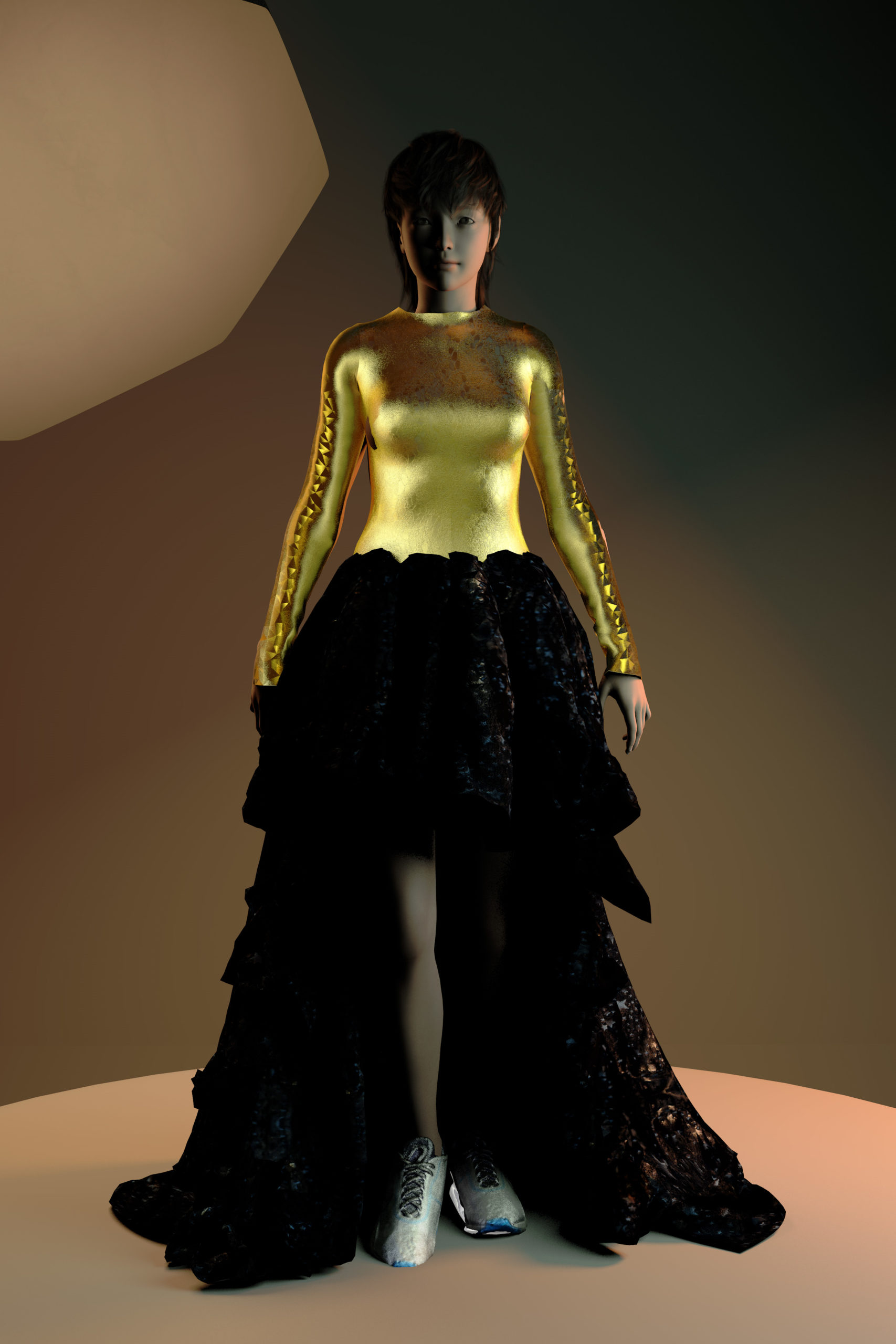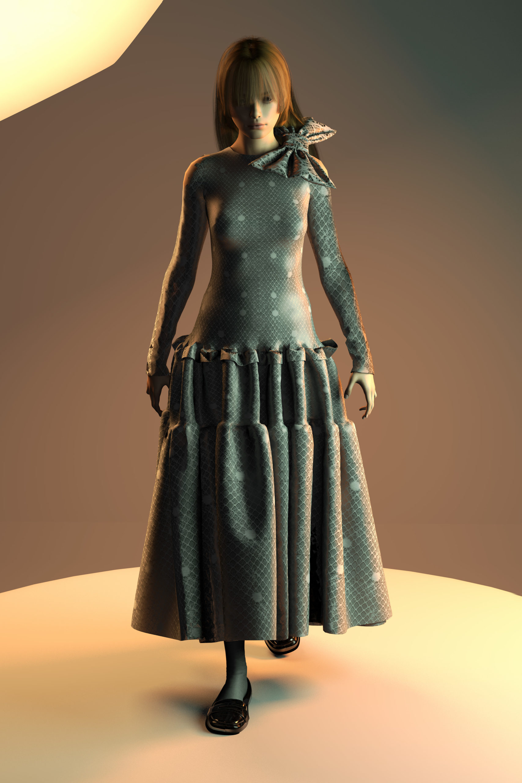« D’abord associées à un blouson lamé couleur bonbon acidulé, suivi d’un ensemble en fil de lurex et d’un blazer moiré en argent, les créations ont réussi à évoquer avec modernités les peintures de ballerines de Degas. Fidèle à son esthétique si reconnaissable, Jourden a parsemé la collection de symboles de la féminité traditionnelle, guindée et convenable, comme par exemple les chignons serrés que les mannequins arboraient. » NOWFASHION, Alice Pfeiffer