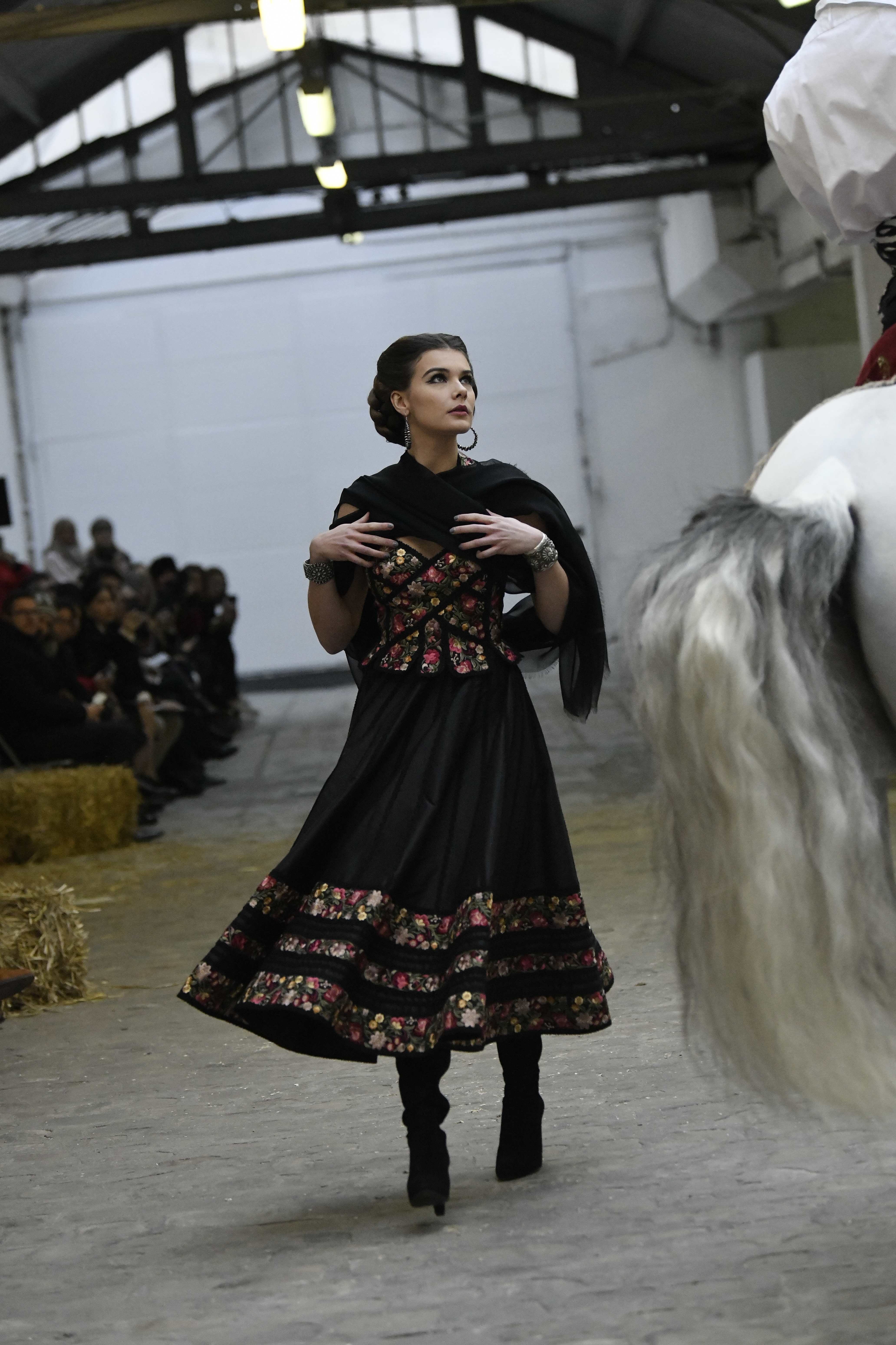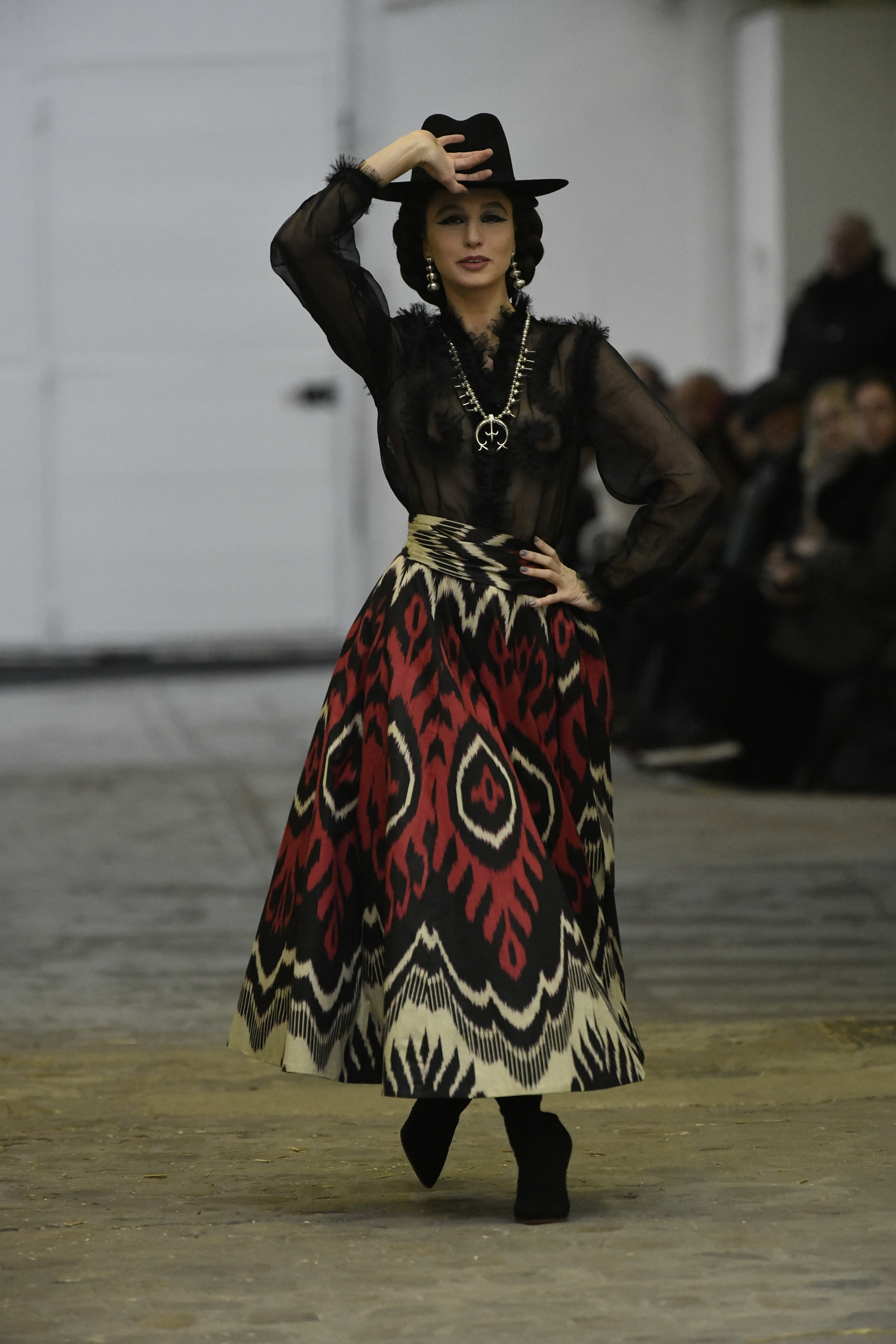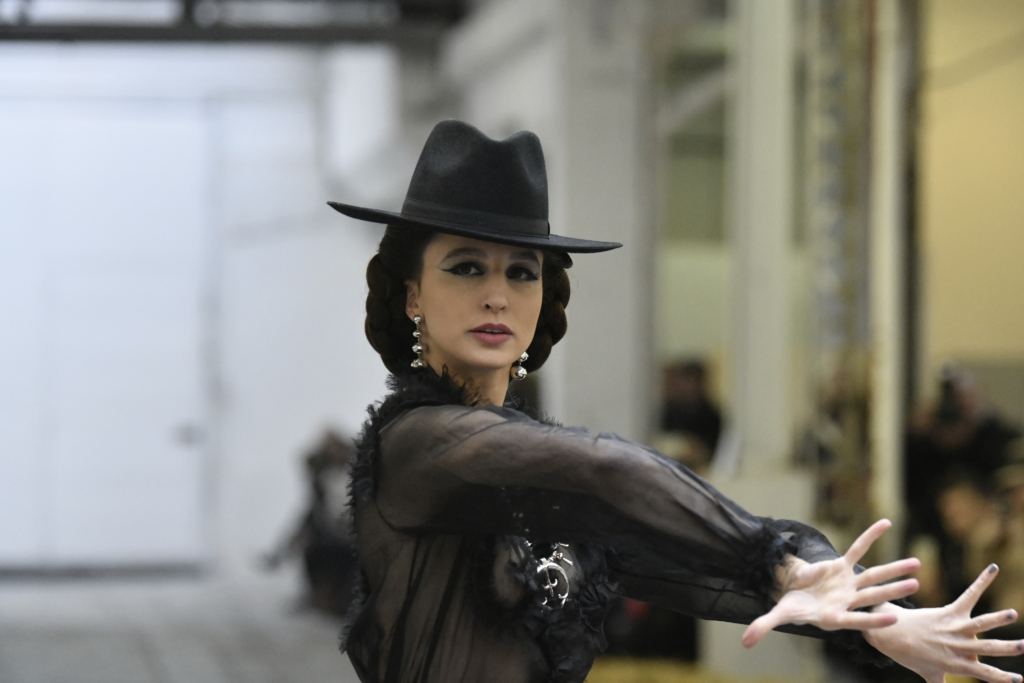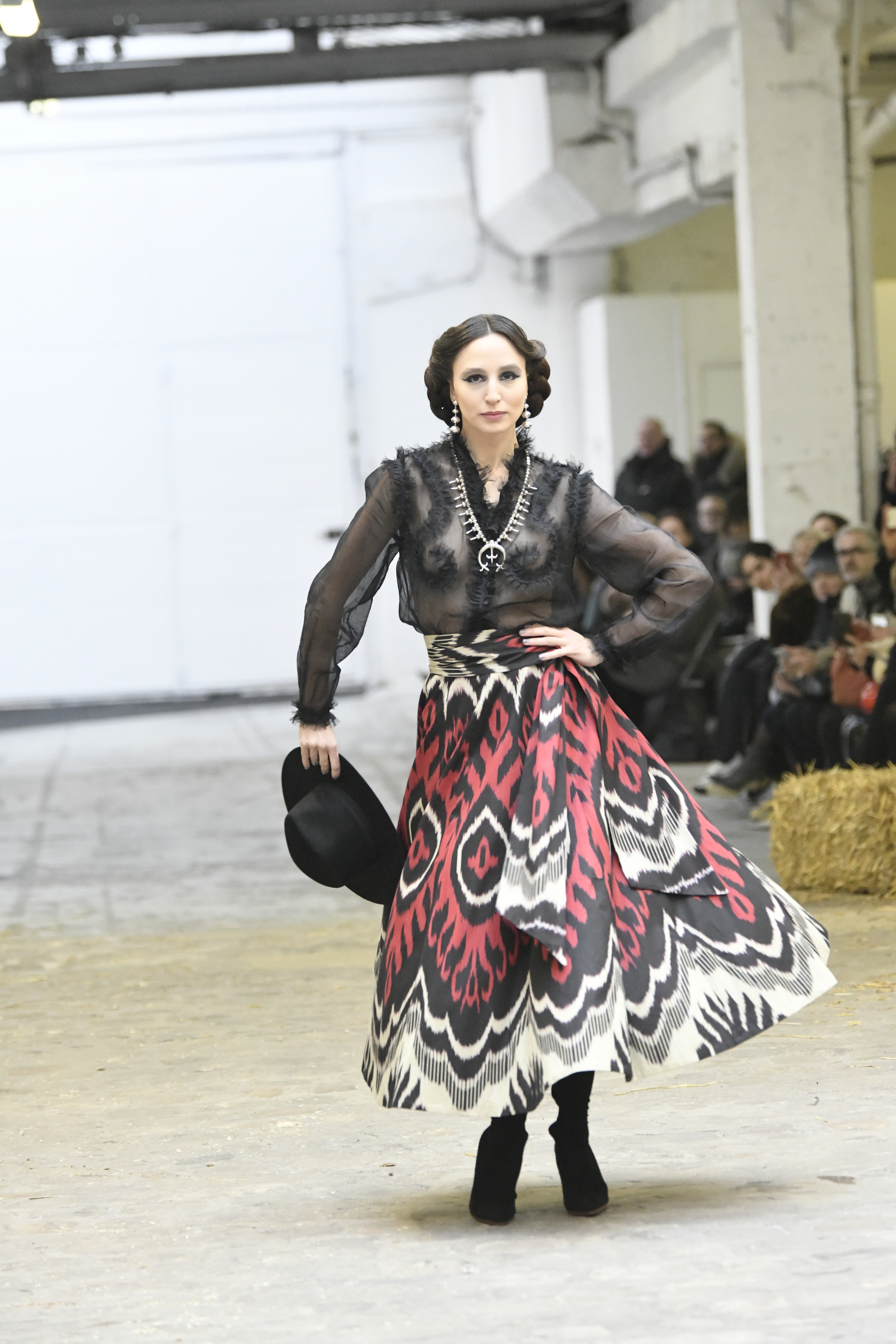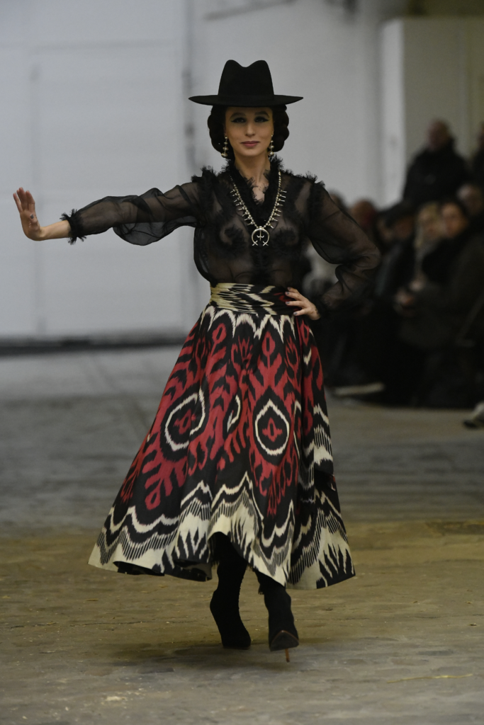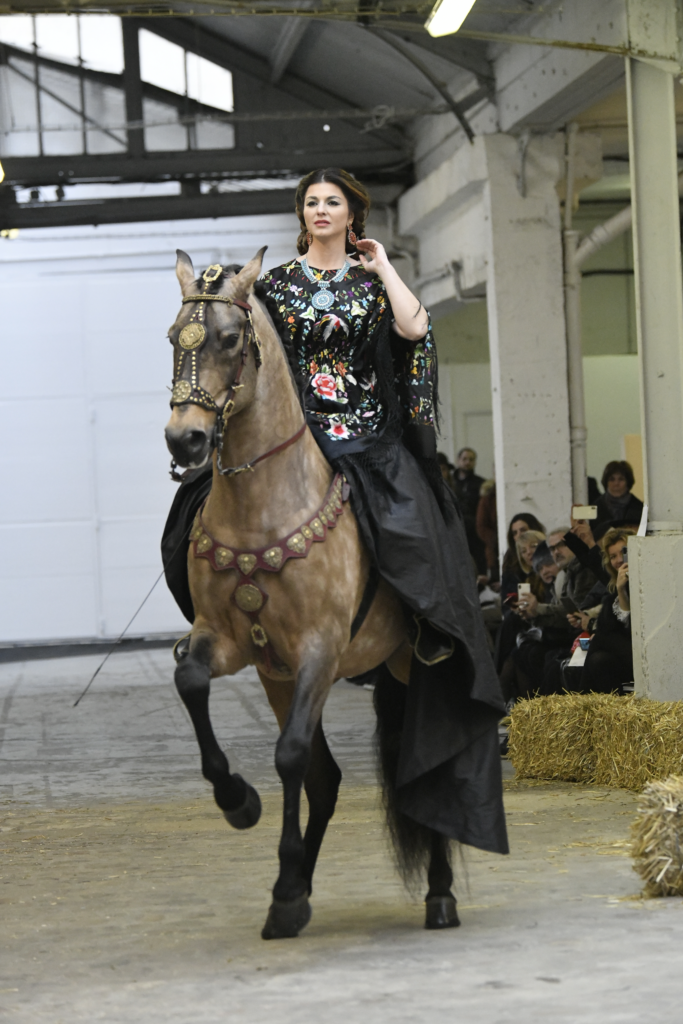 Plus connue sous le nom de Maria Felix, La Doña est l’une des figures centrales de l’âge d’or du cinéma mexicain. Maria Felix est née à Alamos, dans l’état de Sonora, au Nord du Mexique, d’un Indien Yaqui et d’une descendante d’Espagnol. Son père est propriétaire d’un modeste ranch, d’où sont amour pour les chevaux. Petite fille, elle préfère grimper aux arbres et rivaliser avec les garçons, plutôt que d’apprendre la broderie et les prières. A 16 ans, elle est élue Reine de Beauté de sa province et échappe à l’emprise parternelle en épousant Enrique Alvarez qui passe par là. Elle le quittera, non sans qu’il lui ait fait le plus beau cadeau du monde. Enrique Alvarez Felix sera l’ enfant unique de La Doña. Il deviendra, lui-même, acteur et ne cessera de collectionner photos et souvenirs de sa mère. Augustin Lara, “l’homme à la voix d’or”, grand mythe de la chanson latino-americaine, est son deuxième époux. Il composera, en son honneur, en 1947, “Maria Bonita”, qui deviendra un autre de ses surnoms. Jorge Negrete, gloire de la chanson et du cinéma mexicain, devient son troisième mari, en 1952. Ils s’étaient rencontrés dix ans auparavant, sur le tournage “Le Rocher des âmes perdues”, non sans heurt ! Car, entre temps, Maria Felix est tout simplement devenue actrice. Jorge Negrete, que l’on dit aussi laid que séduisant, a fait tapisser la chambre de leur rendez-vous de pétales de roses. Elle épouse, après, Alex Berger, un financier français qui lui offrira ses chevaux de course, ses bijoux. Elle a aussi vécu un amour passionné avec Suzanne Baulé, dite Frede, qui dirigeait alors “Le Carrolls”, un cabaret de la rue de Ponthieu. Leur idylle s’achèvera en procés. Elle passera la fin de sa vie en compagnie du peintre Antoine Tzapoff, entre Paris et Mexico. Elle sera la vedette de 47 films, elle tourne au Mexique, en Argentine mais aussi en France et en Italie. Elle aura pour partenaires européens : Jean Gabin dans “French Cancan” de Jean Renoir, Yves Montand dans “Les héros sont fatigués”, Gérard Philippe dans “La fièvre monte à El Pao” de Buñuel, Vittorio Gassman dans “La courrone noire” de Luis Saslavsky, sur une histoire de Jean Cocteau. Les films mexicains dont elle est la vedette s’intitulent: “La Devora dora”, “La Mujer de todos”, “La Mujer sin alma”, “Doña diabla”, “La Bandida”, “La Belle Otero”, “La Pasión desnuda”. Dans ses films, elle a toujours représenté les femmes fortes, fières, hautaines (Ha ! ce sourcil gauche !). Lors d’une interview, elle déclare : “On admirait ma beauté et mon intelligence, je n’étais qu’une femme avec un coeur d’homme. Une guerrière.” D’où un autre de ses surnoms : La Caballera. Avec elle, la réalité et la fiction se confondent. Elle incarne la passion, l’érotisme, un magnétisme certain. Pour parfaire le mythe, La Doña s’est éteinte dans sa maison de Polanco, à Mexico, en plein soleil, le jour de son anniversaire. Elle avait 88 ans. Avec cette histoire, il faut espérer le retour de ces femmes que l’on voit, sur lesquelles l’on se retourne, qui vous hypnotisent. Avec elle, c’est aussi le retour de la fameuse expression “qui peut le plus, peut le moins”. On l’a vue porter des vêtements folk mais aussi de la Couture, toujours chapeautée et couverte de bijoux. Elle a créé sa propre mode avec une liberté totale et un naturel désarmant. N’est-ce pas cela l’élégance ? J’aurais aimé qu’elle s’approprie certaines de nos créations avec sa propre imagination. N’est-ce pas cela la Haute Couture ?