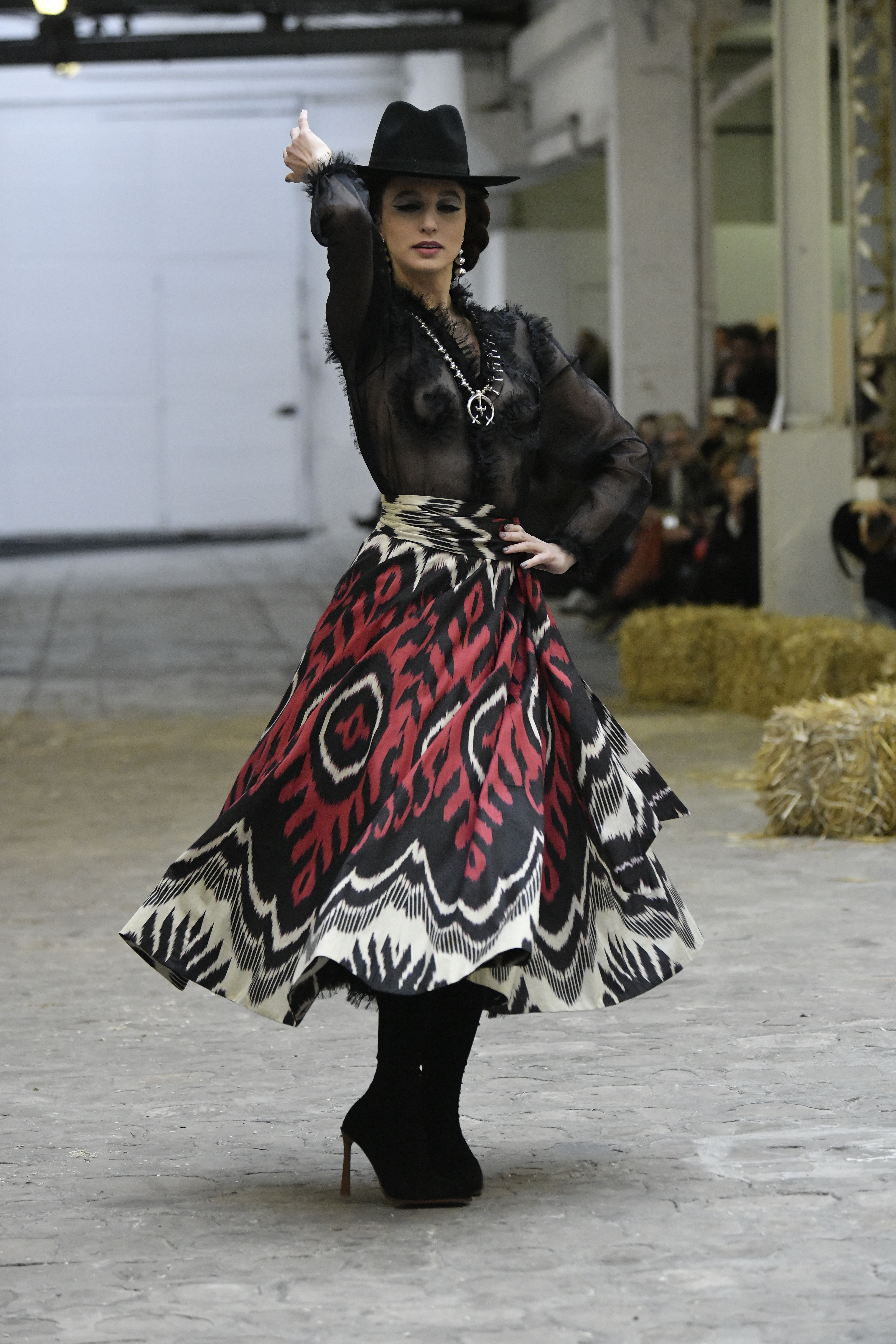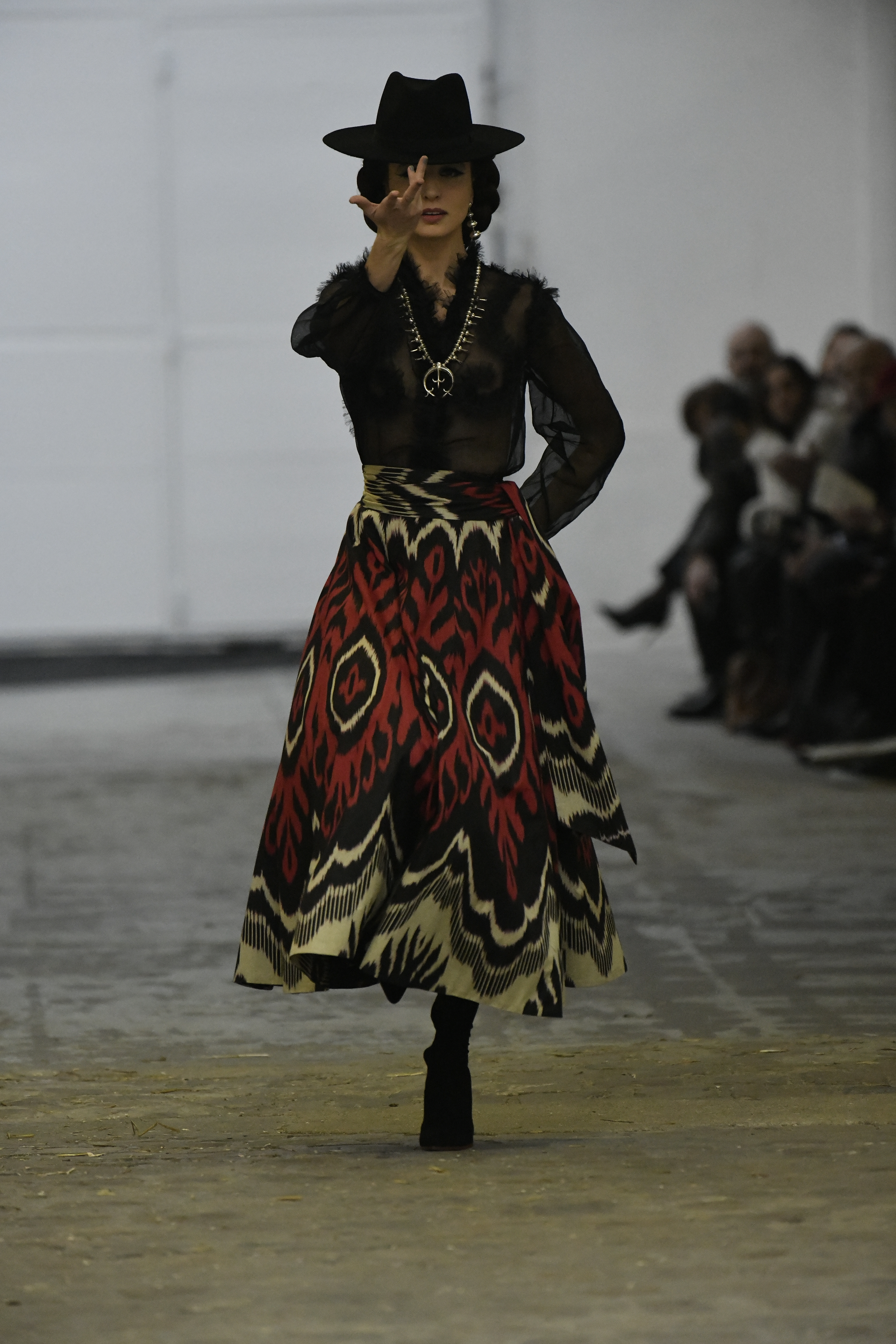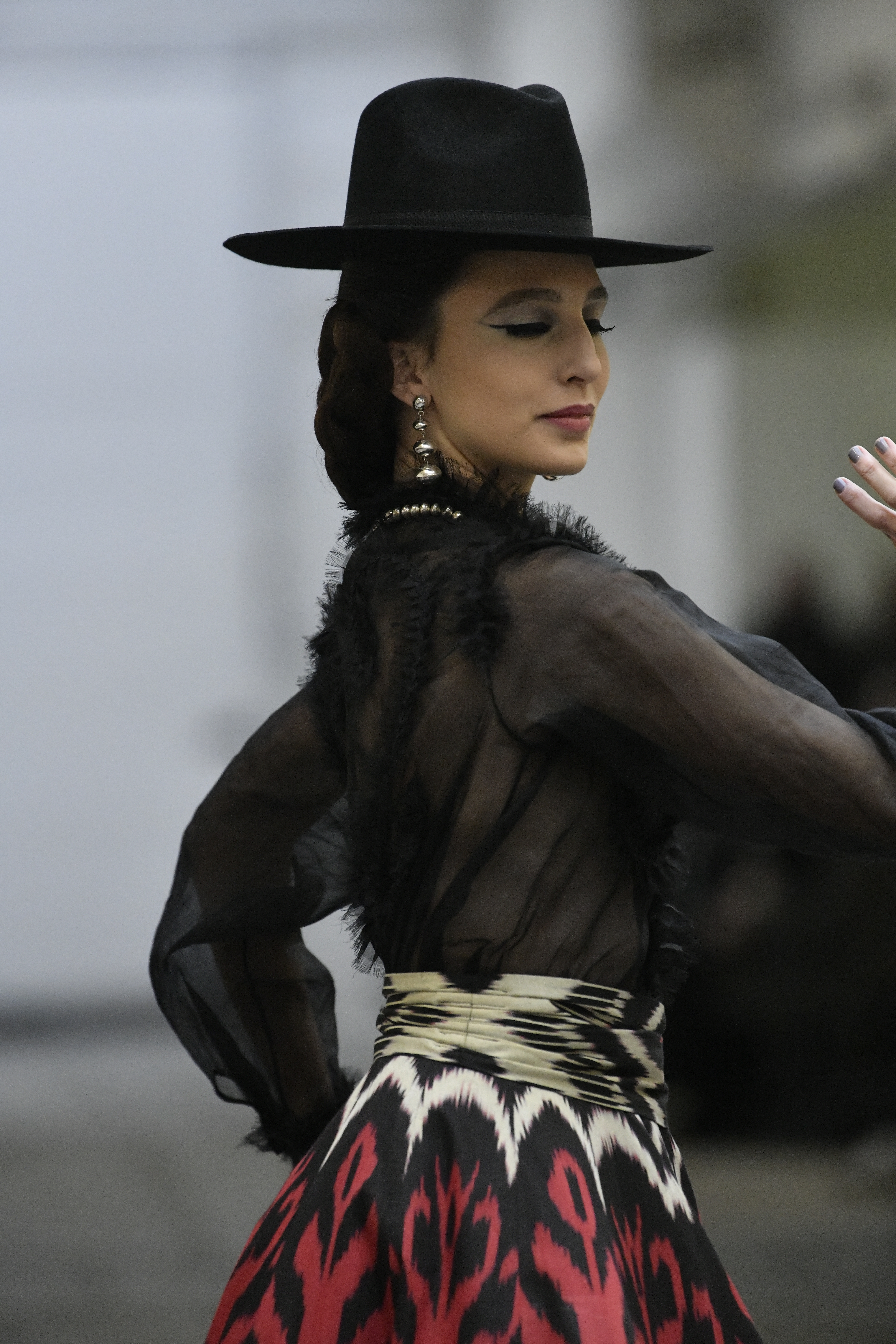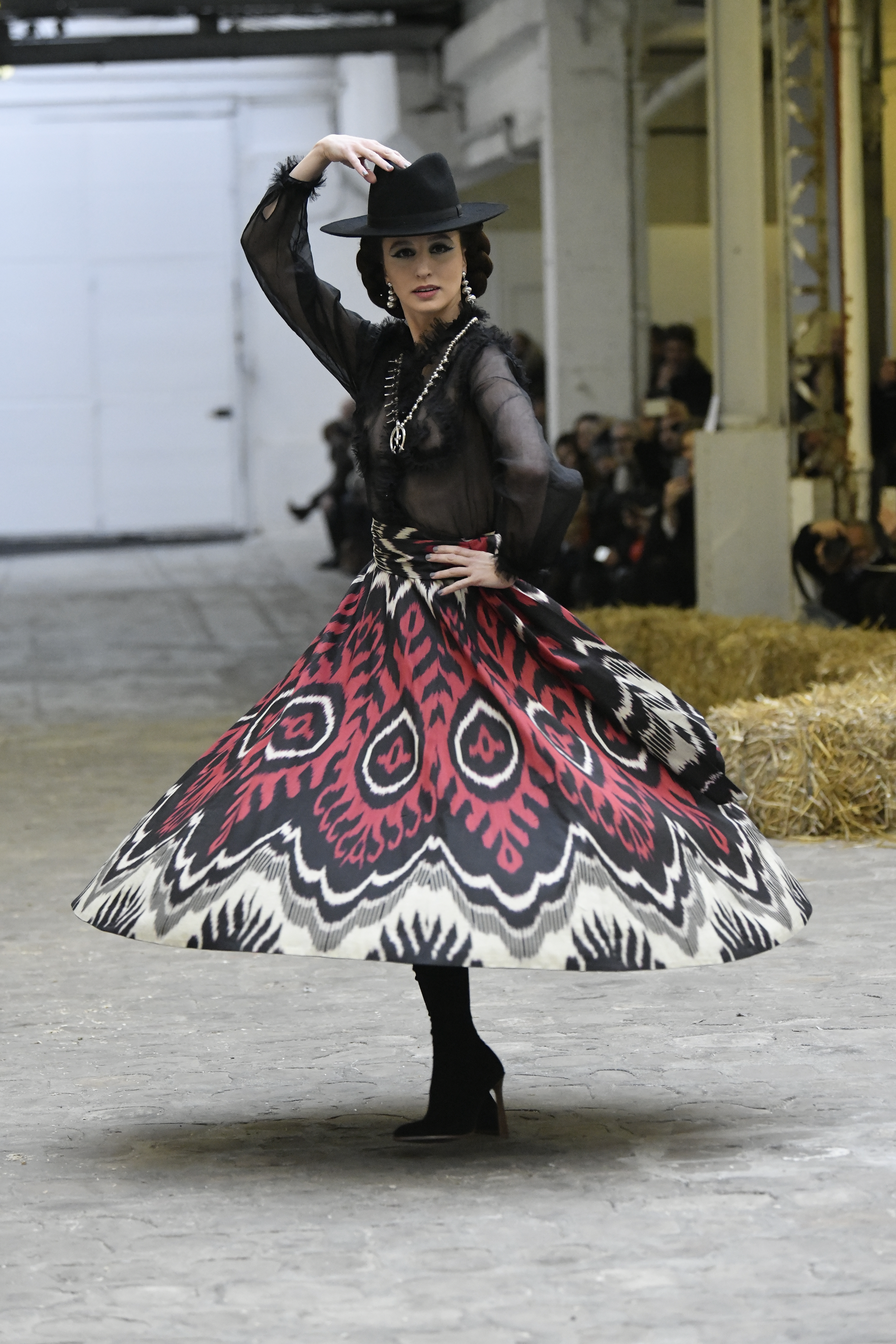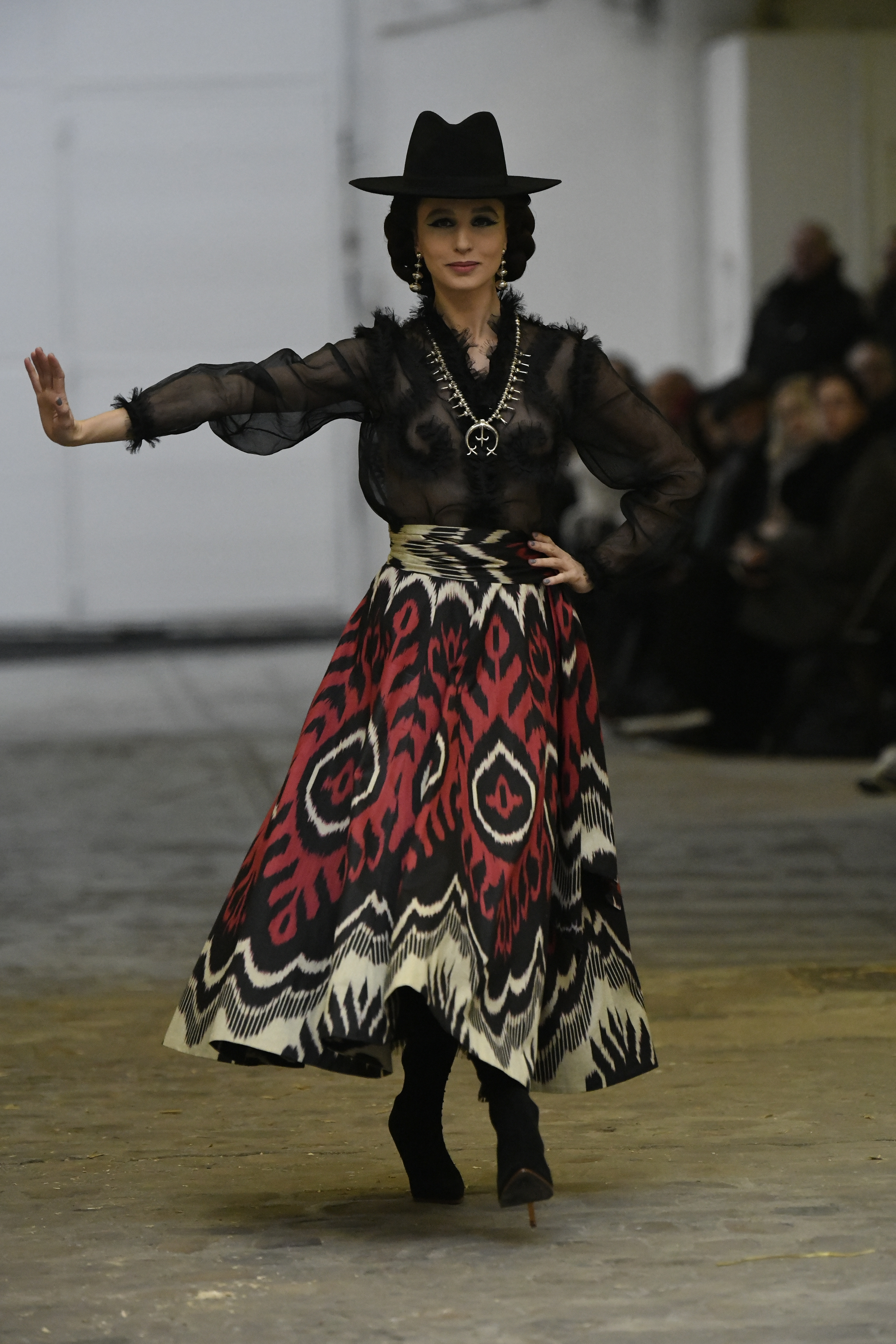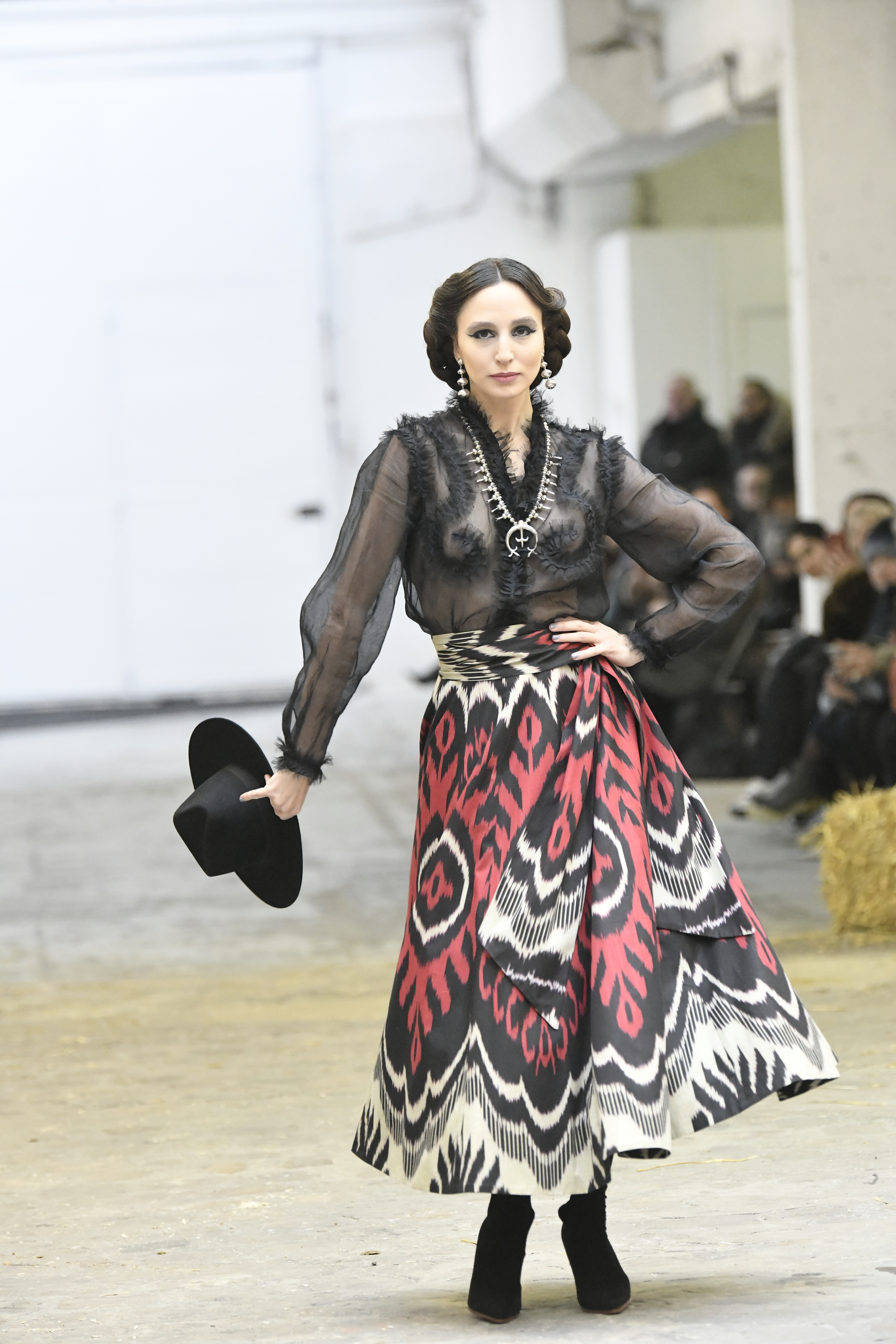 Plus connue sous le nom de Maria Felix, La Doña est l’une des figures centrales de l’âge d’or du cinéma mexicain. Maria Felix est née à Alamos, dans l’état de Sonora, au Nord du Mexique, d’un Indien Yaqui et d’une descendante d’Espagnol. Son père est propriétaire d’un modeste ranch, d’où sont amour pour les chevaux. Petite fille, elle préfère grimper aux arbres et rivaliser avec les garçons, plutôt que d’apprendre la broderie et les prières. A 16 ans, elle est élue Reine de Beauté de sa province et échappe à l’emprise parternelle en épousant Enrique Alvarez qui passe par là. Elle le quittera, non sans qu’il lui ait fait le plus beau cadeau du monde. Enrique Alvarez Felix sera l’ enfant unique de La Doña. Il deviendra, lui-même, acteur et ne cessera de collectionner photos et souvenirs de sa mère. Augustin Lara, “l’homme à la voix d’or”, grand mythe de la chanson latino-americaine, est son deuxième époux. Il composera, en son honneur, en 1947, “Maria Bonita”, qui deviendra un autre de ses surnoms. Jorge Negrete, gloire de la chanson et du cinéma mexicain, devient son troisième mari, en 1952. Ils s’étaient rencontrés dix ans auparavant, sur le tournage “Le Rocher des âmes perdues”, non sans heurt ! Car, entre temps, Maria Felix est tout simplement devenue actrice. Jorge Negrete, que l’on dit aussi laid que séduisant, a fait tapisser la chambre de leur rendez-vous de pétales de roses. Elle épouse, après, Alex Berger, un financier français qui lui offrira ses chevaux de course, ses bijoux. Elle a aussi vécu un amour passionné avec Suzanne Baulé, dite Frede, qui dirigeait alors “Le Carrolls”, un cabaret de la rue de Ponthieu. Leur idylle s’achèvera en procés. Elle passera la fin de sa vie en compagnie du peintre Antoine Tzapoff, entre Paris et Mexico. Elle sera la vedette de 47 films, elle tourne au Mexique, en Argentine mais aussi en France et en Italie. Elle aura pour partenaires européens : Jean Gabin dans “French Cancan” de Jean Renoir, Yves Montand dans “Les héros sont fatigués”, Gérard Philippe dans “La fièvre monte à El Pao” de Buñuel, Vittorio Gassman dans “La courrone noire” de Luis Saslavsky, sur une histoire de Jean Cocteau. Les films mexicains dont elle est la vedette s’intitulent: “La Devora dora”, “La Mujer de todos”, “La Mujer sin alma”, “Doña diabla”, “La Bandida”, “La Belle Otero”, “La Pasión desnuda”. Dans ses films, elle a toujours représenté les femmes fortes, fières, hautaines (Ha ! ce sourcil gauche !). Lors d’une interview, elle déclare : “On admirait ma beauté et mon intelligence, je n’étais qu’une femme avec un coeur d’homme. Une guerrière.” D’où un autre de ses surnoms : La Caballera. Avec elle, la réalité et la fiction se confondent. Elle incarne la passion, l’érotisme, un magnétisme certain. Pour parfaire le mythe, La Doña s’est éteinte dans sa maison de Polanco, à Mexico, en plein soleil, le jour de son anniversaire. Elle avait 88 ans. Avec cette histoire, il faut espérer le retour de ces femmes que l’on voit, sur lesquelles l’on se retourne, qui vous hypnotisent. Avec elle, c’est aussi le retour de la fameuse expression “qui peut le plus, peut le moins”. On l’a vue porter des vêtements folk mais aussi de la Couture, toujours chapeautée et couverte de bijoux. Elle a créé sa propre mode avec une liberté totale et un naturel désarmant. N’est-ce pas cela l’élégance ? J’aurais aimé qu’elle s’approprie certaines de nos créations avec sa propre imagination. N’est-ce pas cela la Haute Couture ?