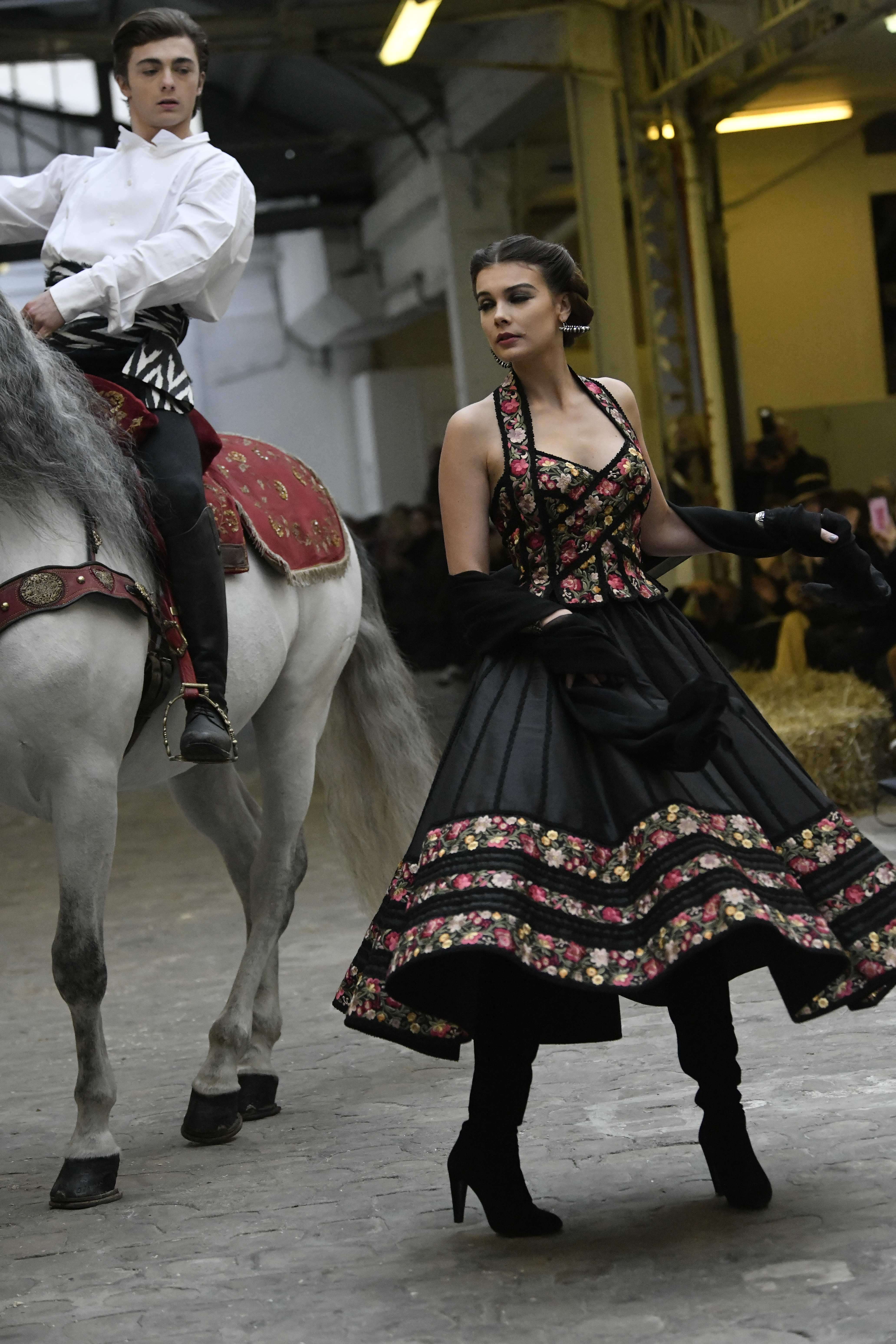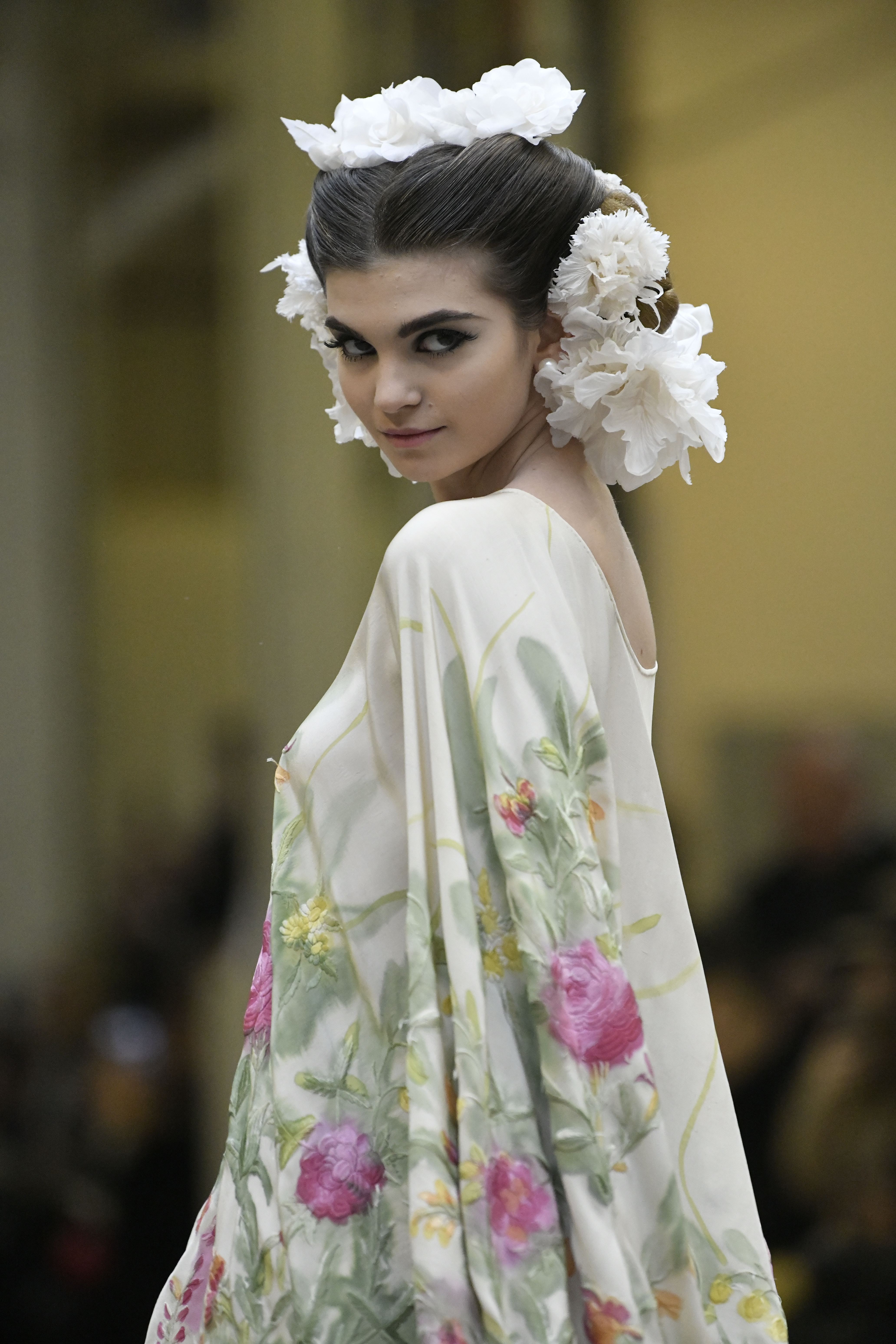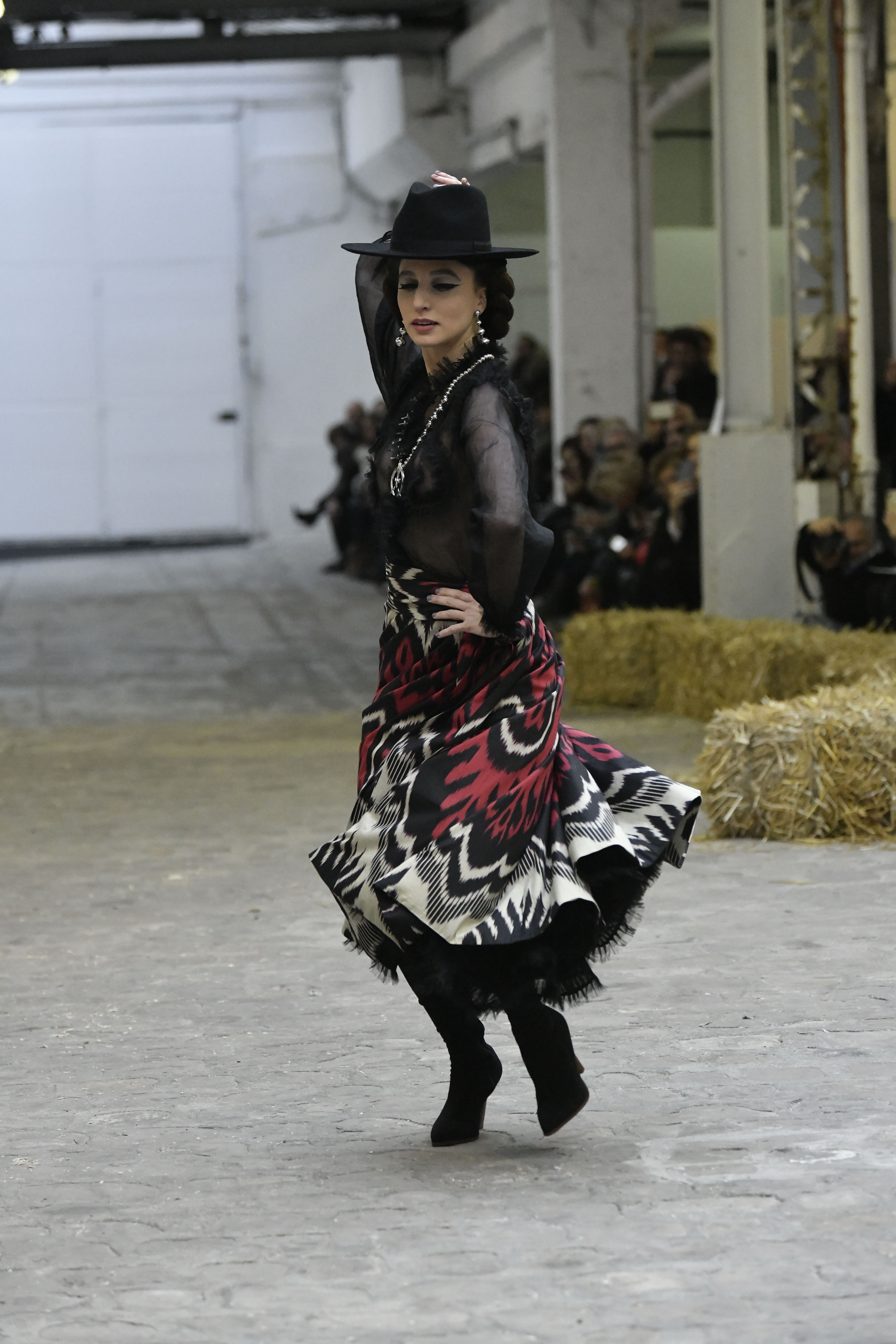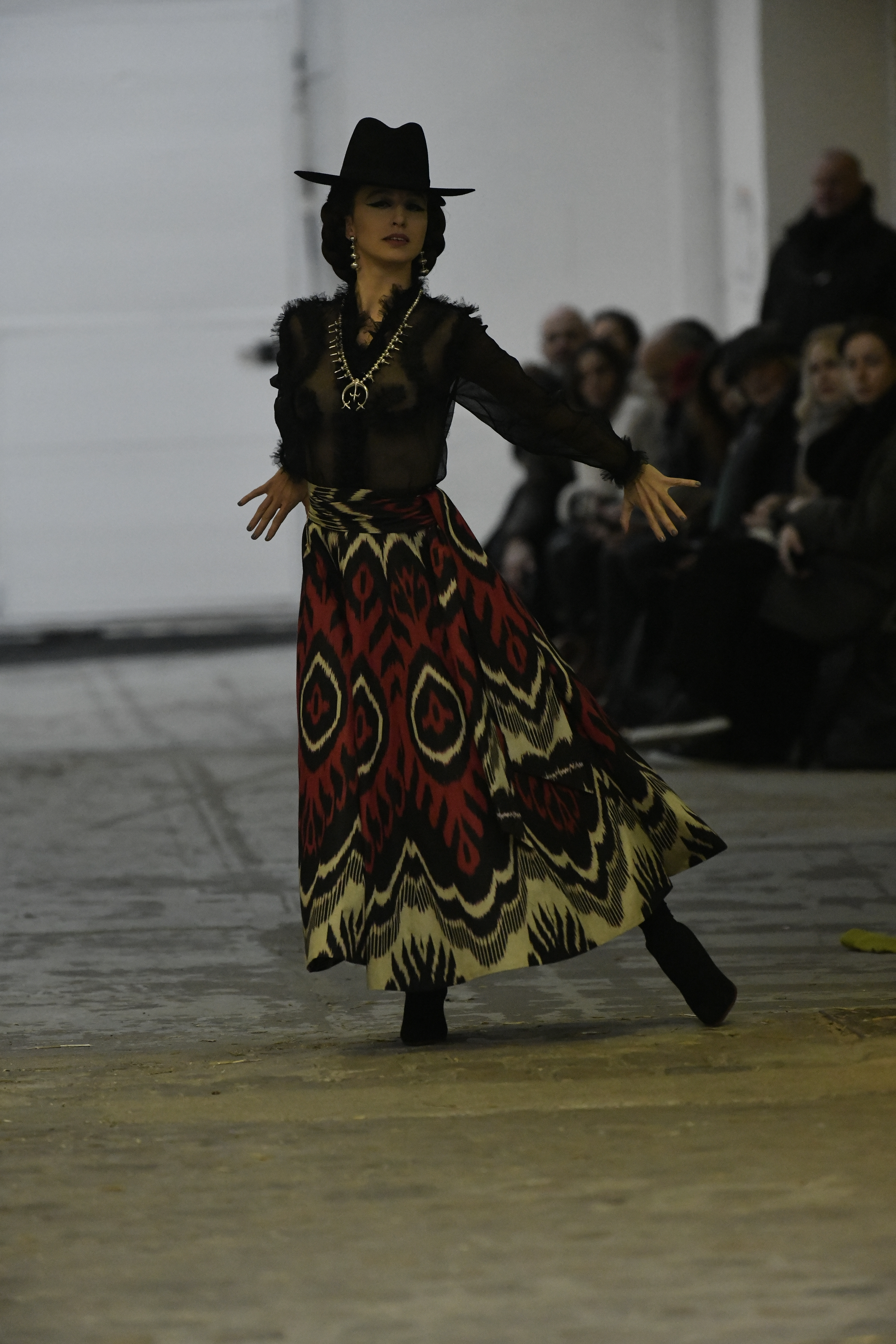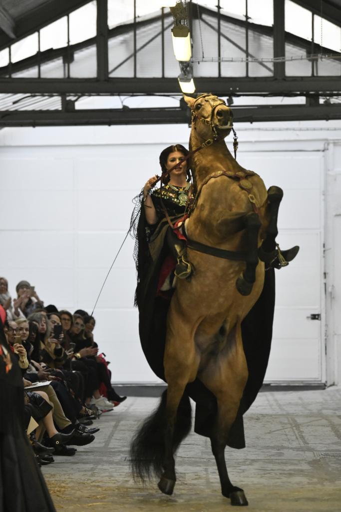 Plus connue sous le nom de Maria Felix, La Doña est l’une des figures centrales de l’âge d’or du cinéma mexicain. Maria Felix est née à Alamos, dans l’état de Sonora, au Nord du Mexique, d’un Indien Yaqui et d’une descendante d’Espagnol. Son père est propriétaire d’un modeste ranch, d’où sont amour pour les chevaux. Petite fille, elle préfère grimper aux arbres et rivaliser avec les garçons, plutôt que d’apprendre la broderie et les prières. A 16 ans, elle est élue Reine de Beauté de sa province et échappe à l’emprise parternelle en épousant Enrique Alvarez qui passe par là. Elle le quittera, non sans qu’il lui ait fait le plus beau cadeau du monde. Enrique Alvarez Felix sera l’ enfant unique de La Doña. Il deviendra, lui-même, acteur et ne cessera de collectionner photos et souvenirs de sa mère. Augustin Lara, “l’homme à la voix d’or”, grand mythe de la chanson latino-americaine, est son deuxième époux. Il composera, en son honneur, en 1947, “Maria Bonita”, qui deviendra un autre de ses surnoms. Jorge Negrete, gloire de la chanson et du cinéma mexicain, devient son troisième mari, en 1952. Ils s’étaient rencontrés dix ans auparavant, sur le tournage “Le Rocher des âmes perdues”, non sans heurt ! Car, entre temps, Maria Felix est tout simplement devenue actrice. Jorge Negrete, que l’on dit aussi laid que séduisant, a fait tapisser la chambre de leur rendez-vous de pétales de roses. Elle épouse, après, Alex Berger, un financier français qui lui offrira ses chevaux de course, ses bijoux. Elle a aussi vécu un amour passionné avec Suzanne Baulé, dite Frede, qui dirigeait alors “Le Carrolls”, un cabaret de la rue de Ponthieu. Leur idylle s’achèvera en procés. Elle passera la fin de sa vie en compagnie du peintre Antoine Tzapoff, entre Paris et Mexico. Elle sera la vedette de 47 films, elle tourne au Mexique, en Argentine mais aussi en France et en Italie. Elle aura pour partenaires européens : Jean Gabin dans “French Cancan” de Jean Renoir, Yves Montand dans “Les héros sont fatigués”, Gérard Philippe dans “La fièvre monte à El Pao” de Buñuel, Vittorio Gassman dans “La courrone noire” de Luis Saslavsky, sur une histoire de Jean Cocteau. Les films mexicains dont elle est la vedette s’intitulent: “La Devora dora”, “La Mujer de todos”, “La Mujer sin alma”, “Doña diabla”, “La Bandida”, “La Belle Otero”, “La Pasión desnuda”. Dans ses films, elle a toujours représenté les femmes fortes, fières, hautaines (Ha ! ce sourcil gauche !). Lors d’une interview, elle déclare : “On admirait ma beauté et mon intelligence, je n’étais qu’une femme avec un coeur d’homme. Une guerrière.” D’où un autre de ses surnoms : La Caballera. Avec elle, la réalité et la fiction se confondent. Elle incarne la passion, l’érotisme, un magnétisme certain. Pour parfaire le mythe, La Doña s’est éteinte dans sa maison de Polanco, à Mexico, en plein soleil, le jour de son anniversaire. Elle avait 88 ans. Avec cette histoire, il faut espérer le retour de ces femmes que l’on voit, sur lesquelles l’on se retourne, qui vous hypnotisent. Avec elle, c’est aussi le retour de la fameuse expression “qui peut le plus, peut le moins”. On l’a vue porter des vêtements folk mais aussi de la Couture, toujours chapeautée et couverte de bijoux. Elle a créé sa propre mode avec une liberté totale et un naturel désarmant. N’est-ce pas cela l’élégance ? J’aurais aimé qu’elle s’approprie certaines de nos créations avec sa propre imagination. N’est-ce pas cela la Haute Couture ?