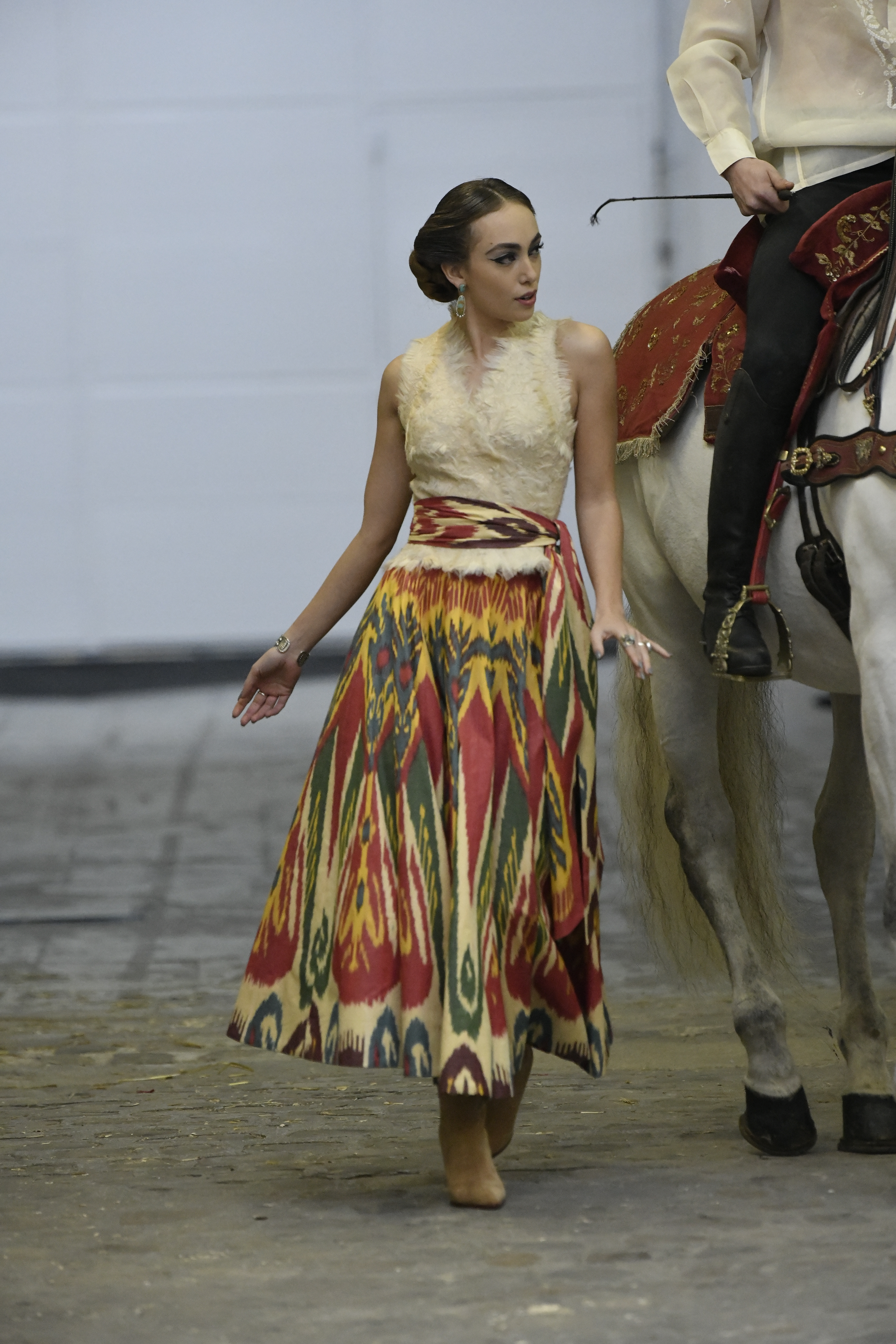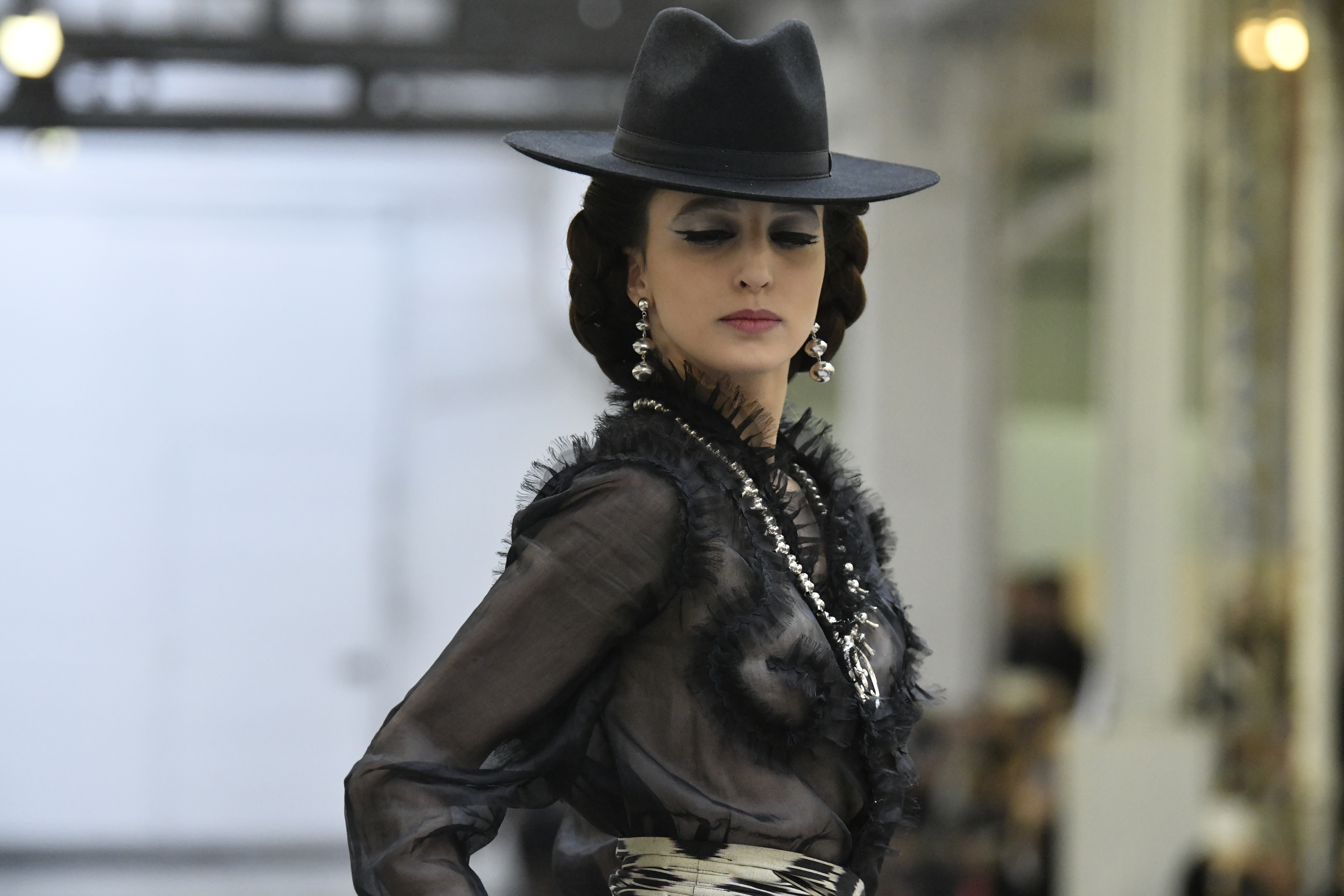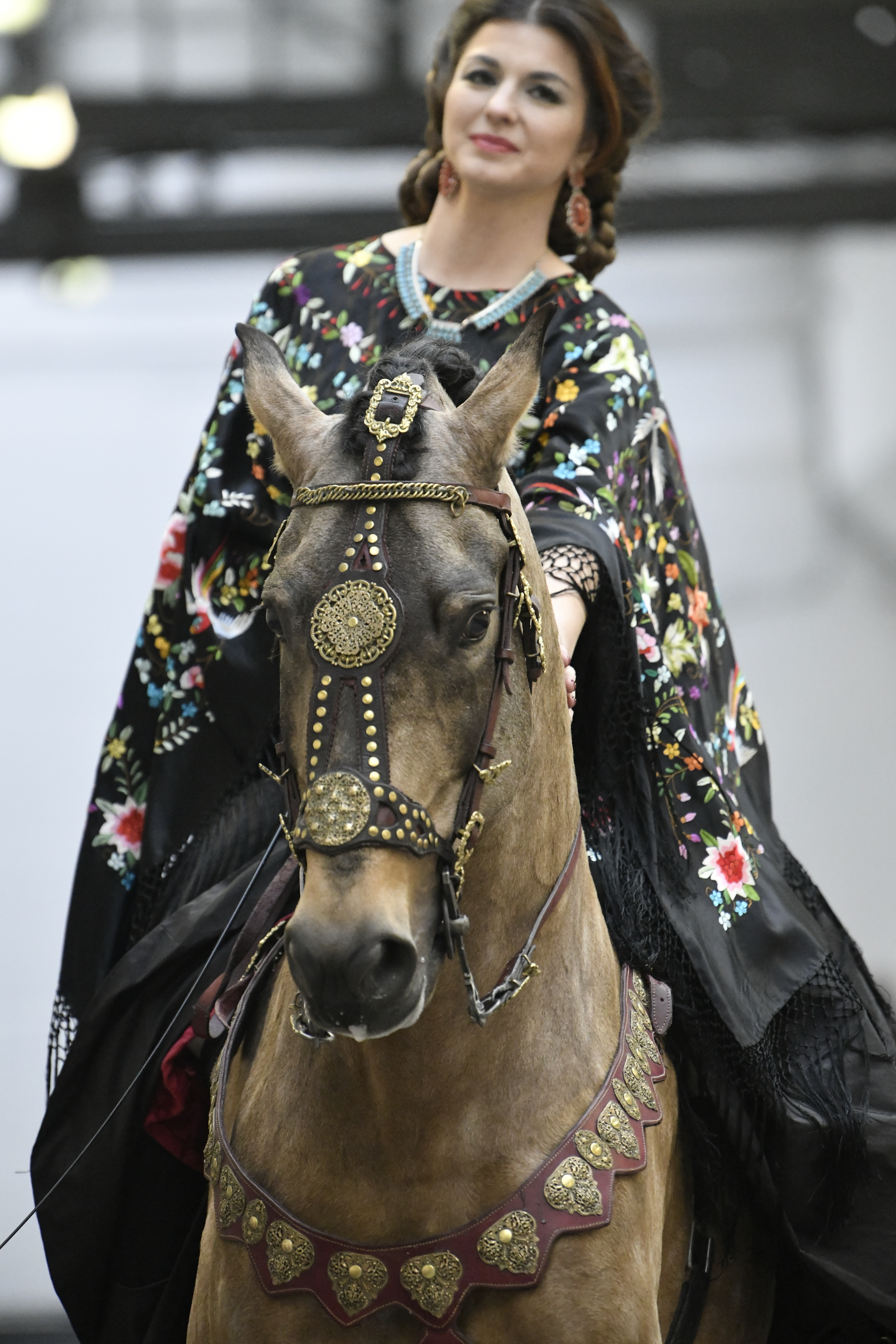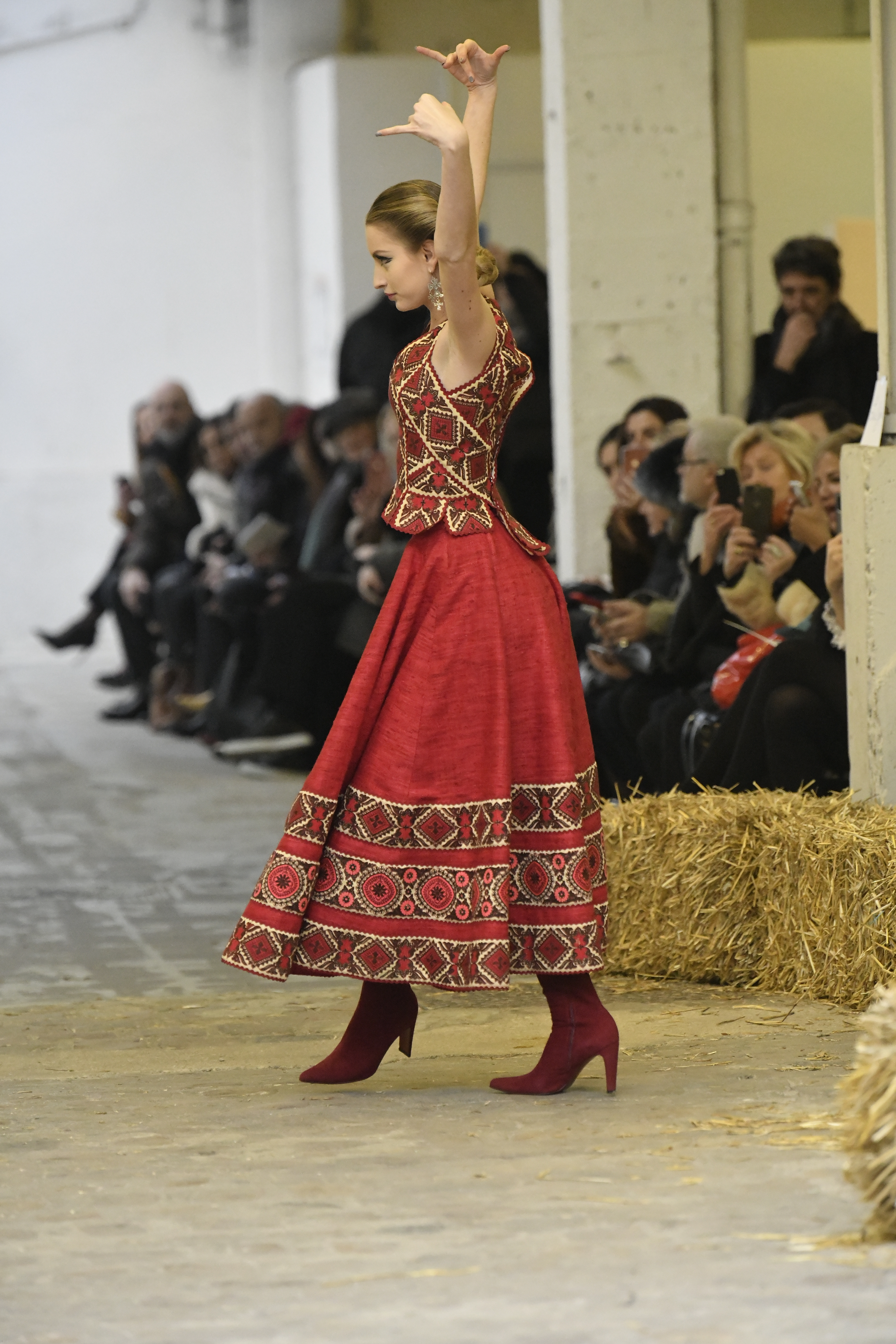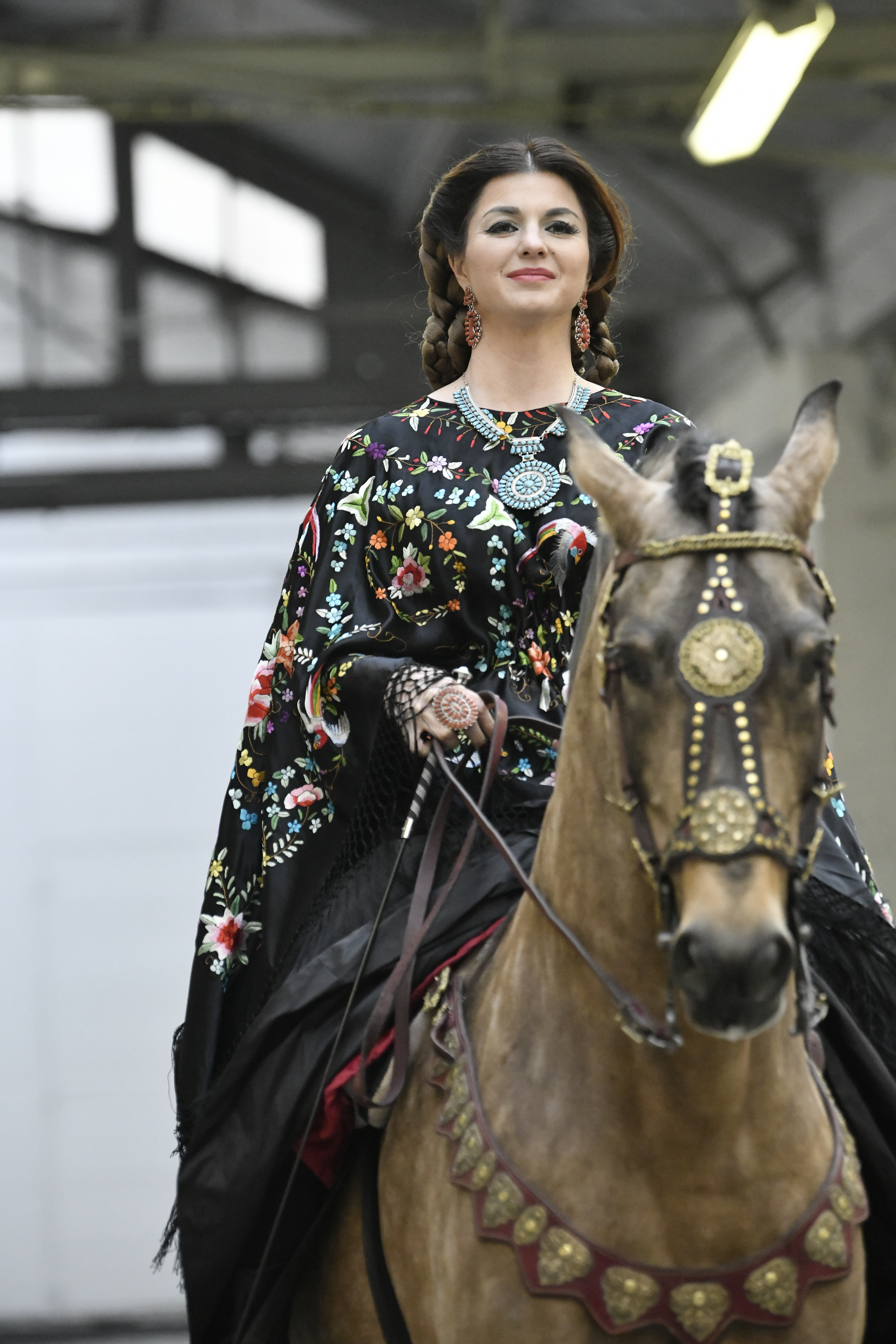 Plus connue sous le nom de Maria Felix, La Doña est l’une des figures centrales de l’âge d’or du cinéma mexicain. Maria Felix est née à Alamos, dans l’état de Sonora, au Nord du Mexique, d’un Indien Yaqui et d’une descendante d’Espagnol. Son père est propriétaire d’un modeste ranch, d’où sont amour pour les chevaux. Petite fille, elle préfère grimper aux arbres et rivaliser avec les garçons, plutôt que d’apprendre la broderie et les prières. A 16 ans, elle est élue Reine de Beauté de sa province et échappe à l’emprise parternelle en épousant Enrique Alvarez qui passe par là. Elle le quittera, non sans qu’il lui ait fait le plus beau cadeau du monde. Enrique Alvarez Felix sera l’ enfant unique de La Doña. Il deviendra, lui-même, acteur et ne cessera de collectionner photos et souvenirs de sa mère. Augustin Lara, “l’homme à la voix d’or”, grand mythe de la chanson latino-americaine, est son deuxième époux. Il composera, en son honneur, en 1947, “Maria Bonita”, qui deviendra un autre de ses surnoms. Jorge Negrete, gloire de la chanson et du cinéma mexicain, devient son troisième mari, en 1952. Ils s’étaient rencontrés dix ans auparavant, sur le tournage “Le Rocher des âmes perdues”, non sans heurt ! Car, entre temps, Maria Felix est tout simplement devenue actrice. Jorge Negrete, que l’on dit aussi laid que séduisant, a fait tapisser la chambre de leur rendez-vous de pétales de roses. Elle épouse, après, Alex Berger, un financier français qui lui offrira ses chevaux de course, ses bijoux. Elle a aussi vécu un amour passionné avec Suzanne Baulé, dite Frede, qui dirigeait alors “Le Carrolls”, un cabaret de la rue de Ponthieu. Leur idylle s’achèvera en procés. Elle passera la fin de sa vie en compagnie du peintre Antoine Tzapoff, entre Paris et Mexico. Elle sera la vedette de 47 films, elle tourne au Mexique, en Argentine mais aussi en France et en Italie. Elle aura pour partenaires européens : Jean Gabin dans “French Cancan” de Jean Renoir, Yves Montand dans “Les héros sont fatigués”, Gérard Philippe dans “La fièvre monte à El Pao” de Buñuel, Vittorio Gassman dans “La courrone noire” de Luis Saslavsky, sur une histoire de Jean Cocteau. Les films mexicains dont elle est la vedette s’intitulent: “La Devora dora”, “La Mujer de todos”, “La Mujer sin alma”, “Doña diabla”, “La Bandida”, “La Belle Otero”, “La Pasión desnuda”. Dans ses films, elle a toujours représenté les femmes fortes, fières, hautaines (Ha ! ce sourcil gauche !). Lors d’une interview, elle déclare : “On admirait ma beauté et mon intelligence, je n’étais qu’une femme avec un coeur d’homme. Une guerrière.” D’où un autre de ses surnoms : La Caballera. Avec elle, la réalité et la fiction se confondent. Elle incarne la passion, l’érotisme, un magnétisme certain. Pour parfaire le mythe, La Doña s’est éteinte dans sa maison de Polanco, à Mexico, en plein soleil, le jour de son anniversaire. Elle avait 88 ans. Avec cette histoire, il faut espérer le retour de ces femmes que l’on voit, sur lesquelles l’on se retourne, qui vous hypnotisent. Avec elle, c’est aussi le retour de la fameuse expression “qui peut le plus, peut le moins”. On l’a vue porter des vêtements folk mais aussi de la Couture, toujours chapeautée et couverte de bijoux. Elle a créé sa propre mode avec une liberté totale et un naturel désarmant. N’est-ce pas cela l’élégance ? J’aurais aimé qu’elle s’approprie certaines de nos créations avec sa propre imagination. N’est-ce pas cela la Haute Couture ?