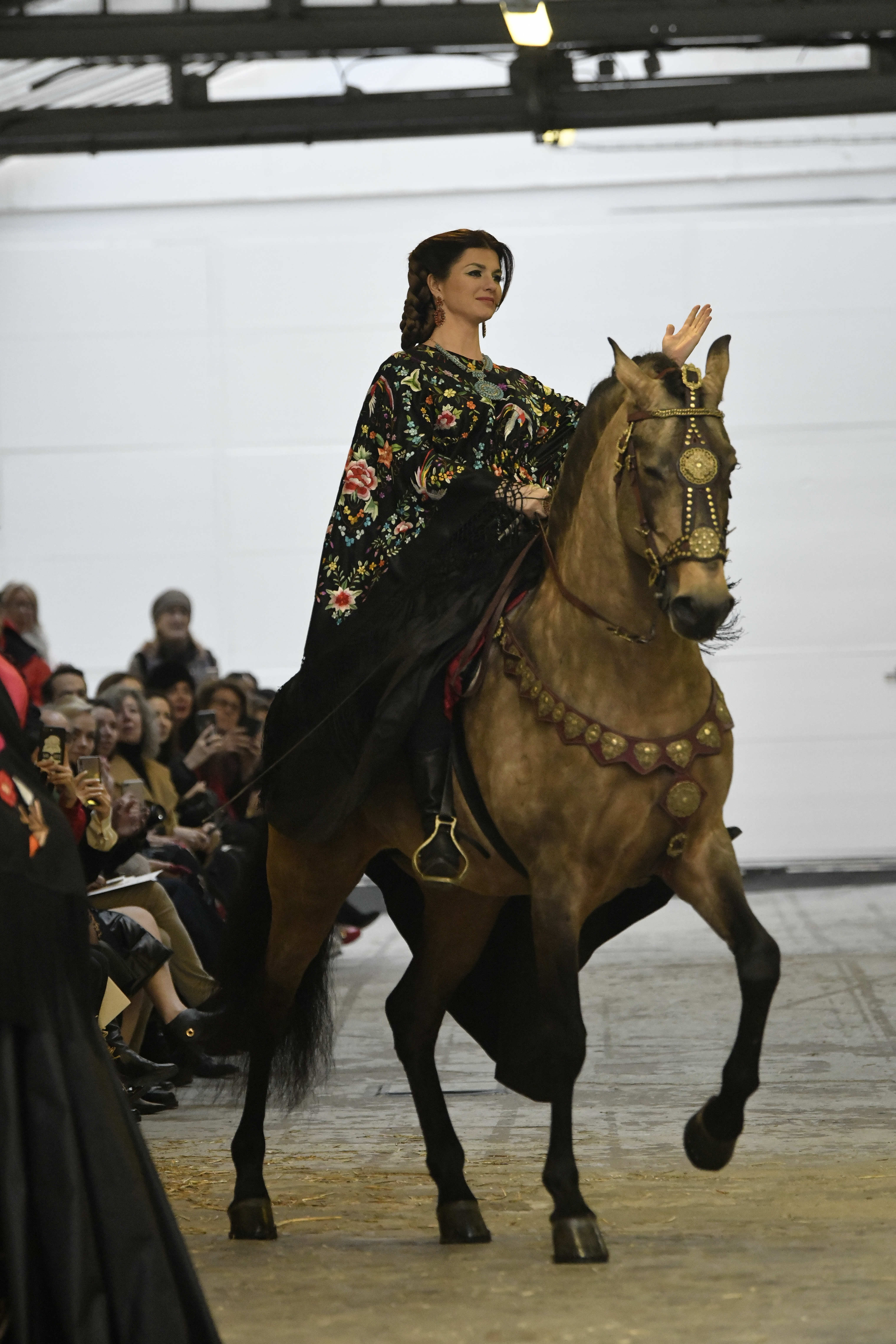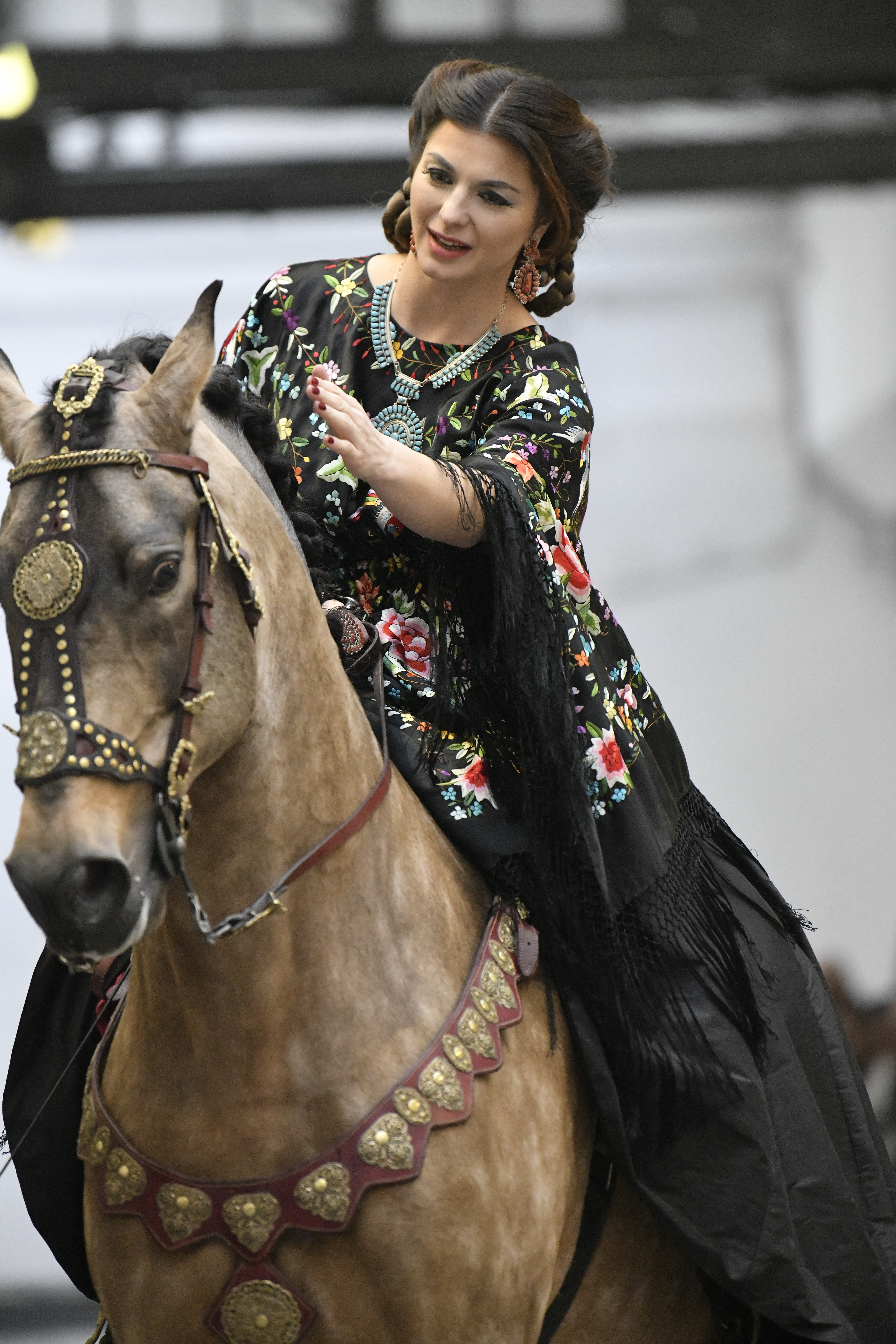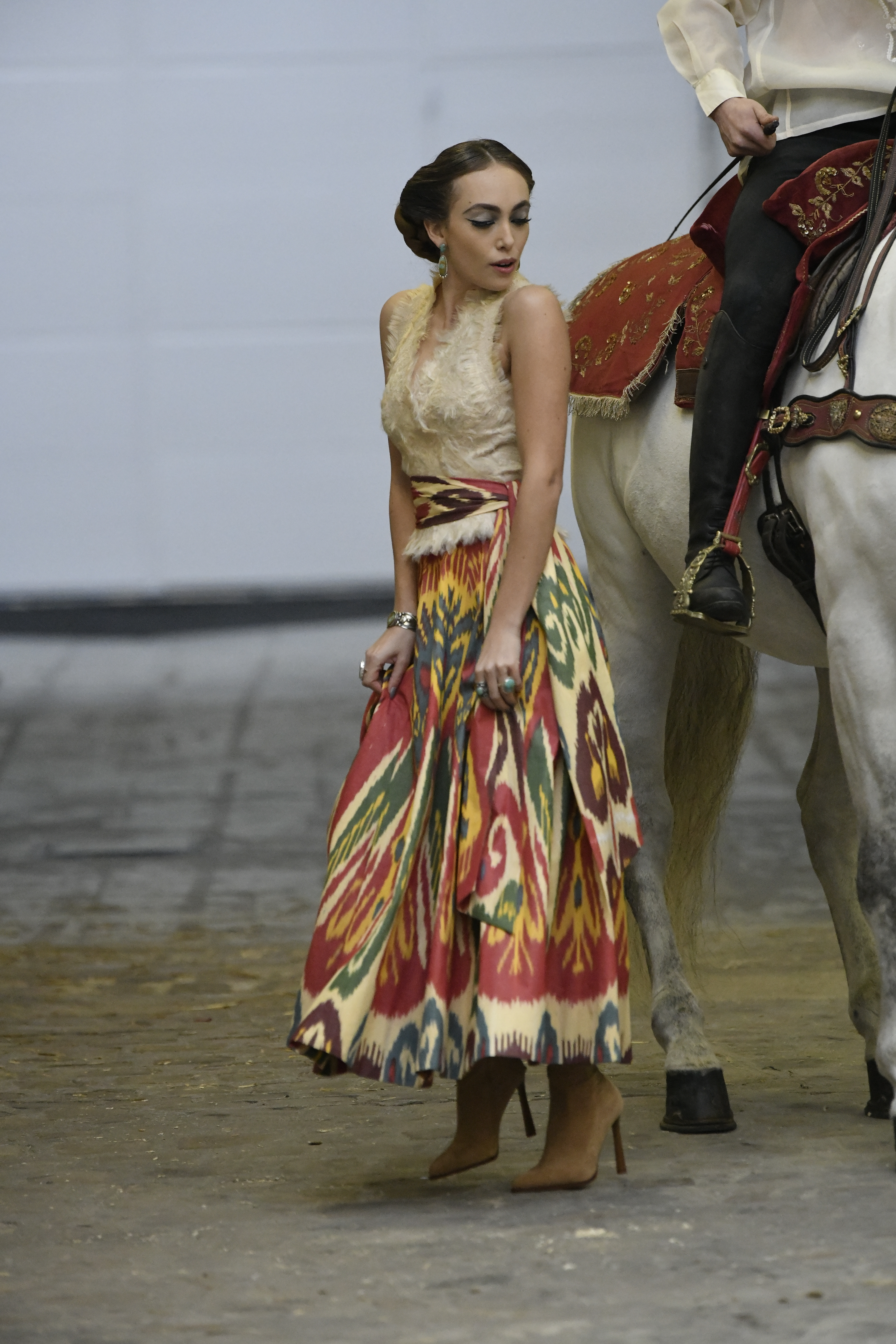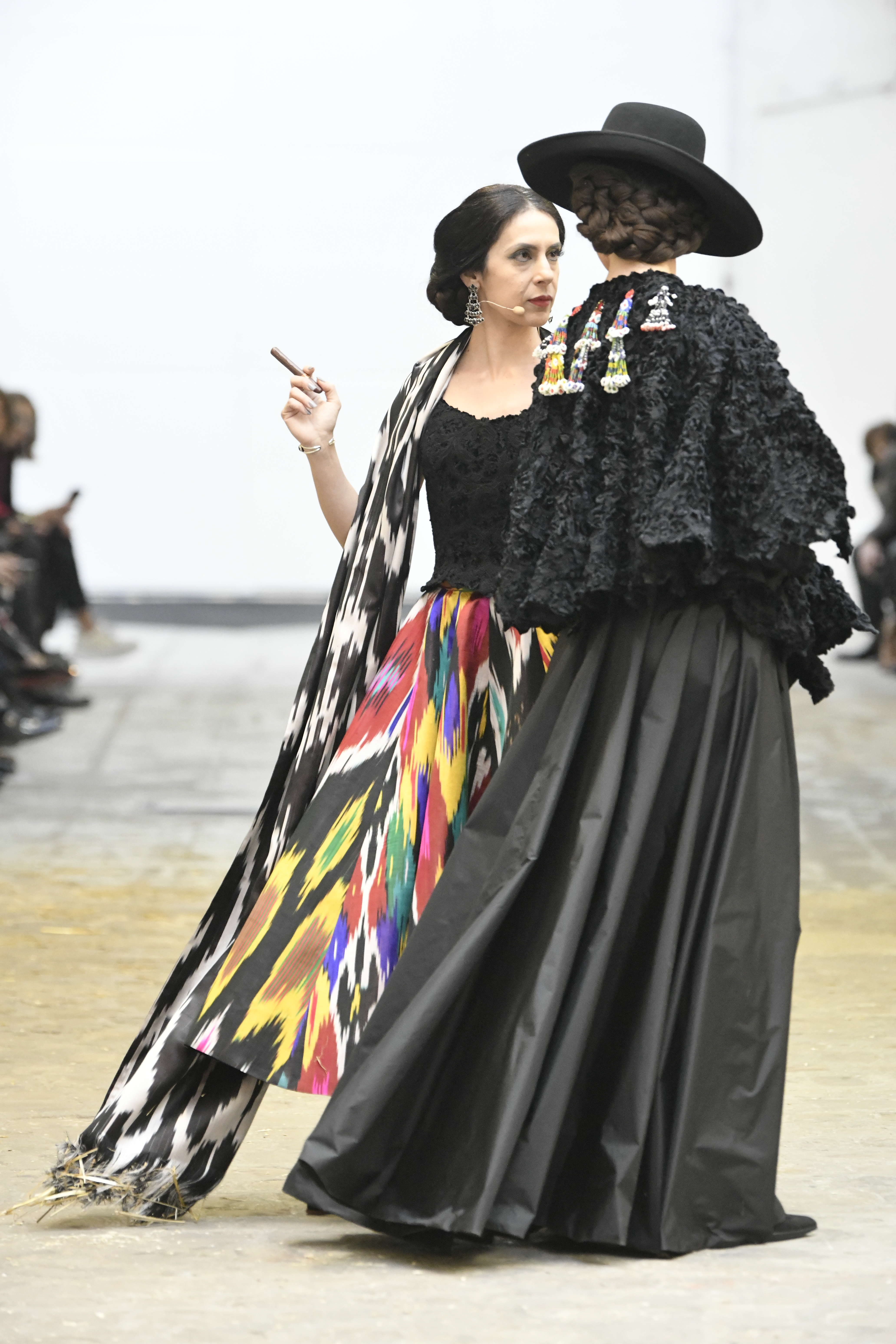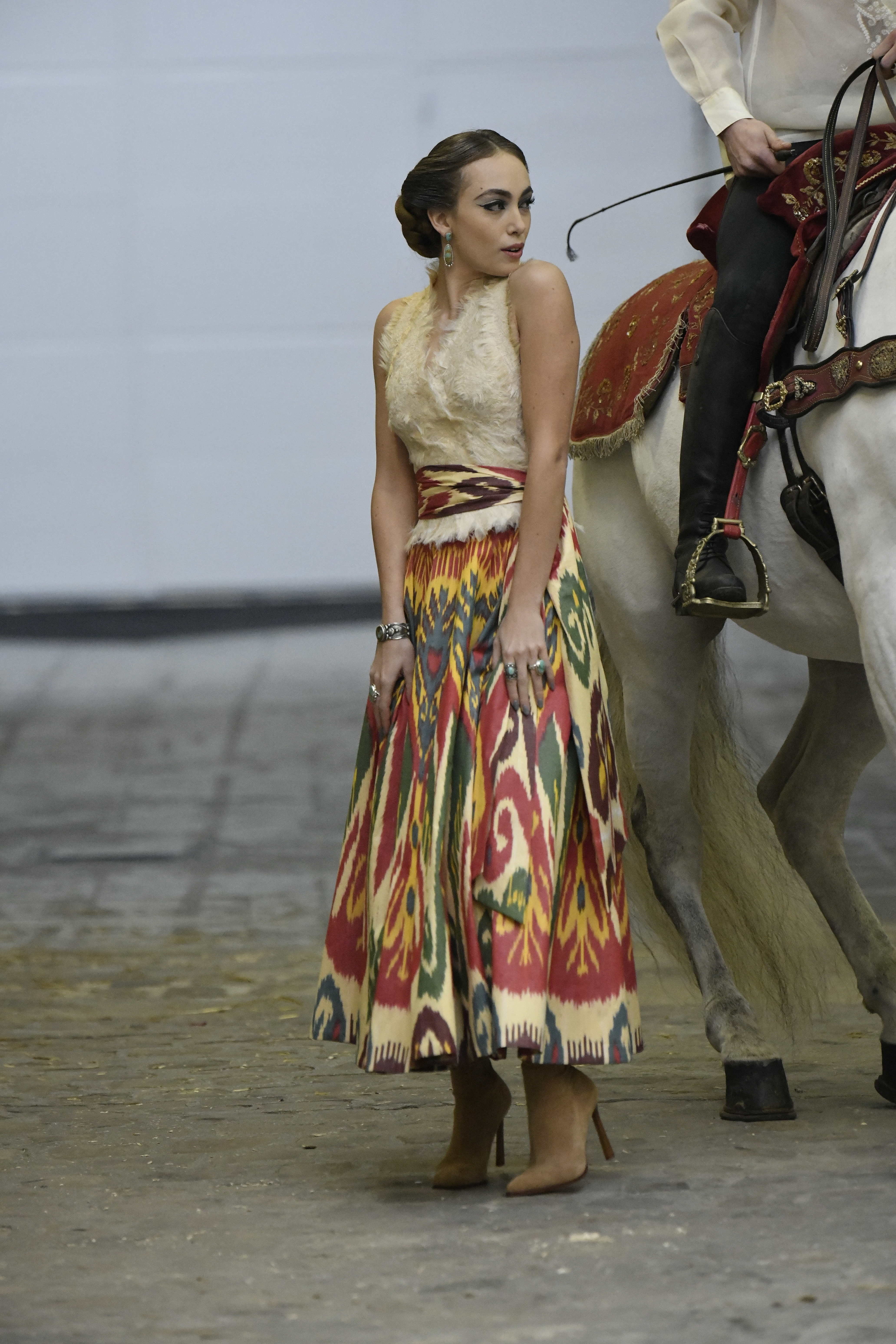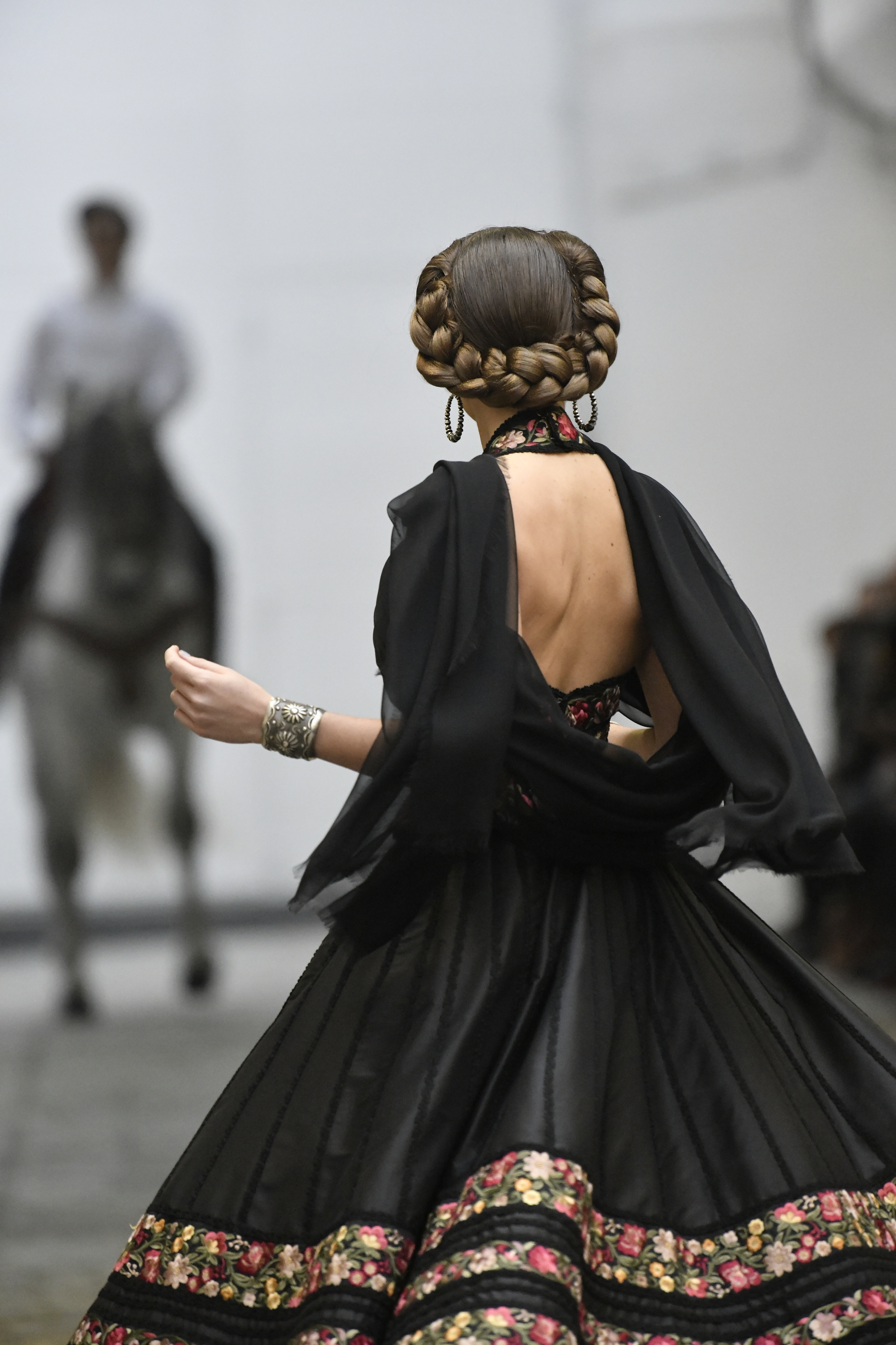 Plus connue sous le nom de Maria Felix, La Doña est l’une des figures centrales de l’âge d’or du cinéma mexicain. Maria Felix est née à Alamos, dans l’état de Sonora, au Nord du Mexique, d’un Indien Yaqui et d’une descendante d’Espagnol. Son père est propriétaire d’un modeste ranch, d’où sont amour pour les chevaux. Petite fille, elle préfère grimper aux arbres et rivaliser avec les garçons, plutôt que d’apprendre la broderie et les prières. A 16 ans, elle est élue Reine de Beauté de sa province et échappe à l’emprise parternelle en épousant Enrique Alvarez qui passe par là. Elle le quittera, non sans qu’il lui ait fait le plus beau cadeau du monde. Enrique Alvarez Felix sera l’ enfant unique de La Doña. Il deviendra, lui-même, acteur et ne cessera de collectionner photos et souvenirs de sa mère. Augustin Lara, “l’homme à la voix d’or”, grand mythe de la chanson latino-americaine, est son deuxième époux. Il composera, en son honneur, en 1947, “Maria Bonita”, qui deviendra un autre de ses surnoms. Jorge Negrete, gloire de la chanson et du cinéma mexicain, devient son troisième mari, en 1952. Ils s’étaient rencontrés dix ans auparavant, sur le tournage “Le Rocher des âmes perdues”, non sans heurt ! Car, entre temps, Maria Felix est tout simplement devenue actrice. Jorge Negrete, que l’on dit aussi laid que séduisant, a fait tapisser la chambre de leur rendez-vous de pétales de roses. Elle épouse, après, Alex Berger, un financier français qui lui offrira ses chevaux de course, ses bijoux. Elle a aussi vécu un amour passionné avec Suzanne Baulé, dite Frede, qui dirigeait alors “Le Carrolls”, un cabaret de la rue de Ponthieu. Leur idylle s’achèvera en procés. Elle passera la fin de sa vie en compagnie du peintre Antoine Tzapoff, entre Paris et Mexico. Elle sera la vedette de 47 films, elle tourne au Mexique, en Argentine mais aussi en France et en Italie. Elle aura pour partenaires européens : Jean Gabin dans “French Cancan” de Jean Renoir, Yves Montand dans “Les héros sont fatigués”, Gérard Philippe dans “La fièvre monte à El Pao” de Buñuel, Vittorio Gassman dans “La courrone noire” de Luis Saslavsky, sur une histoire de Jean Cocteau. Les films mexicains dont elle est la vedette s’intitulent: “La Devora dora”, “La Mujer de todos”, “La Mujer sin alma”, “Doña diabla”, “La Bandida”, “La Belle Otero”, “La Pasión desnuda”. Dans ses films, elle a toujours représenté les femmes fortes, fières, hautaines (Ha ! ce sourcil gauche !). Lors d’une interview, elle déclare : “On admirait ma beauté et mon intelligence, je n’étais qu’une femme avec un coeur d’homme. Une guerrière.” D’où un autre de ses surnoms : La Caballera. Avec elle, la réalité et la fiction se confondent. Elle incarne la passion, l’érotisme, un magnétisme certain. Pour parfaire le mythe, La Doña s’est éteinte dans sa maison de Polanco, à Mexico, en plein soleil, le jour de son anniversaire. Elle avait 88 ans. Avec cette histoire, il faut espérer le retour de ces femmes que l’on voit, sur lesquelles l’on se retourne, qui vous hypnotisent. Avec elle, c’est aussi le retour de la fameuse expression “qui peut le plus, peut le moins”. On l’a vue porter des vêtements folk mais aussi de la Couture, toujours chapeautée et couverte de bijoux. Elle a créé sa propre mode avec une liberté totale et un naturel désarmant. N’est-ce pas cela l’élégance ? J’aurais aimé qu’elle s’approprie certaines de nos créations avec sa propre imagination. N’est-ce pas cela la Haute Couture ?