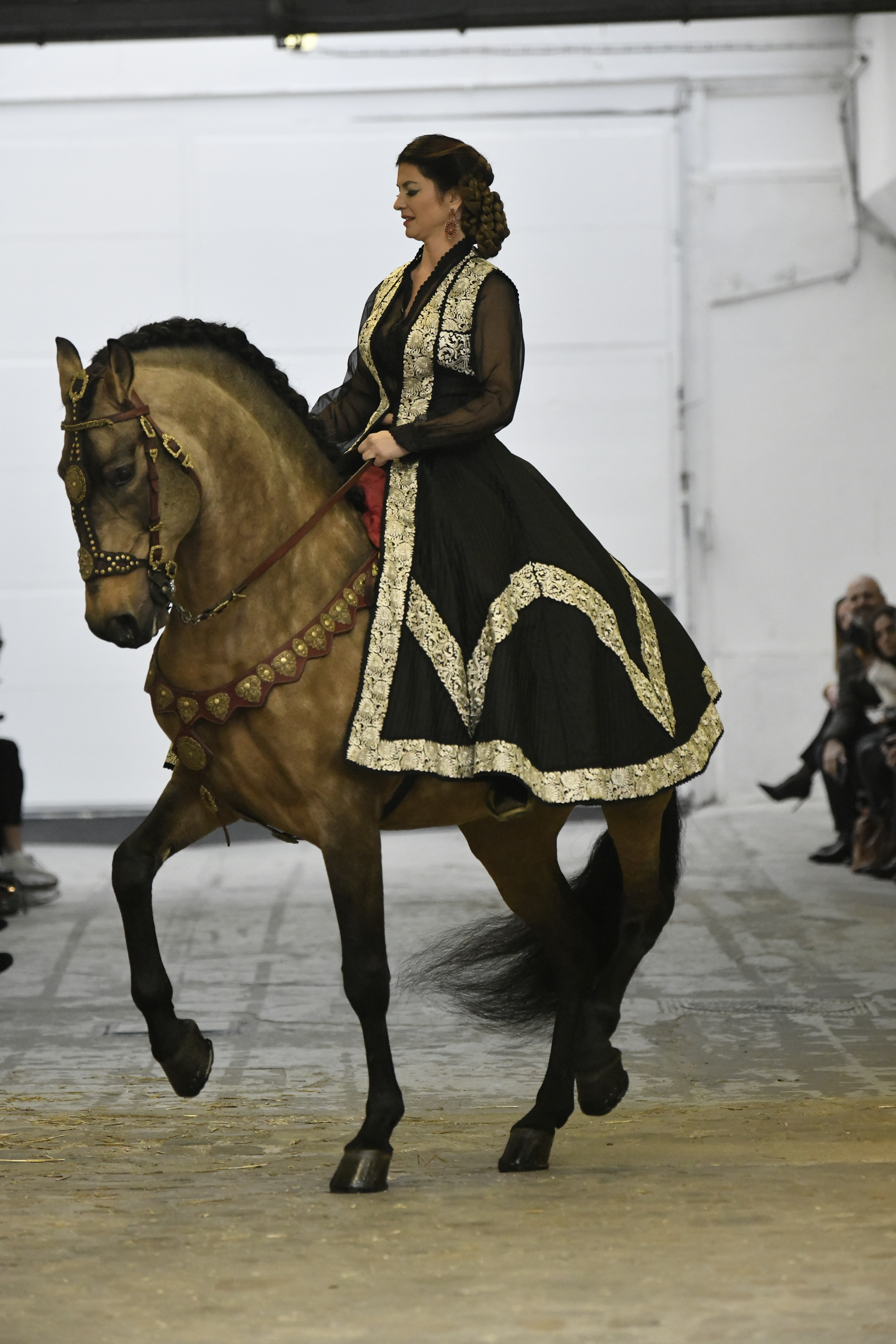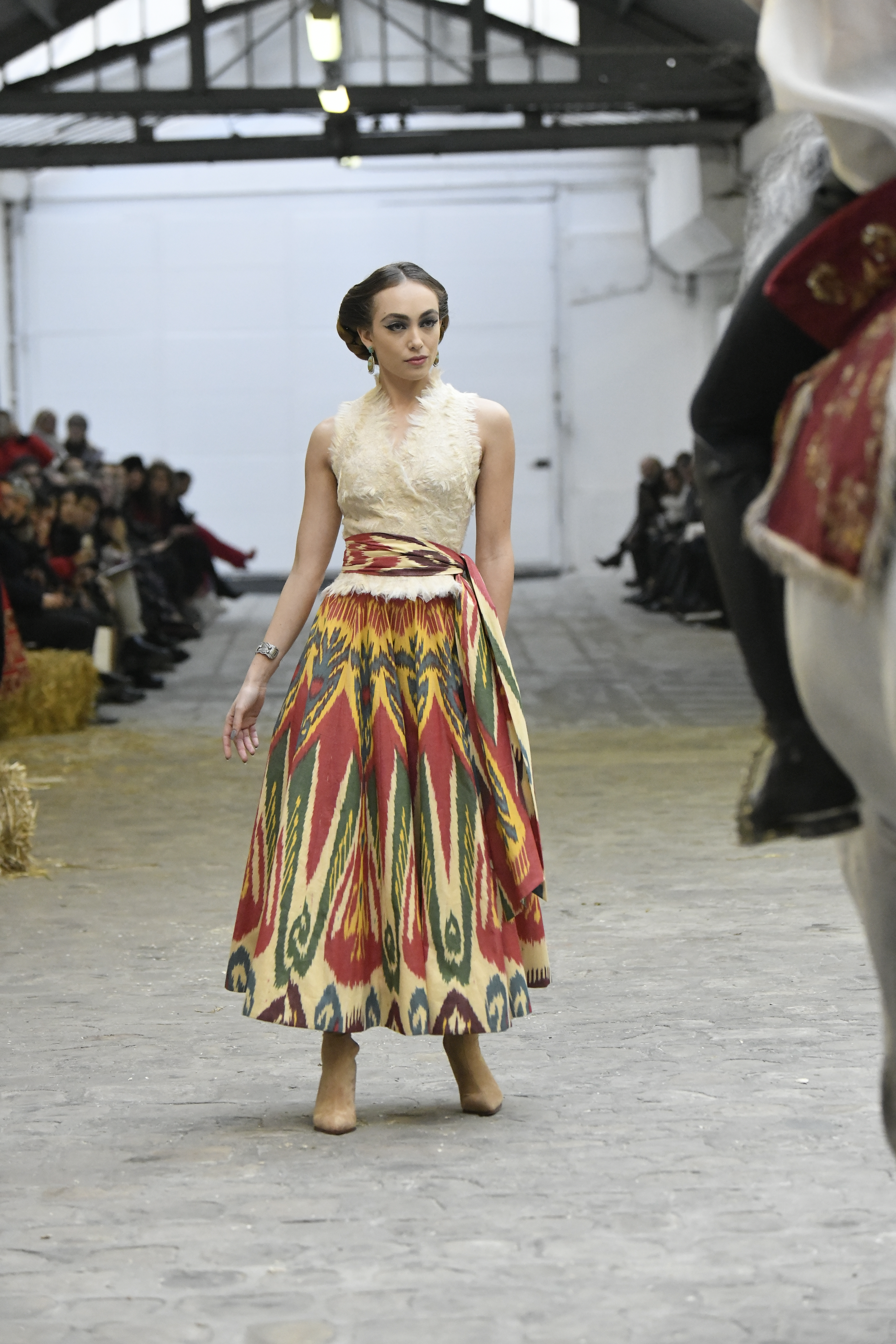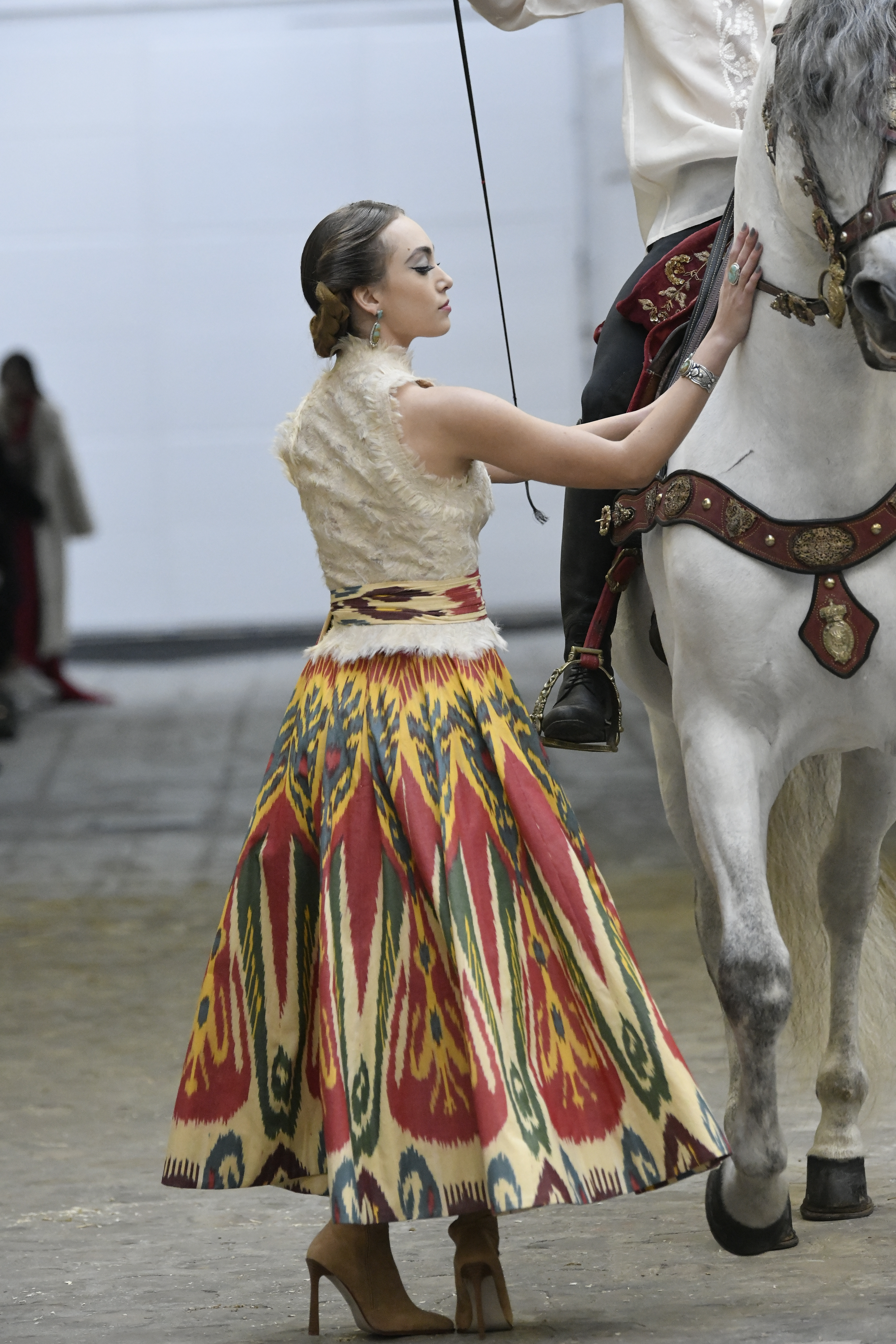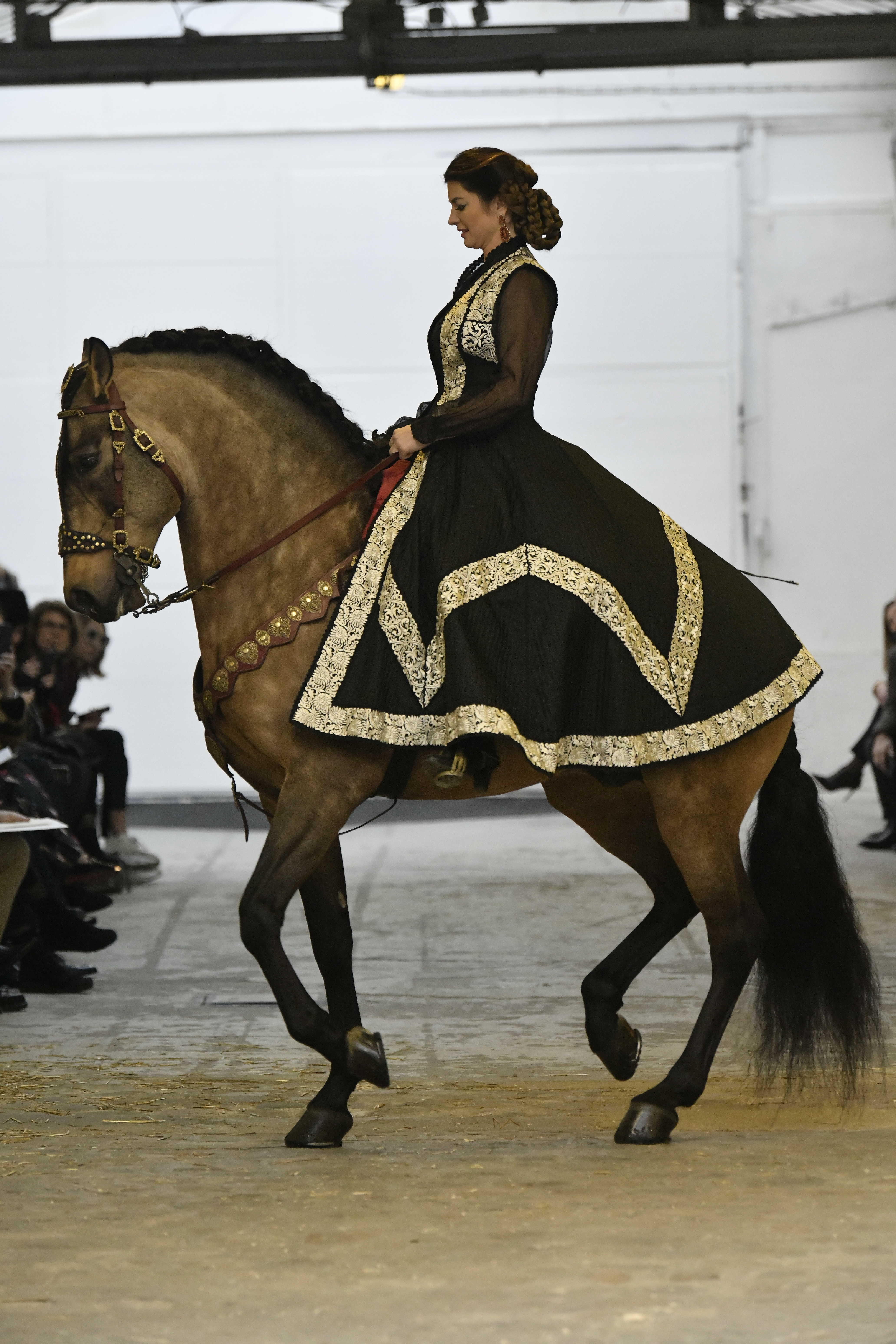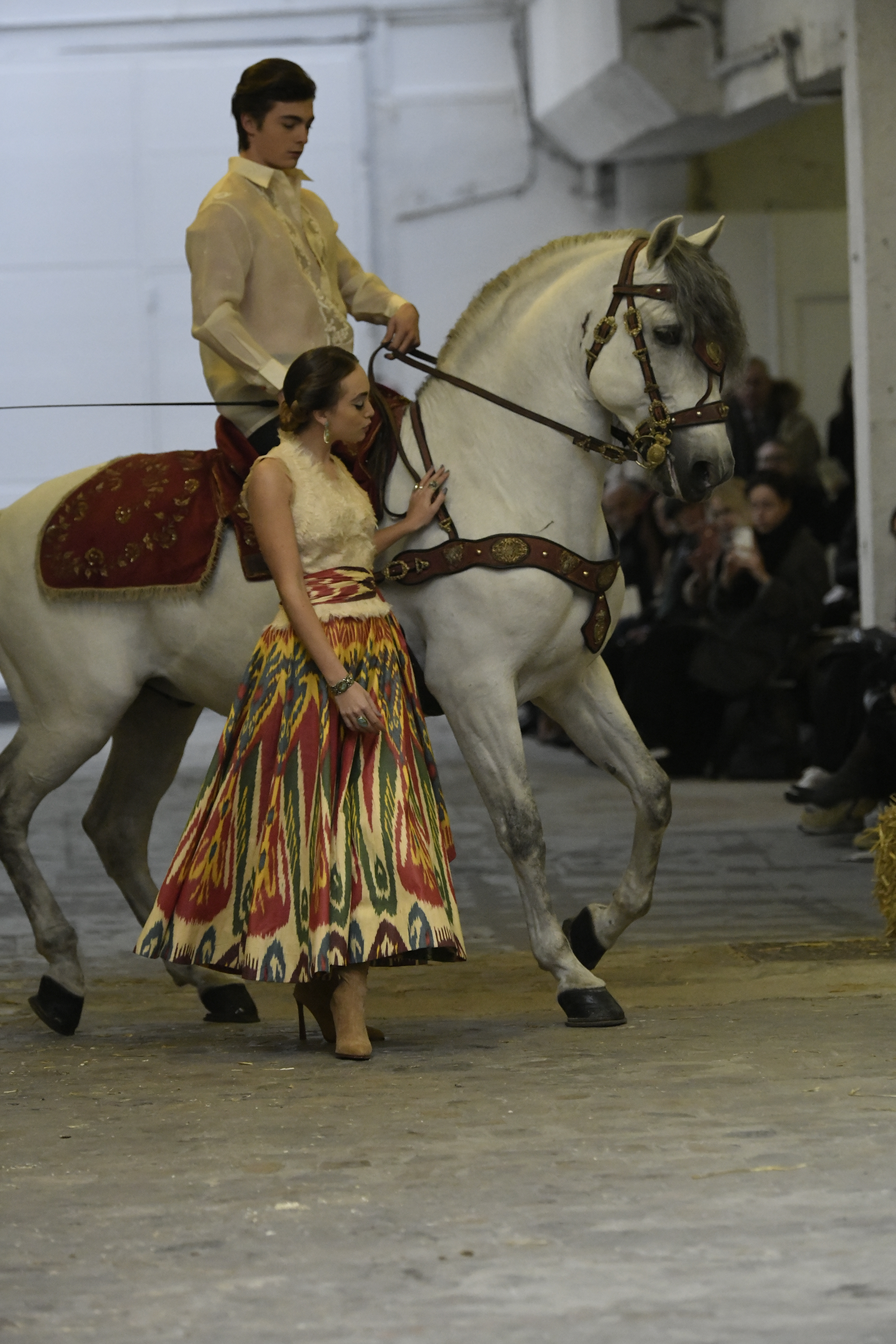 Plus connue sous le nom de Maria Felix, La Doña est l’une des figures centrales de l’âge d’or du cinéma mexicain. Maria Felix est née à Alamos, dans l’état de Sonora, au Nord du Mexique, d’un Indien Yaqui et d’une descendante d’Espagnol. Son père est propriétaire d’un modeste ranch, d’où sont amour pour les chevaux. Petite fille, elle préfère grimper aux arbres et rivaliser avec les garçons, plutôt que d’apprendre la broderie et les prières. A 16 ans, elle est élue Reine de Beauté de sa province et échappe à l’emprise parternelle en épousant Enrique Alvarez qui passe par là. Elle le quittera, non sans qu’il lui ait fait le plus beau cadeau du monde. Enrique Alvarez Felix sera l’ enfant unique de La Doña. Il deviendra, lui-même, acteur et ne cessera de collectionner photos et souvenirs de sa mère. Augustin Lara, “l’homme à la voix d’or”, grand mythe de la chanson latino-americaine, est son deuxième époux. Il composera, en son honneur, en 1947, “Maria Bonita”, qui deviendra un autre de ses surnoms. Jorge Negrete, gloire de la chanson et du cinéma mexicain, devient son troisième mari, en 1952. Ils s’étaient rencontrés dix ans auparavant, sur le tournage “Le Rocher des âmes perdues”, non sans heurt ! Car, entre temps, Maria Felix est tout simplement devenue actrice. Jorge Negrete, que l’on dit aussi laid que séduisant, a fait tapisser la chambre de leur rendez-vous de pétales de roses. Elle épouse, après, Alex Berger, un financier français qui lui offrira ses chevaux de course, ses bijoux. Elle a aussi vécu un amour passionné avec Suzanne Baulé, dite Frede, qui dirigeait alors “Le Carrolls”, un cabaret de la rue de Ponthieu. Leur idylle s’achèvera en procés. Elle passera la fin de sa vie en compagnie du peintre Antoine Tzapoff, entre Paris et Mexico. Elle sera la vedette de 47 films, elle tourne au Mexique, en Argentine mais aussi en France et en Italie. Elle aura pour partenaires européens : Jean Gabin dans “French Cancan” de Jean Renoir, Yves Montand dans “Les héros sont fatigués”, Gérard Philippe dans “La fièvre monte à El Pao” de Buñuel, Vittorio Gassman dans “La courrone noire” de Luis Saslavsky, sur une histoire de Jean Cocteau. Les films mexicains dont elle est la vedette s’intitulent: “La Devora dora”, “La Mujer de todos”, “La Mujer sin alma”, “Doña diabla”, “La Bandida”, “La Belle Otero”, “La Pasión desnuda”. Dans ses films, elle a toujours représenté les femmes fortes, fières, hautaines (Ha ! ce sourcil gauche !). Lors d’une interview, elle déclare : “On admirait ma beauté et mon intelligence, je n’étais qu’une femme avec un coeur d’homme. Une guerrière.” D’où un autre de ses surnoms : La Caballera. Avec elle, la réalité et la fiction se confondent. Elle incarne la passion, l’érotisme, un magnétisme certain. Pour parfaire le mythe, La Doña s’est éteinte dans sa maison de Polanco, à Mexico, en plein soleil, le jour de son anniversaire. Elle avait 88 ans. Avec cette histoire, il faut espérer le retour de ces femmes que l’on voit, sur lesquelles l’on se retourne, qui vous hypnotisent. Avec elle, c’est aussi le retour de la fameuse expression “qui peut le plus, peut le moins”. On l’a vue porter des vêtements folk mais aussi de la Couture, toujours chapeautée et couverte de bijoux. Elle a créé sa propre mode avec une liberté totale et un naturel désarmant. N’est-ce pas cela l’élégance ? J’aurais aimé qu’elle s’approprie certaines de nos créations avec sa propre imagination. N’est-ce pas cela la Haute Couture ?