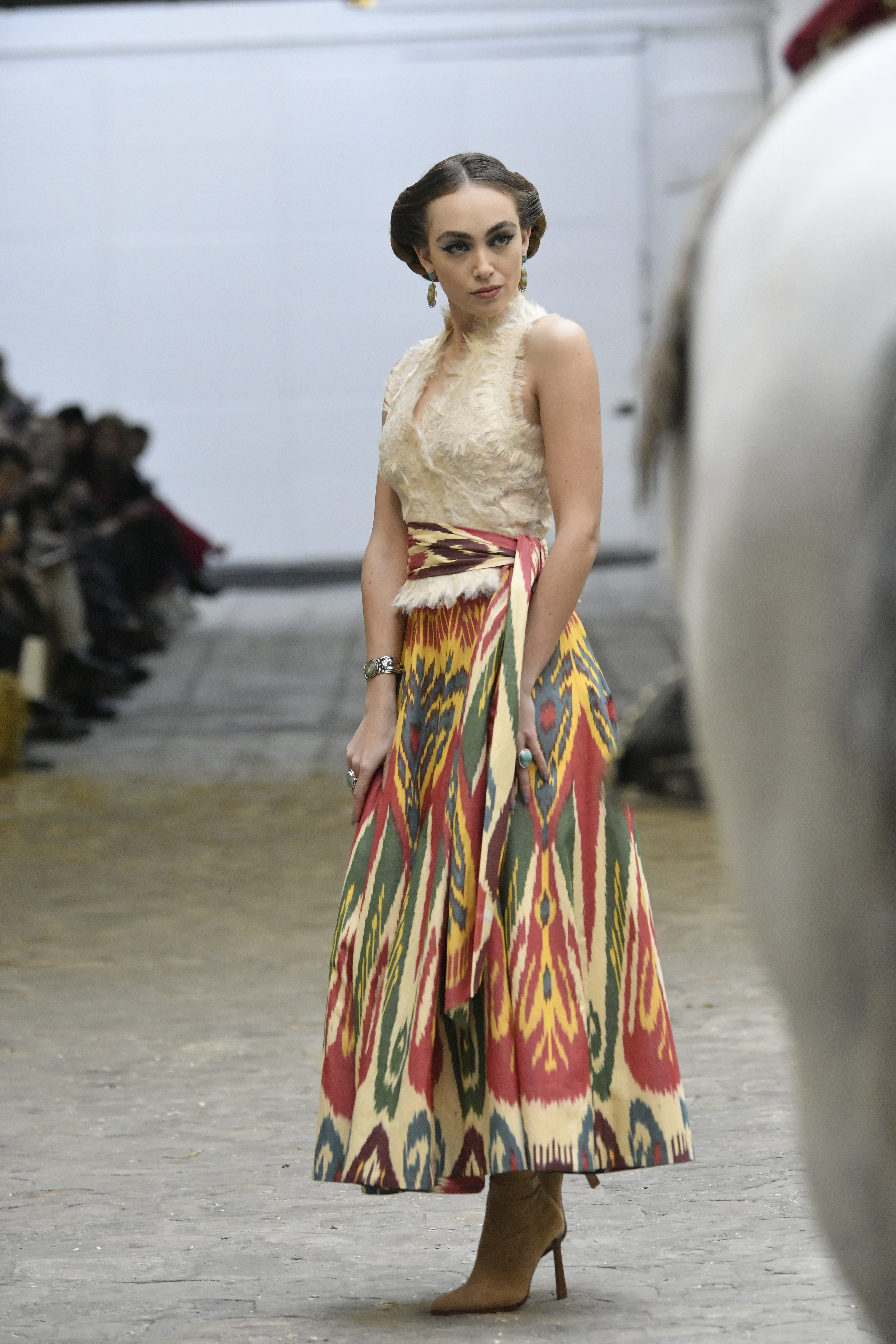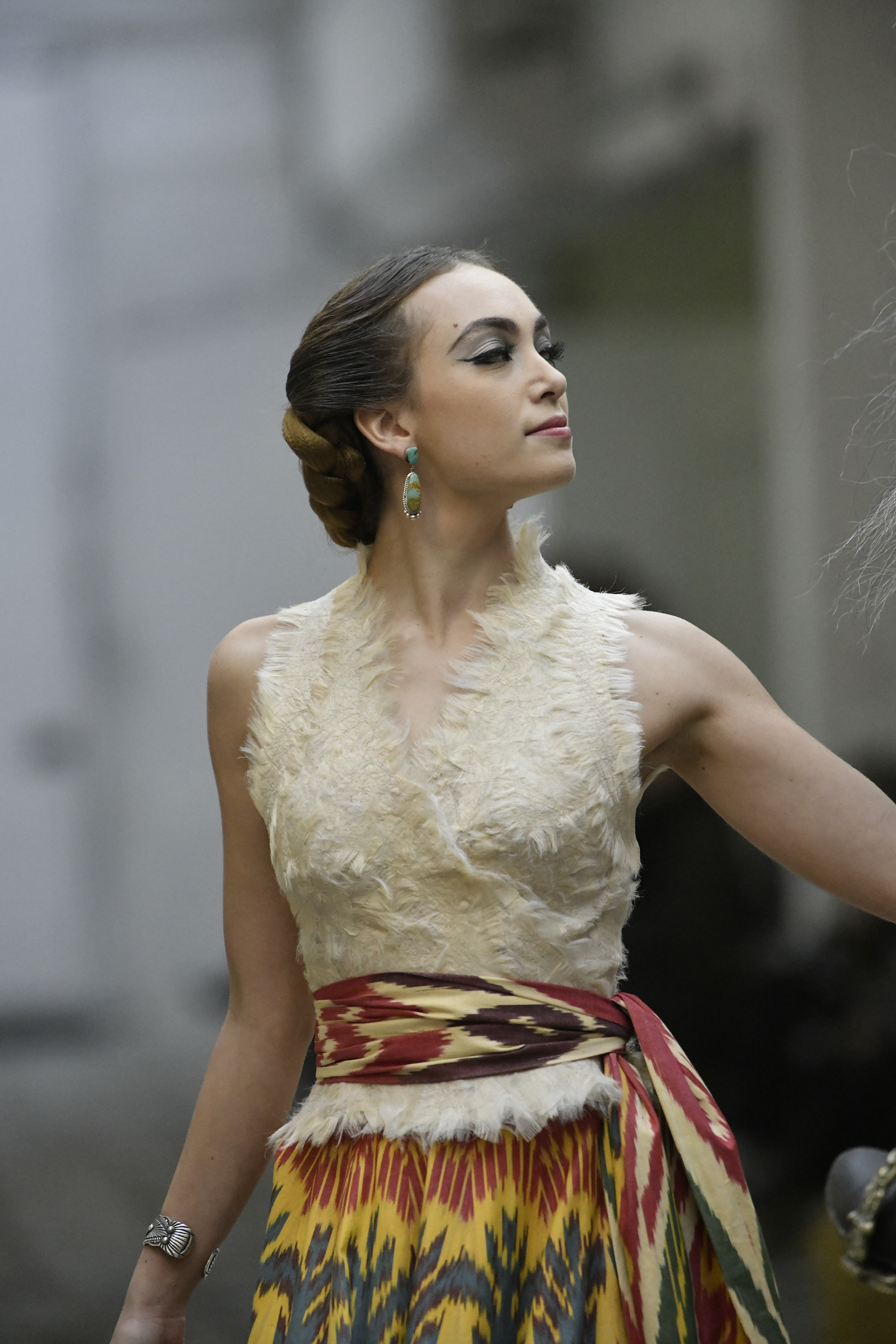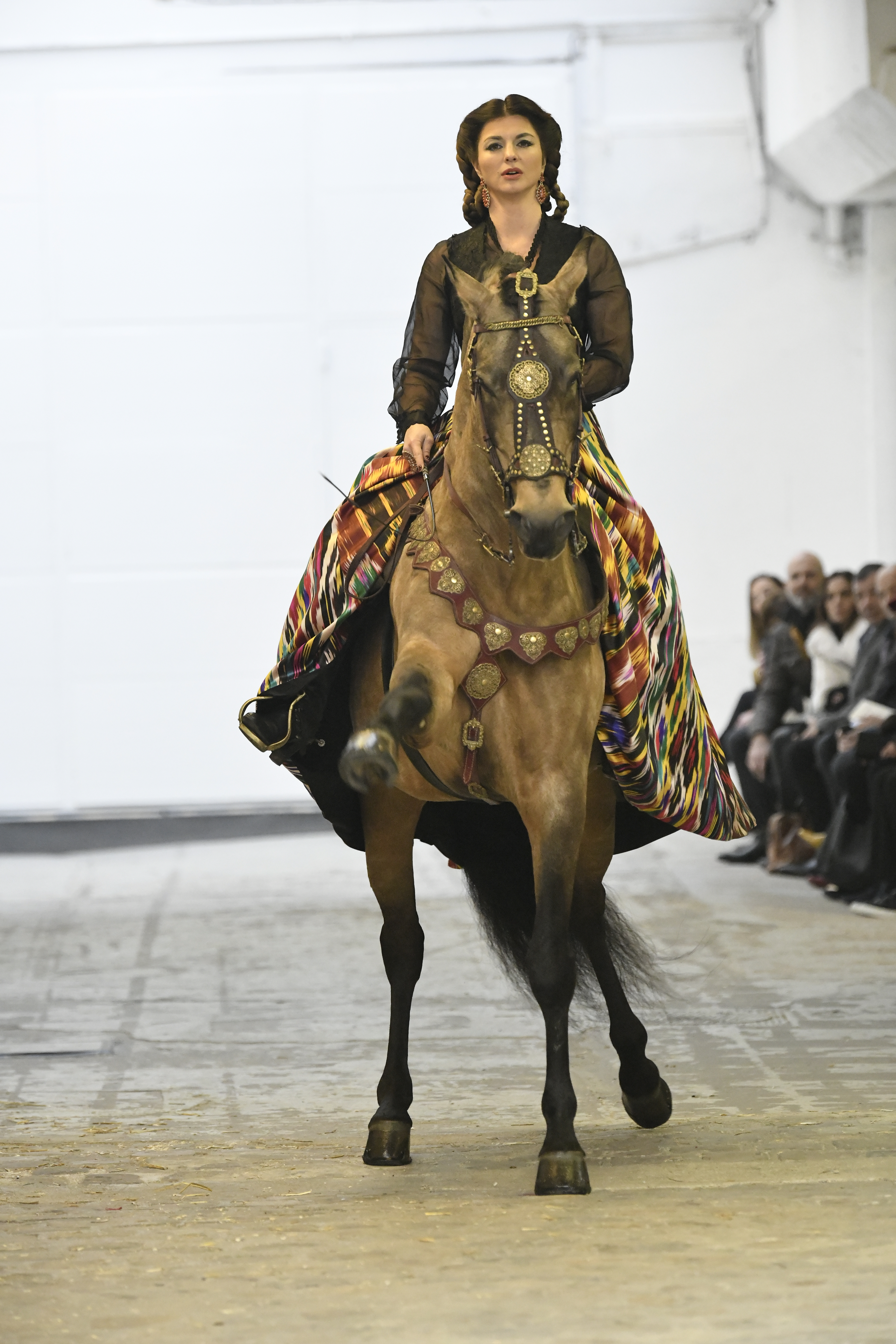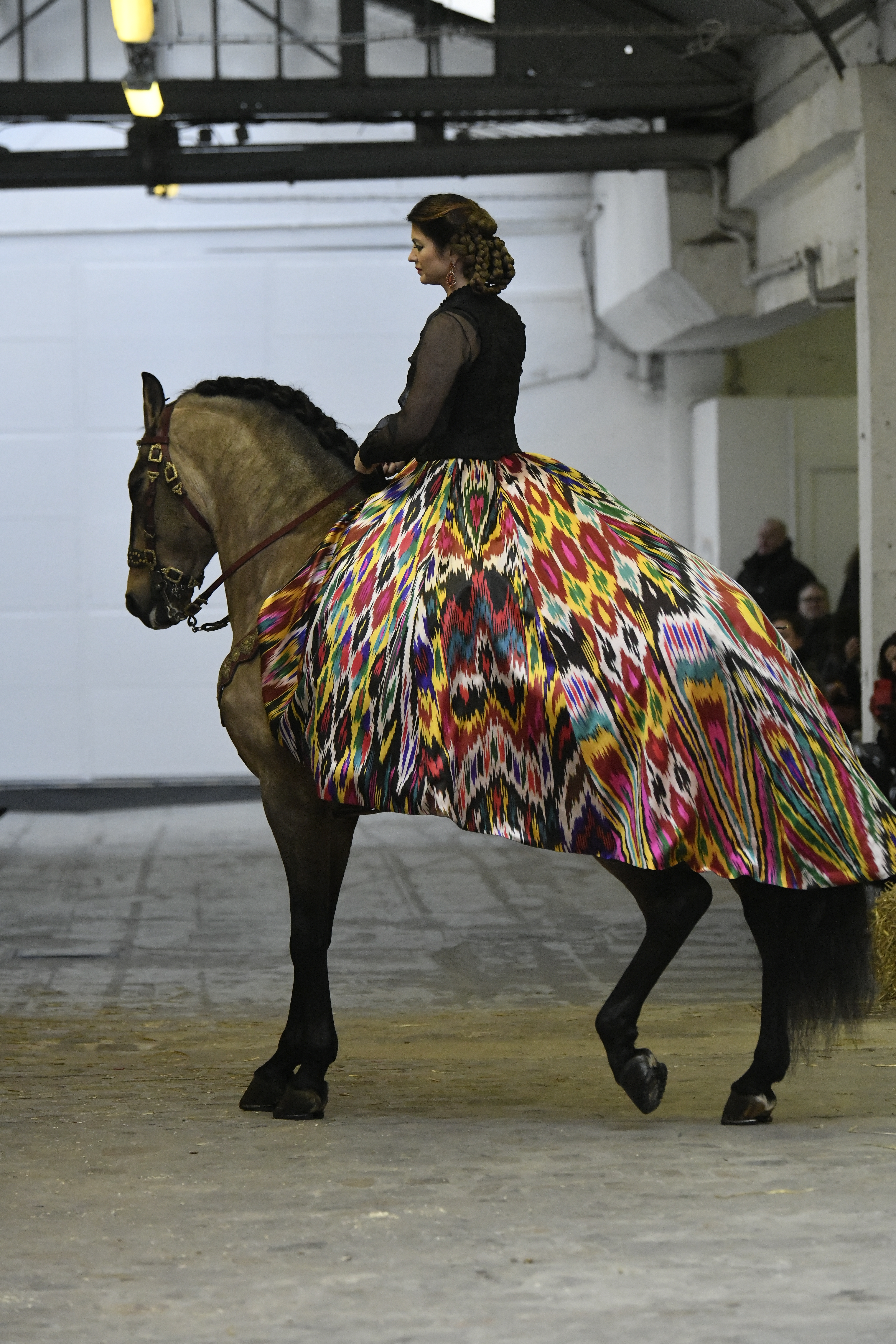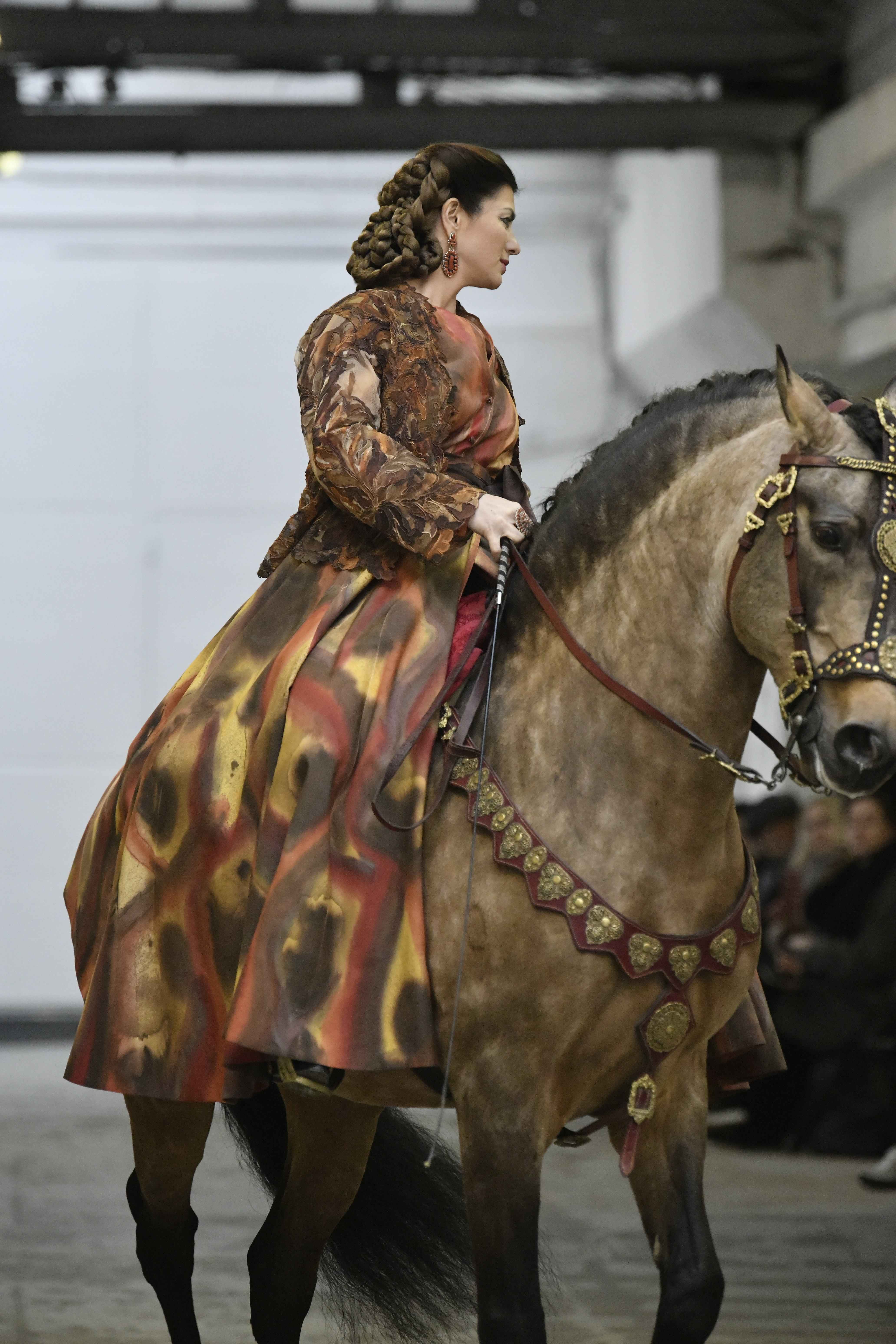 Plus connue sous le nom de Maria Felix, La Doña est l’une des figures centrales de l’âge d’or du cinéma mexicain. Maria Felix est née à Alamos, dans l’état de Sonora, au Nord du Mexique, d’un Indien Yaqui et d’une descendante d’Espagnol. Son père est propriétaire d’un modeste ranch, d’où sont amour pour les chevaux. Petite fille, elle préfère grimper aux arbres et rivaliser avec les garçons, plutôt que d’apprendre la broderie et les prières. A 16 ans, elle est élue Reine de Beauté de sa province et échappe à l’emprise parternelle en épousant Enrique Alvarez qui passe par là. Elle le quittera, non sans qu’il lui ait fait le plus beau cadeau du monde. Enrique Alvarez Felix sera l’ enfant unique de La Doña. Il deviendra, lui-même, acteur et ne cessera de collectionner photos et souvenirs de sa mère. Augustin Lara, “l’homme à la voix d’or”, grand mythe de la chanson latino-americaine, est son deuxième époux. Il composera, en son honneur, en 1947, “Maria Bonita”, qui deviendra un autre de ses surnoms. Jorge Negrete, gloire de la chanson et du cinéma mexicain, devient son troisième mari, en 1952. Ils s’étaient rencontrés dix ans auparavant, sur le tournage “Le Rocher des âmes perdues”, non sans heurt ! Car, entre temps, Maria Felix est tout simplement devenue actrice. Jorge Negrete, que l’on dit aussi laid que séduisant, a fait tapisser la chambre de leur rendez-vous de pétales de roses. Elle épouse, après, Alex Berger, un financier français qui lui offrira ses chevaux de course, ses bijoux. Elle a aussi vécu un amour passionné avec Suzanne Baulé, dite Frede, qui dirigeait alors “Le Carrolls”, un cabaret de la rue de Ponthieu. Leur idylle s’achèvera en procés. Elle passera la fin de sa vie en compagnie du peintre Antoine Tzapoff, entre Paris et Mexico. Elle sera la vedette de 47 films, elle tourne au Mexique, en Argentine mais aussi en France et en Italie. Elle aura pour partenaires européens : Jean Gabin dans “French Cancan” de Jean Renoir, Yves Montand dans “Les héros sont fatigués”, Gérard Philippe dans “La fièvre monte à El Pao” de Buñuel, Vittorio Gassman dans “La courrone noire” de Luis Saslavsky, sur une histoire de Jean Cocteau. Les films mexicains dont elle est la vedette s’intitulent: “La Devora dora”, “La Mujer de todos”, “La Mujer sin alma”, “Doña diabla”, “La Bandida”, “La Belle Otero”, “La Pasión desnuda”. Dans ses films, elle a toujours représenté les femmes fortes, fières, hautaines (Ha ! ce sourcil gauche !). Lors d’une interview, elle déclare : “On admirait ma beauté et mon intelligence, je n’étais qu’une femme avec un coeur d’homme. Une guerrière.” D’où un autre de ses surnoms : La Caballera. Avec elle, la réalité et la fiction se confondent. Elle incarne la passion, l’érotisme, un magnétisme certain. Pour parfaire le mythe, La Doña s’est éteinte dans sa maison de Polanco, à Mexico, en plein soleil, le jour de son anniversaire. Elle avait 88 ans. Avec cette histoire, il faut espérer le retour de ces femmes que l’on voit, sur lesquelles l’on se retourne, qui vous hypnotisent. Avec elle, c’est aussi le retour de la fameuse expression “qui peut le plus, peut le moins”. On l’a vue porter des vêtements folk mais aussi de la Couture, toujours chapeautée et couverte de bijoux. Elle a créé sa propre mode avec une liberté totale et un naturel désarmant. N’est-ce pas cela l’élégance ? J’aurais aimé qu’elle s’approprie certaines de nos créations avec sa propre imagination. N’est-ce pas cela la Haute Couture ?