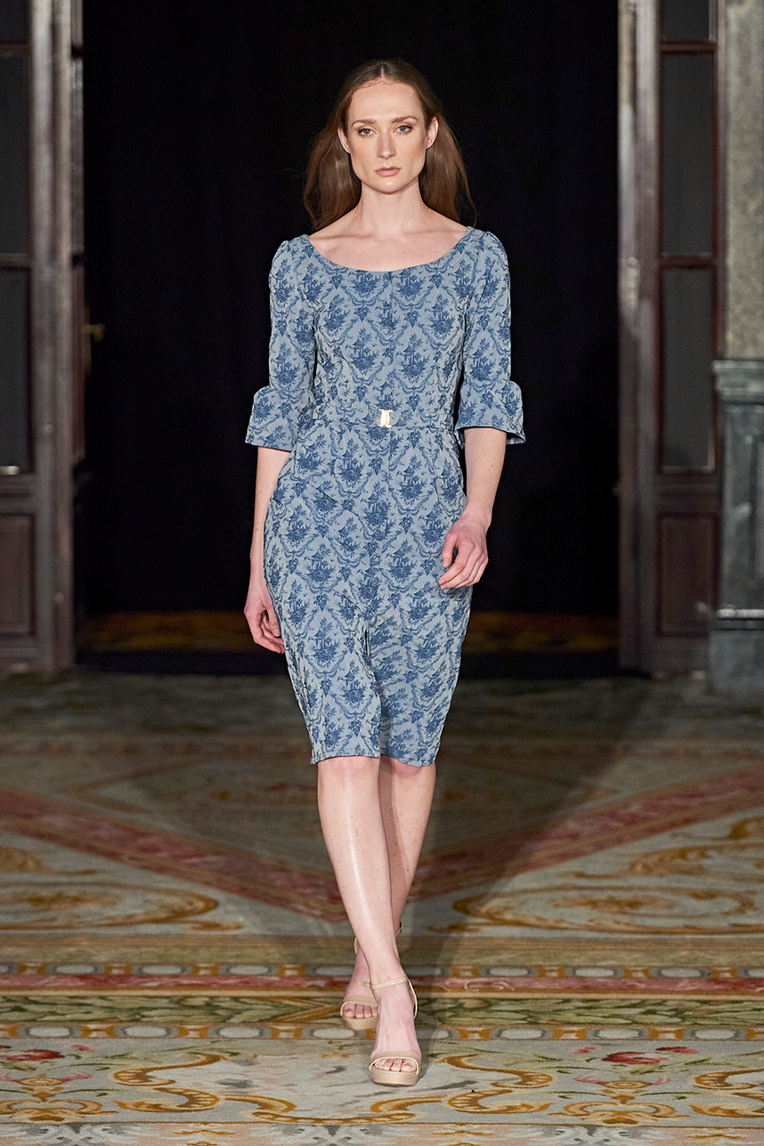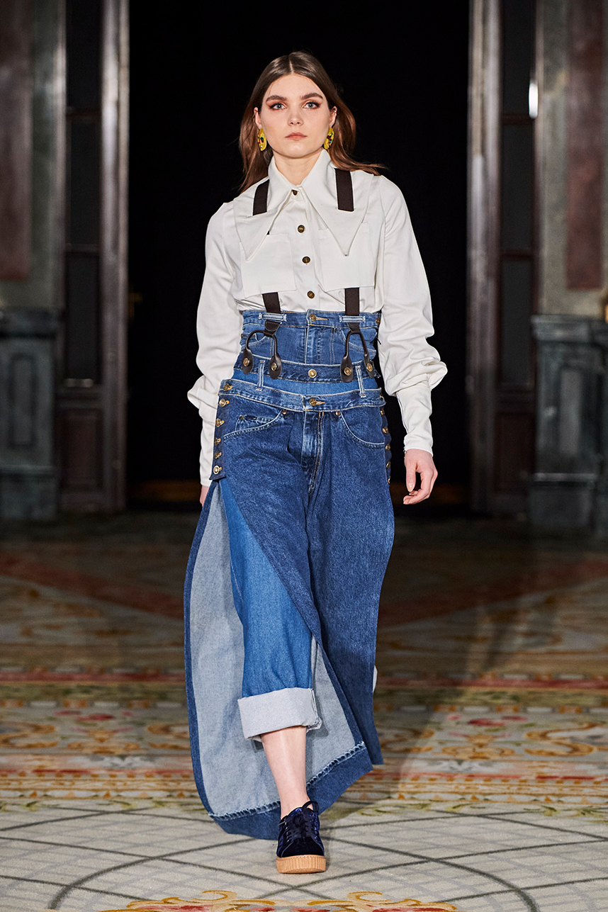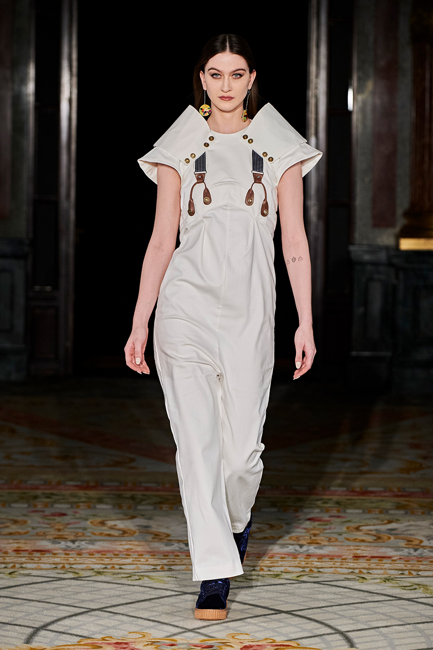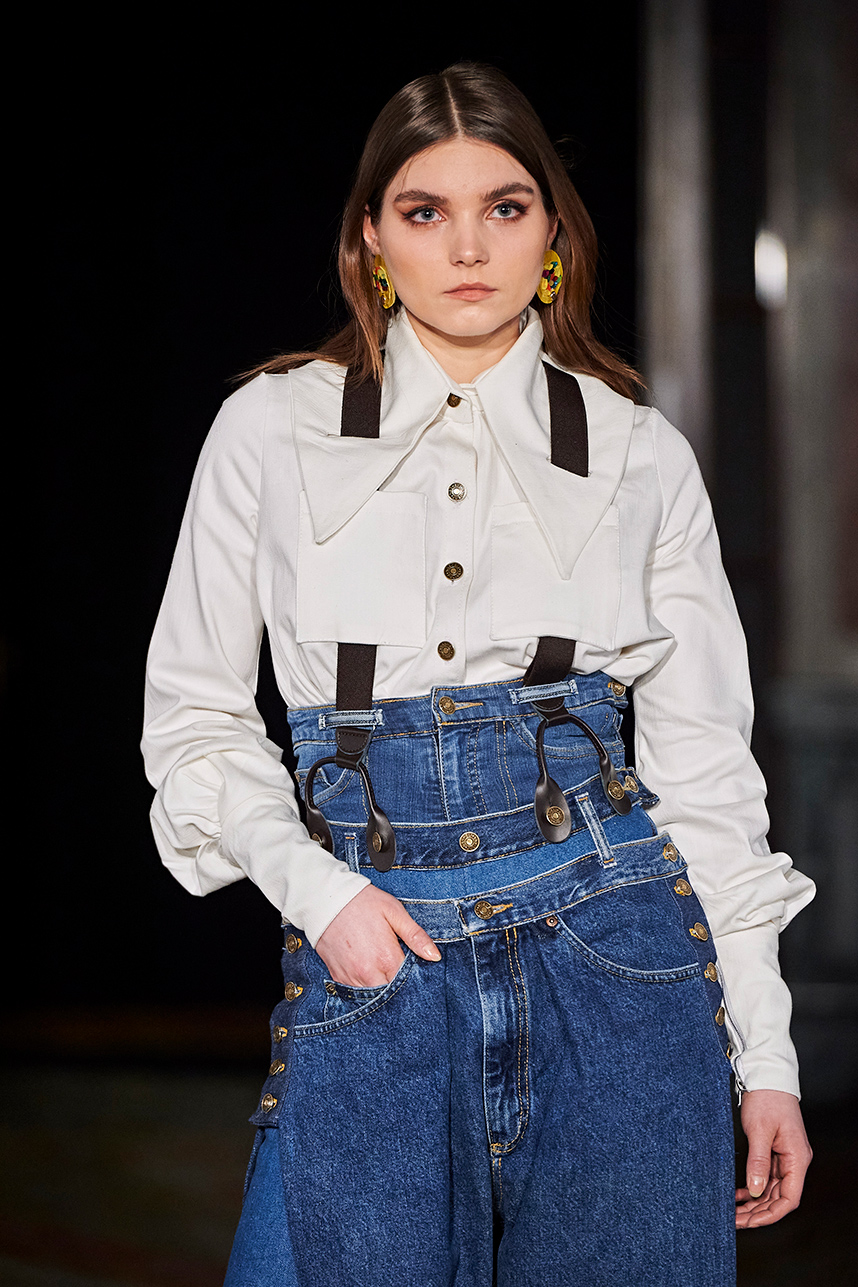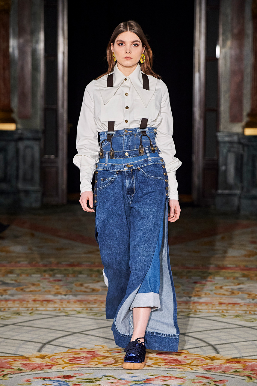 Puerto Rican designer Nashili of Netflix’s “Next In Fashion” presented her collection “Appropriation,” inspired by politics, social and religious issues. The collection featured upcycled, organic and recycled fabrics with an emphasis on denim constructed in the most interesting and architecturally structured way. Denim in various hues of blues were paired with cream, and white separates.