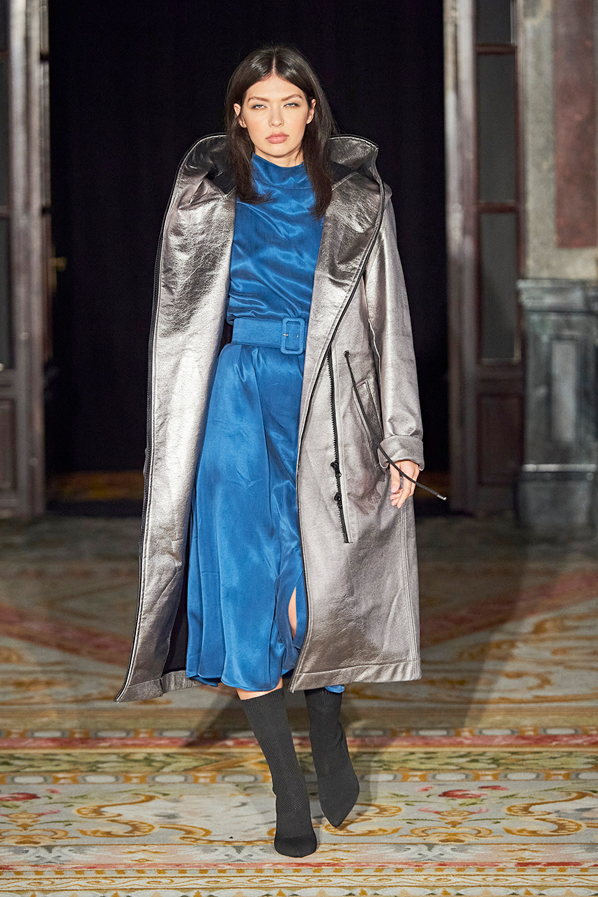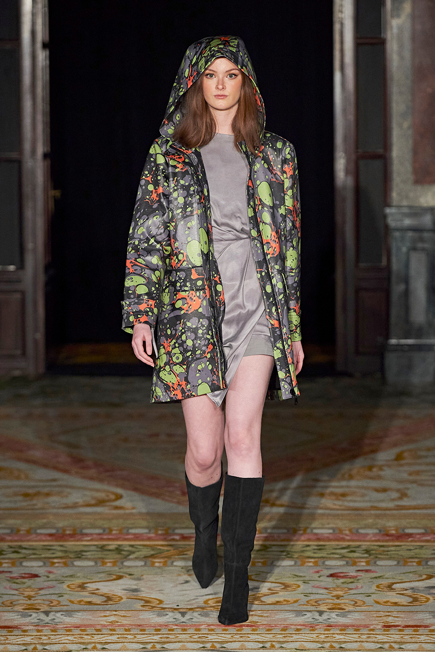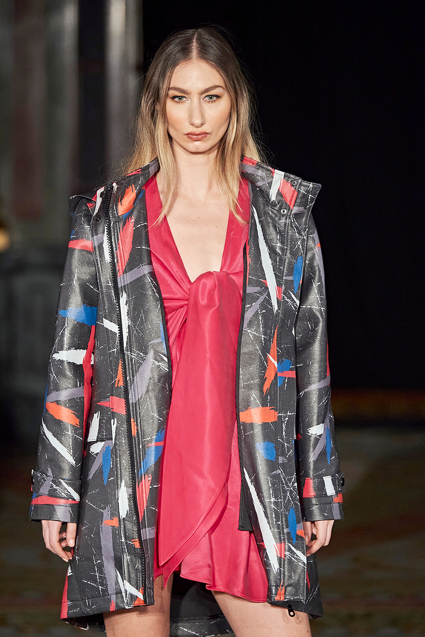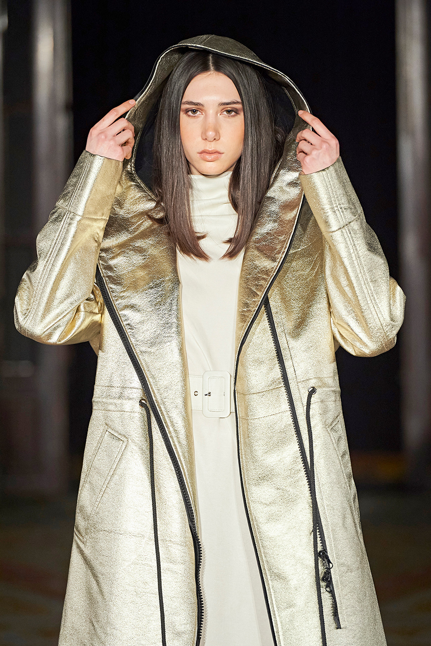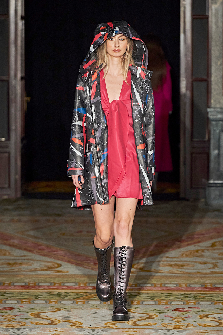 Turkey based designer Fatos Tezcan fashion brand ShotOf, delivered her signature easy-glam aesthetic in her collection “Marbles.” Tezcan’s love for energetic colors and dynamic prints inspired a collection of vibrant, wearable, and stylish pieces that are uniquely transitional from day to night layered with coats that were inspired, fresh and unique. The collection featured modern, versatile looks made with various fabrics such as high quality vegan cupro textiles, cashmere, PVC covered raincoats, and samun. Autumnal shades of pink, blue, orange, brown and grey were mixed masterfully with carefully edited pops of fuschia and metallic gold and silver coats for an overall polished and elevated feel.