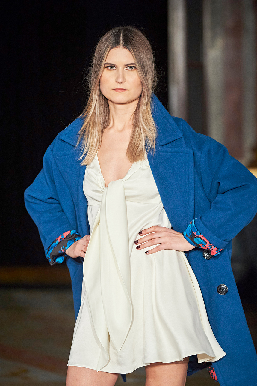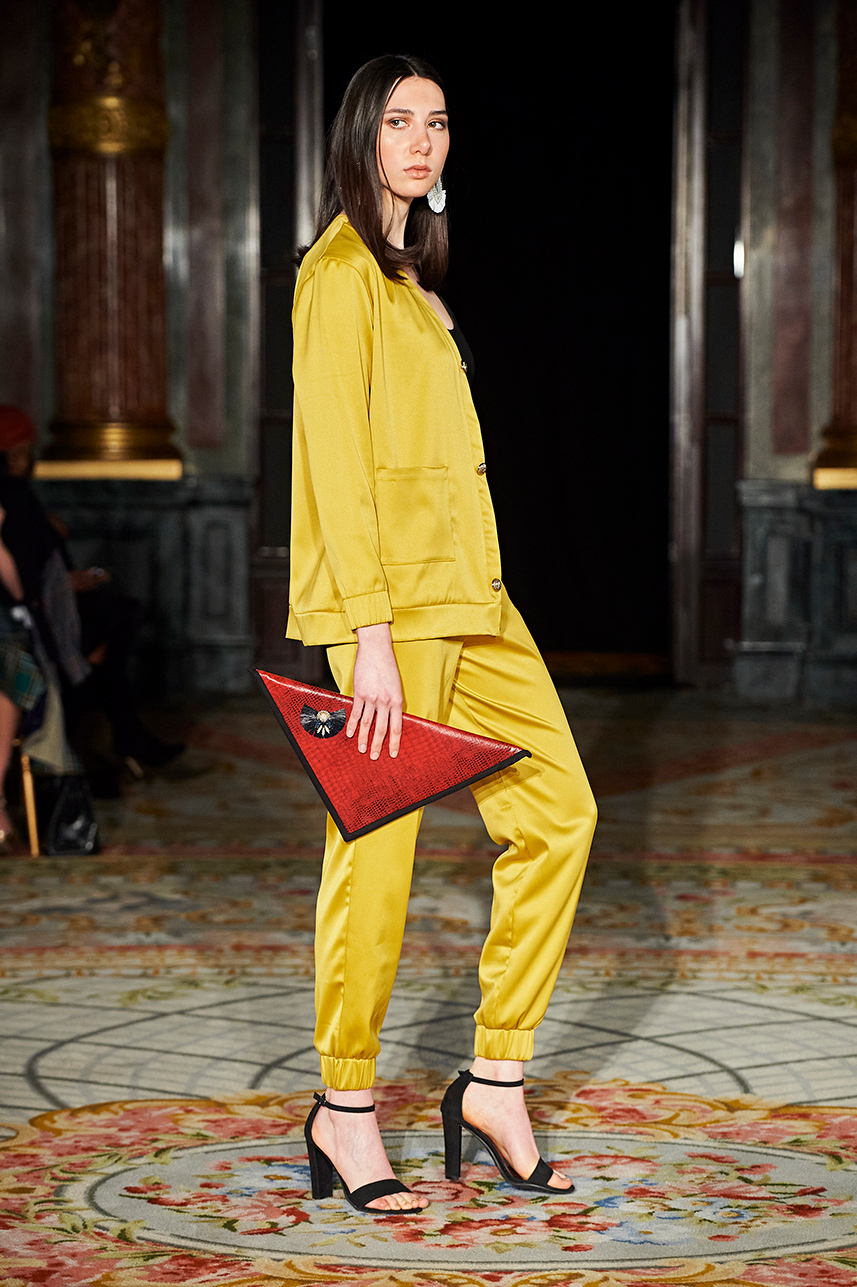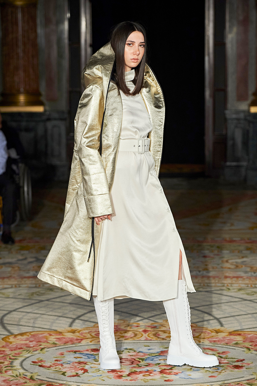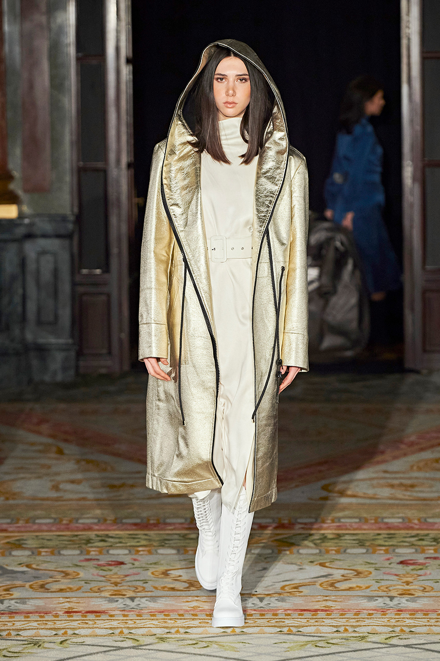 Turkey based designer Fatos Tezcan fashion brand ShotOf, delivered her signature easy-glam aesthetic in her collection “Marbles.” Tezcan’s love for energetic colors and dynamic prints inspired a collection of vibrant, wearable, and stylish pieces that are uniquely transitional from day to night layered with coats that were inspired, fresh and unique. The collection featured modern, versatile looks made with various fabrics such as high quality vegan cupro textiles, cashmere, PVC covered raincoats, and samun. Autumnal shades of pink, blue, orange, brown and grey were mixed masterfully with carefully edited pops of fuschia and metallic gold and silver coats for an overall polished and elevated feel.
