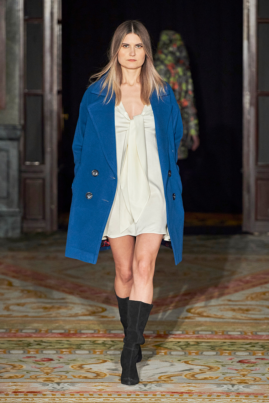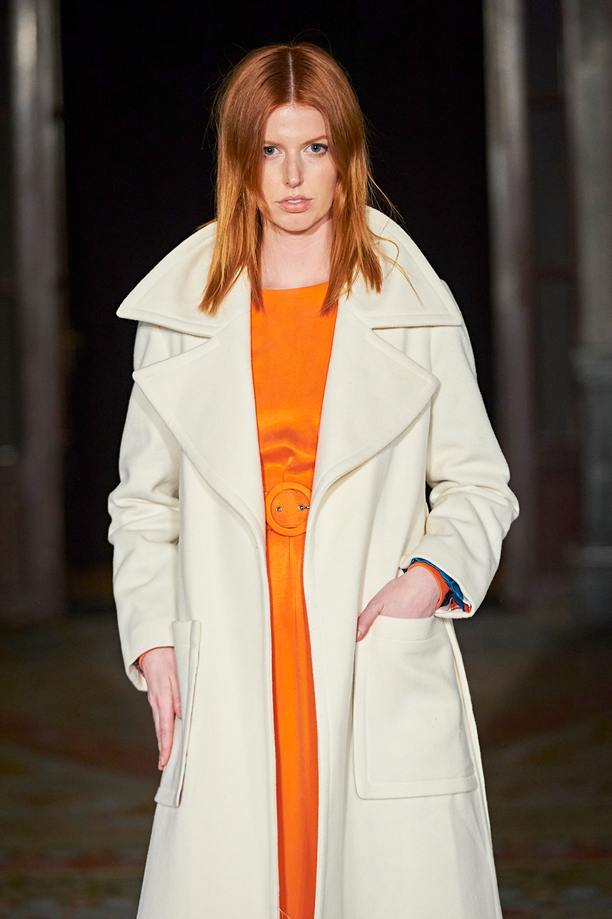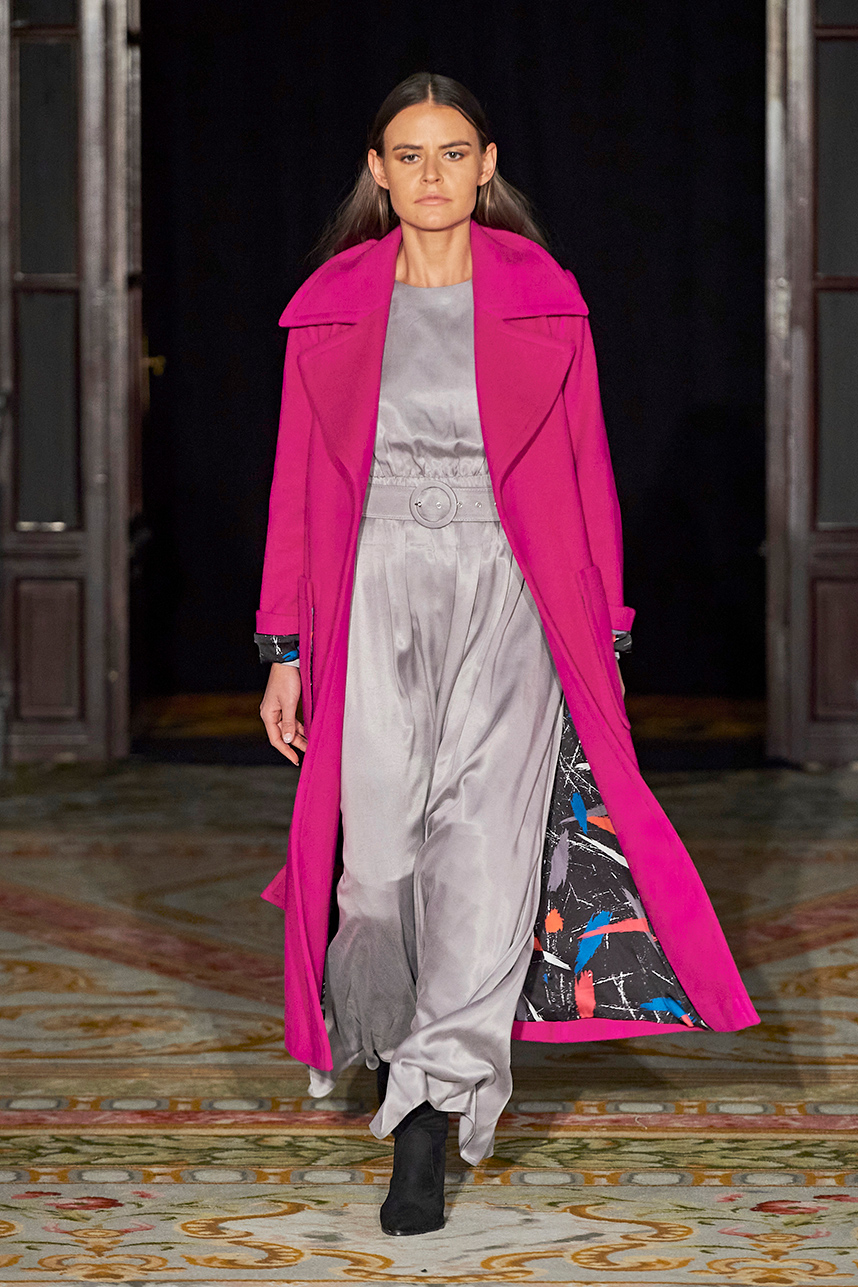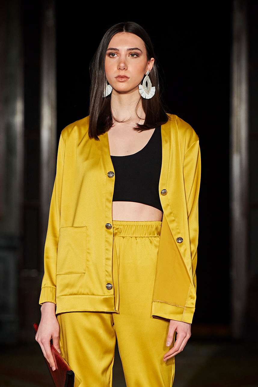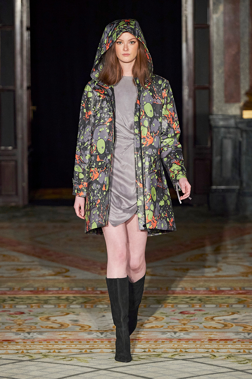 Turkey based designer Fatos Tezcan fashion brand ShotOf, delivered her signature easy-glam aesthetic in her collection “Marbles.” Tezcan’s love for energetic colors and dynamic prints inspired a collection of vibrant, wearable, and stylish pieces that are uniquely transitional from day to night layered with coats that were inspired, fresh and unique. The collection featured modern, versatile looks made with various fabrics such as high quality vegan cupro textiles, cashmere, PVC covered raincoats, and samun. Autumnal shades of pink, blue, orange, brown and grey were mixed masterfully with carefully edited pops of fuschia and metallic gold and silver coats for an overall polished and elevated feel.
