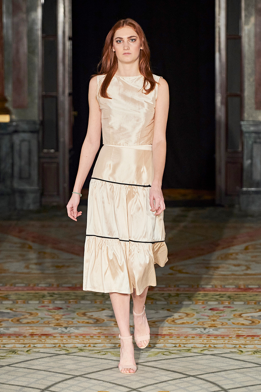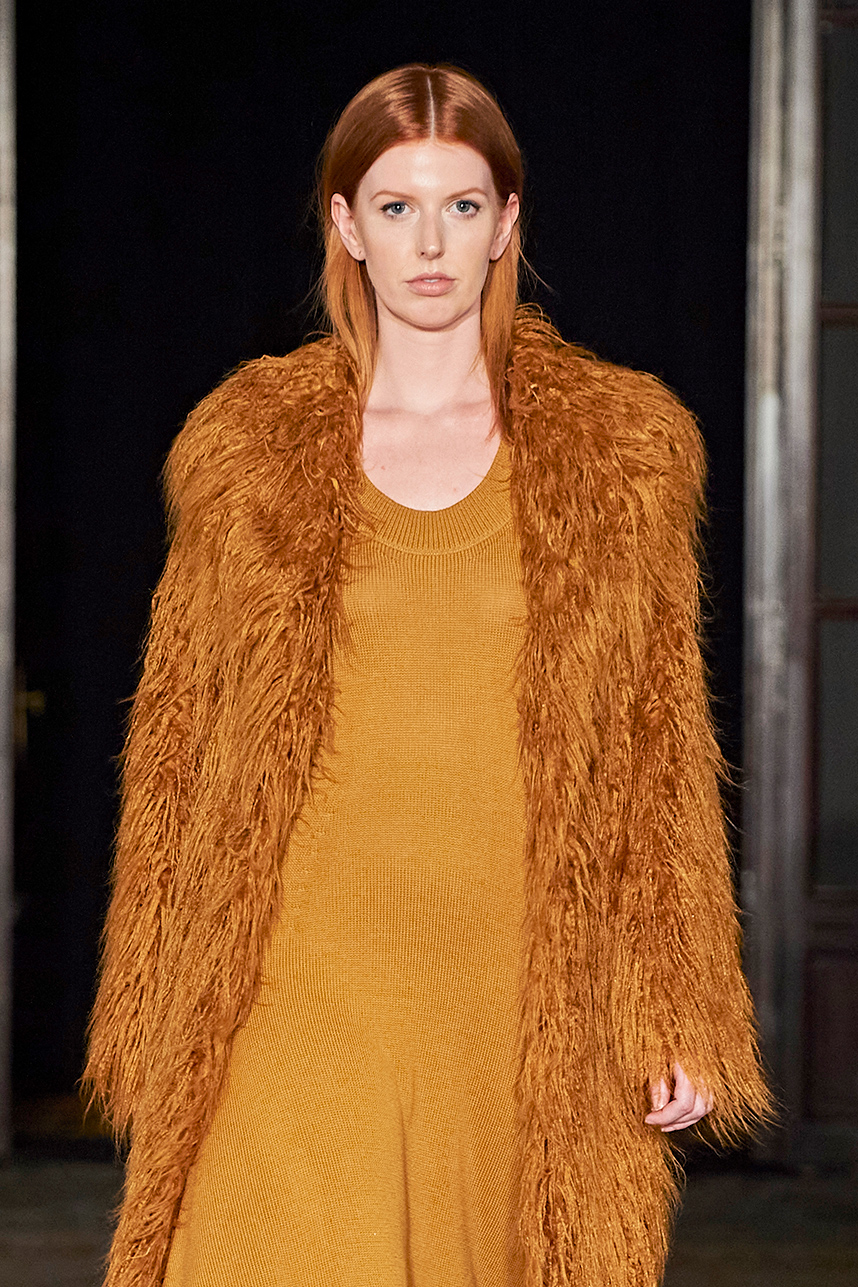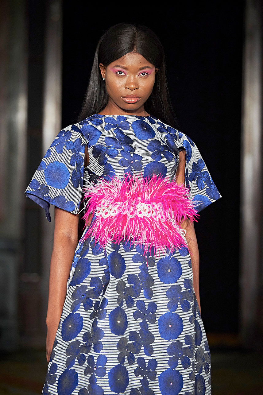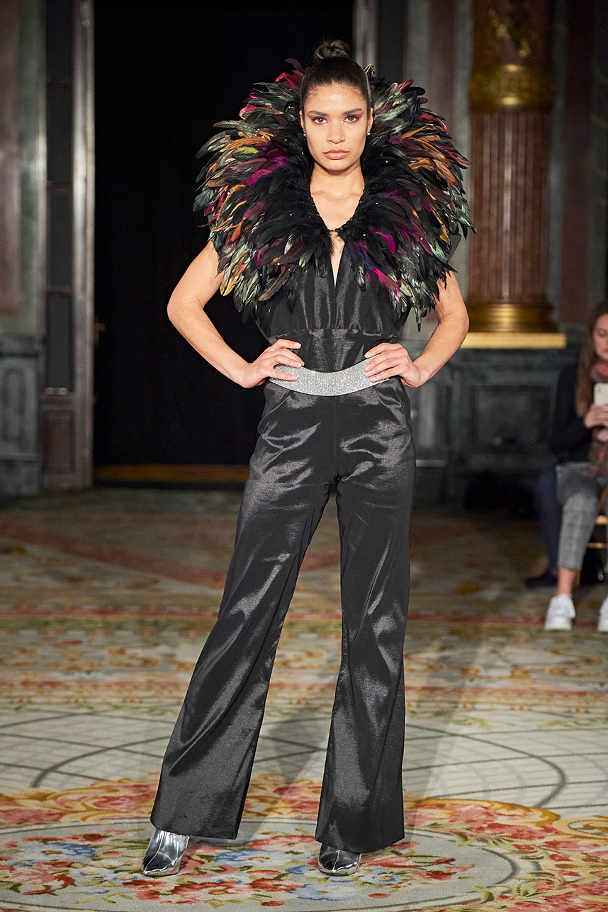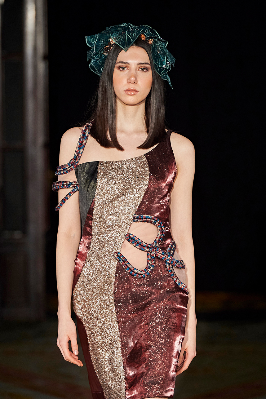 Singapore-based designer Tessa Lont launched Lontessa in 2014. The AW20 collection was true to her signature style of thoughtful engagement with sustainability in materials and the elevated life cycles of her garments. Passionate about honouring materials and practice, Lont introduced possum fur outerwear to the globe and into the luxury sphere. SIlks and sequins dominated the couture collection “Buried Treasures” in plums, seaweed greens, sunset blues, rusty golds with shimmery and feather details that dazzled.