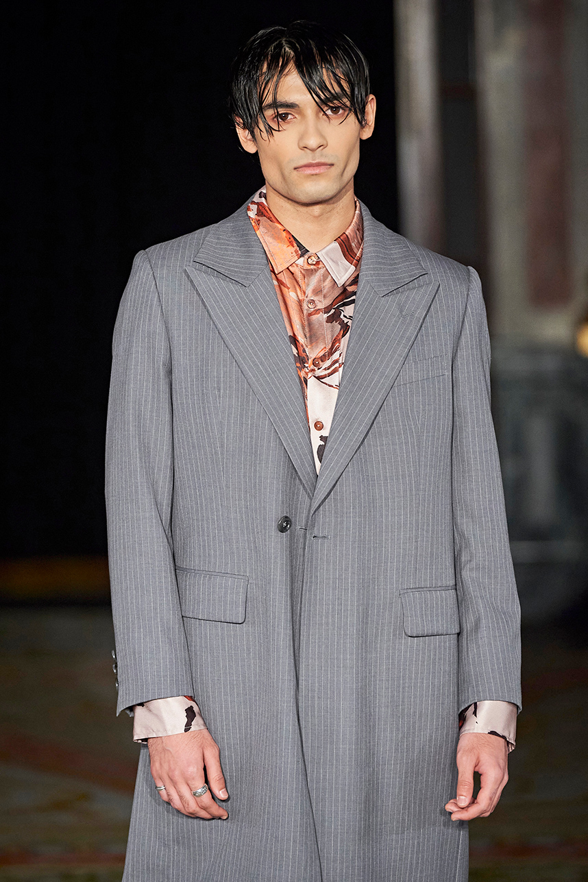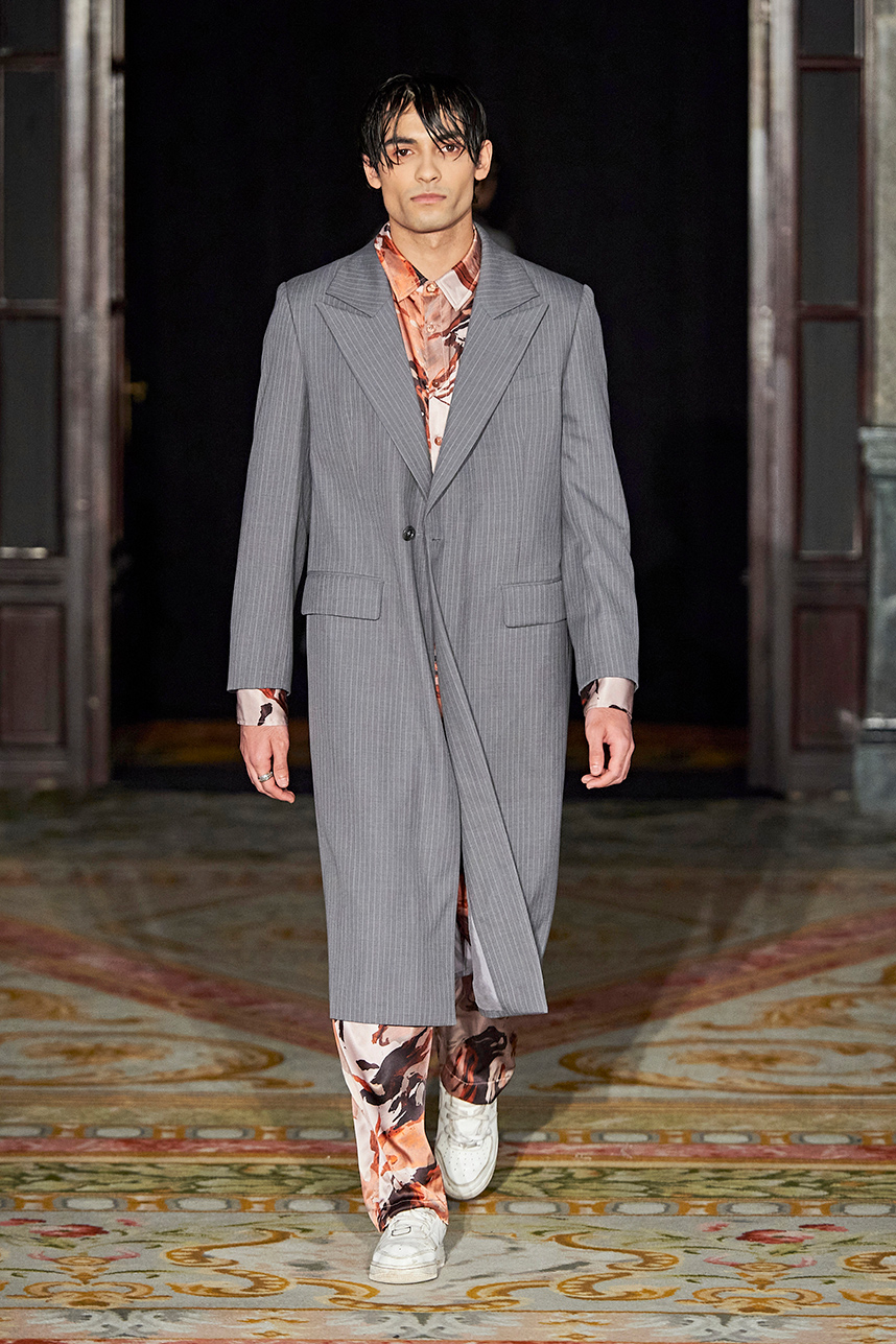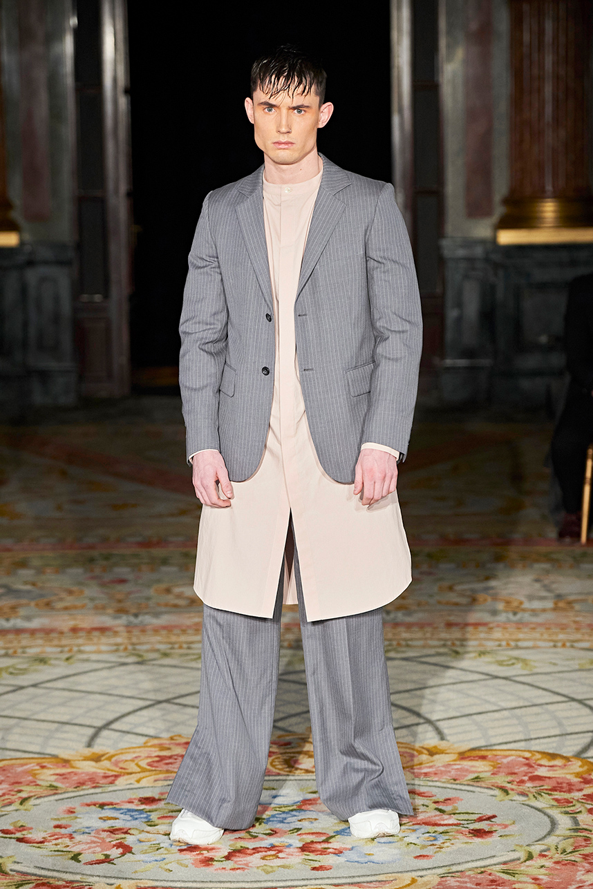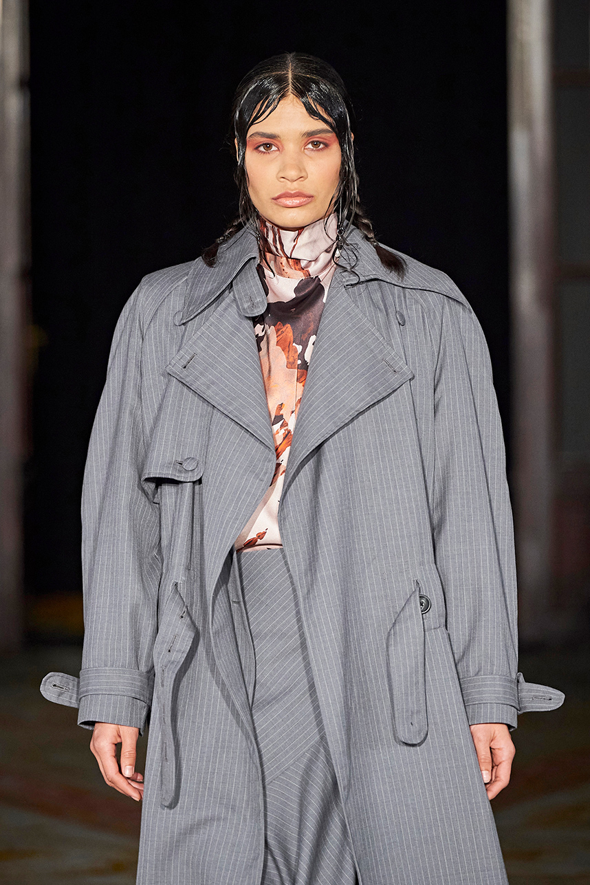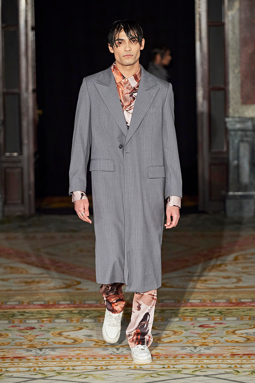 Rickyy Wong’s FW2020 collection « Chinostalgia » was a reflection on the cultural dynamism of Asia’s world cities of the 20th century – Hong Kong and Shanghai. The Hong Kong based designer label produced men’s and women’s collections focusing on high-end fabrics, finishes and textile design techniques representing the best of Asian craftsmanship. The collection rendered a romantic vision of the past in shades of pastel and soft grey, with flowing printed silks, pink and green sharp dressing, Japanese organic cotton suiting, organic silk dresses, crisp wool tailoring referencing the diverse fashion heritage of the region. Fresh and wearable pieces enveloped in a cohesive collection hallmarked by a beautiful abstract print in a pink and peach palette with earth tone highlights.