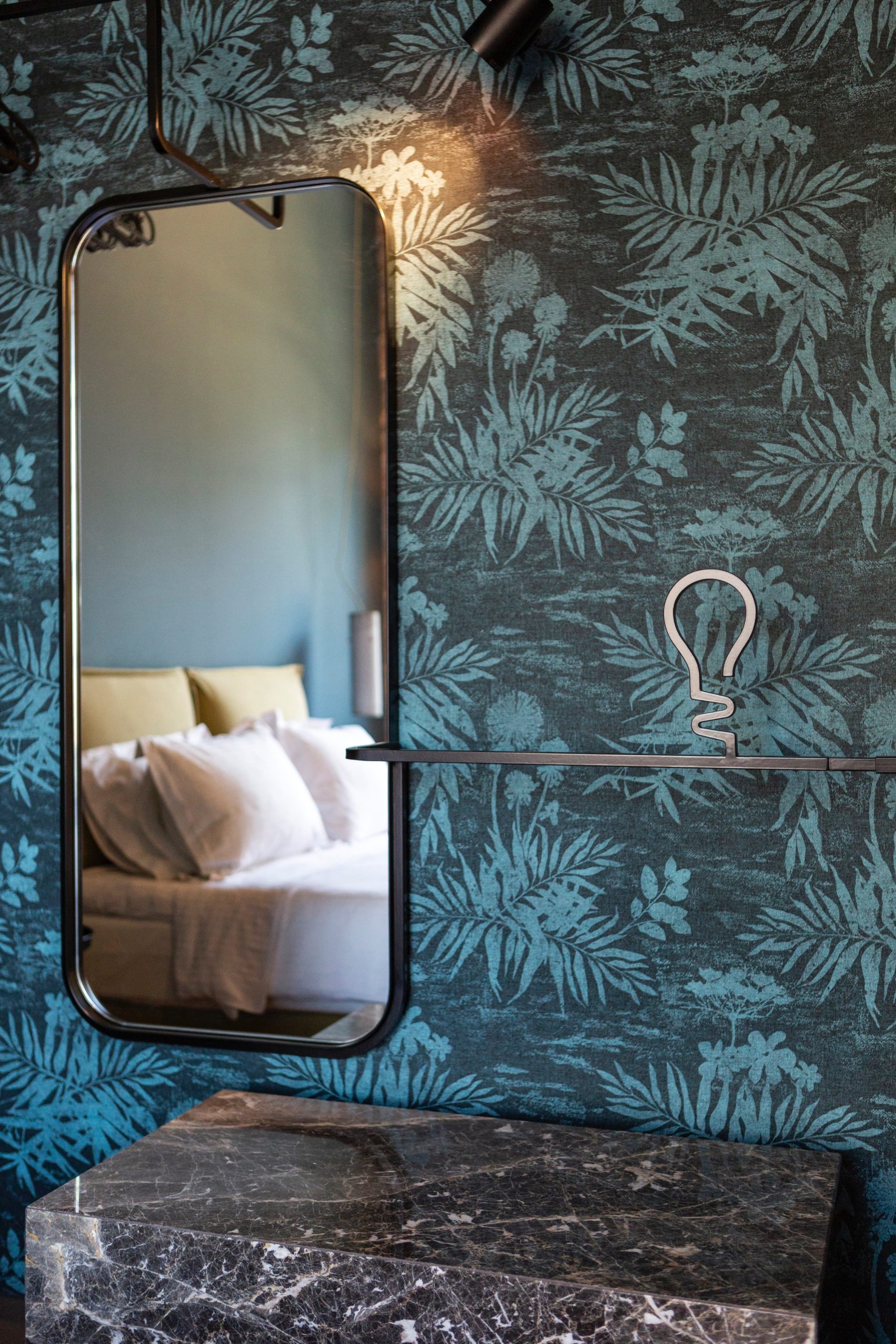 Les espaces publics et les appartements élégamment aménagés présentent un mobilier vintage authentique combiné à des articles design, des papiers peints aux références bohèmes, des luminaires faits à la main et des constructions métalliques personnalisées, des tons terreux et des contrastes de couleurs intenses, ajoutant une identité raffinée et distincte à chaque espace. Des matériaux naturels tels que le chêne ainsi que le marbre grec et des carreaux de grandes dimensions ont été utilisés comme revêtements de murs et de sols.