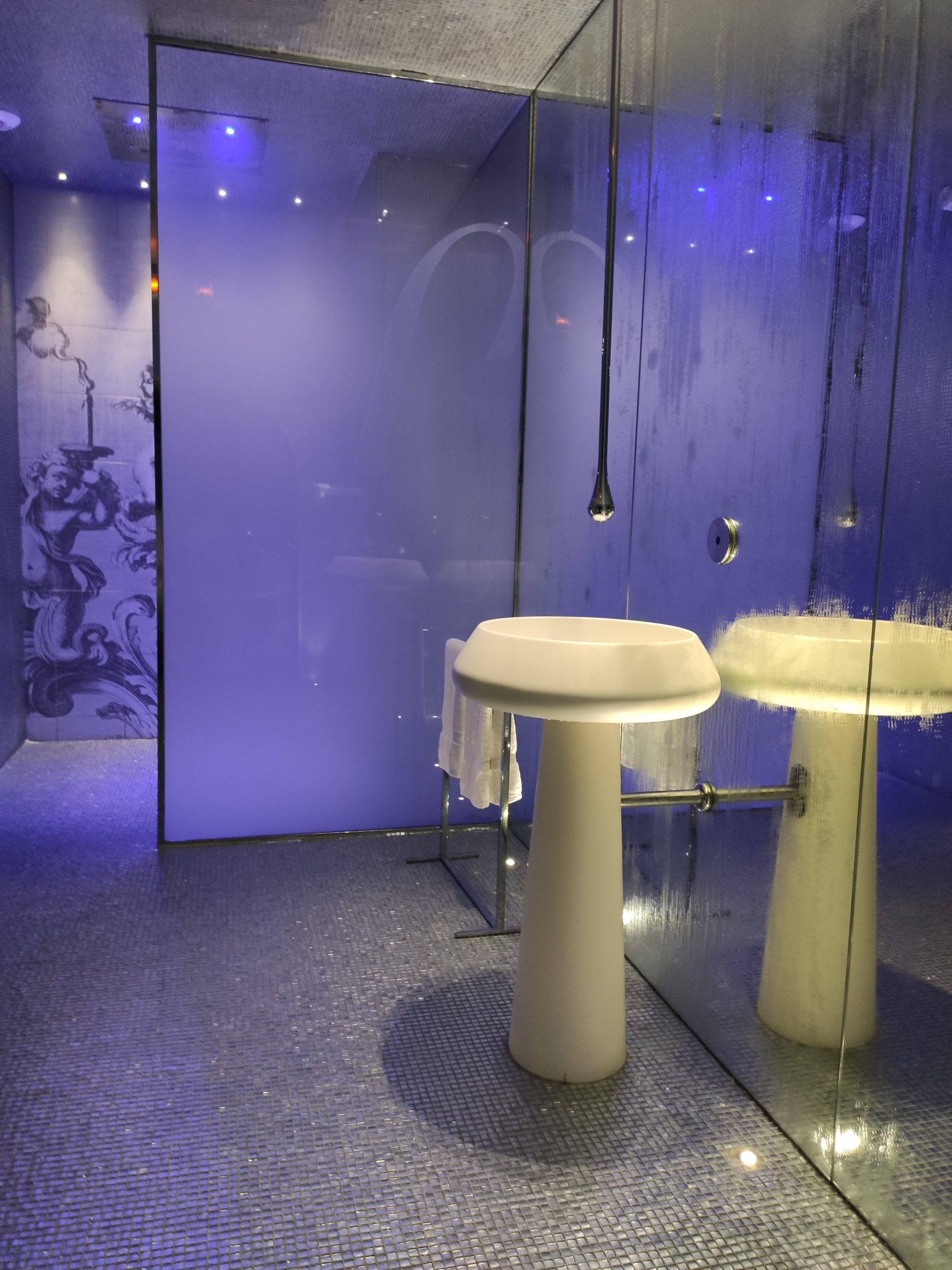 Sublime et vaste, le hammam tout en carreaux de mosaïques argent peut accueillir jusqu’à 6 personnes. Adjacente, la salle de fitness utilise les derniers équipements Technogym et un logiciel Z’Fitness interactif proposant une centaine de cours collectifs – endurance, yoga, méditation.