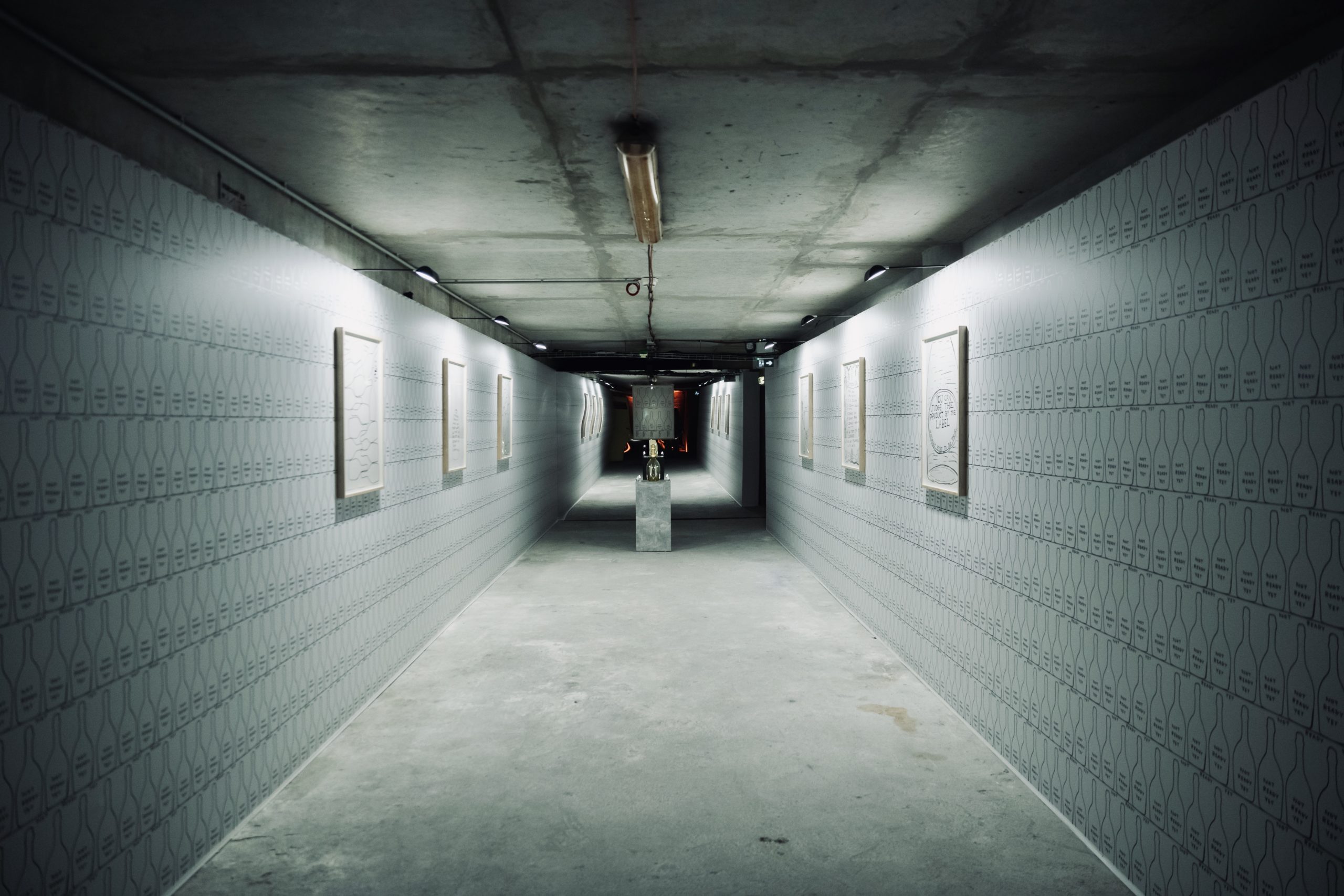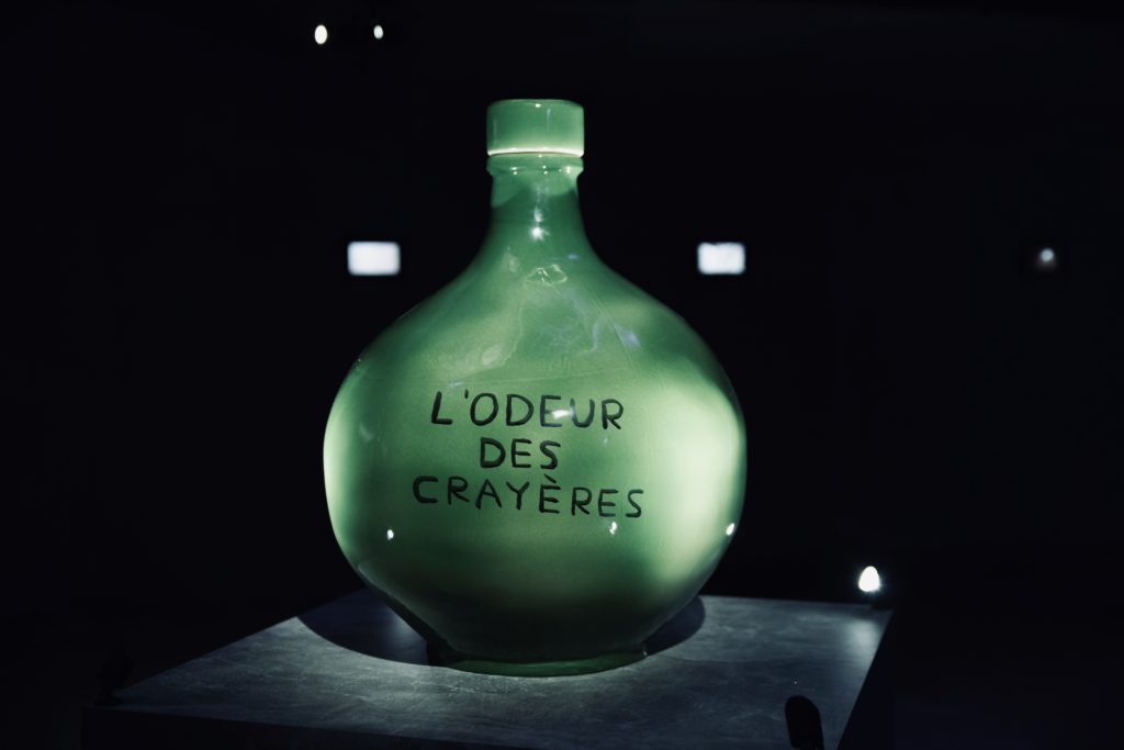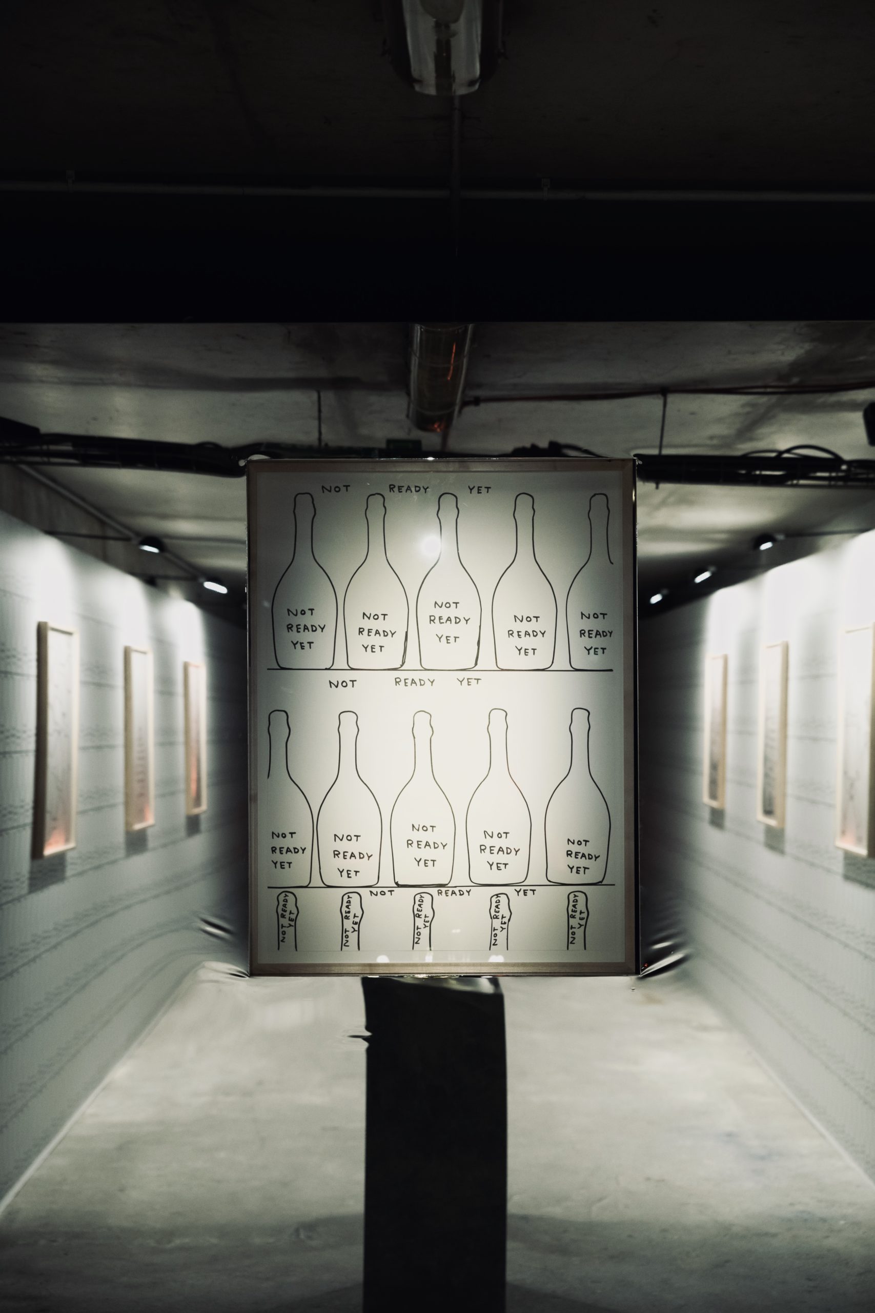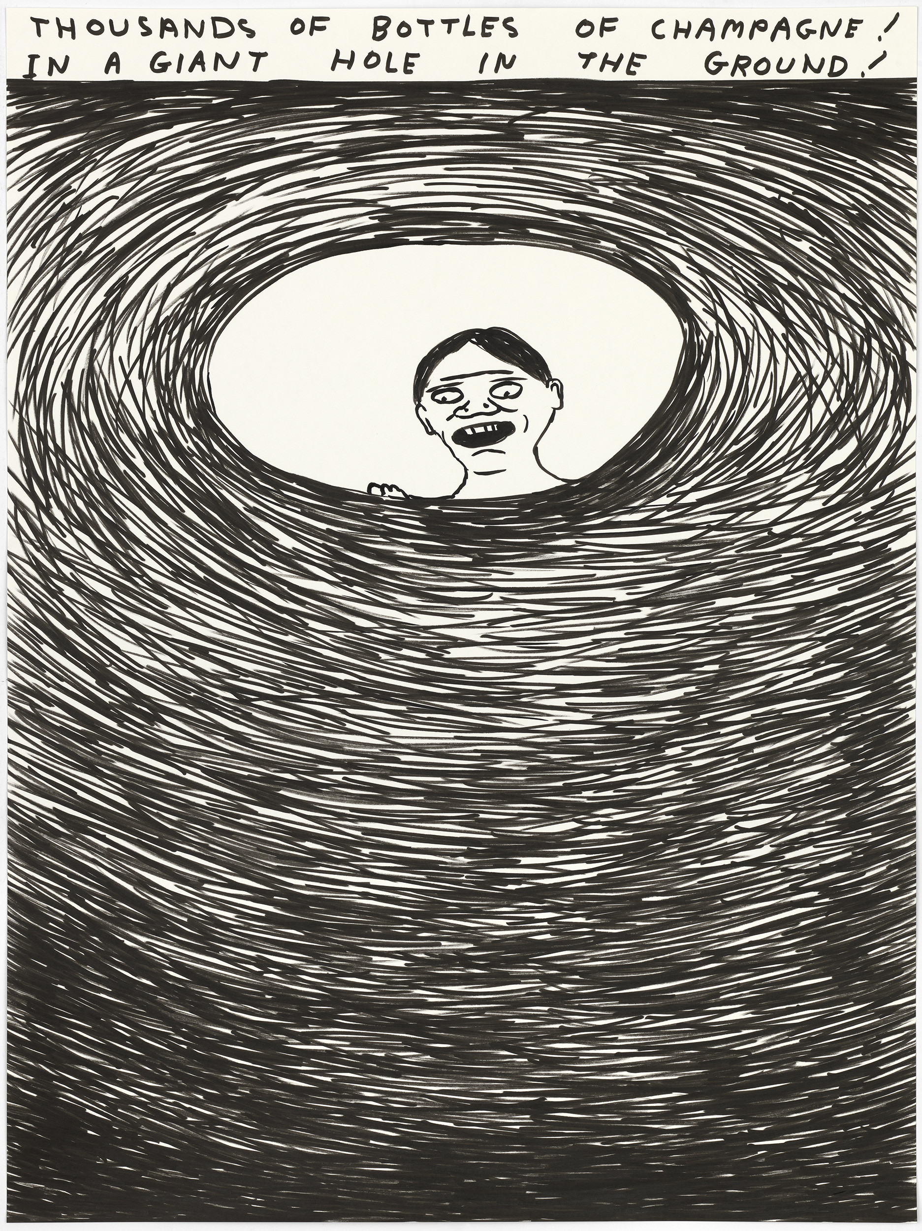 « Lorsque l’on décide de faire une œuvre sur le thème de la fabrication du champagne : il faut visiter plusieurs fois la région champenoise ; il faut échanger avec les professionnels en les écoutant attentivement, puis visiter les crayères, les vignes et les installations de production ; il faut apprendre à déguster du champagne. » explique David Shrigley.