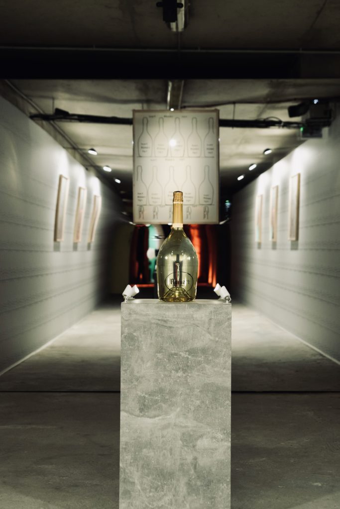 David Shrigley a décidé d’utiliser un jéroboam en raison de sa capacité de conservation exceptionnelle. Comme le rapport oxygène/volume du vin dans un jéroboam est divisé par quatre par rapport à une bouteille classique, le vin vieillit moins vite et exprime plus de complexité, de fraîcheur et de diversité aromatique