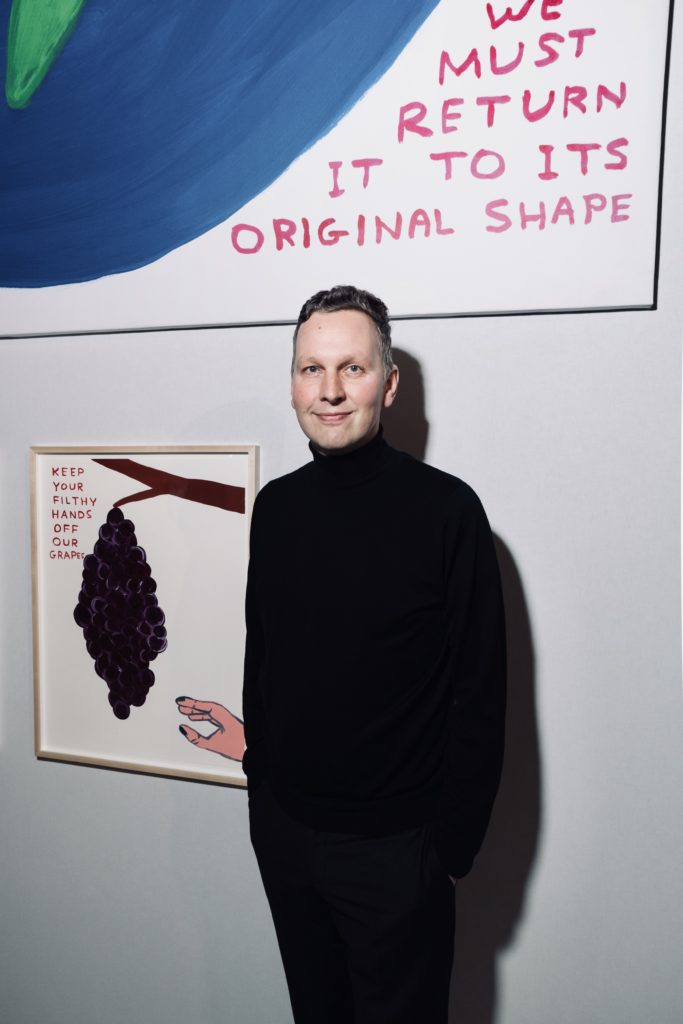 David Shrigley lors de sa découverte de la Maison Ruinart, en Champagne