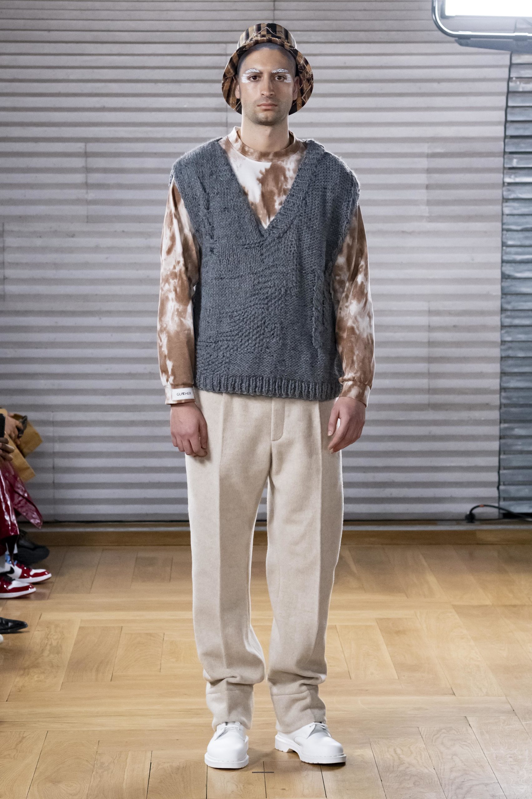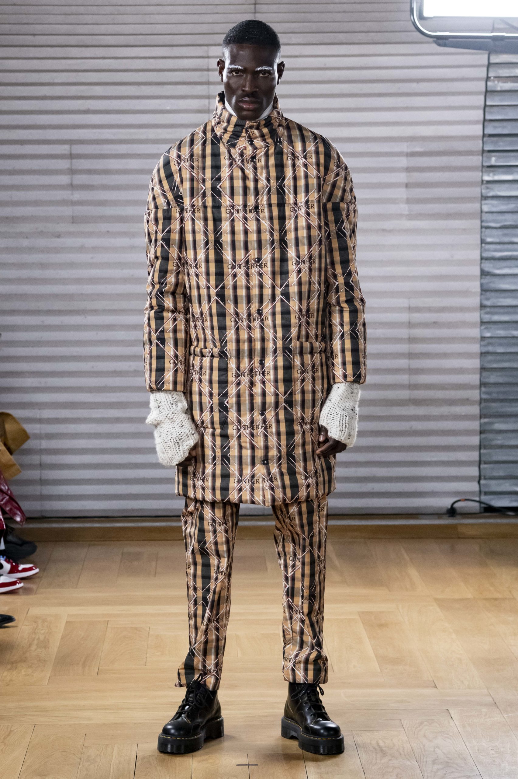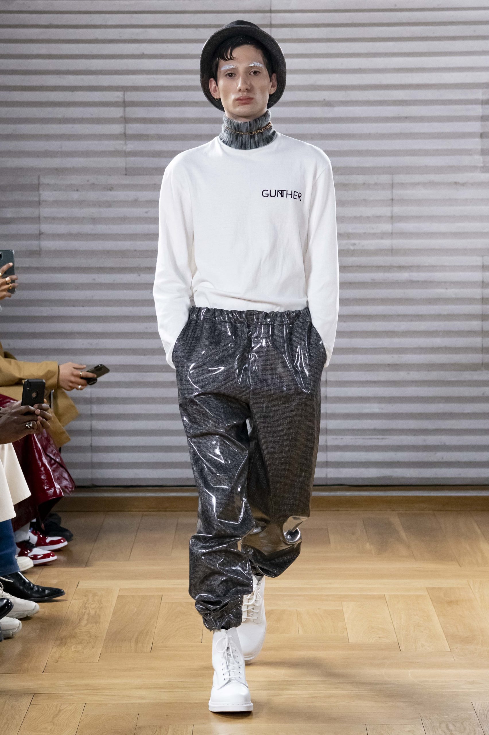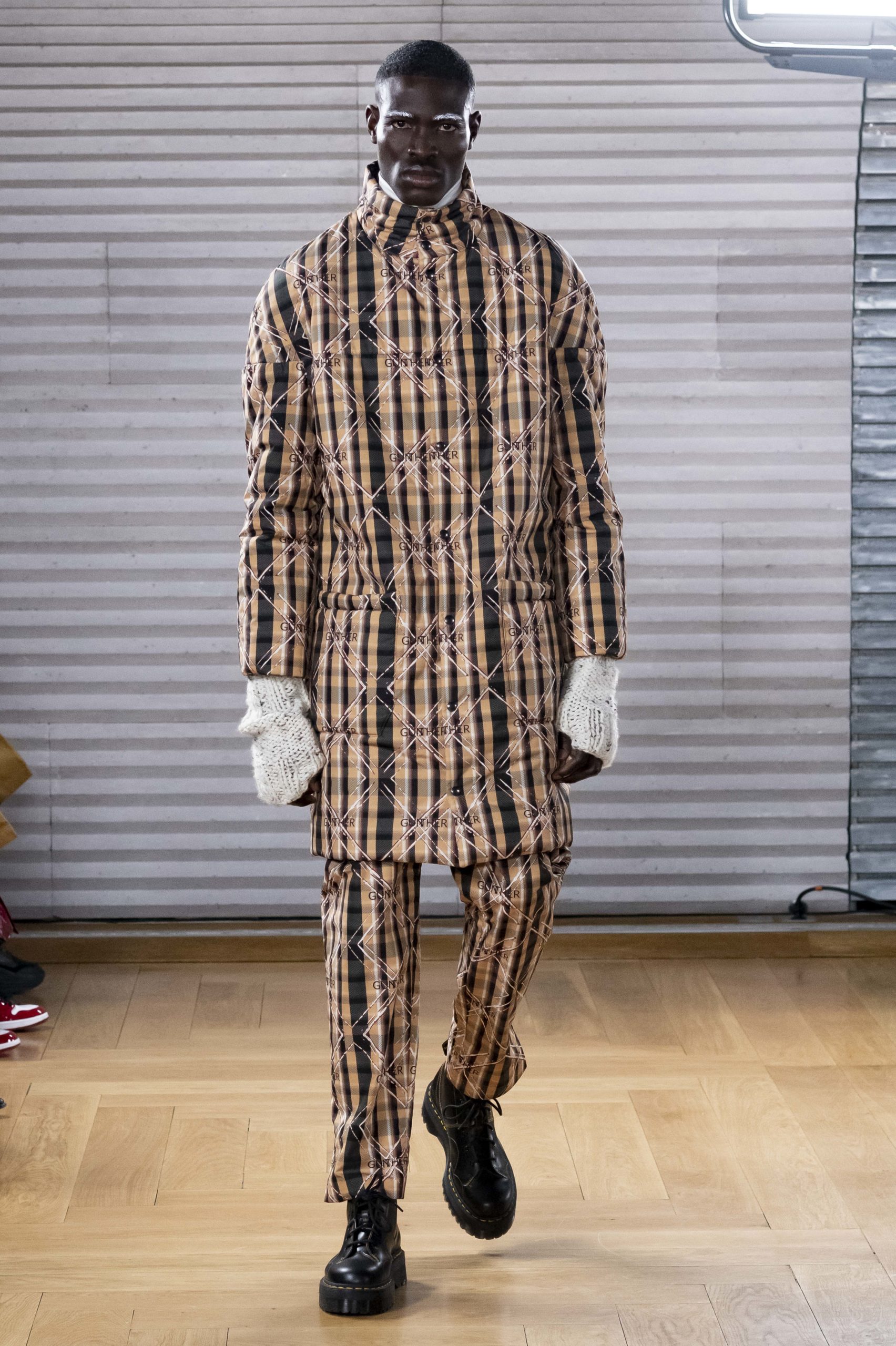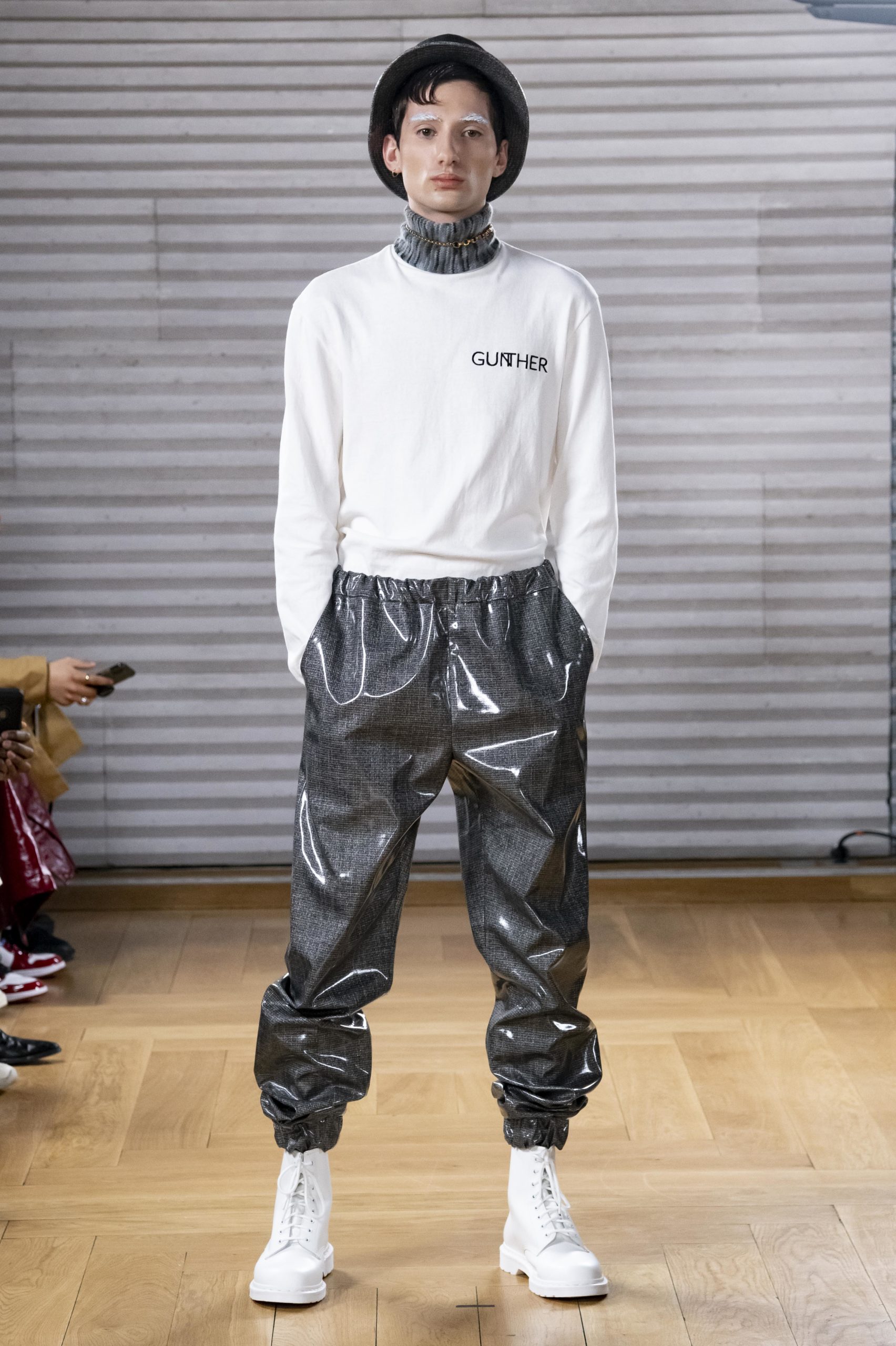 - A Model wearing an outfit from the men s ready to wear collections, autumn winter 2020 2021, original creation, during the Menswear Fashion Week in Paris, from the house of Gunther