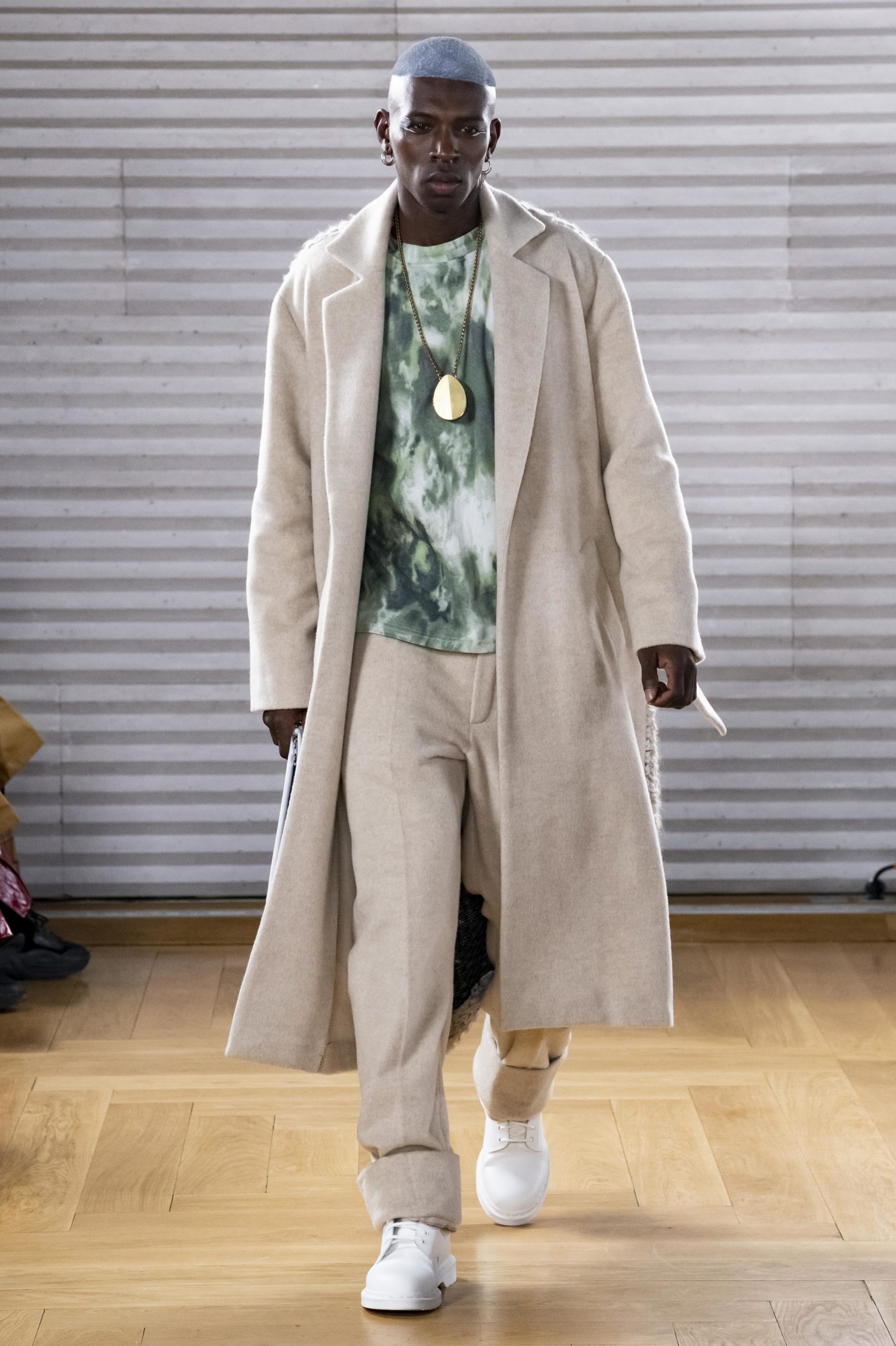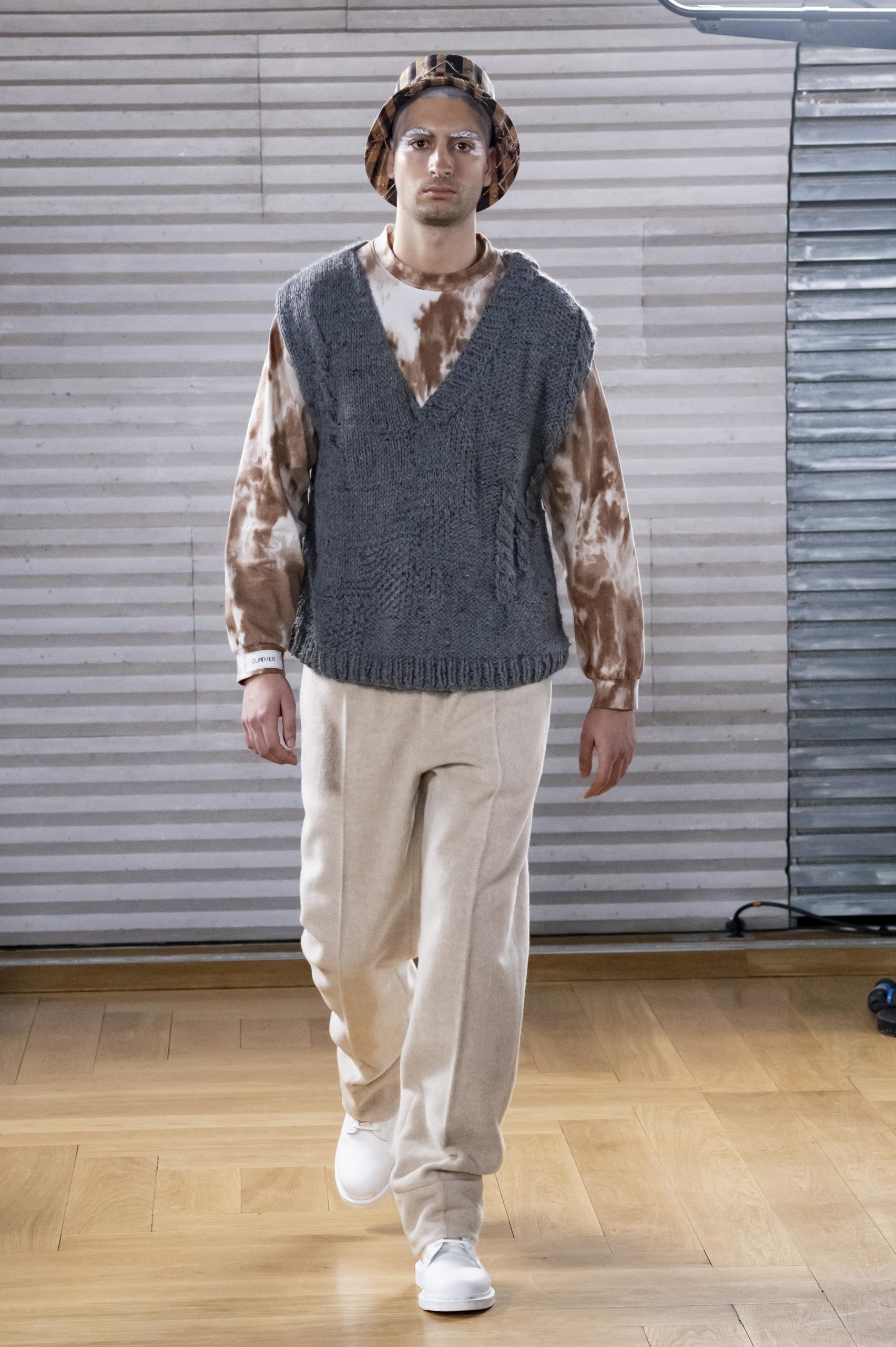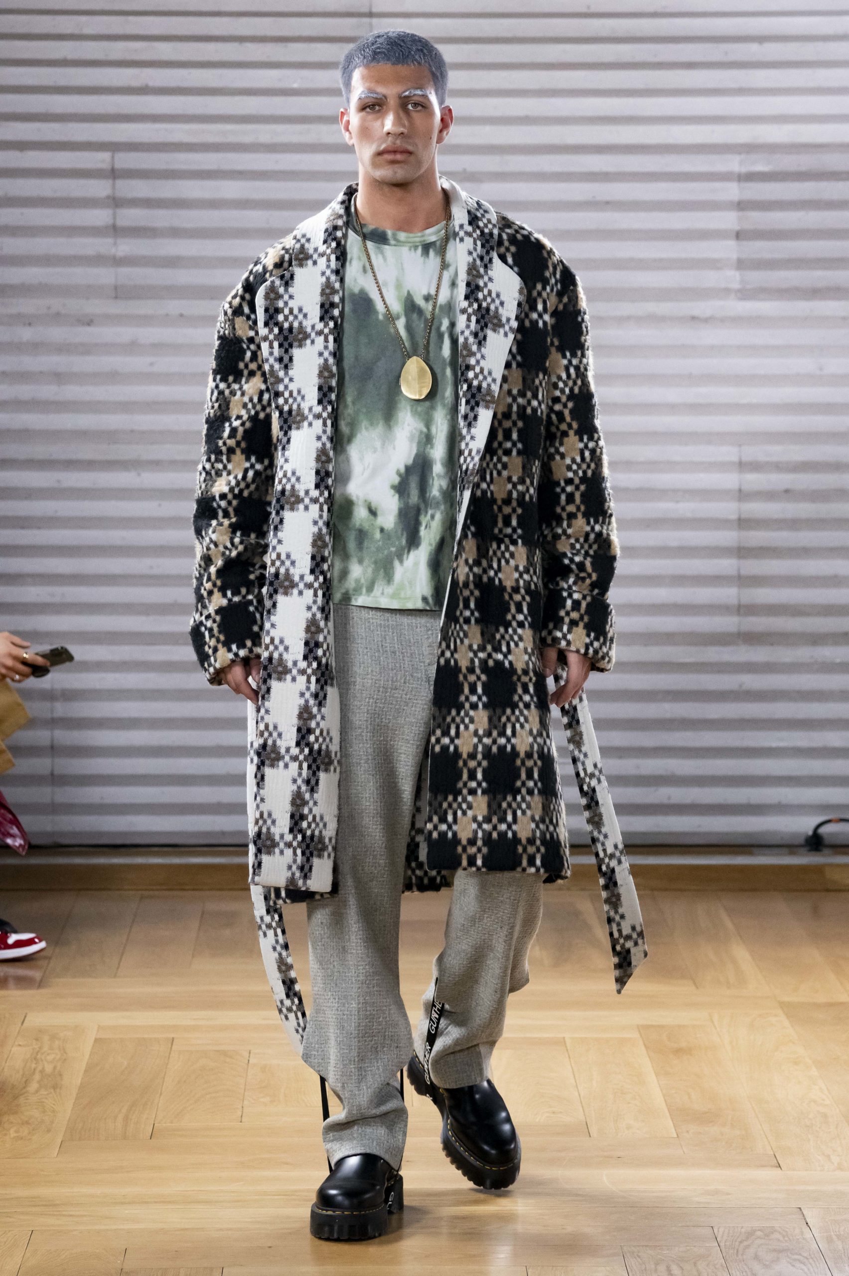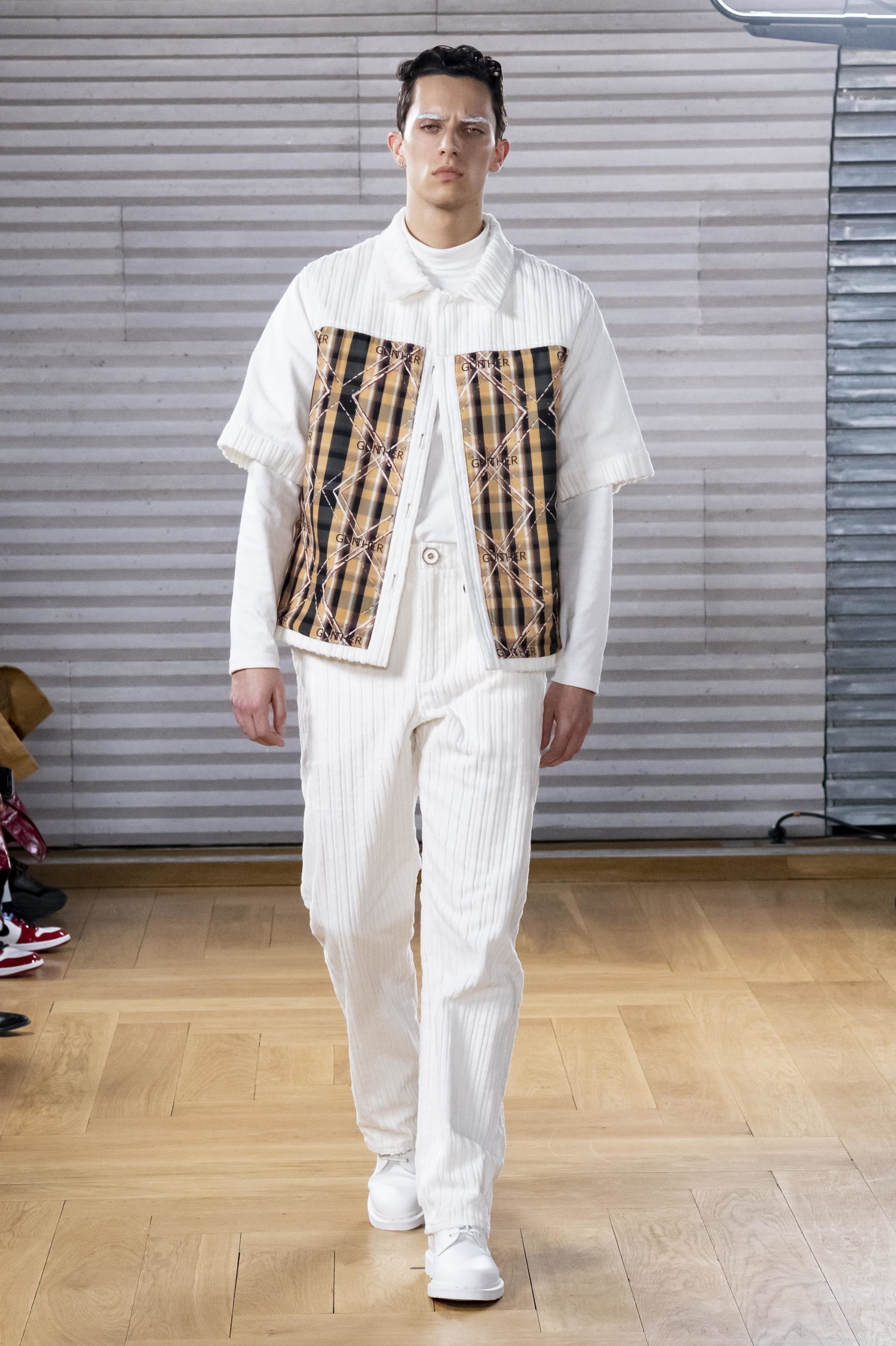 - A Model wearing an outfit from the men s ready to wear collections, autumn winter 2020 2021, original creation, during the Menswear Fashion Week in Paris, from the house of Gunther
