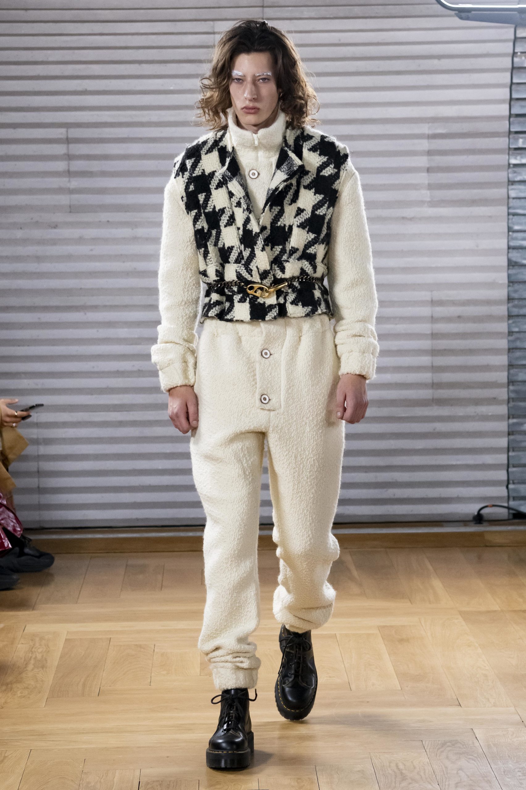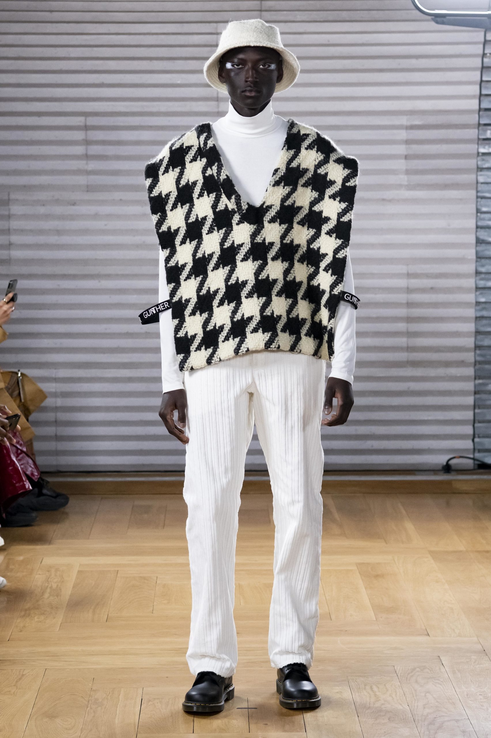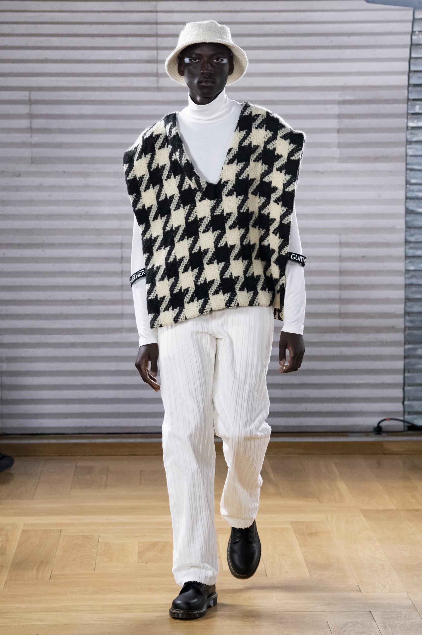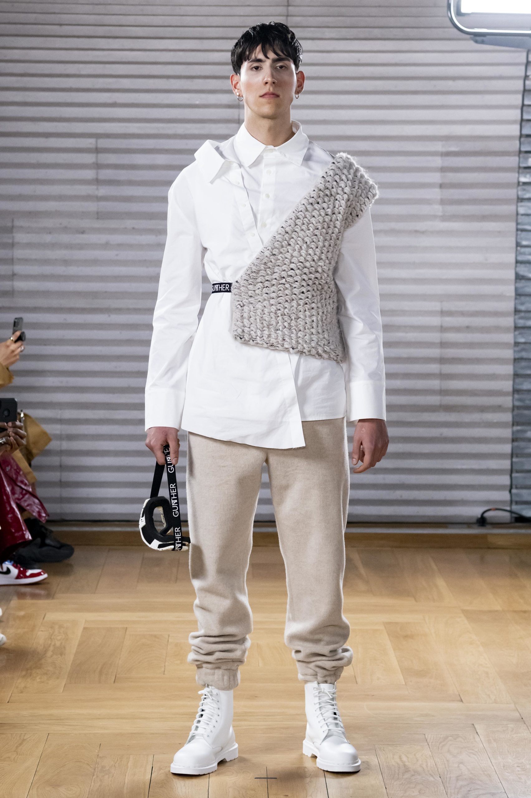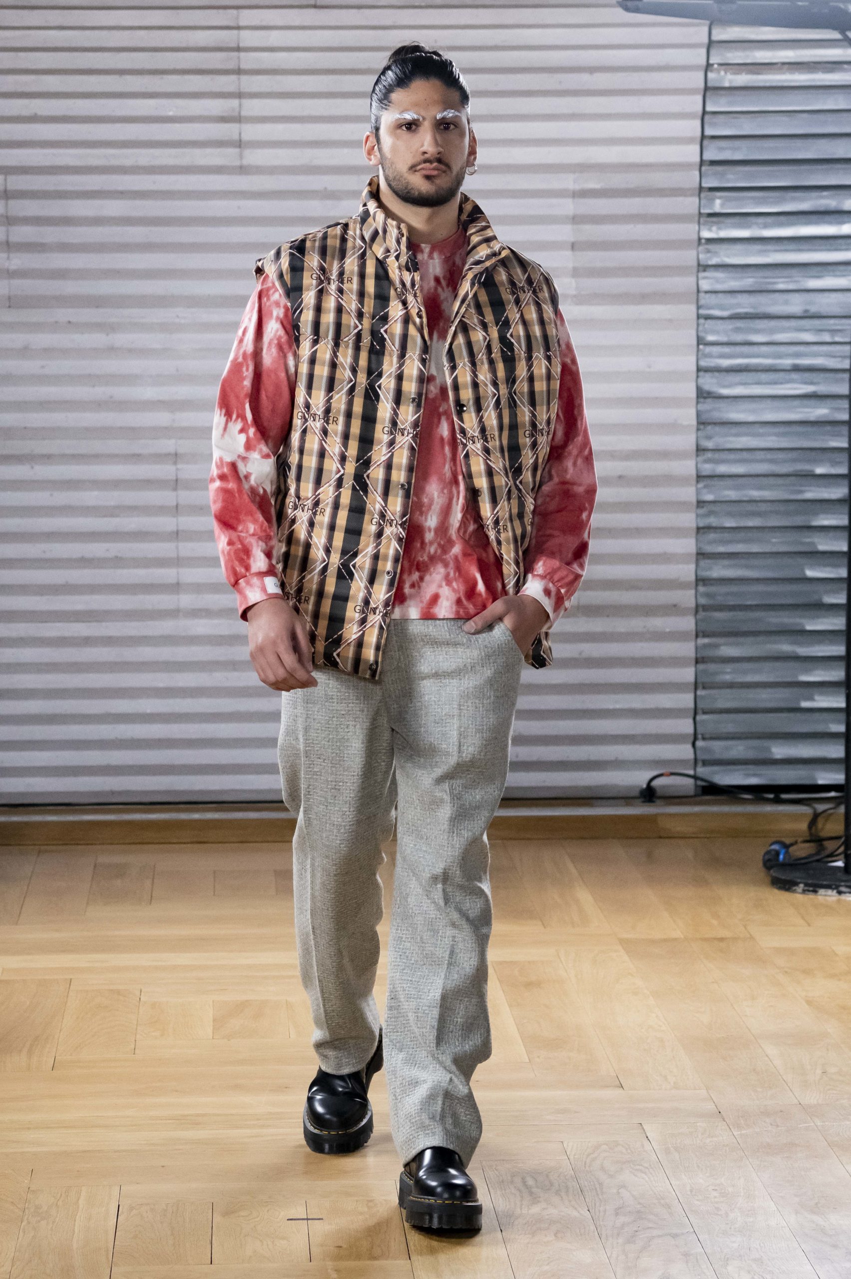 - A Model wearing an outfit from the men s ready to wear collections, autumn winter 2020 2021, original creation, during the Menswear Fashion Week in Paris, from the house of Gunther