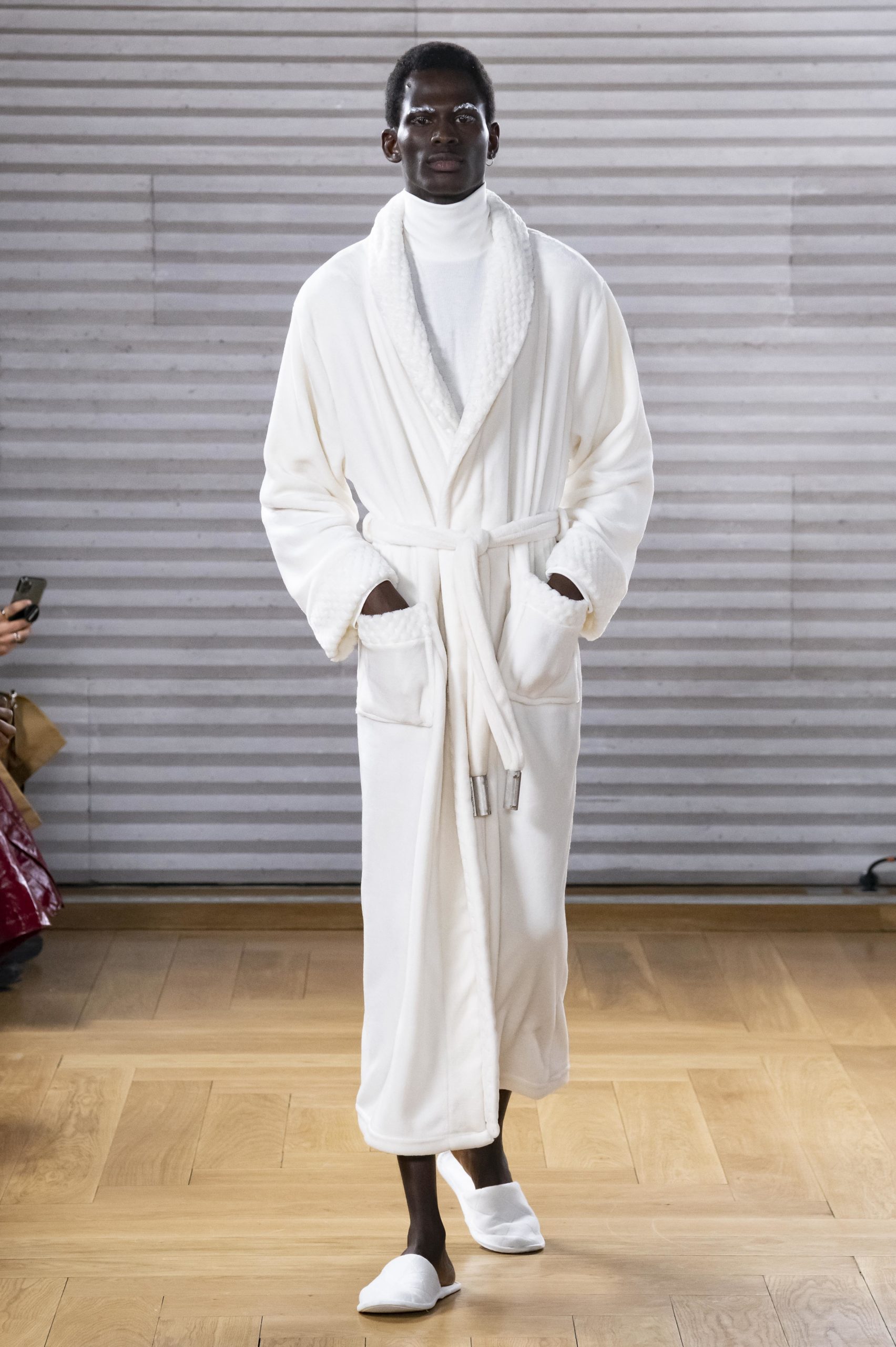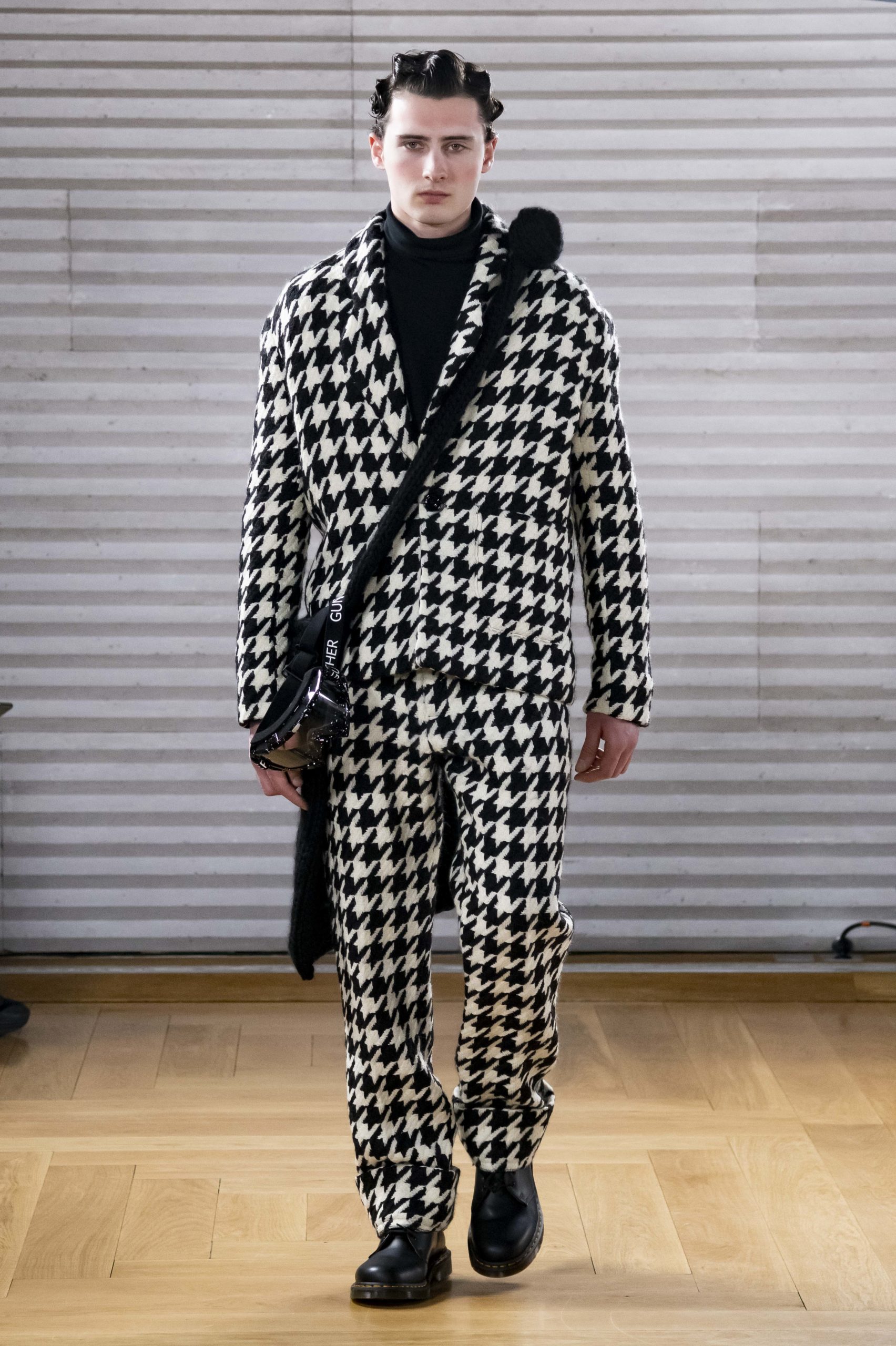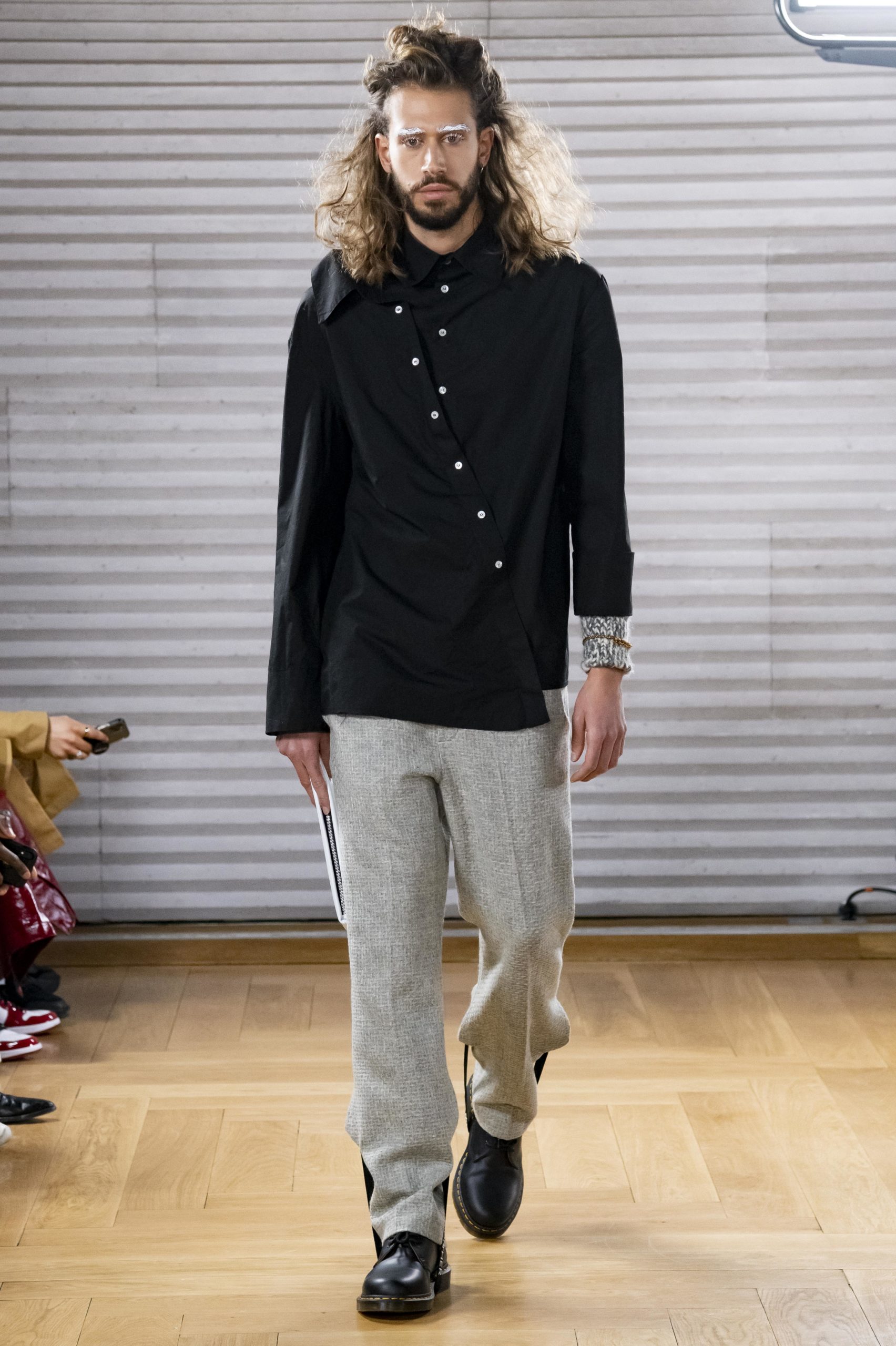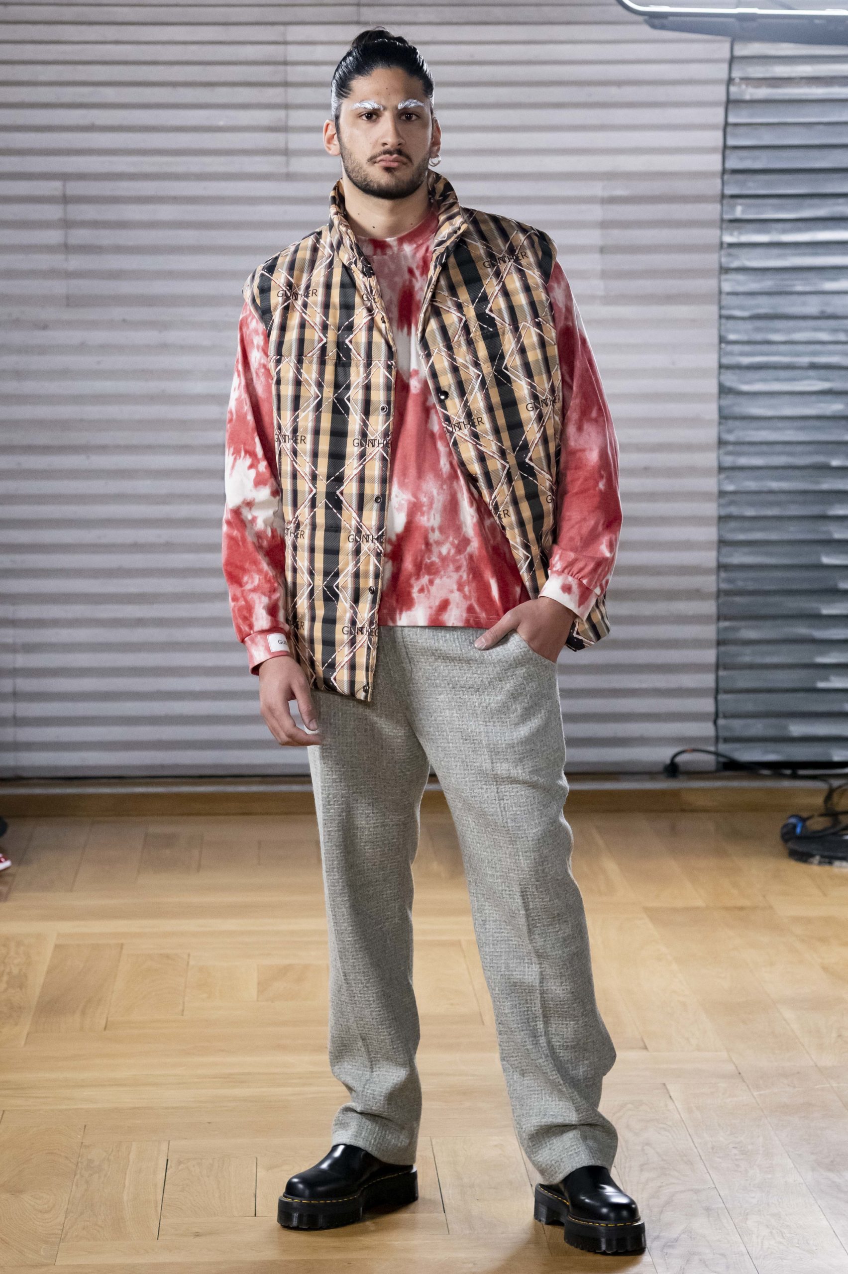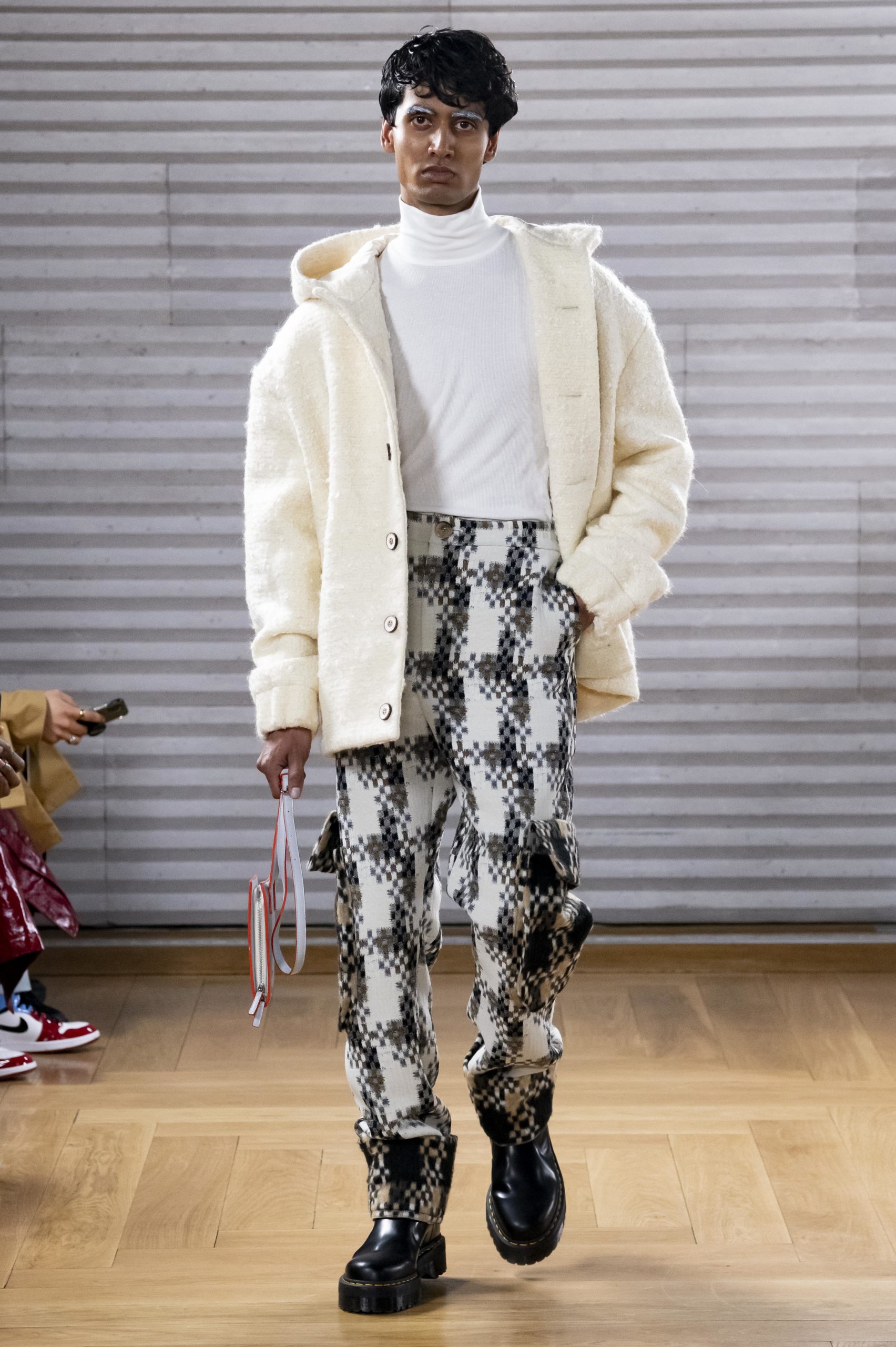 - A Model wearing an outfit from the men s ready to wear collections, autumn winter 2020 2021, original creation, during the Menswear Fashion Week in Paris, from the house of Gunther