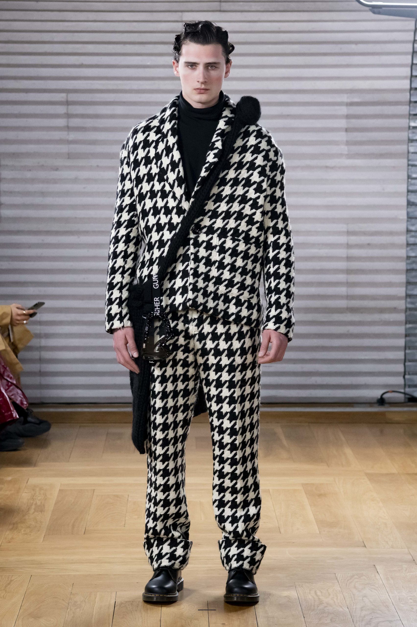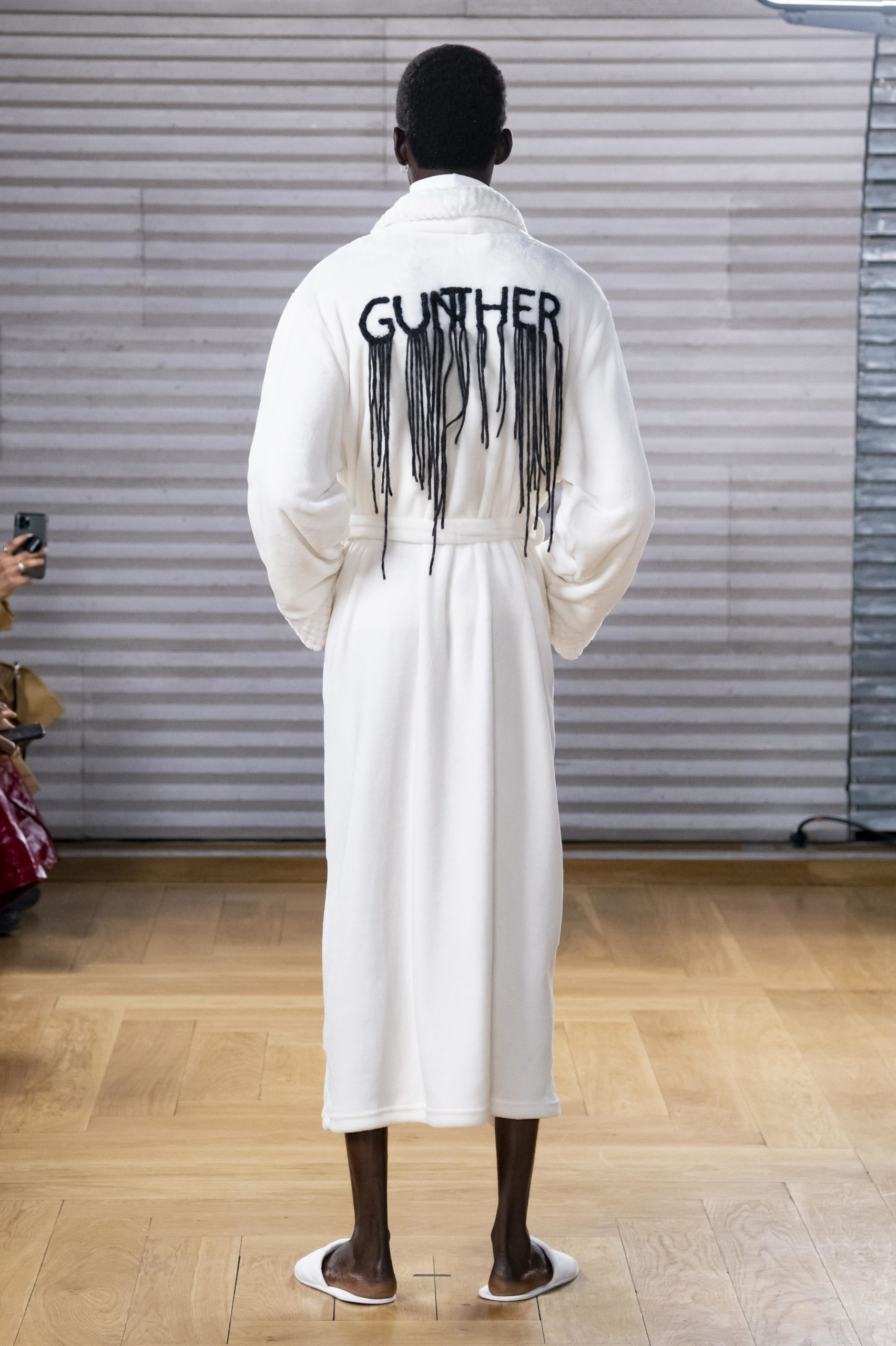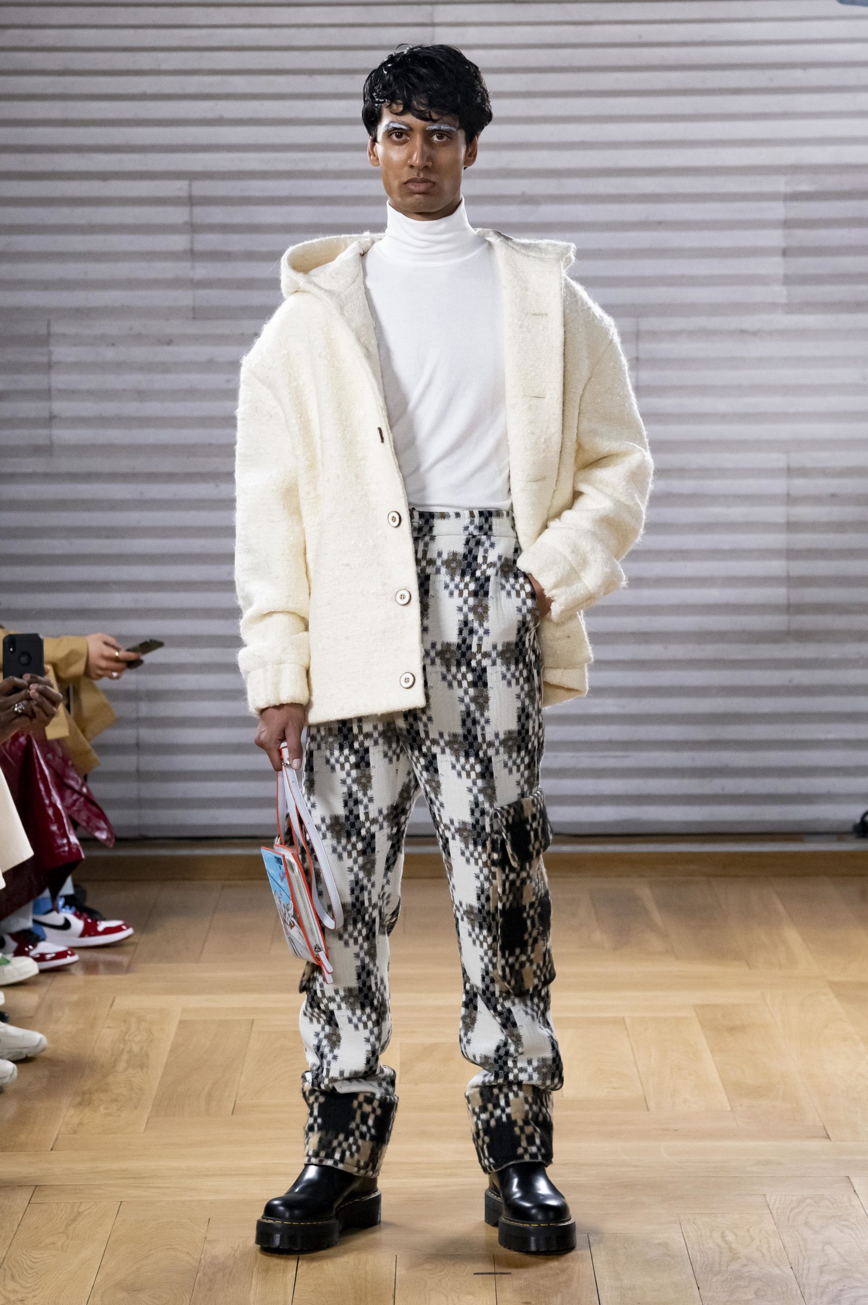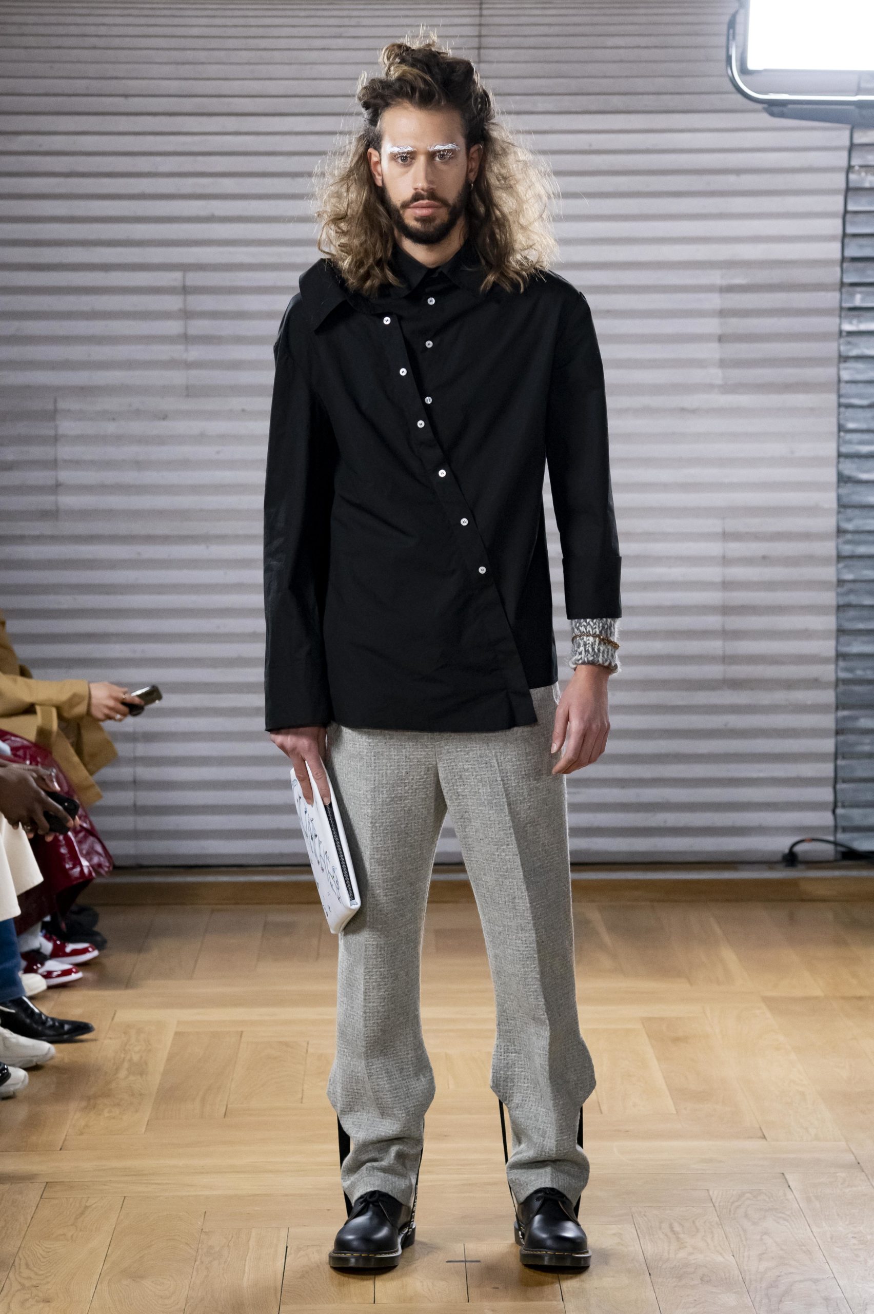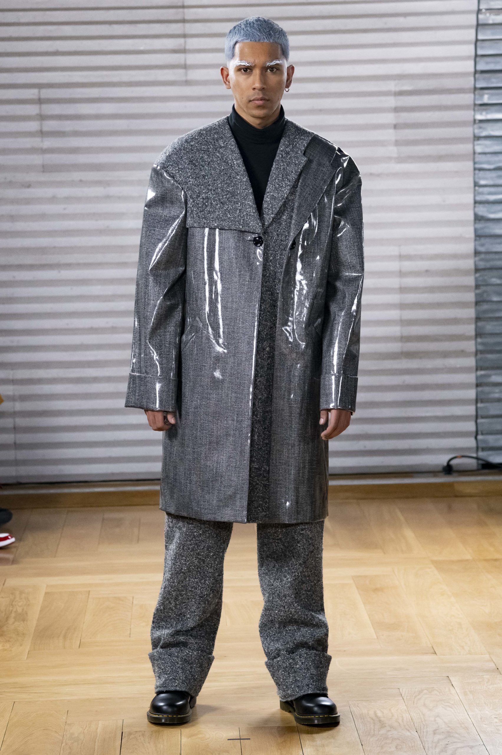 - A Model wearing an outfit from the men s ready to wear collections, autumn winter 2020 2021, original creation, during the Menswear Fashion Week in Paris, from the house of Gunther