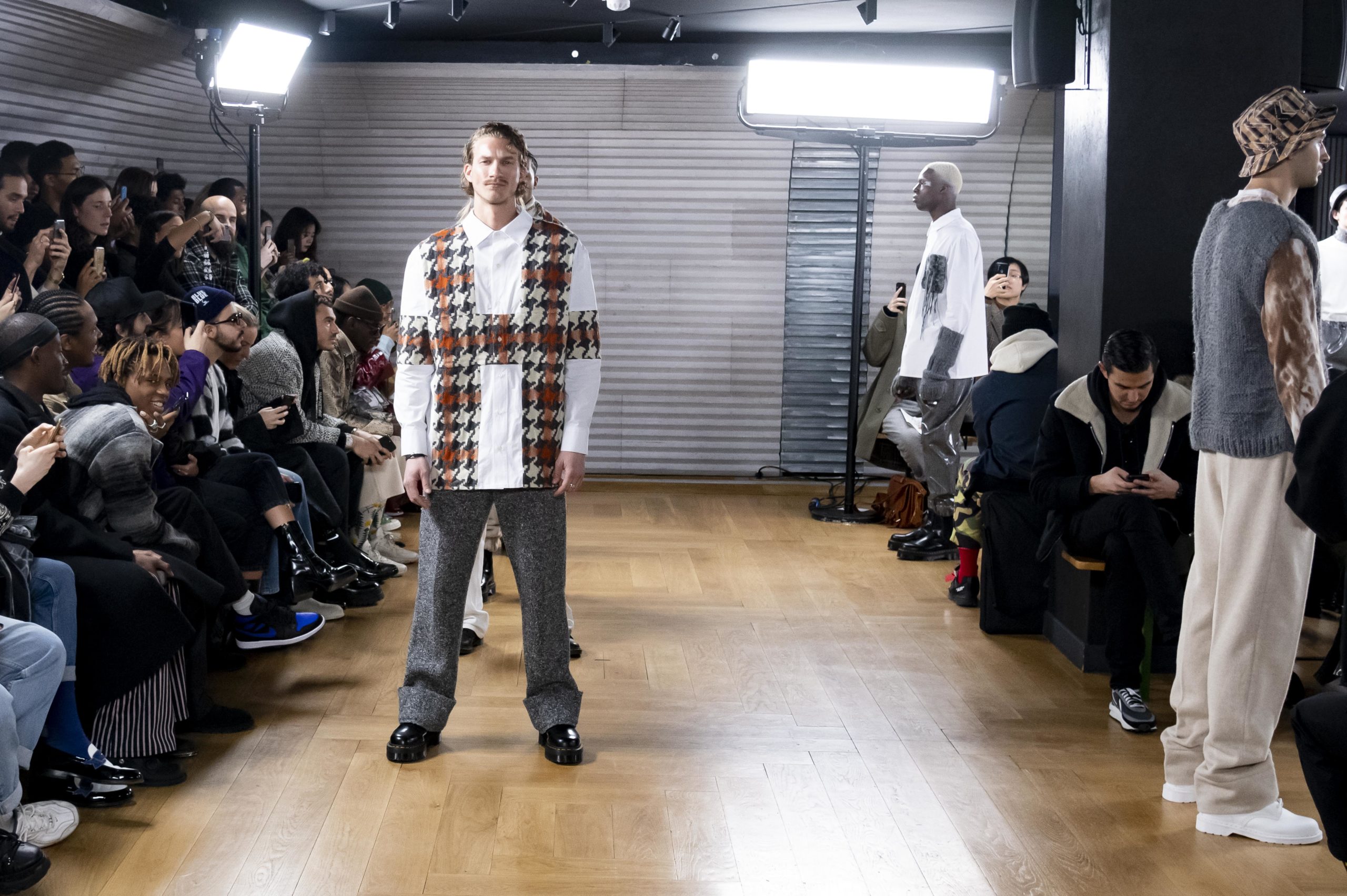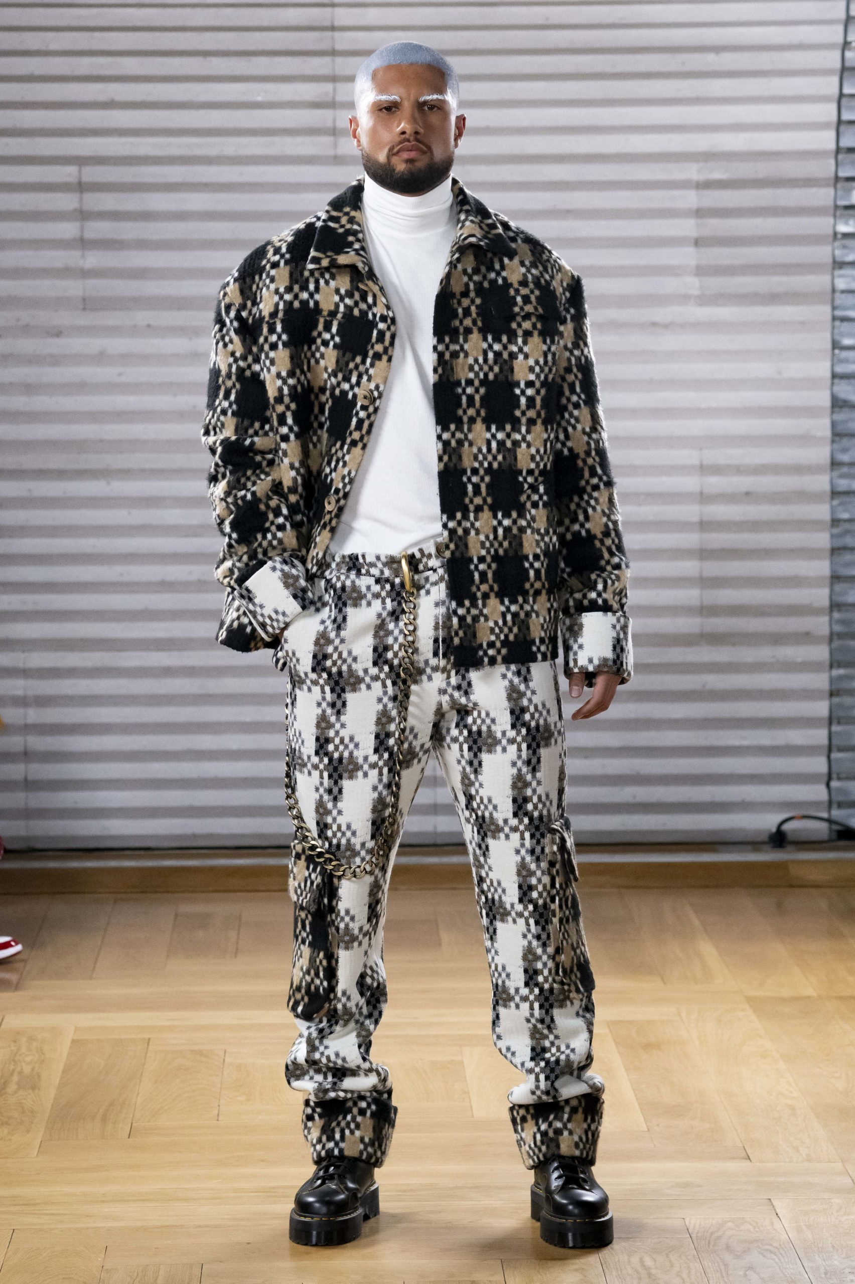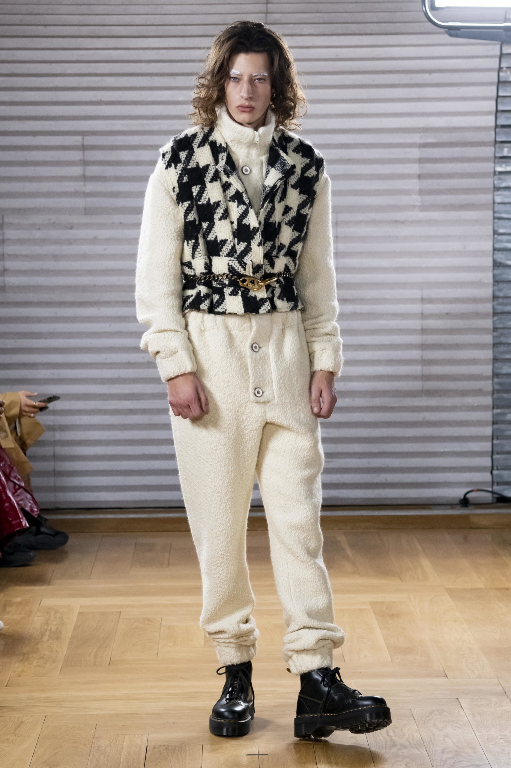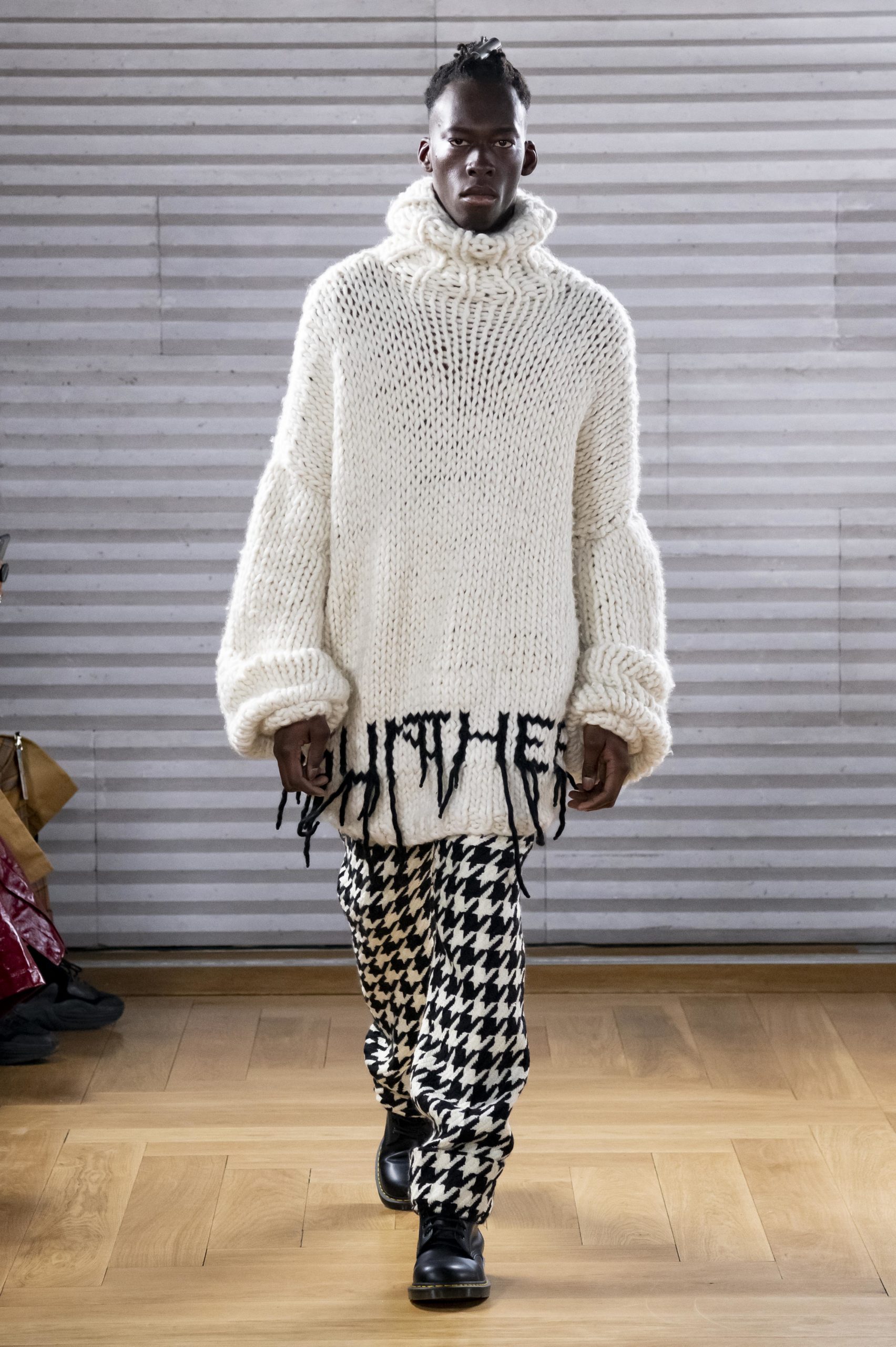 - A Model wearing an outfit from the men s ready to wear collections, autumn winter 2020 2021, original creation, during the Menswear Fashion Week in Paris, from the house of Gunther