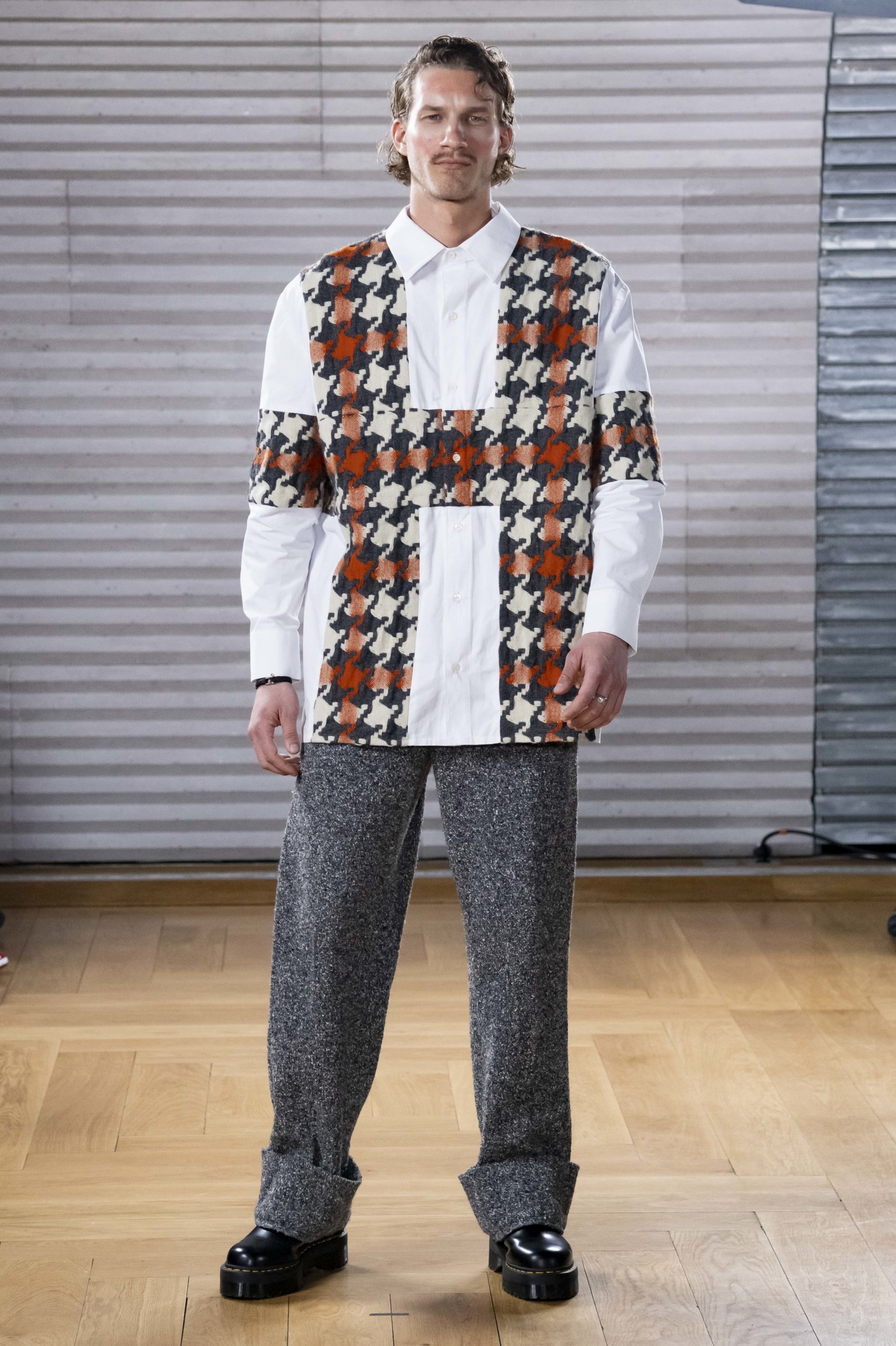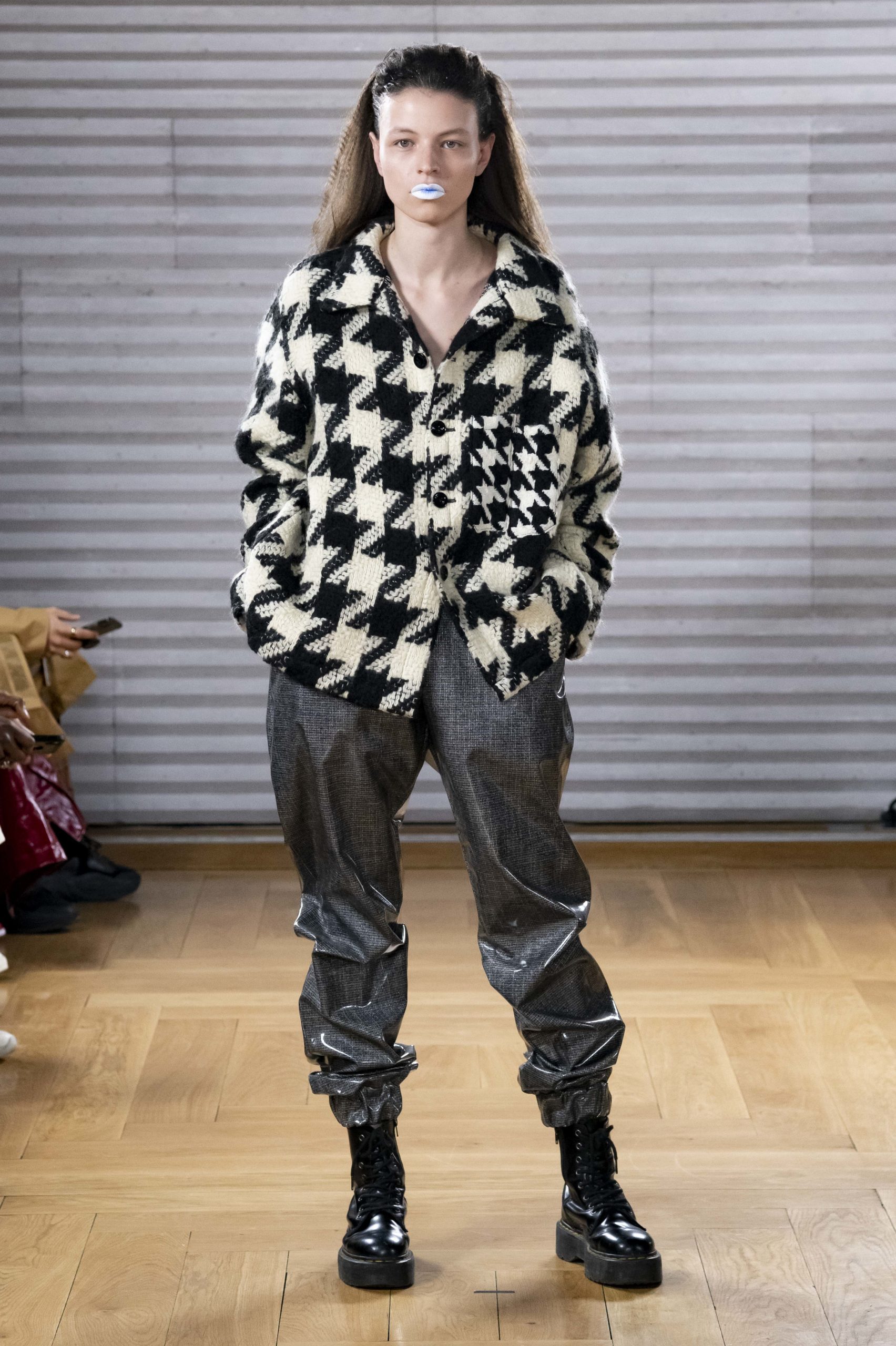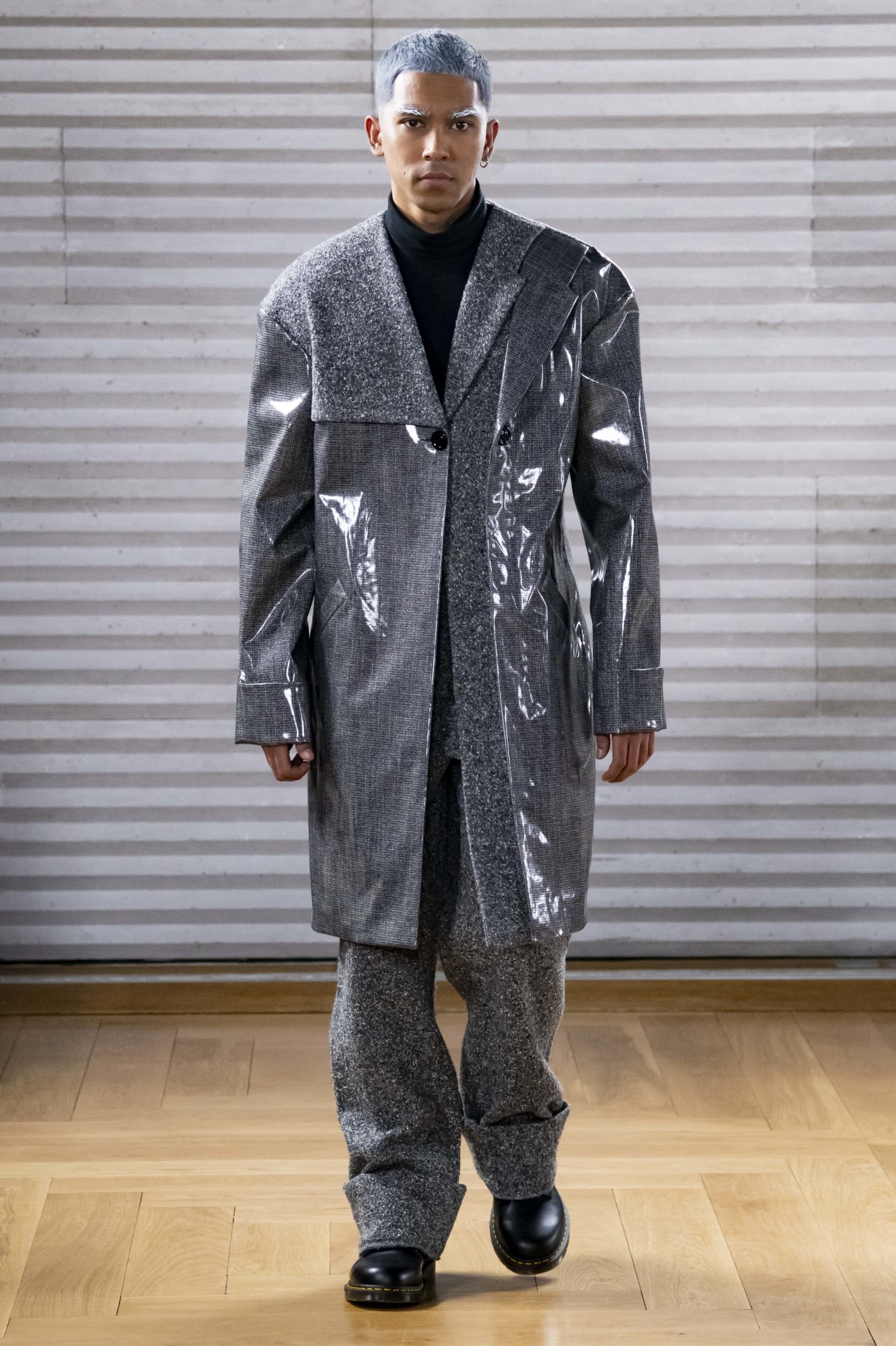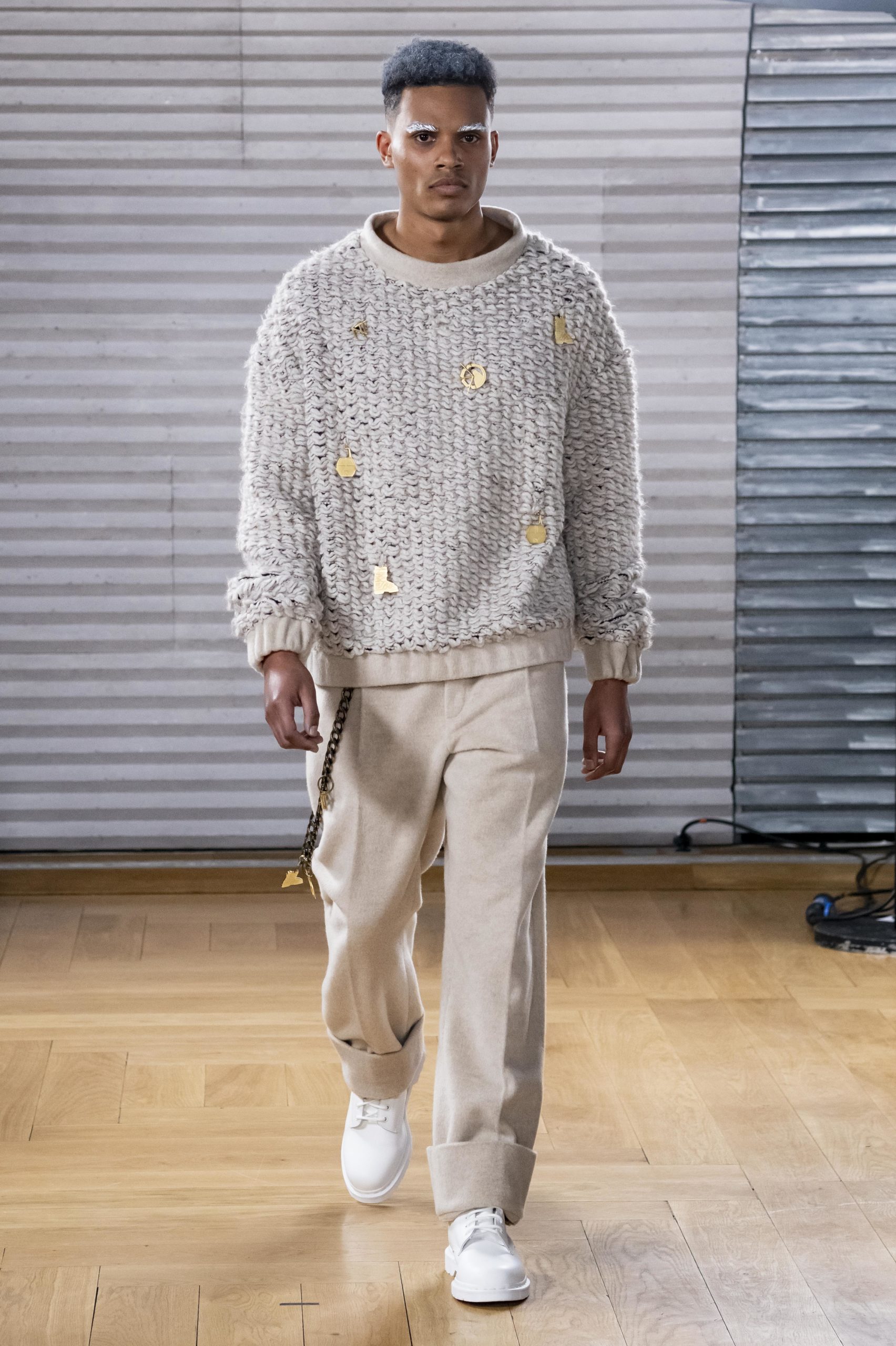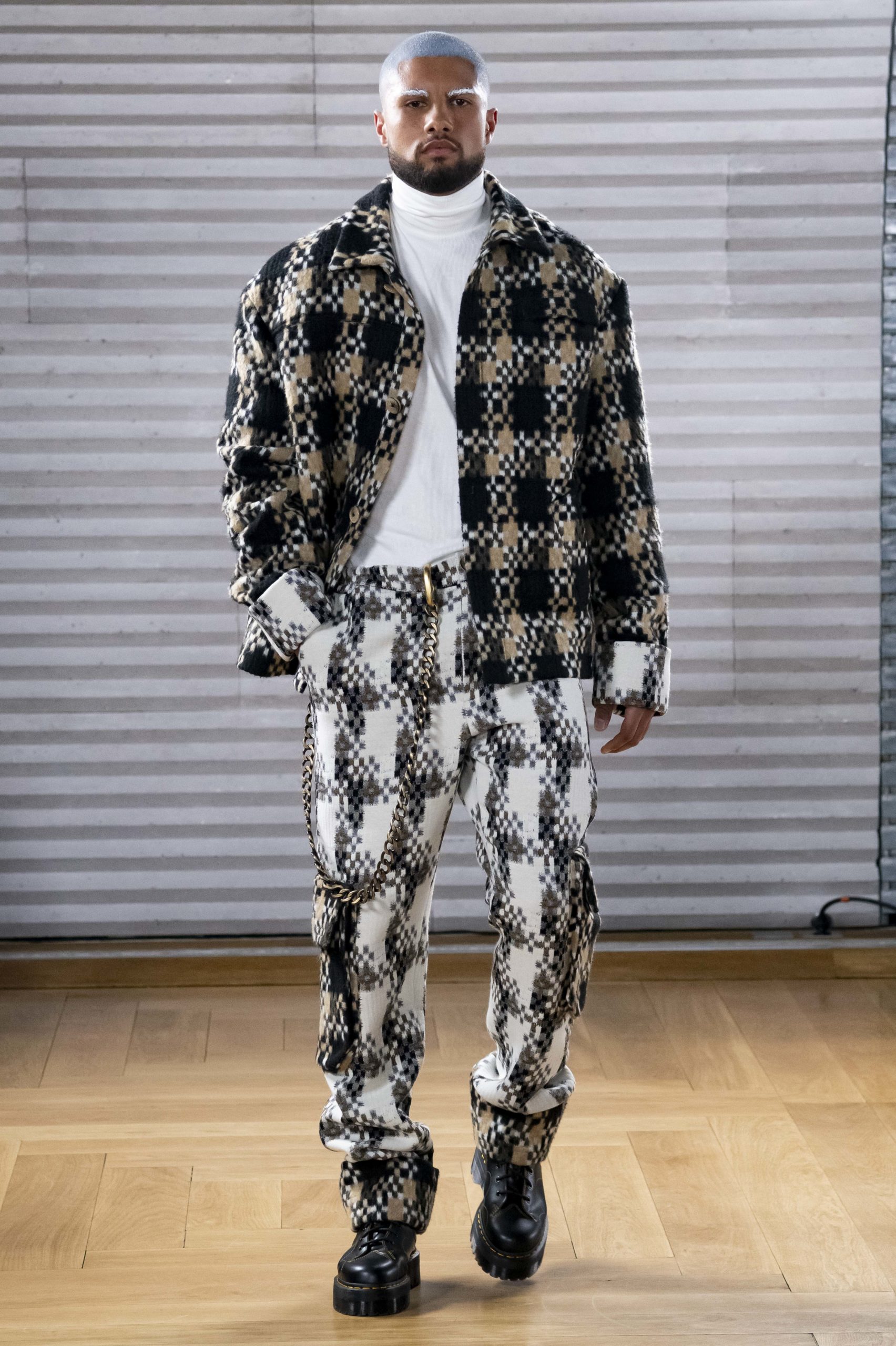 - A Model wearing an outfit from the men s ready to wear collections, autumn winter 2020 2021, original creation, during the Menswear Fashion Week in Paris, from the house of Gunther