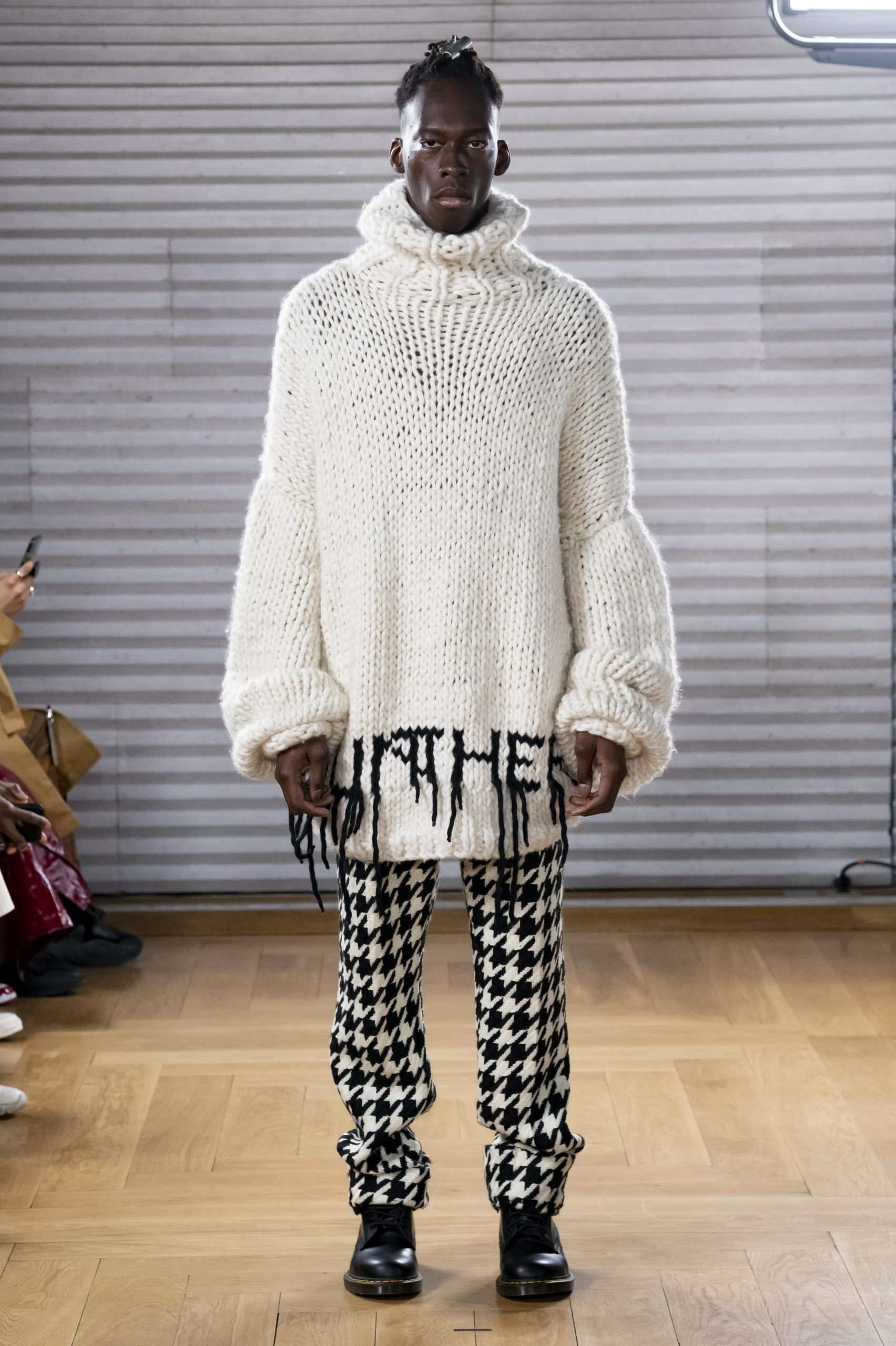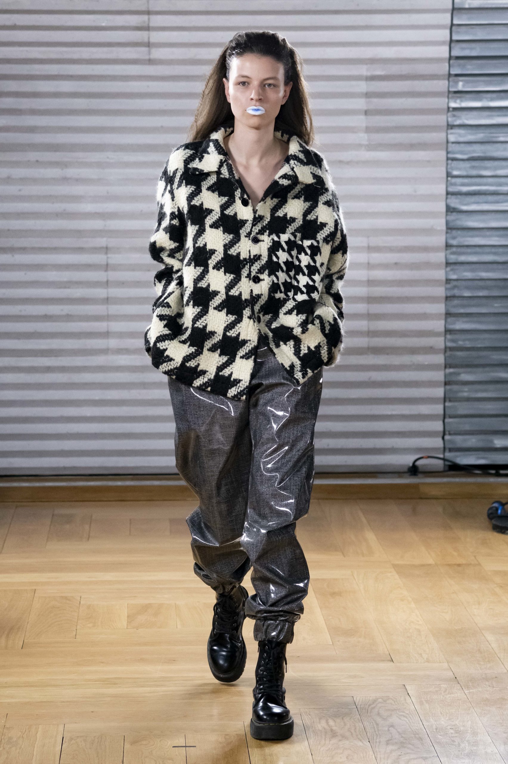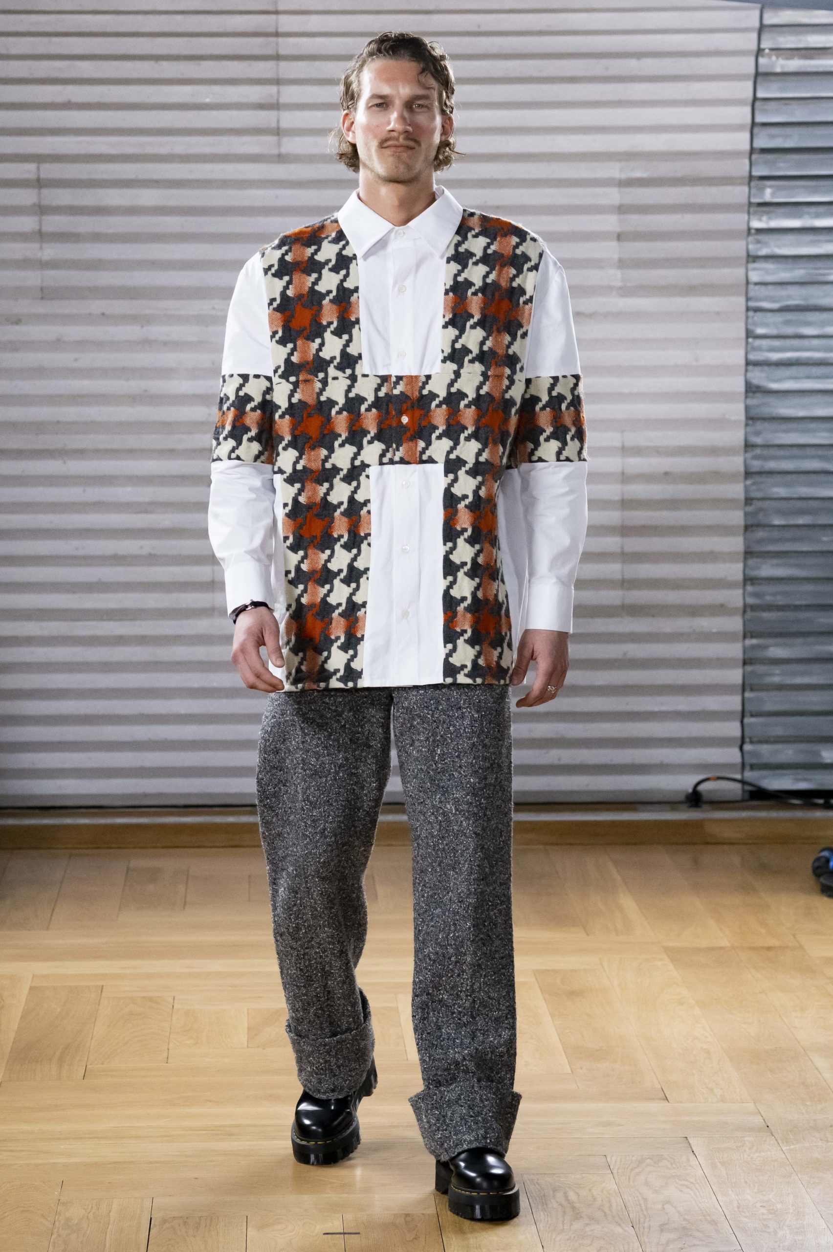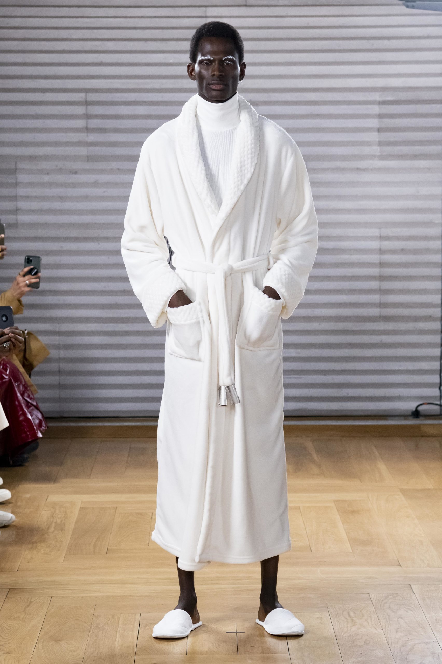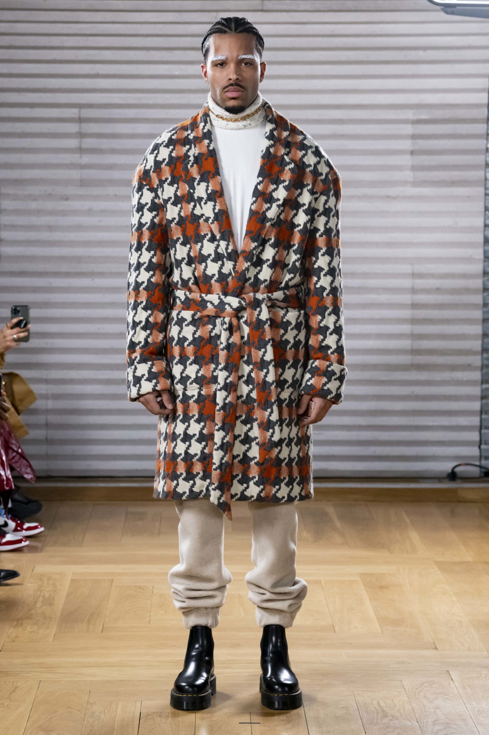 - A Model wearing an outfit from the men s ready to wear collections, autumn winter 2020 2021, original creation, during the Menswear Fashion Week in Paris, from the house of Gunther