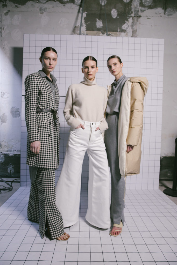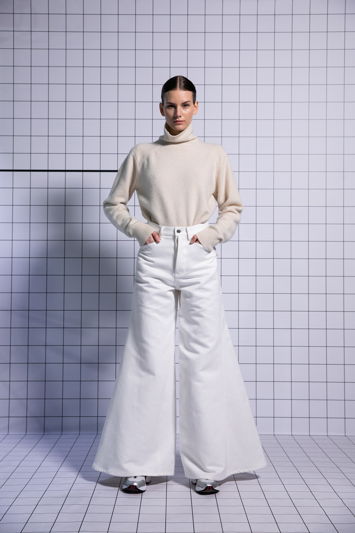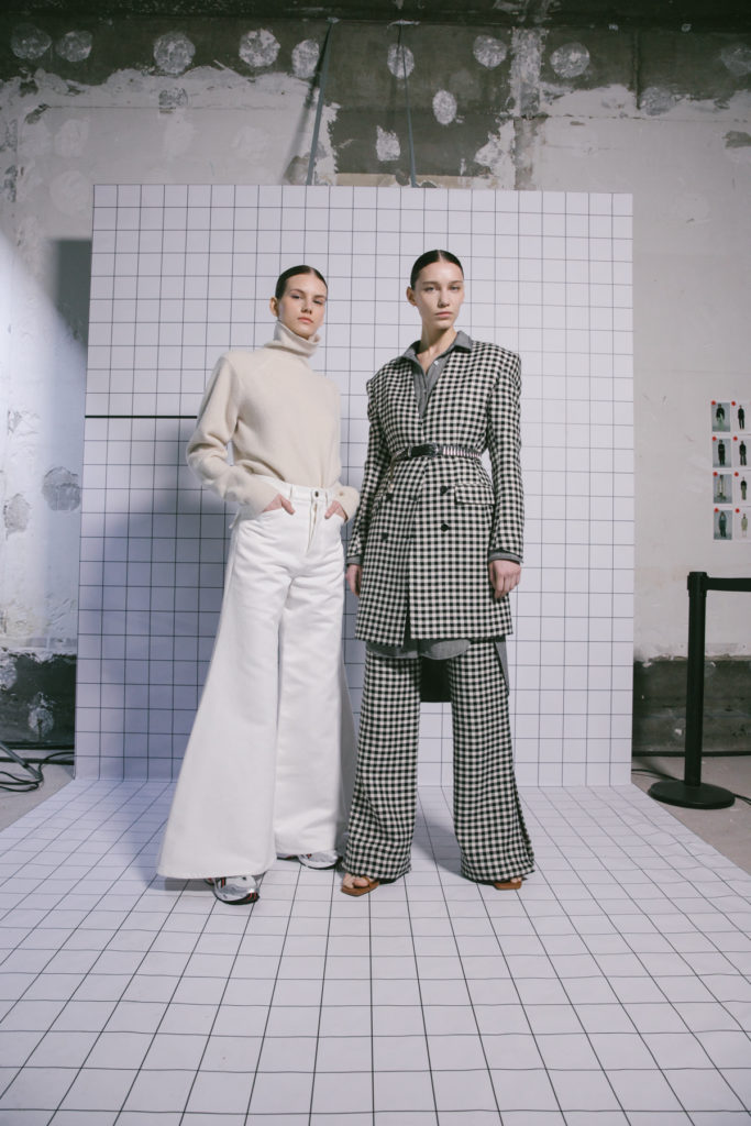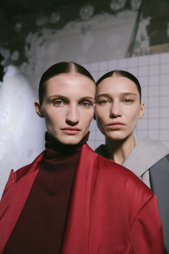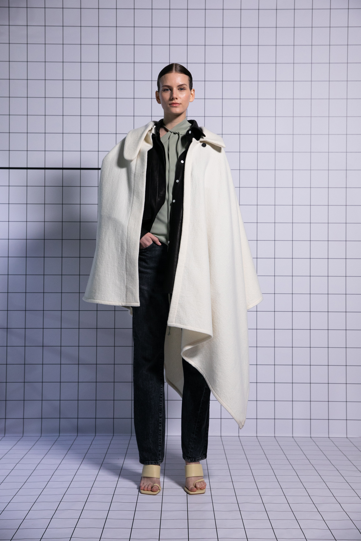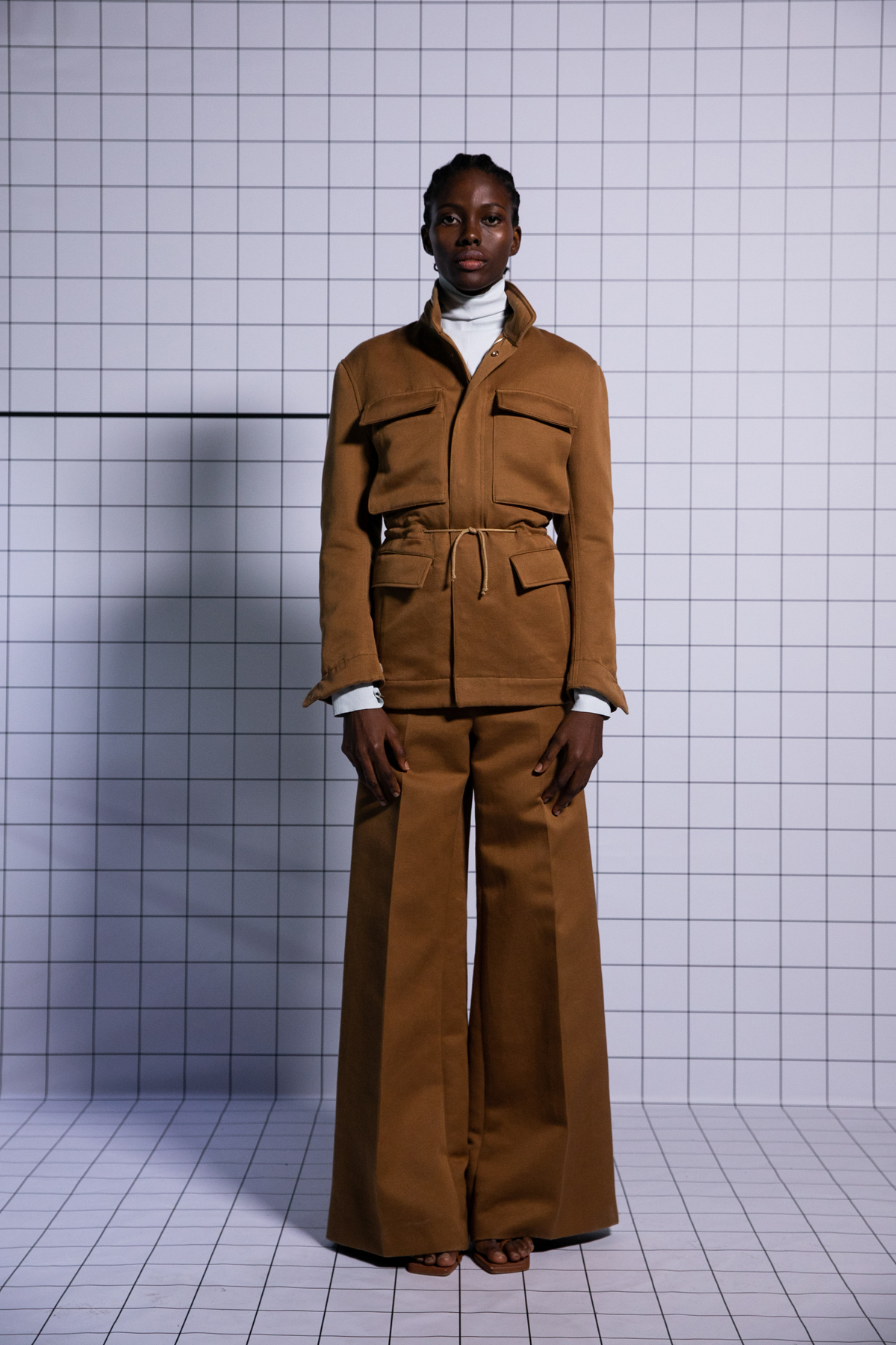Les volumes des silhouettes sont androgynes, tout en conservant une certaine sophistication et un chic très féminin. Le designer crée des carrures aux épaules larges, dessinant parfois une silhouette stricte et monolithique, et ailleurs marquant la taille l’extrême.