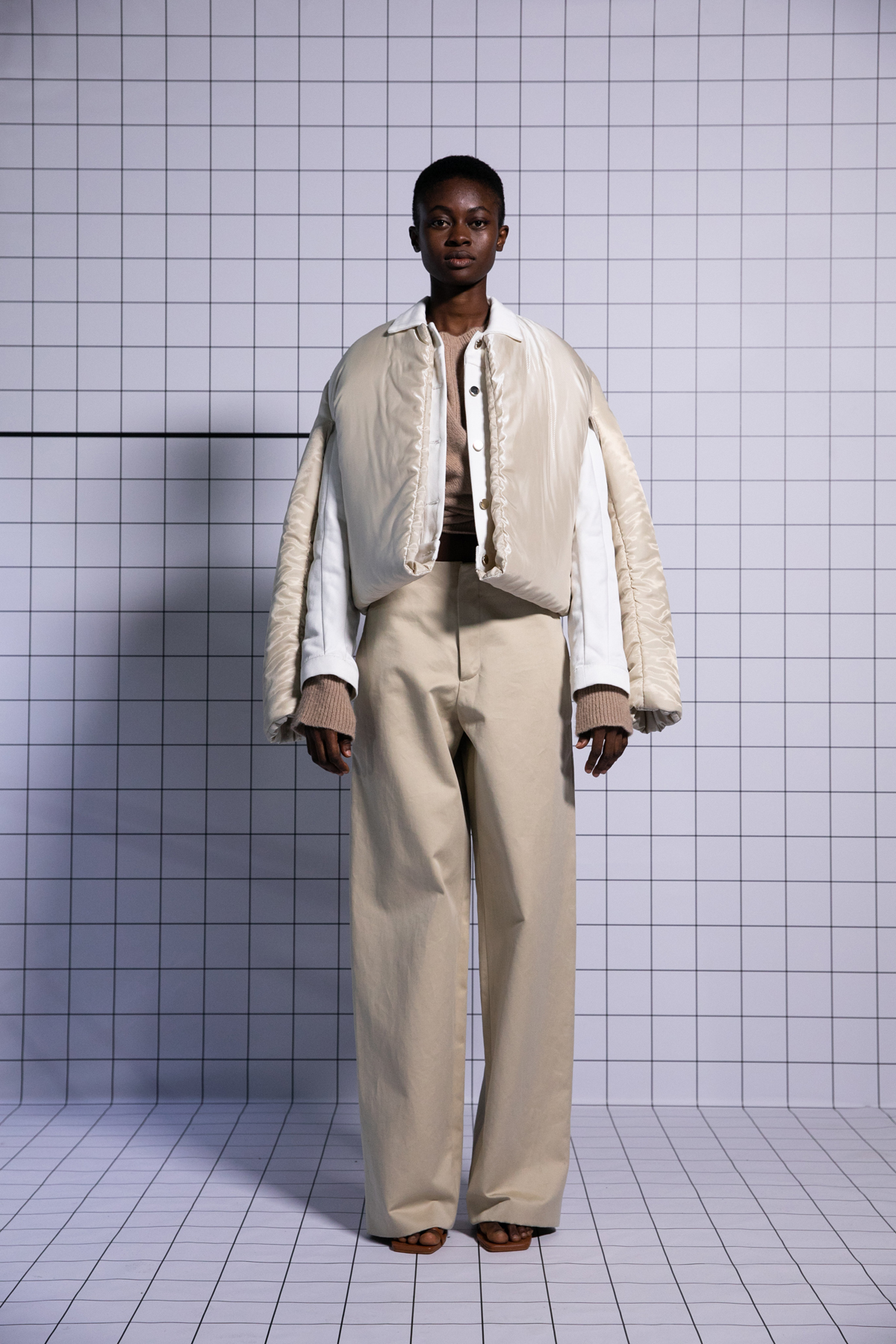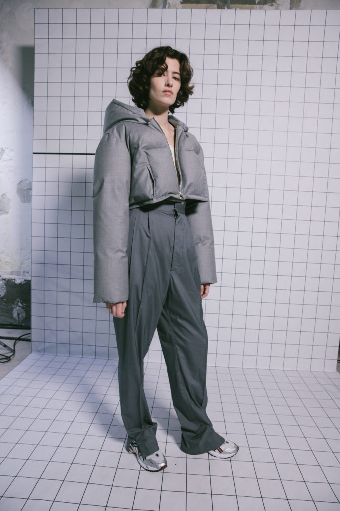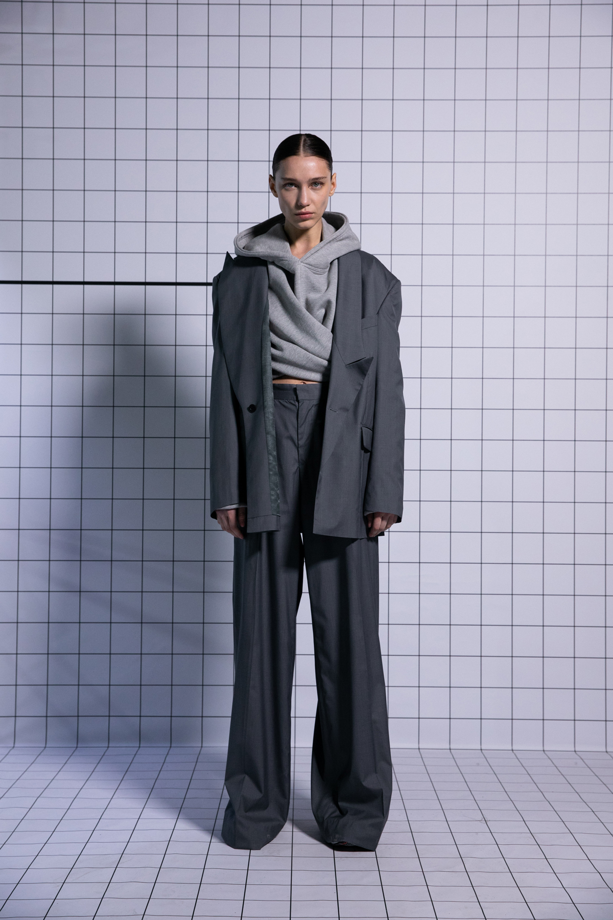 La collection est inspirée par l’architecture, les technologies anachroniques, les hélicoptères de police, le voyage aérien, les vidéos de surveillance, le Tokyo de la fin du XXe siècle, les images corrompues de vieux défilés, les surfaces réfléchissantes, les lumières intérieures/extérieures, les formes fragmentées, comme immortalisées.