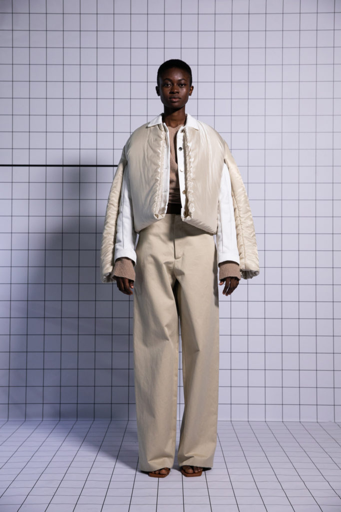 BDST est une ligne de vêtements dont la philosophie est alimentée par des références industrielles, architecturales et filmiques. Les designs font constamment référence aux constructions humaines et aux structures urbaines. Le brutalisme définit la palette de couleur, les tons sont ocres et mécaniques (gris, béton, écru, blancs). Les pièces sont minimales au premier regard, mais sont en réalité d’une grande complexité : des pinces invisibles aident à structurer la silhouette.