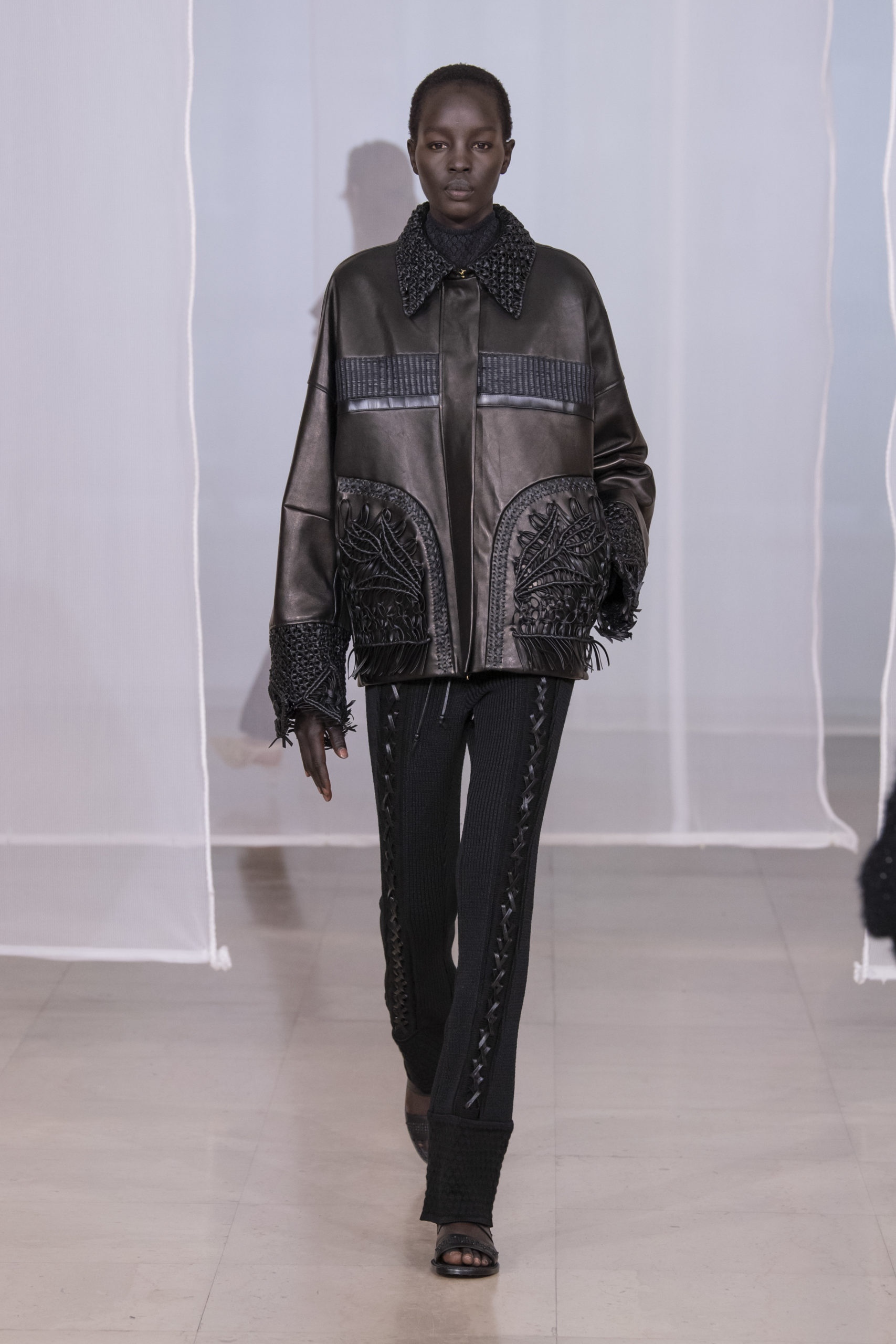Complementing this fall collection are sandals, created once again in collaboration with Tod’s. Executed by quintessential Italian craftsmanship, the exquisite embroidered leather echoes the Japanese traditional kogin zashi quilting, for the understated refinement that embodies the ideal marriage of Italian crafts and Japanese aesthetics.