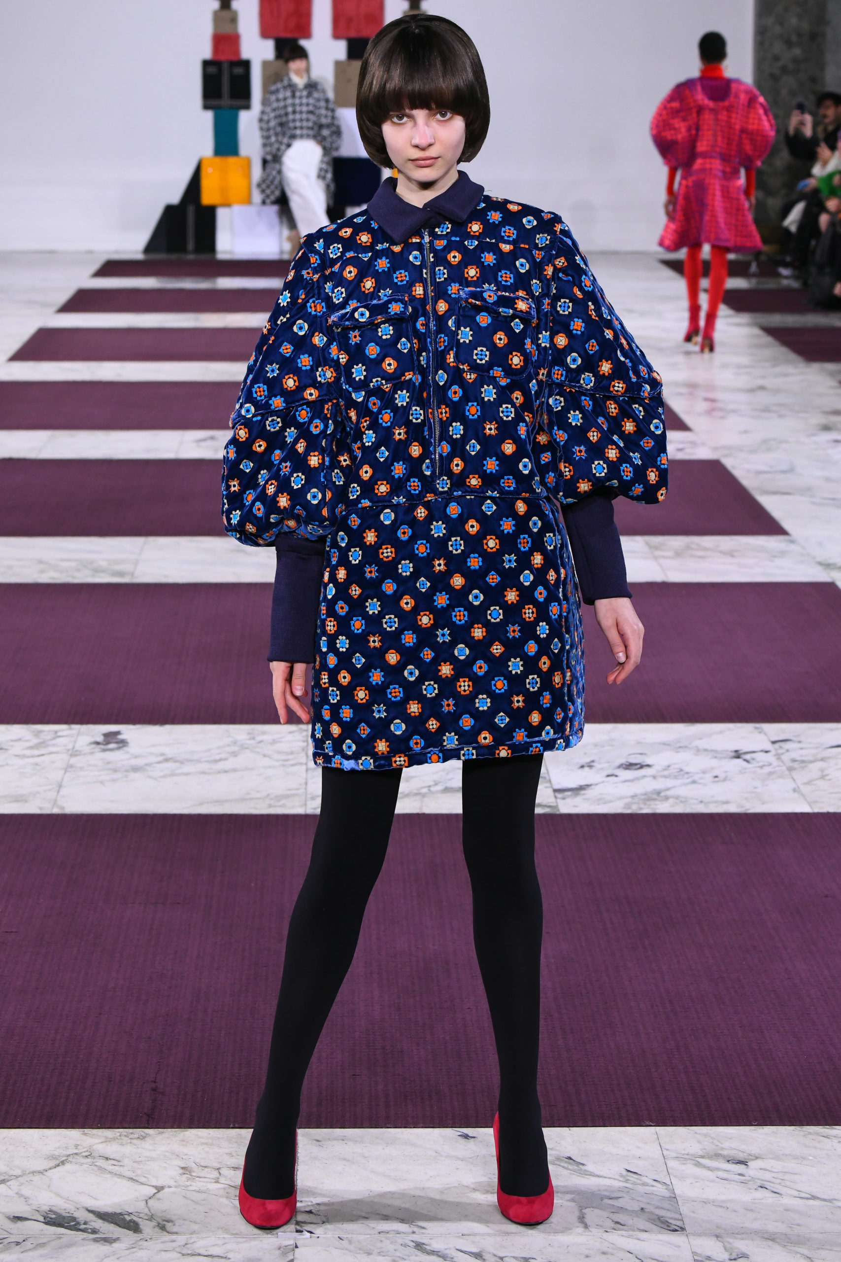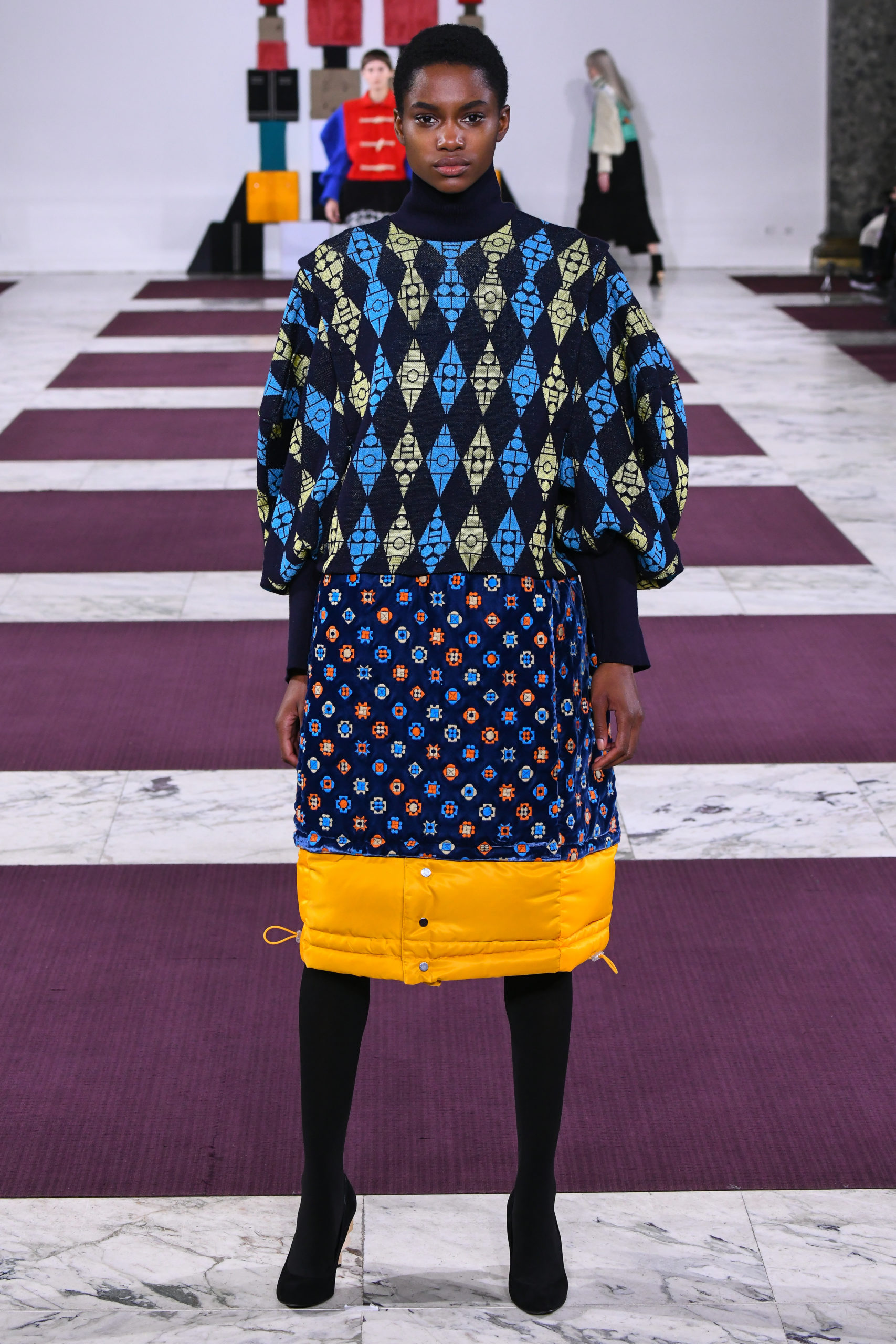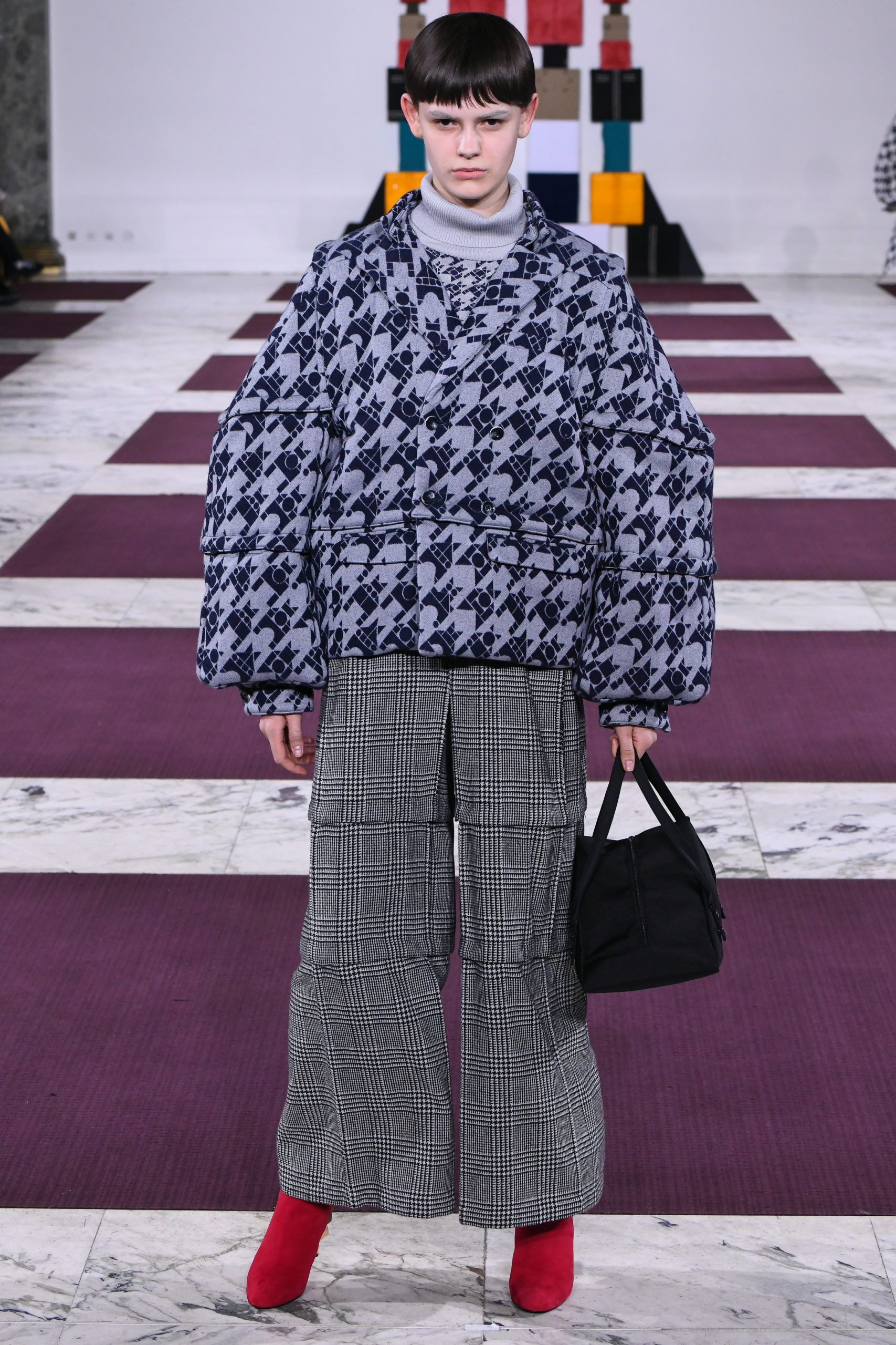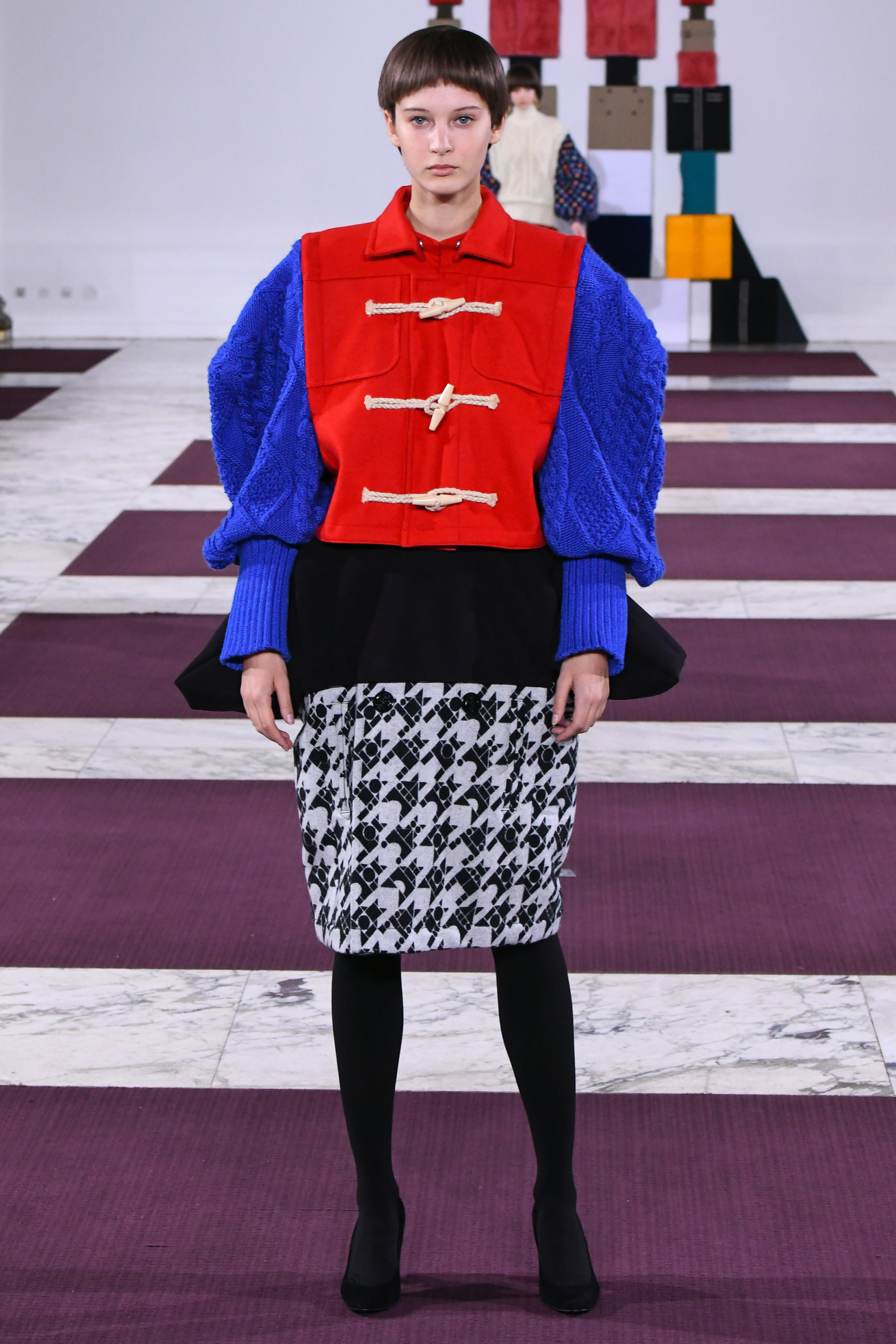 Reconstructed from blocks of primary colors and textile patterns like argyle, houndstooth and graphic florals, voluminous silhouettes adopt a couture attitude as the designer reconfigures traditional geometric Japanese pattern-making techniques on generic wardrobe staples in bold, fun and versatile shapes.