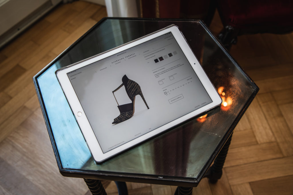 Les chaussures 4.0 signées par l'architecte de chaussures vivent d'une beauté et d'une saisonnalité intemporelles, entièrement personnalisables, un mélange de recherche d'excellence et d'études de méthodologies de production innovantes. Une présentation devenue une expérience, de l'affichage du matériel utilisé jusqu'au configurateur et à l'application de réalité augmentée, l'univers Giordano Torresi est interactif et personnalisé pour être vécu par les clients.