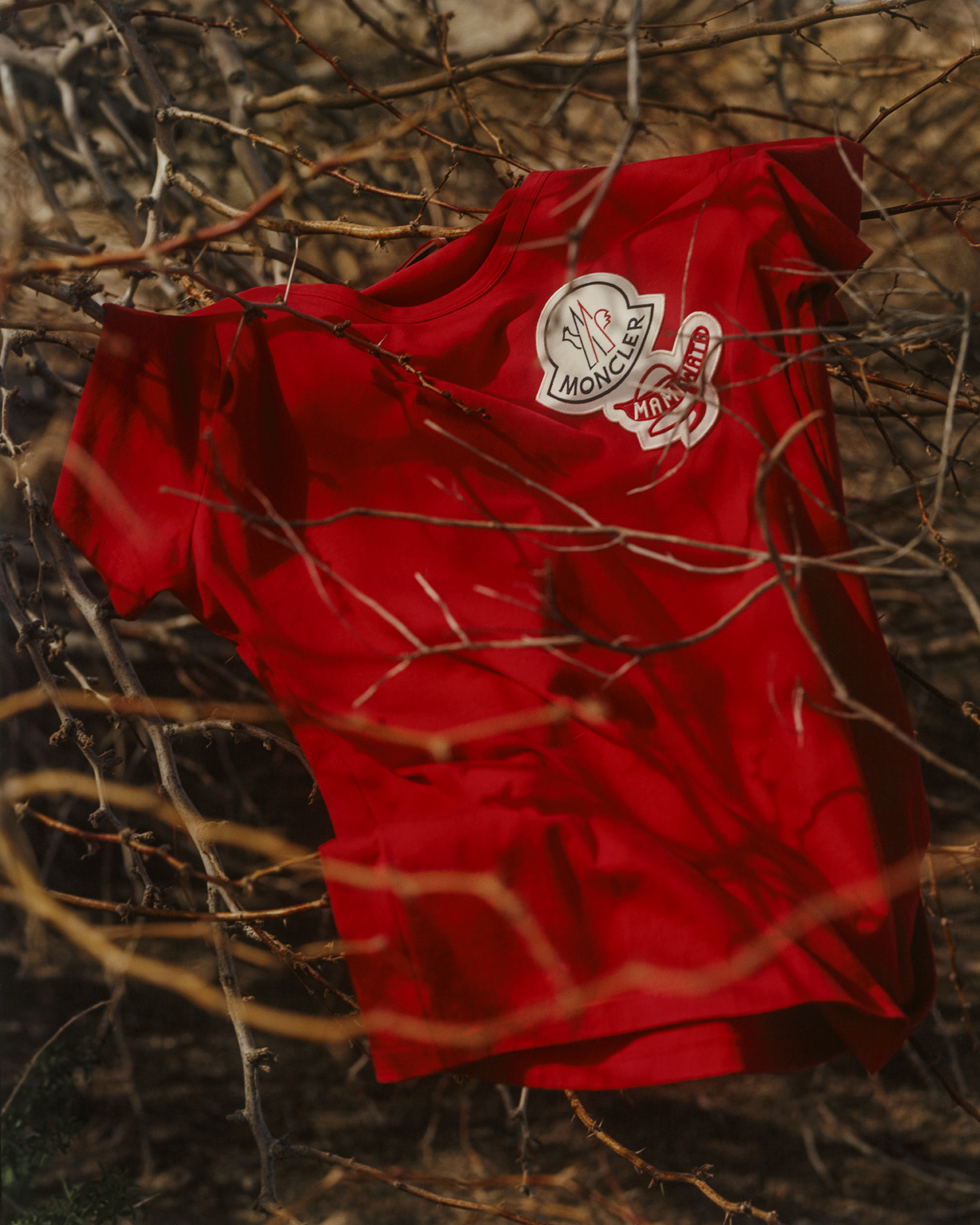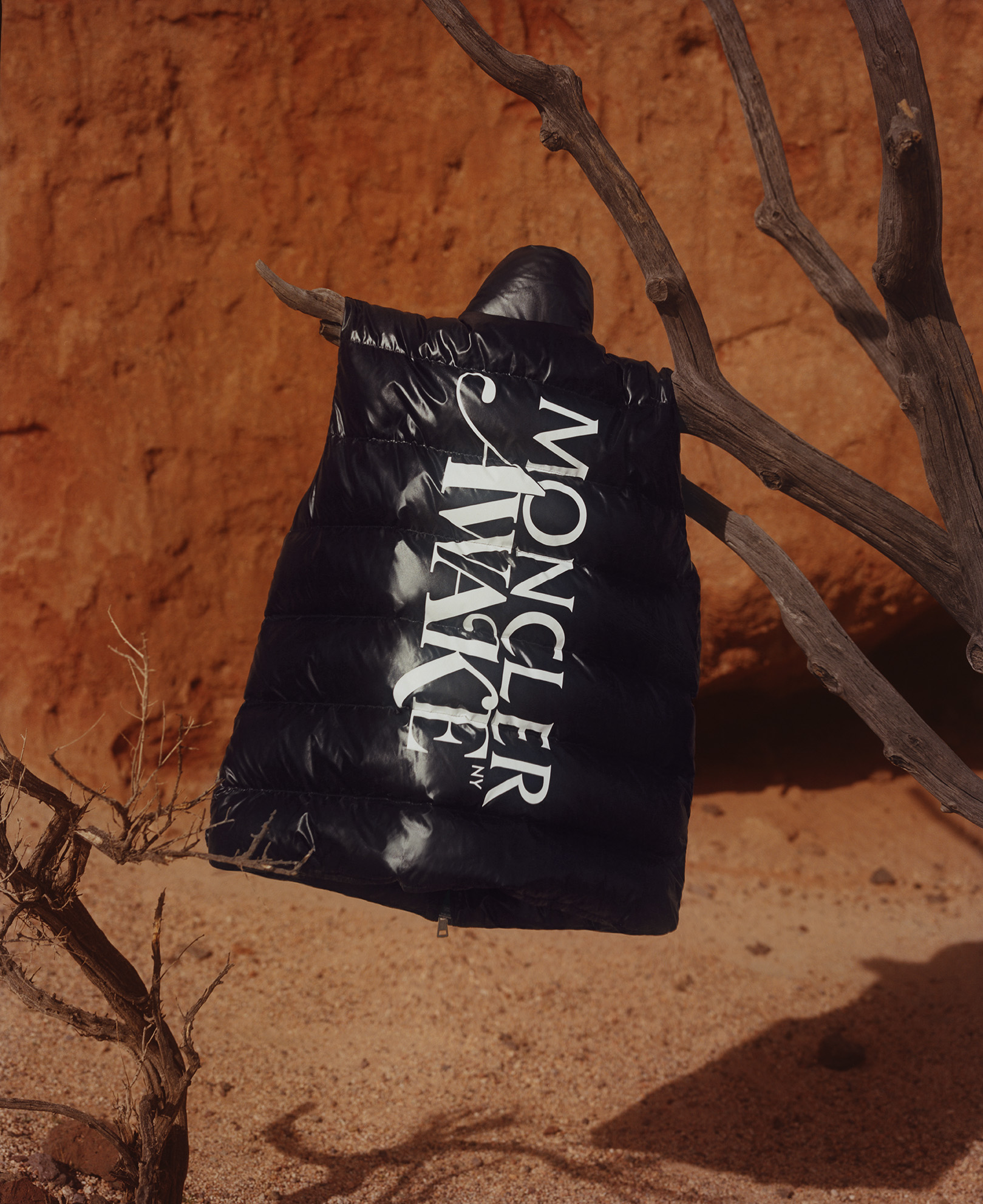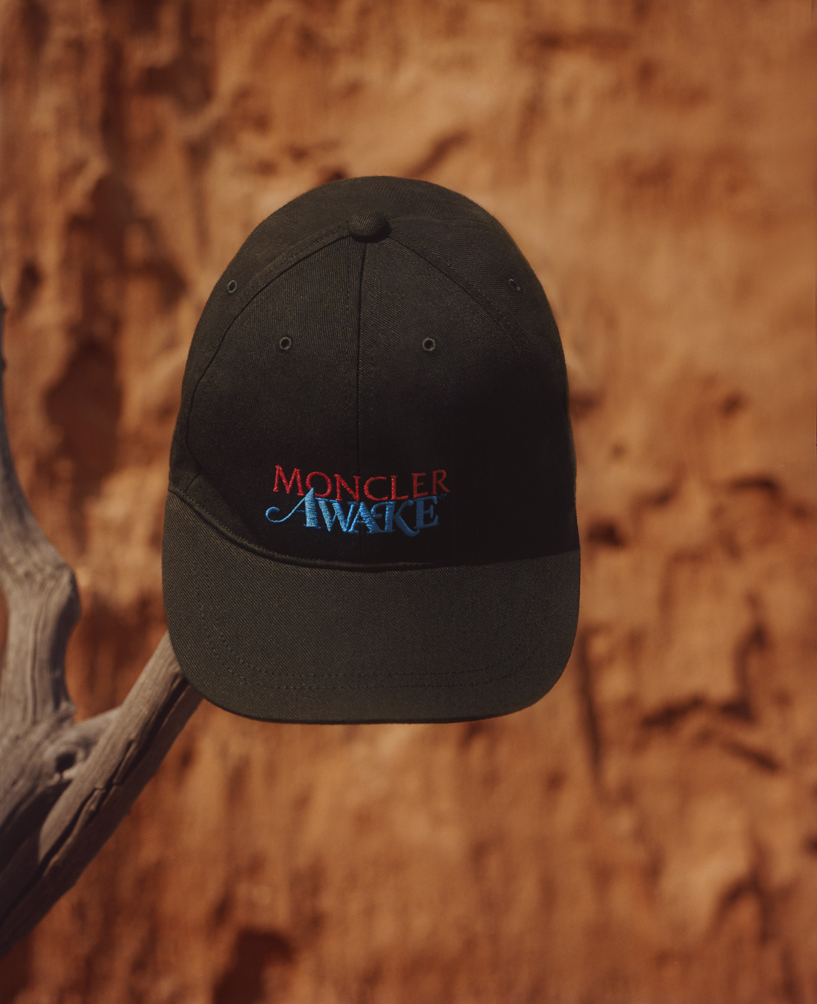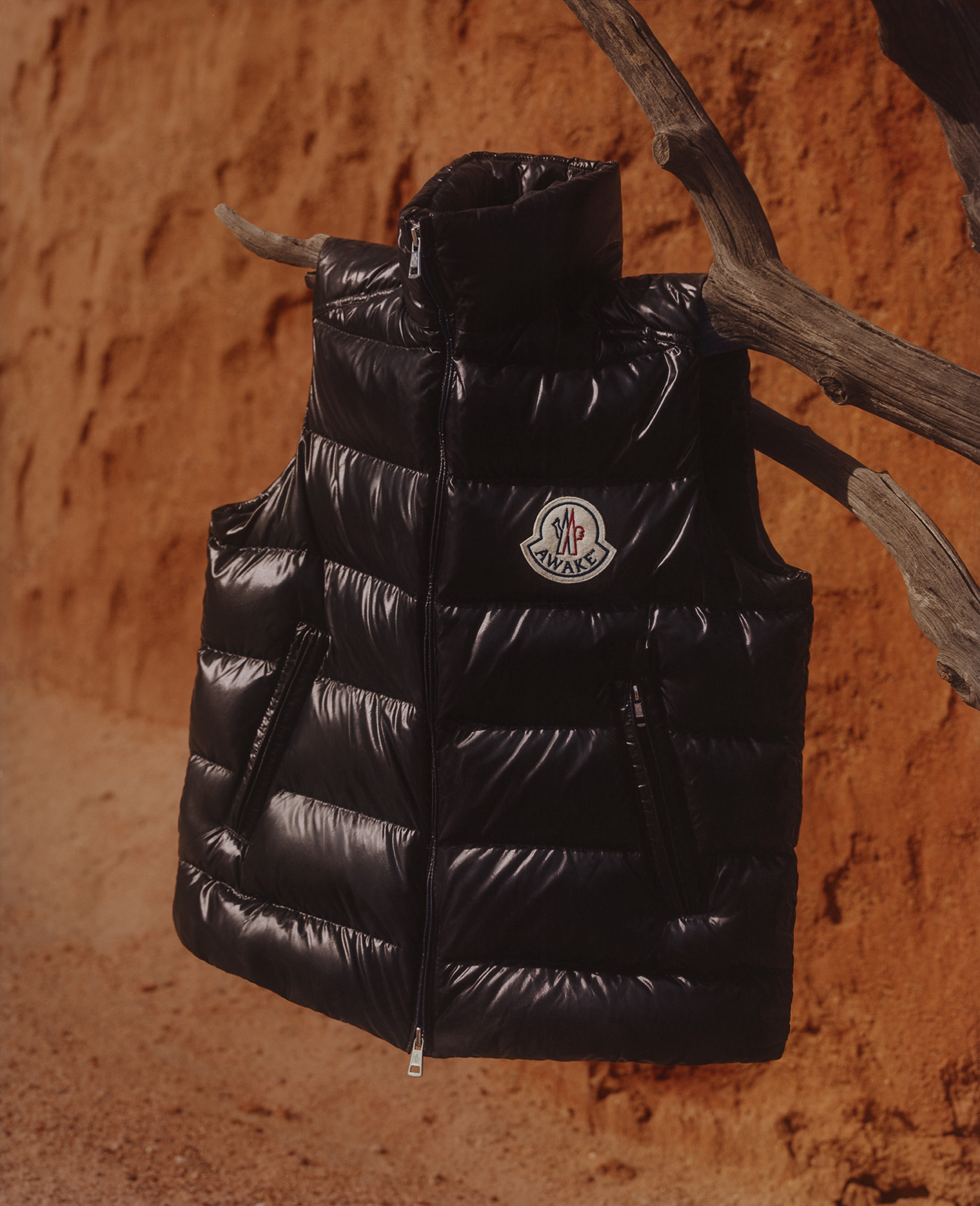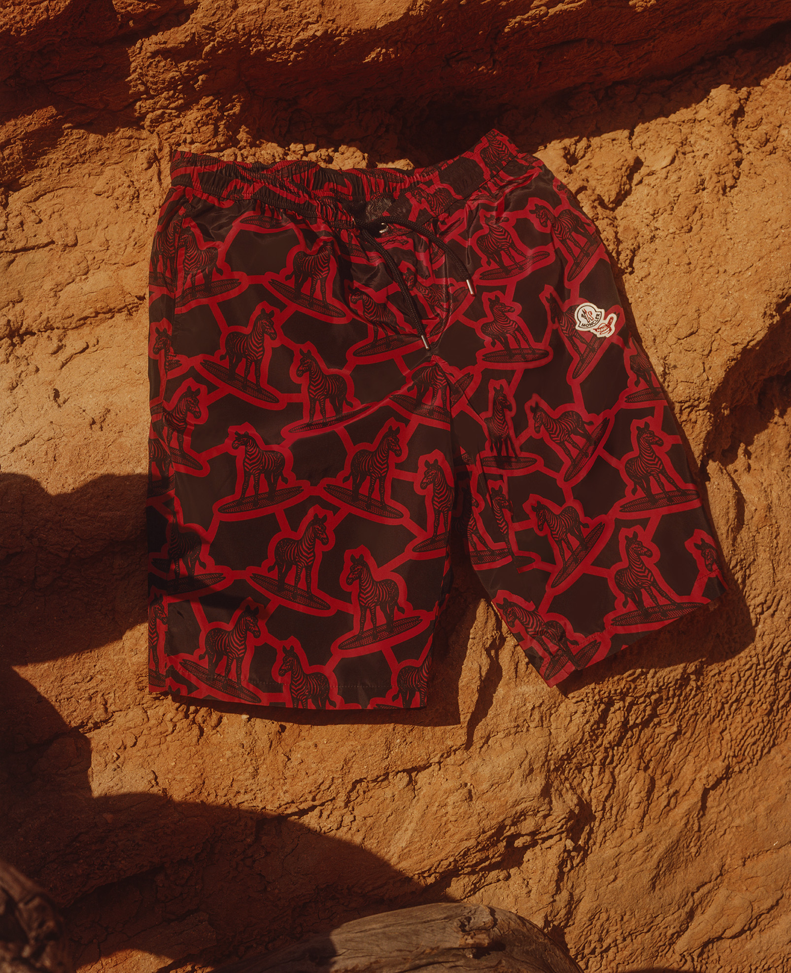 In a two-way exchange, the Moncler / Awake logos are simply yet boldly juxtaposed on jackets and trousers. Involved in a hand-to-hand collaboration, graphic designer Fergus Purcell offered an interpretation of motifs inspired by African wax prints, while Cape Town surf brand Mami Wata Surf provided mischievous patterns for t-shirts, sweatshirts and swimming shorts.
