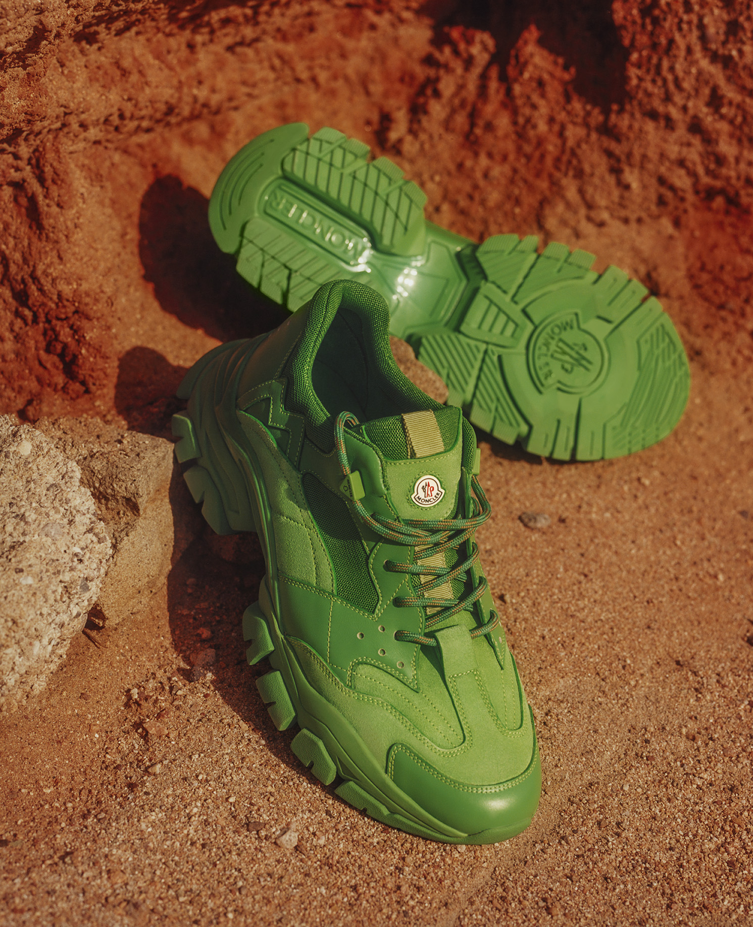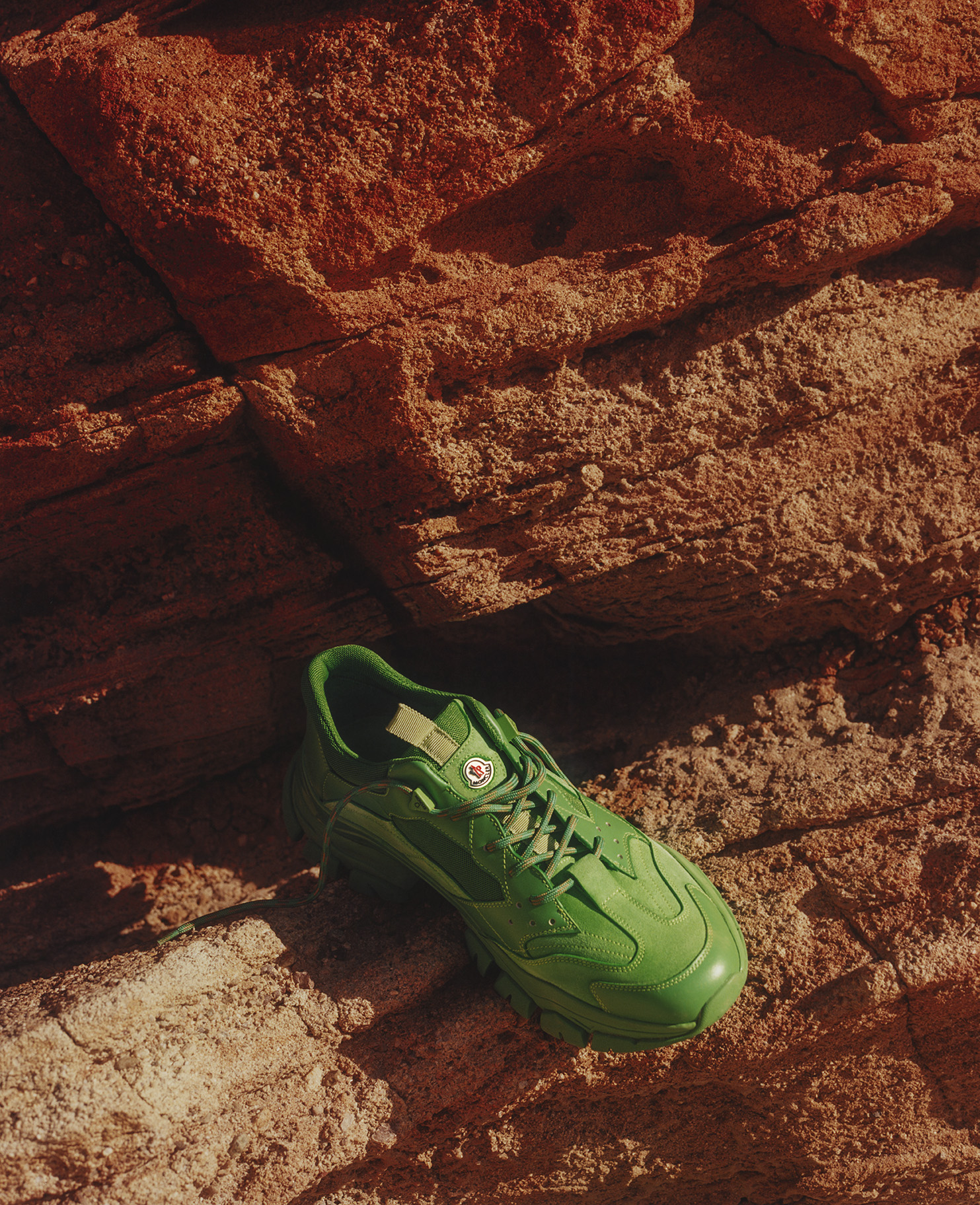 The outdoorsy feel is shot with hints of 90s rave culture: Zambon likes to keep the crossover as far stretching as possible. Printed duffel bags, colorful loafers and skater sneakers expand the all-inclusive spirit.