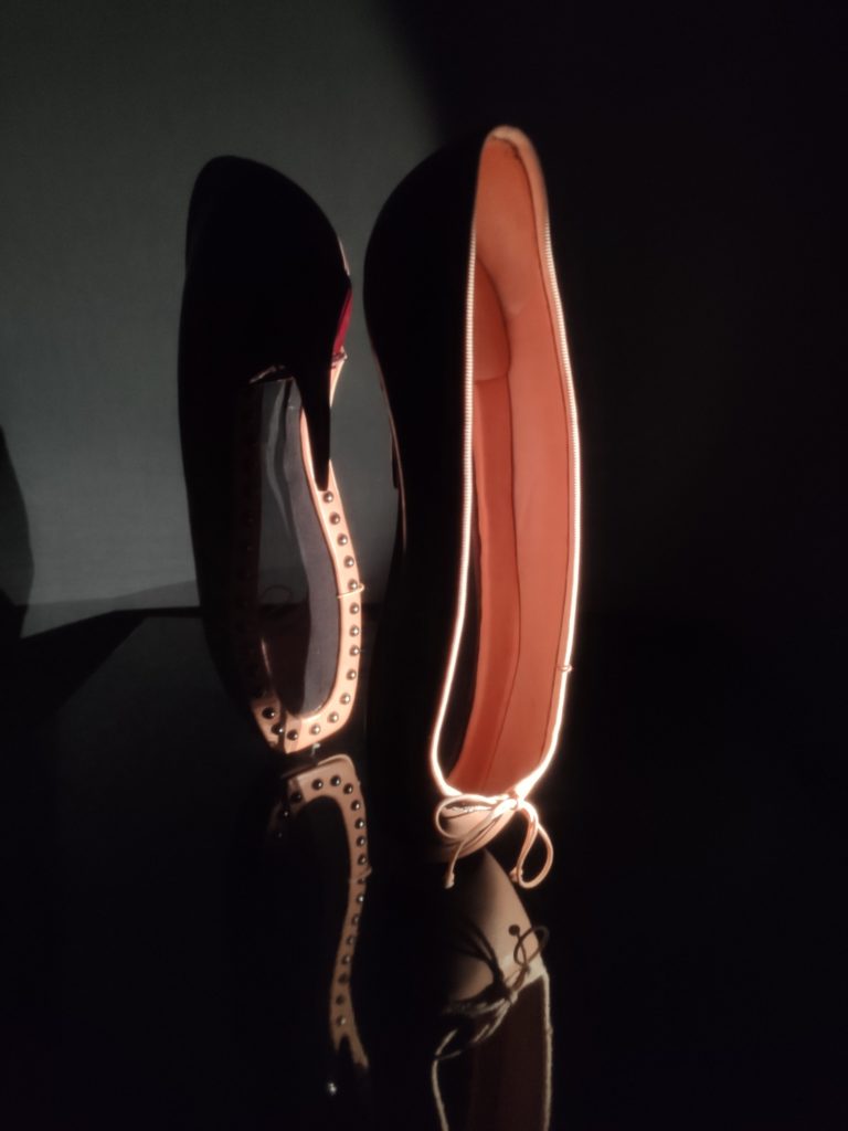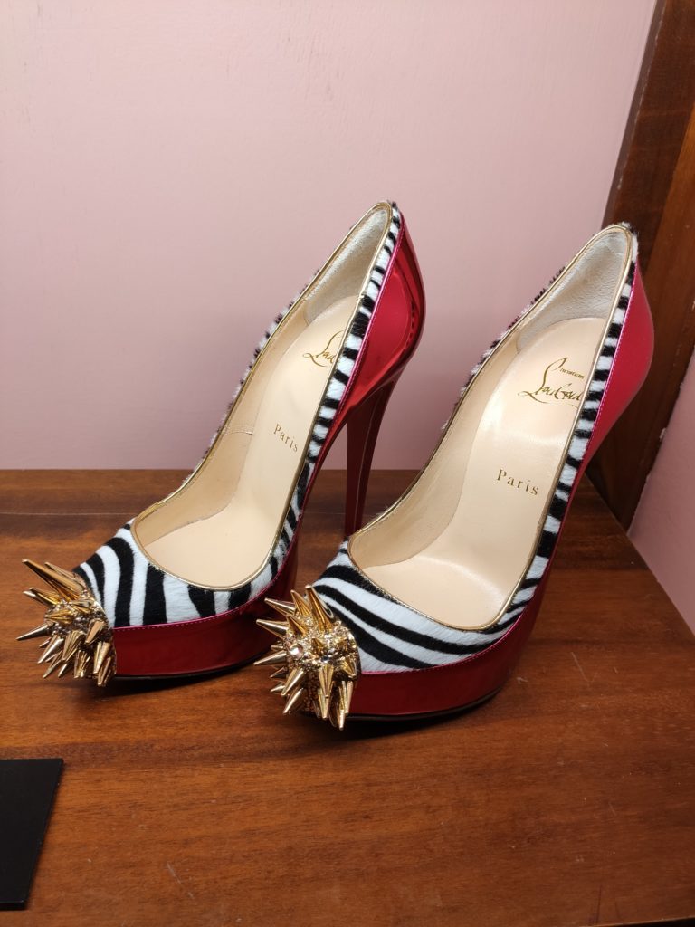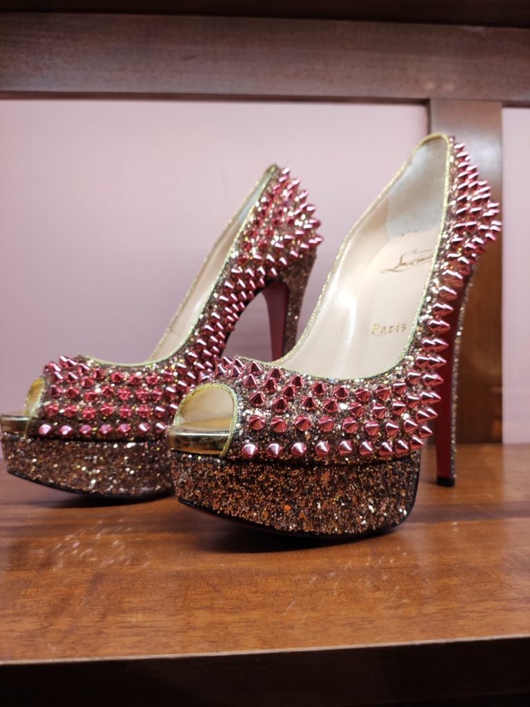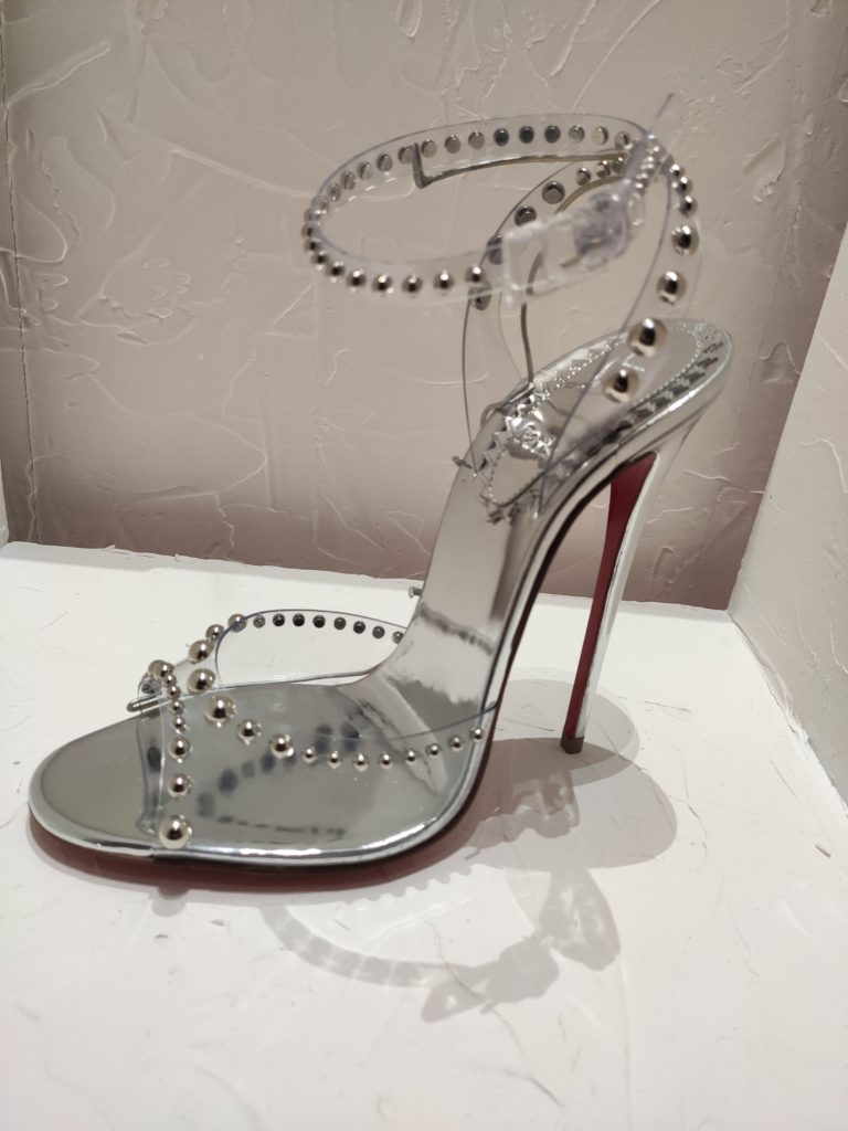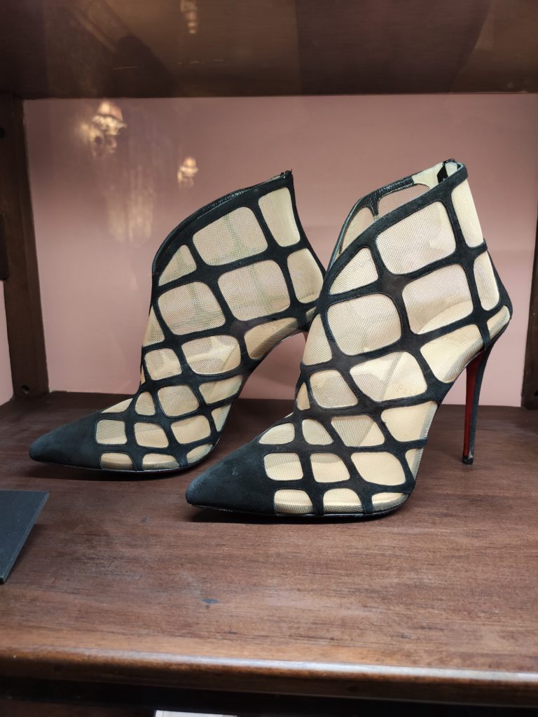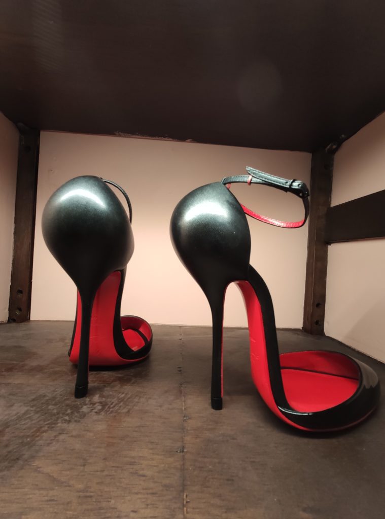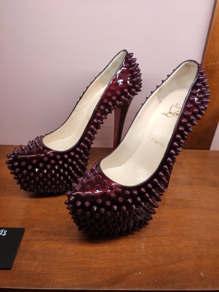 Une large sélection de souliers et croquis est présentée, dont certains jamais exposés. Ces pièces patrimoniales et artistiques sont exposées aux côtés de nombreuses collaborations qui soulignent l’attachement de Christian Louboutin pour les savoir-faire et les métiers d’art, comme des vitraux réalisés par la Maison du Vitrail à Paris, un palanquin d’argent réalisé par l’Orfebreria Villareal de Séville, ou encore un cabaret sculpté au Bhoutan.