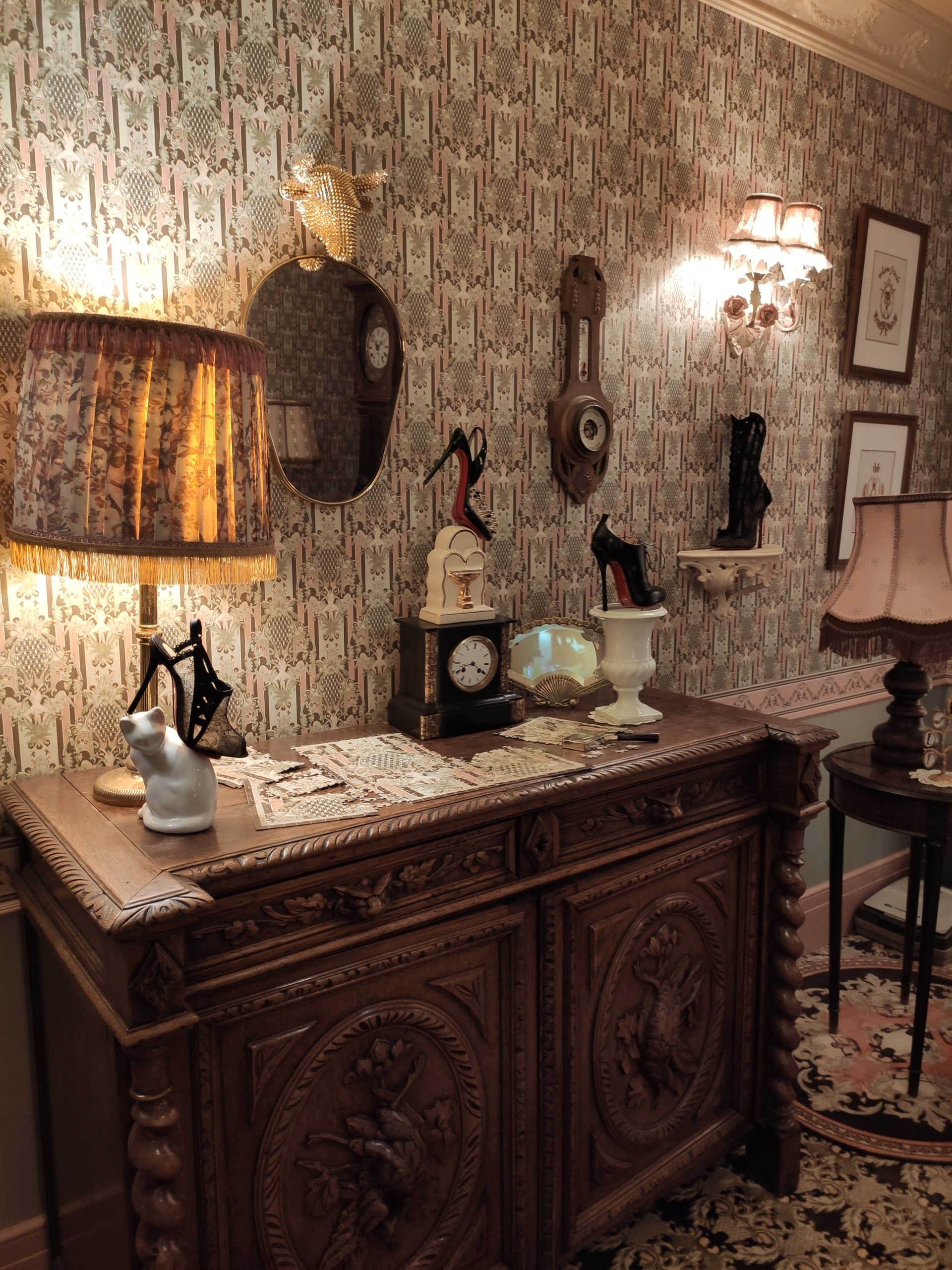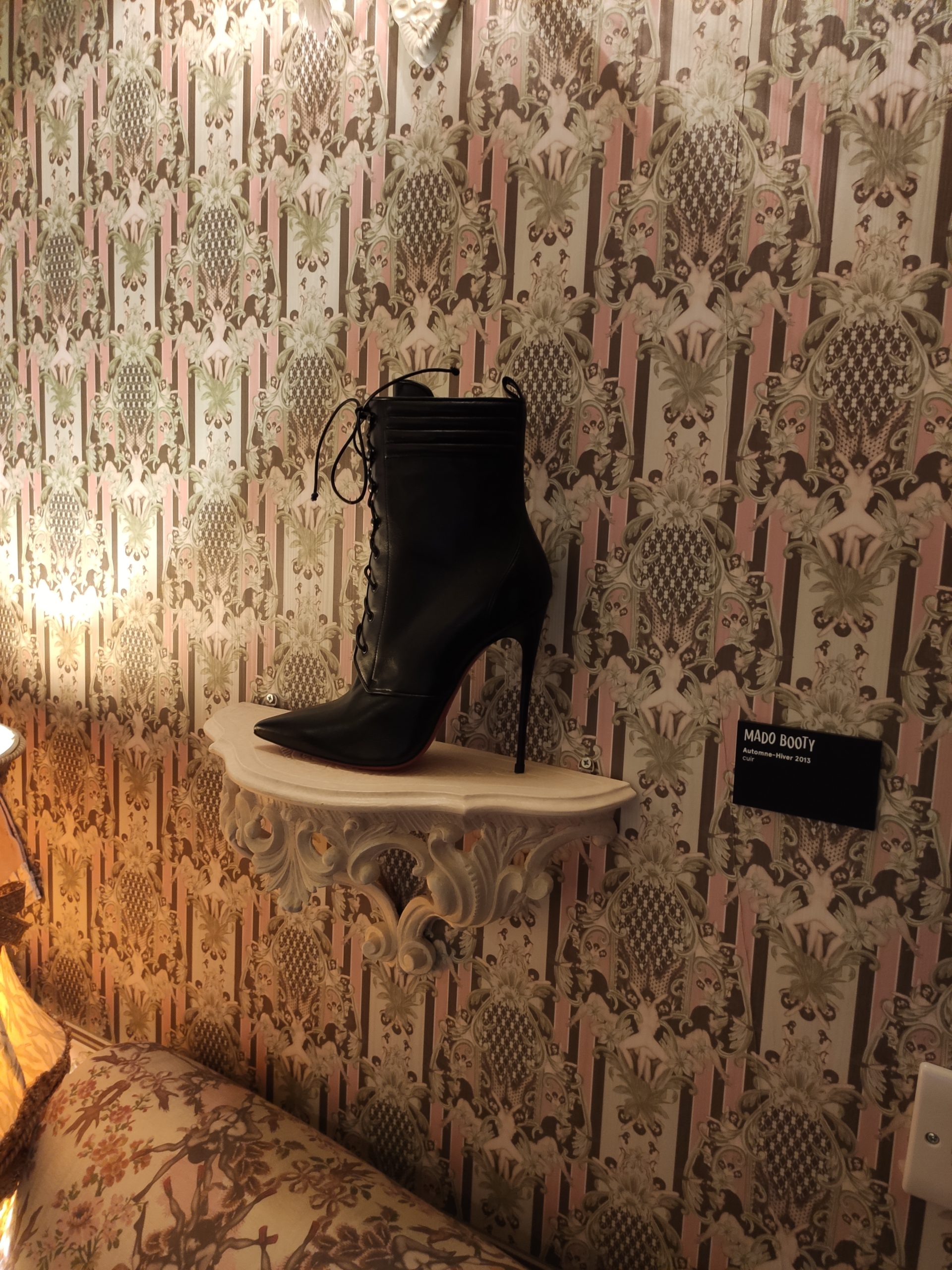 La dernière partie de l’exposition dévoile le « Musée Imaginaire » du créateur. Conçu comme une promenade à travers les sources d’inspiration et les références de Christian Louboutin, cet espace relie l’exposition à l’histoire du Palais de la Porte Dorée, avec une sélection éclectique de pièces allant de la porcelaine de Wedgwood à du mobilier signé Oscar Niemeyer.