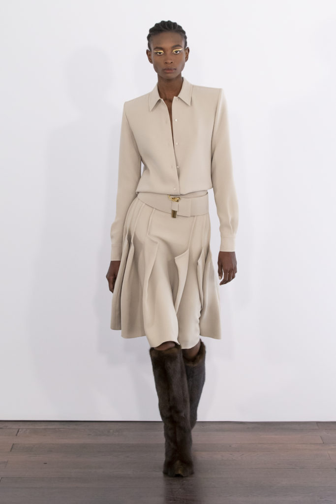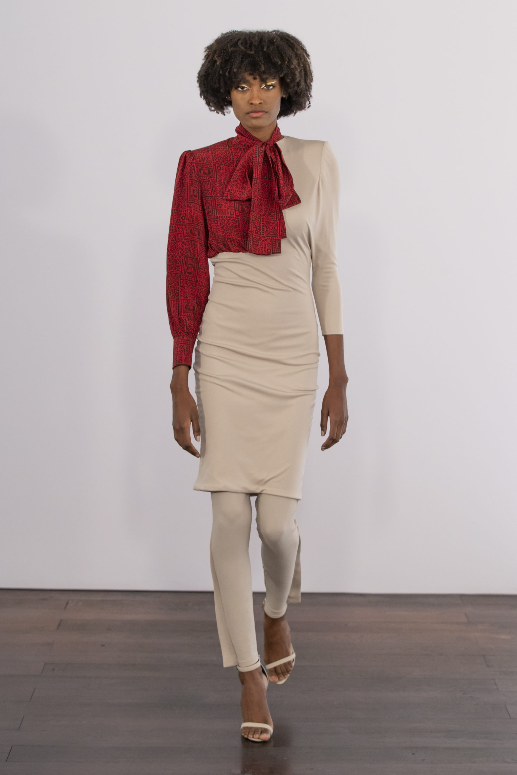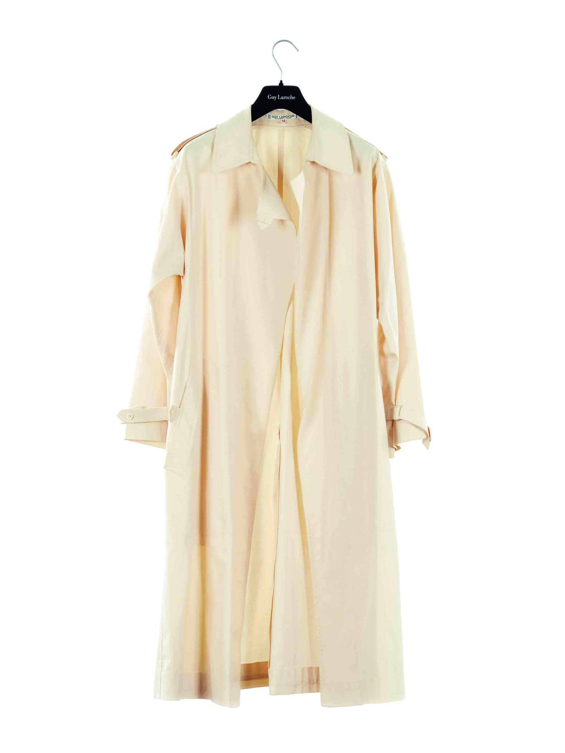 12 pièces vintage Guy Laroche recherchées, rachetées et photographiées constituent l’essentiel de cette collection. L’idée est la transformation contemporaine d’anciens vêtements et de n’utiliser que les matières premières disponibles au sein de la maison. 4 nouveaux modèles beiges comme une renaissance évoquent la récupération.